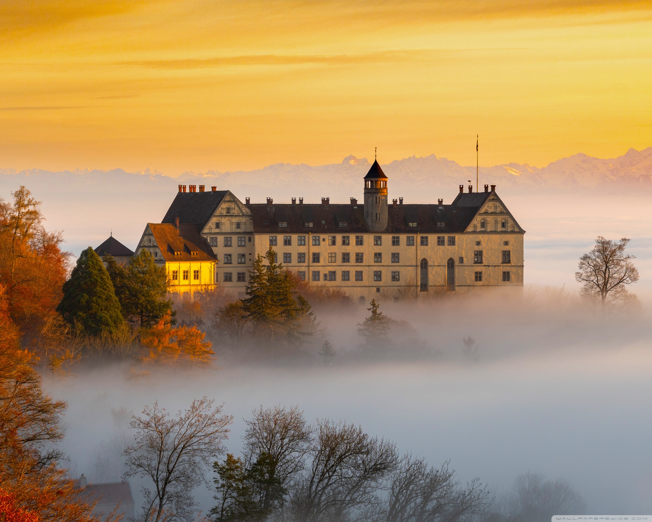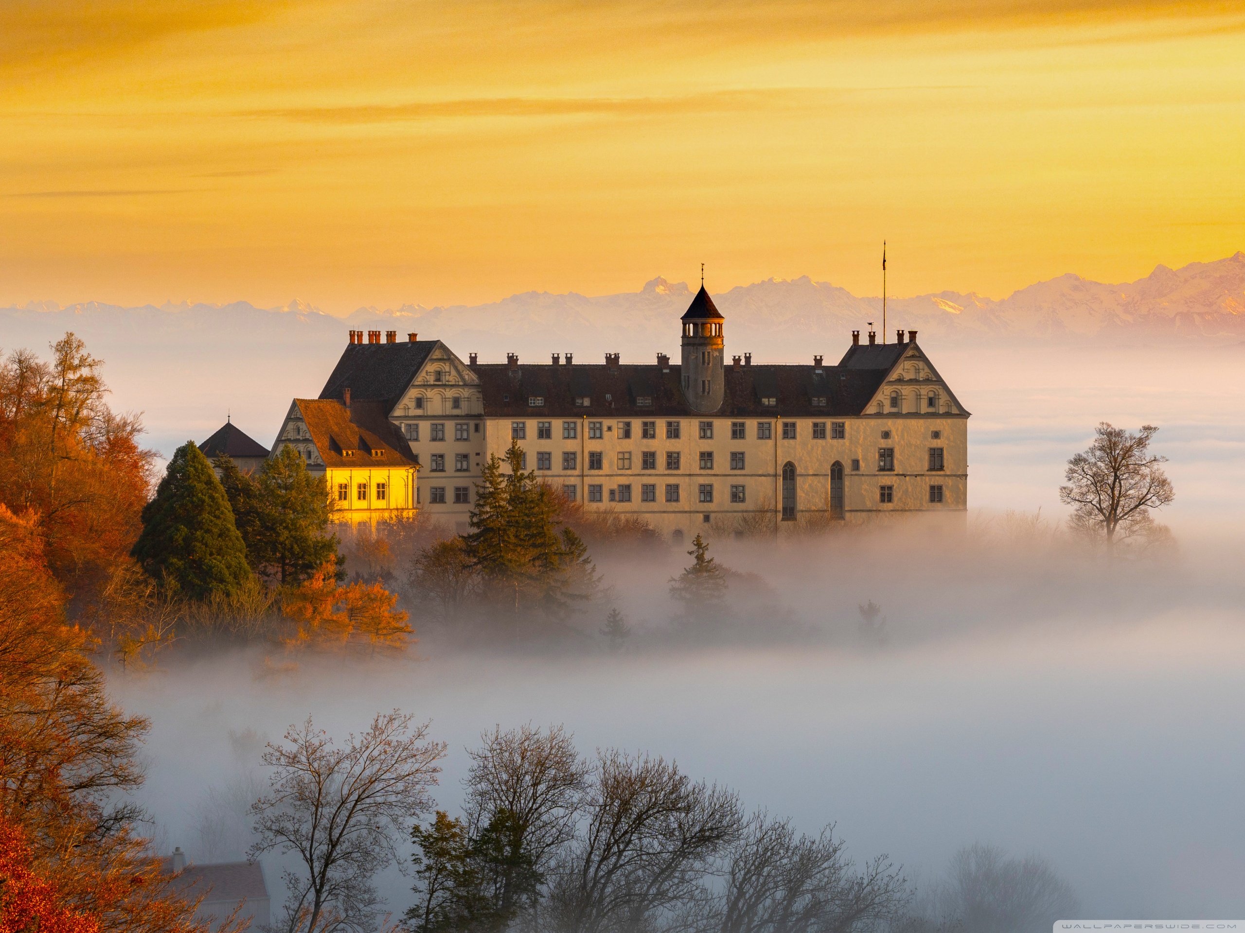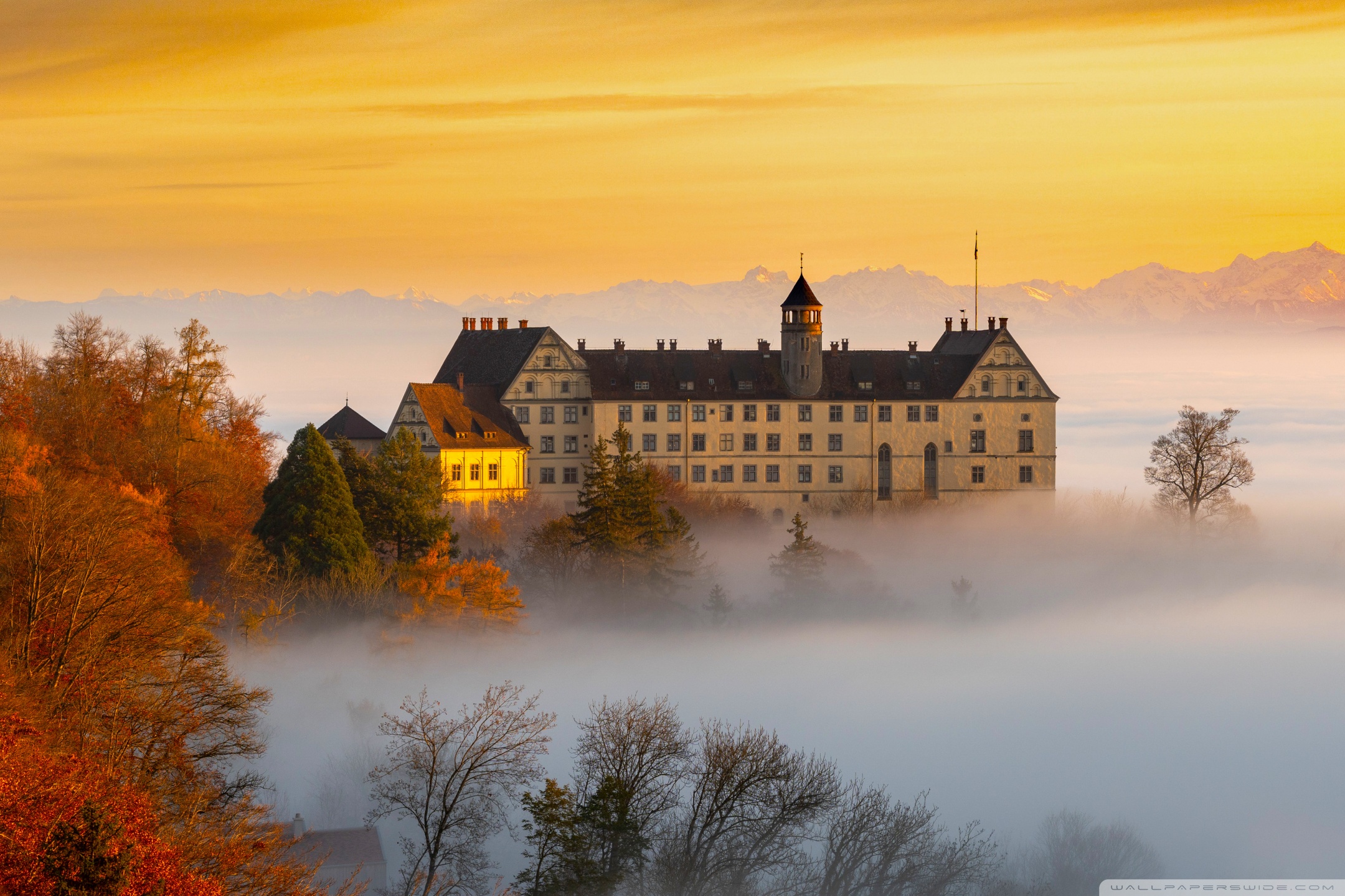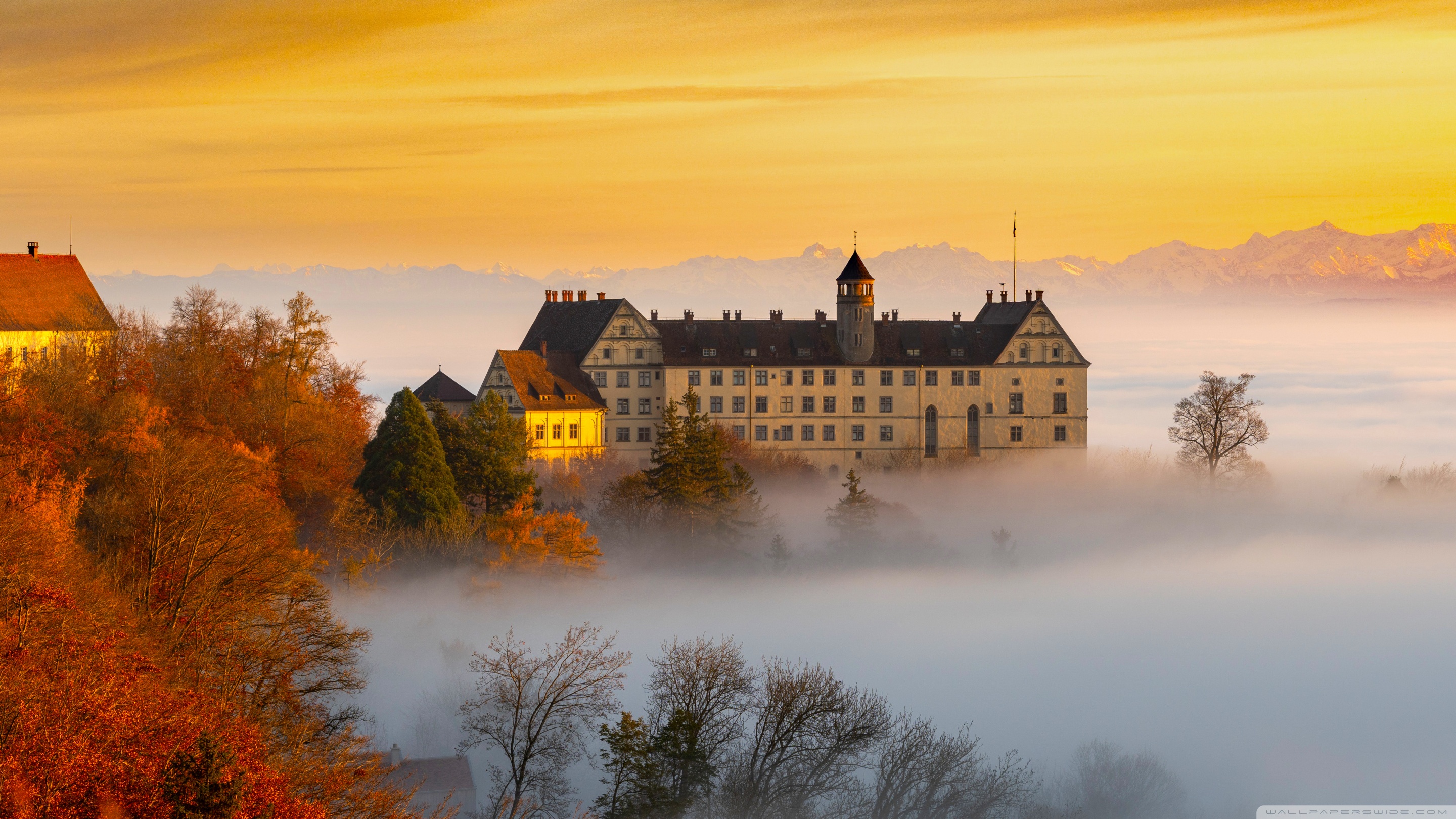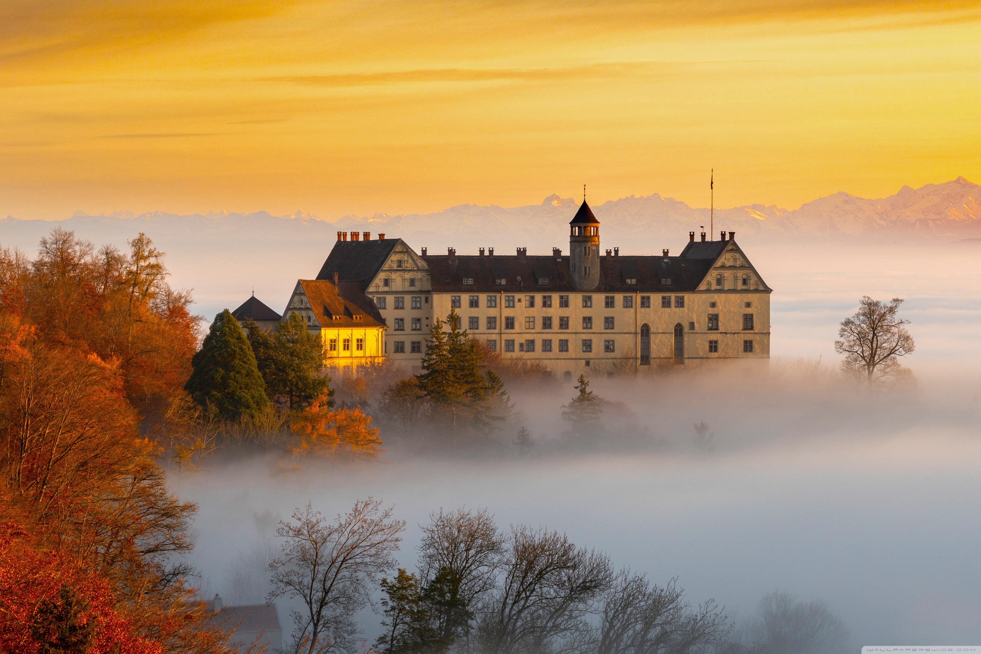 Download Fogbound Castle, Autumn 4K UHD Wallpaper