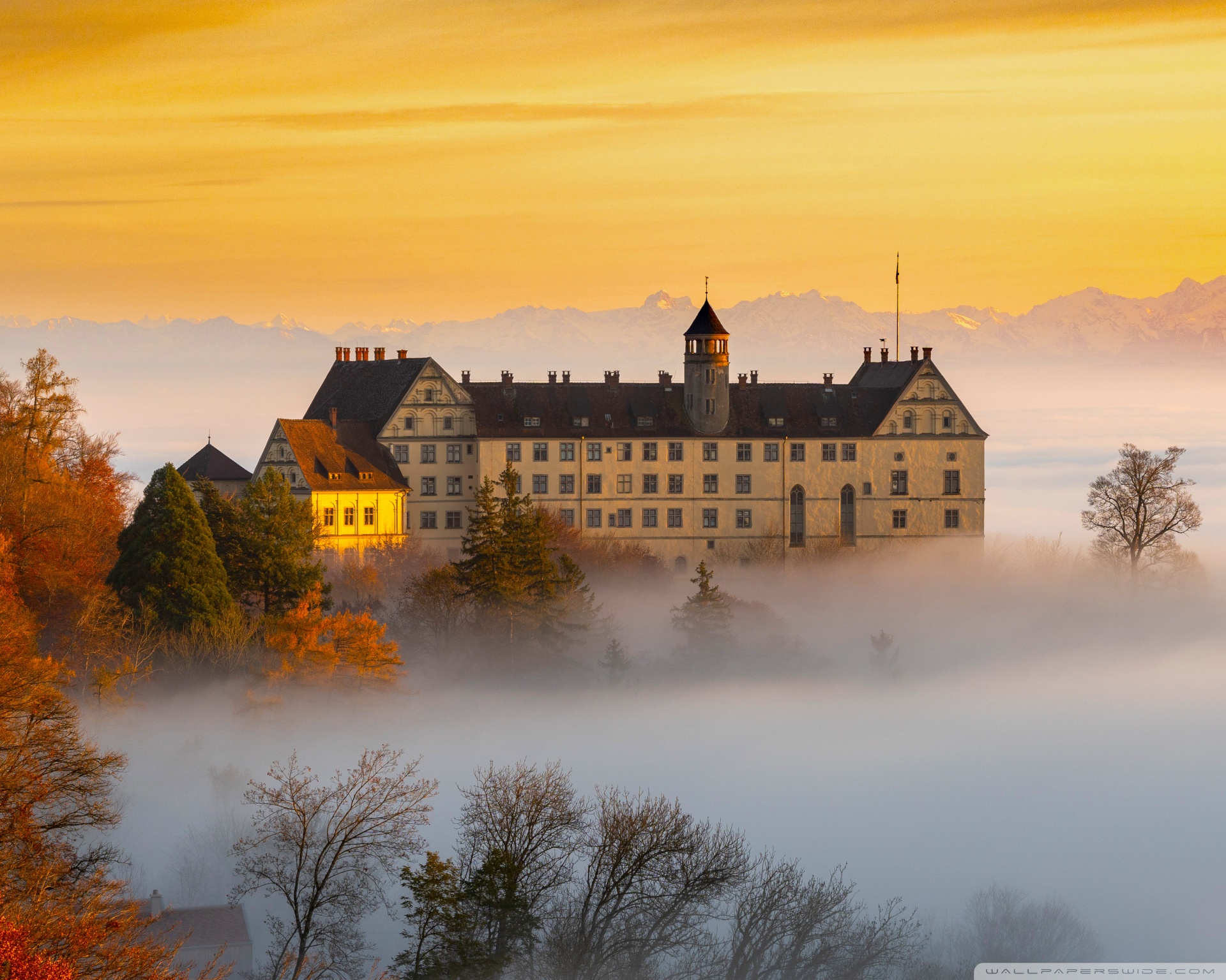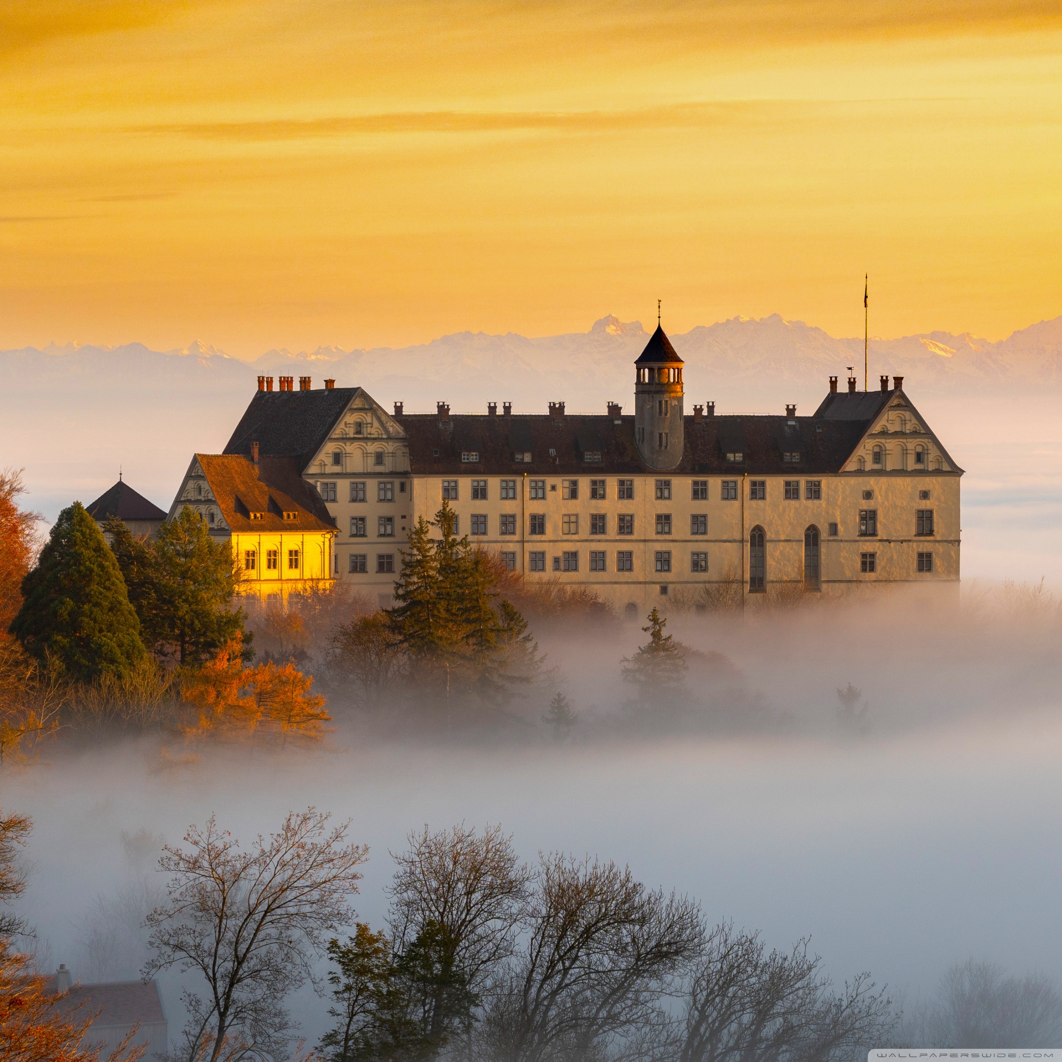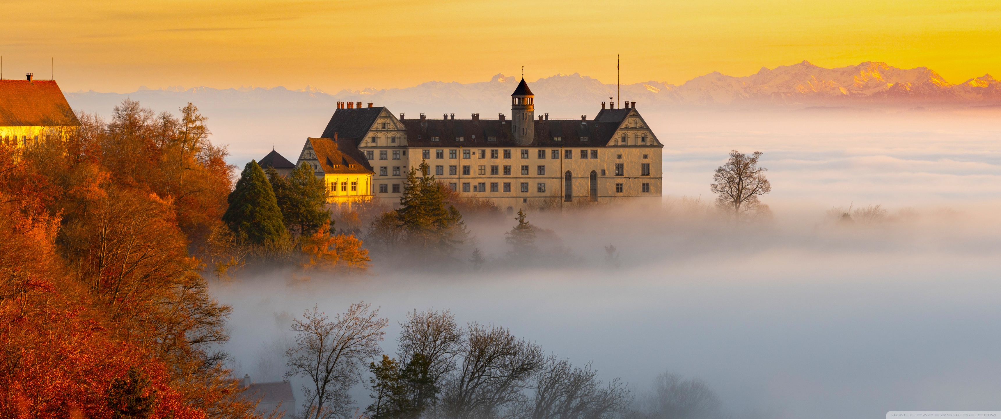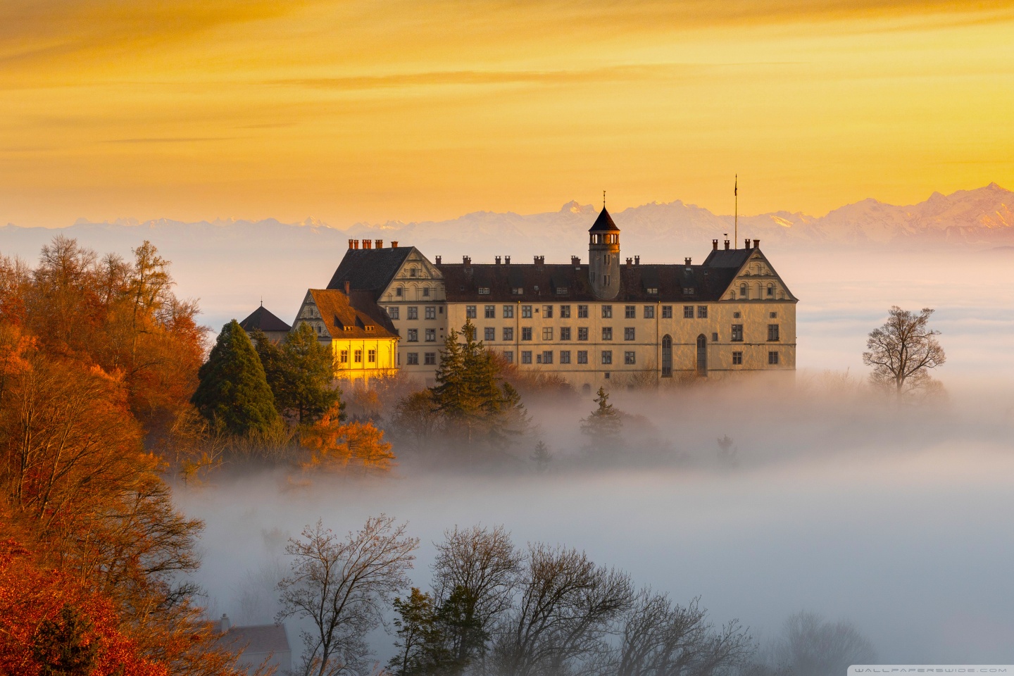 Download Fogbound Castle, Autumn 4K UHD Wallpaper