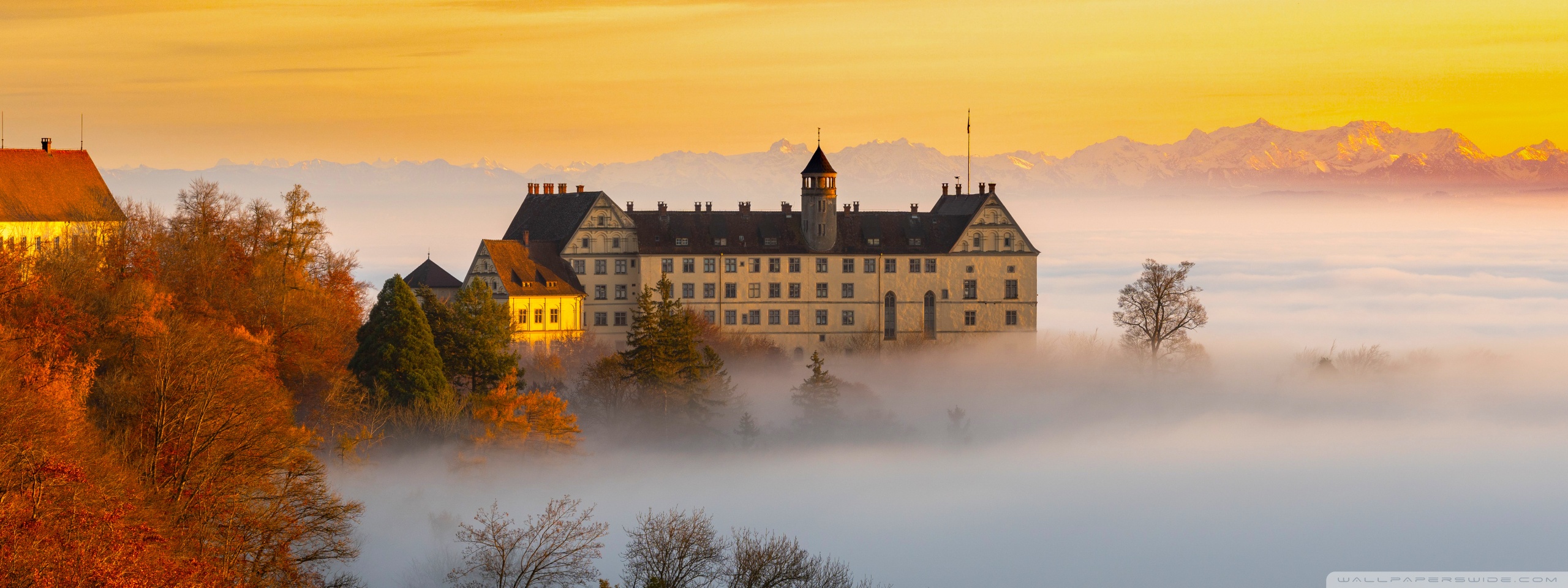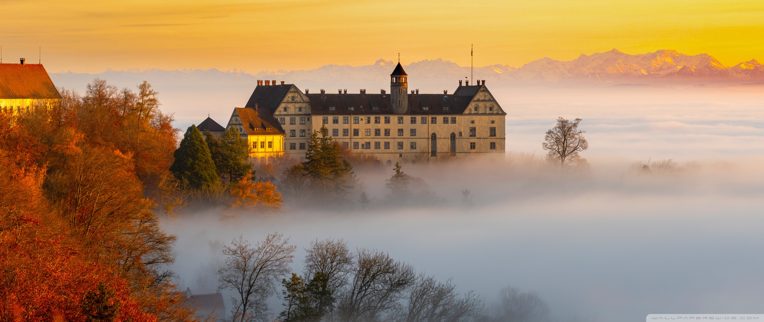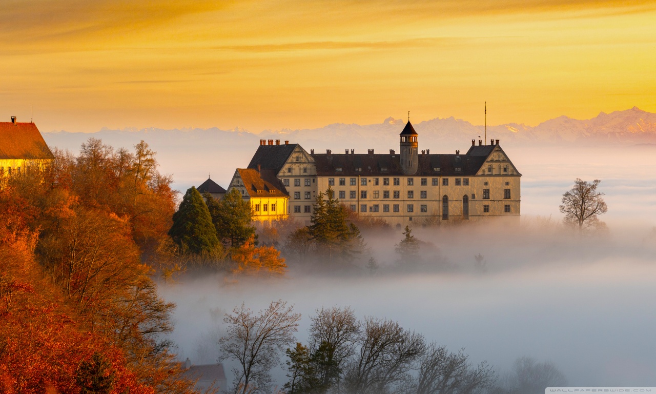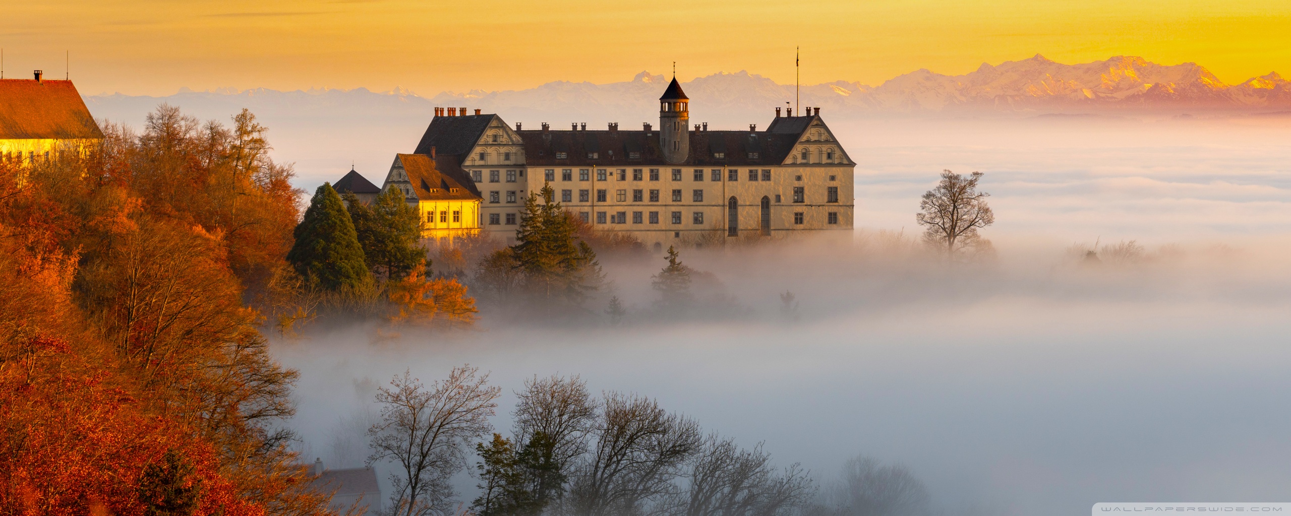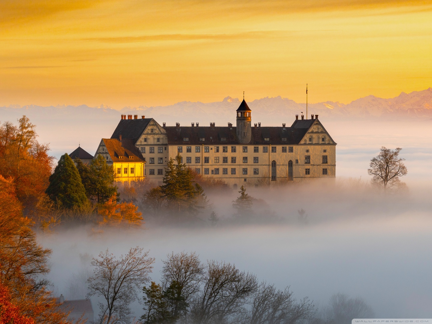 Download Fogbound Castle, Autumn 4K UHD Wallpaper