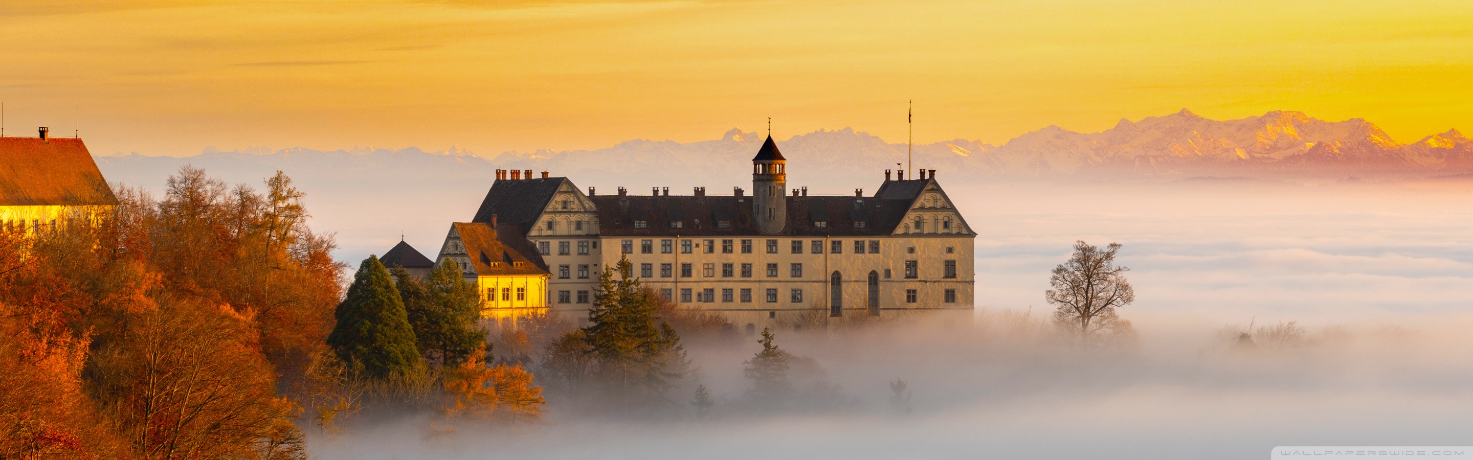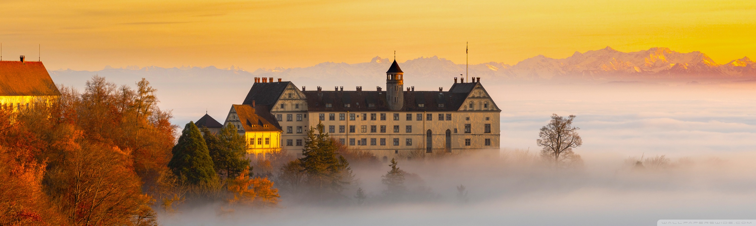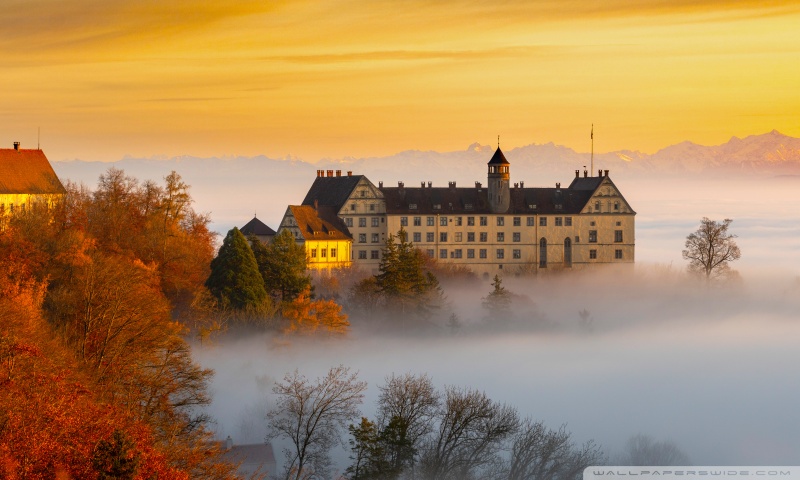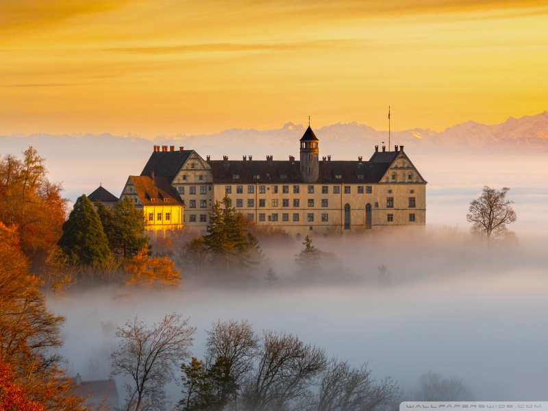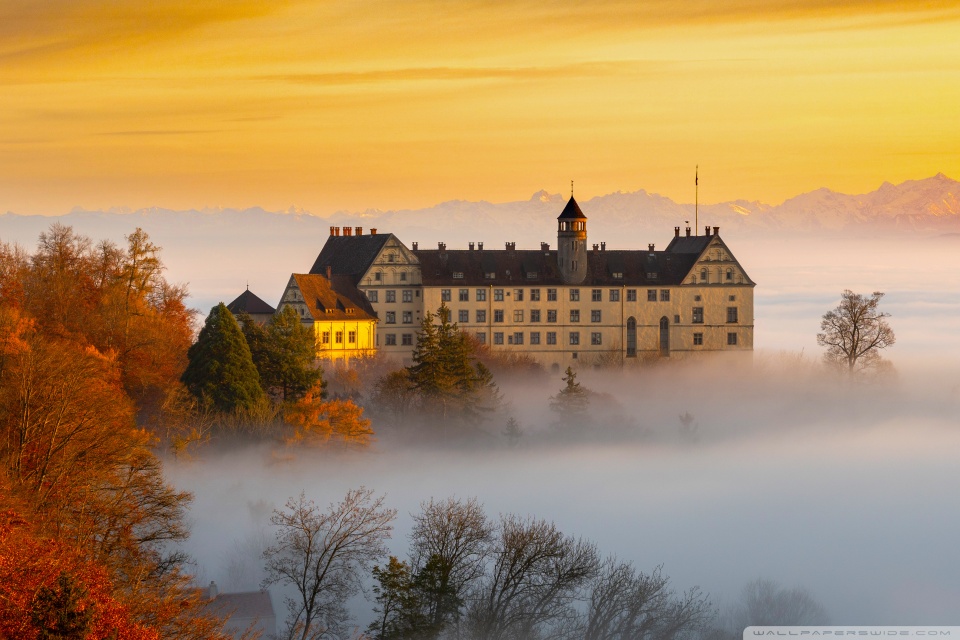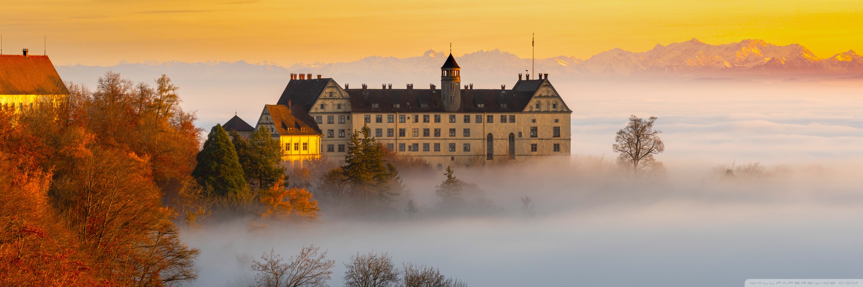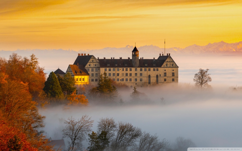 Download Fogbound Castle, Autumn 4K UHD Wallpaper