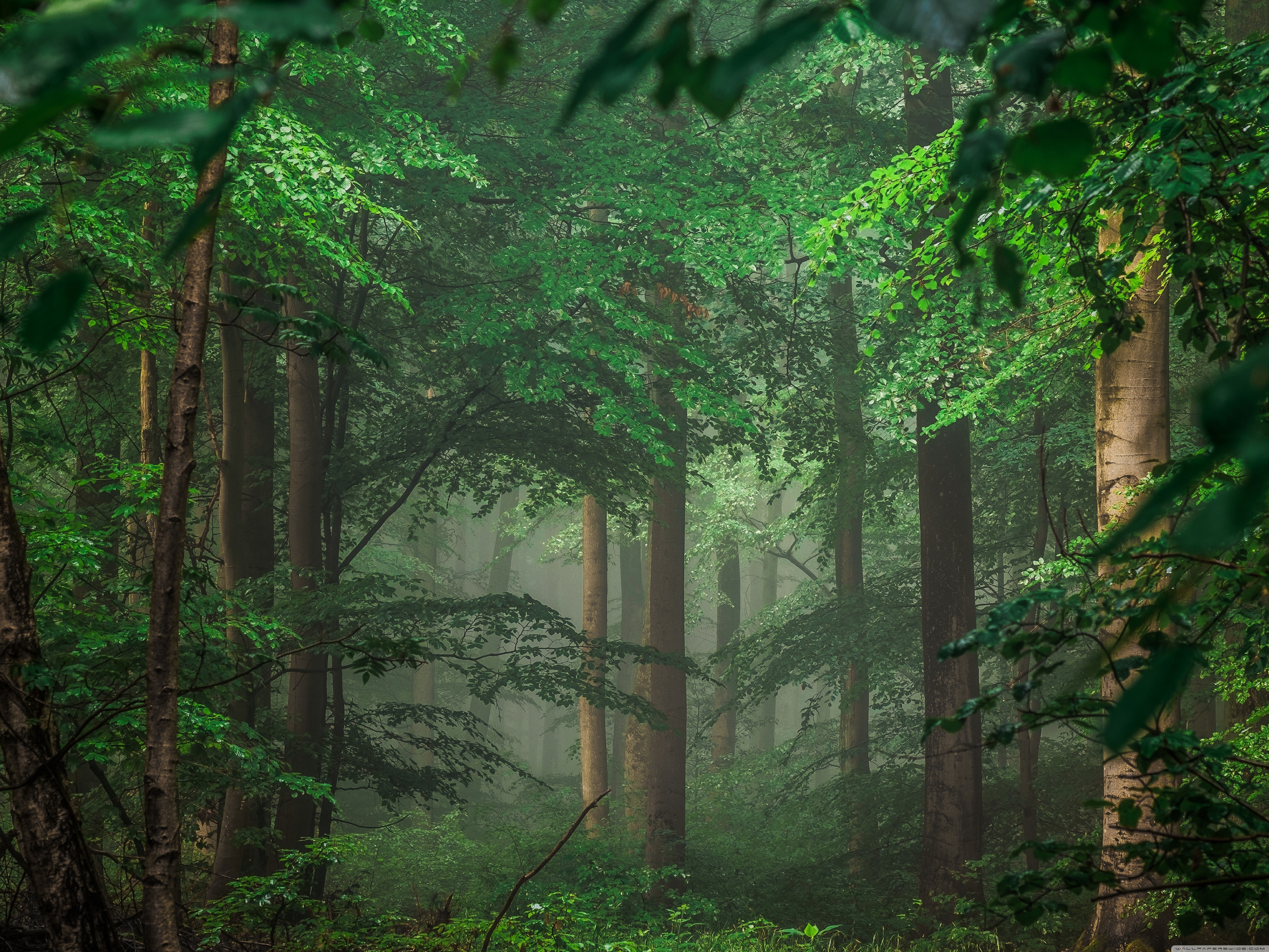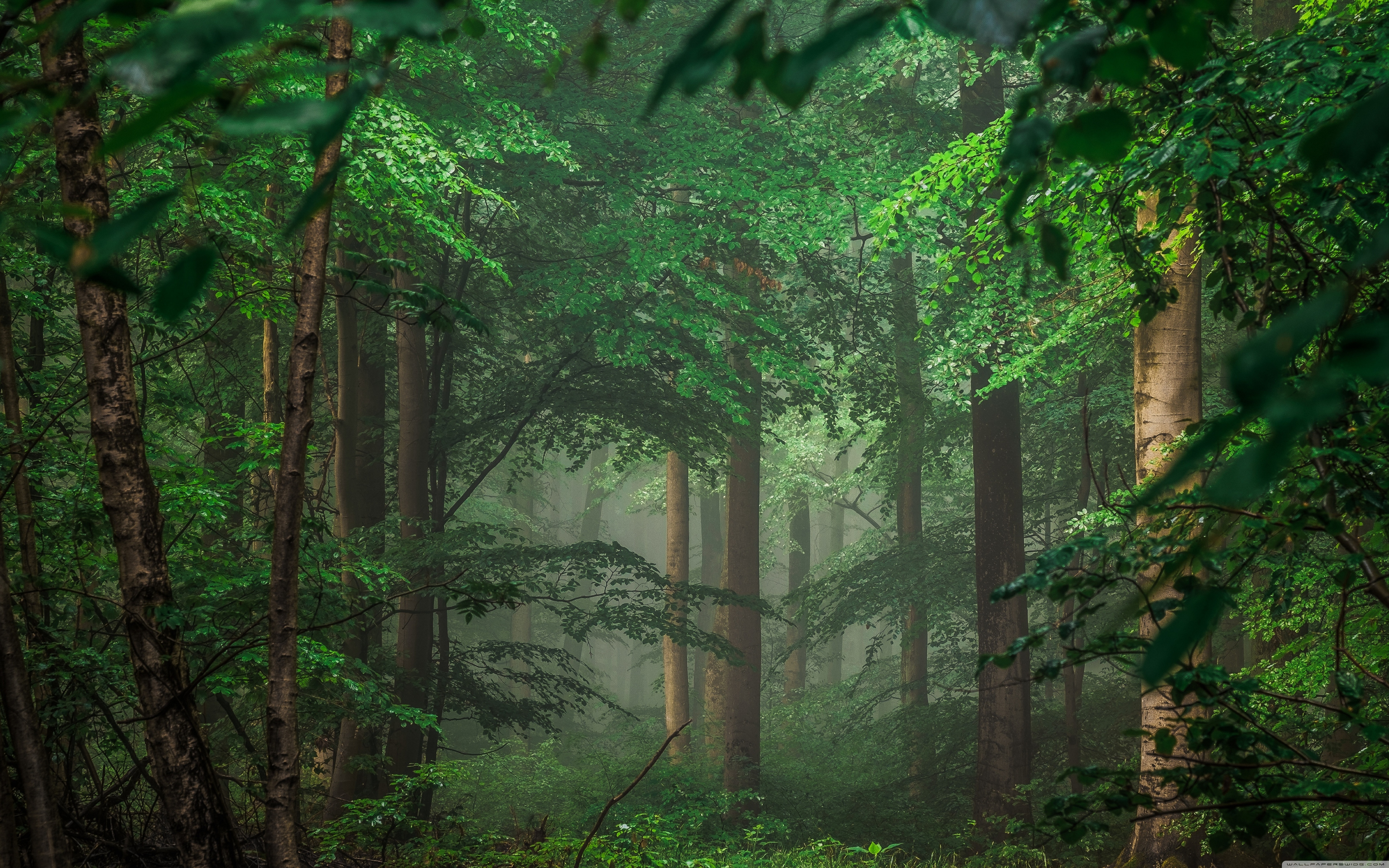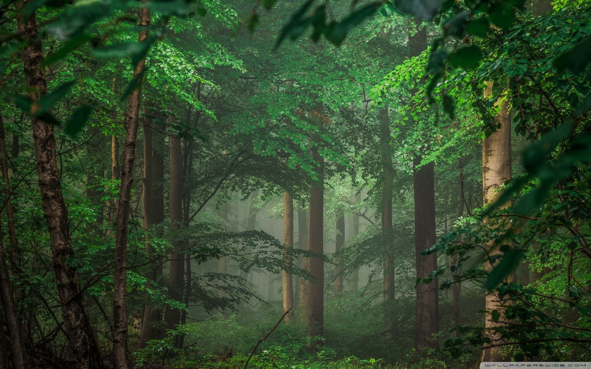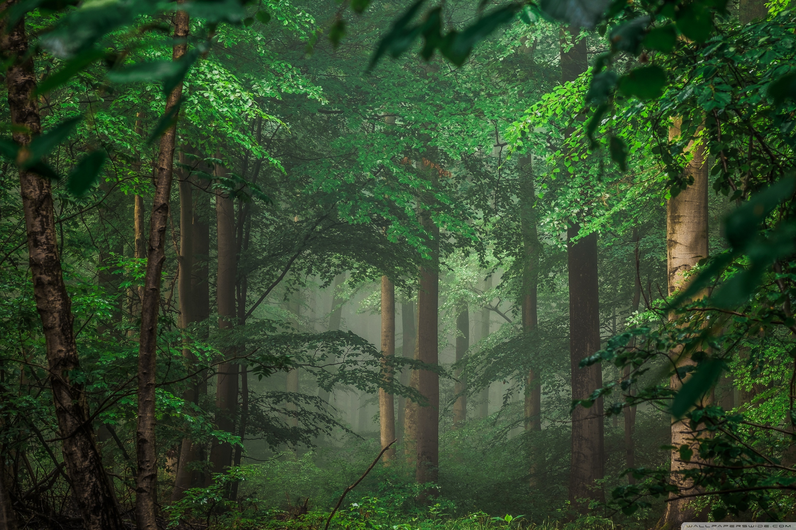 Download Forest after Rain, Green Trees, Mist 4K UHD Wallpaper