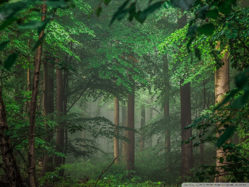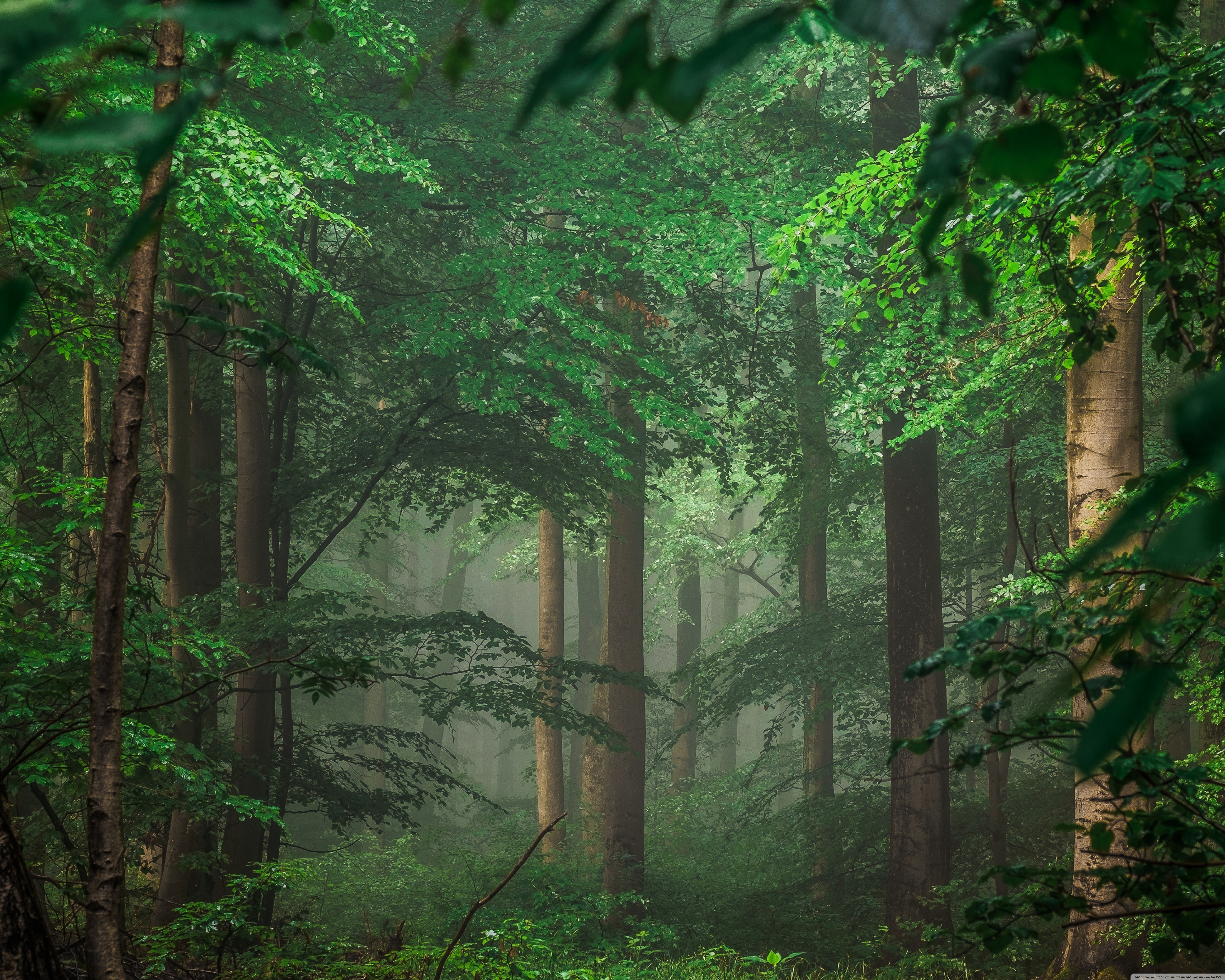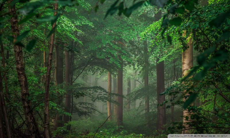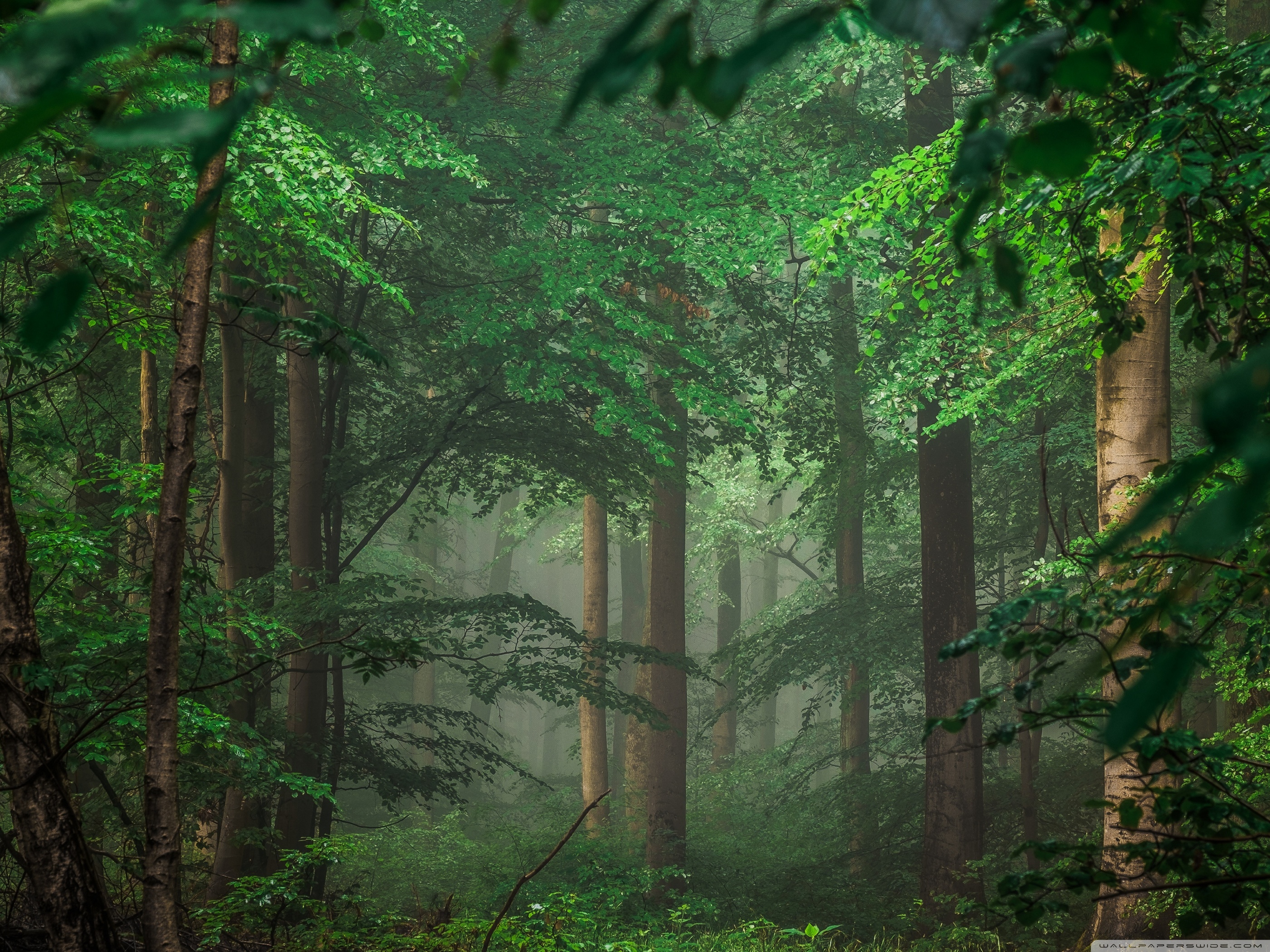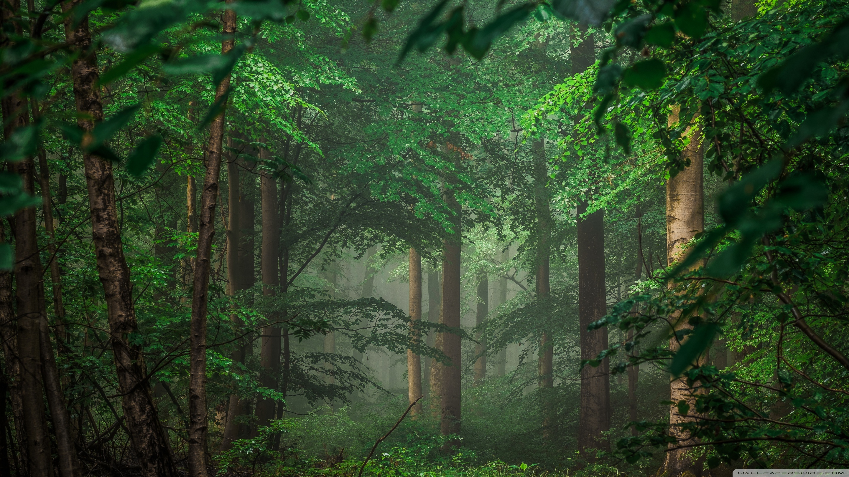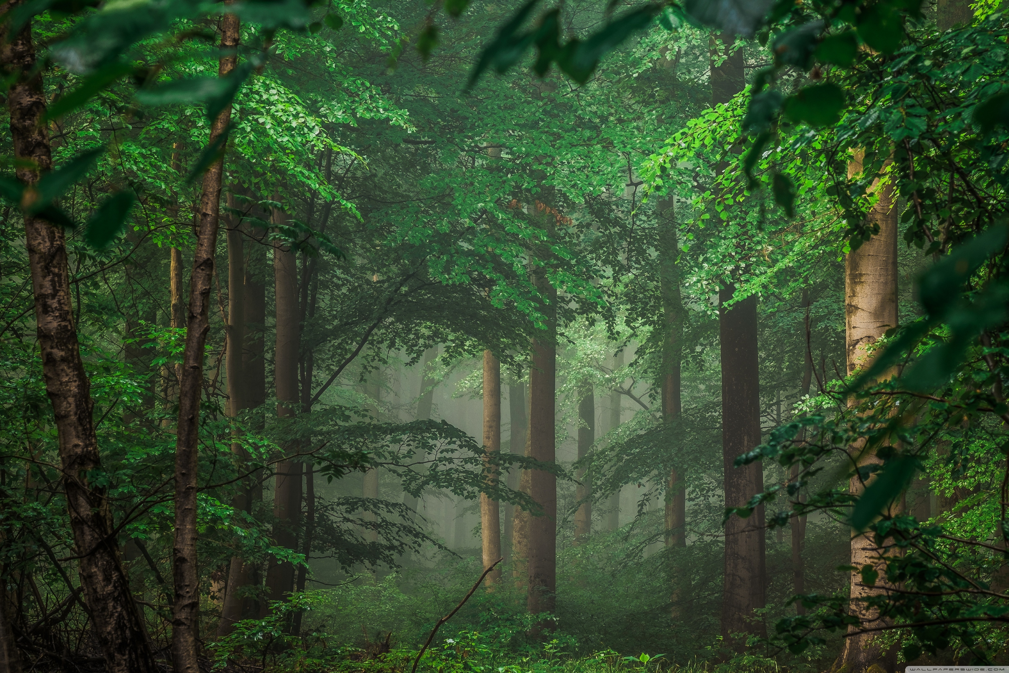 Download Forest after Rain, Green Trees, Mist 4K UHD Wallpaper