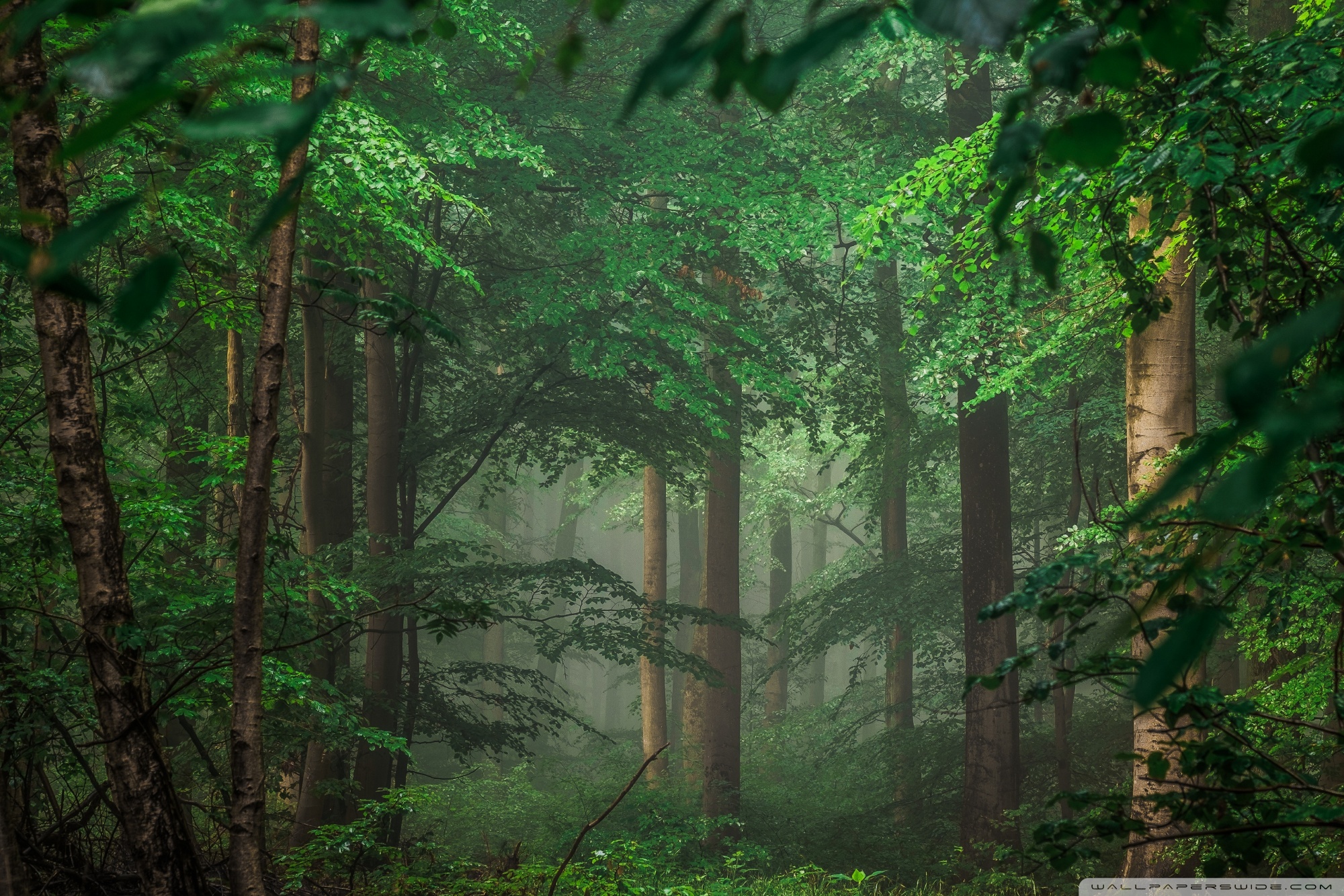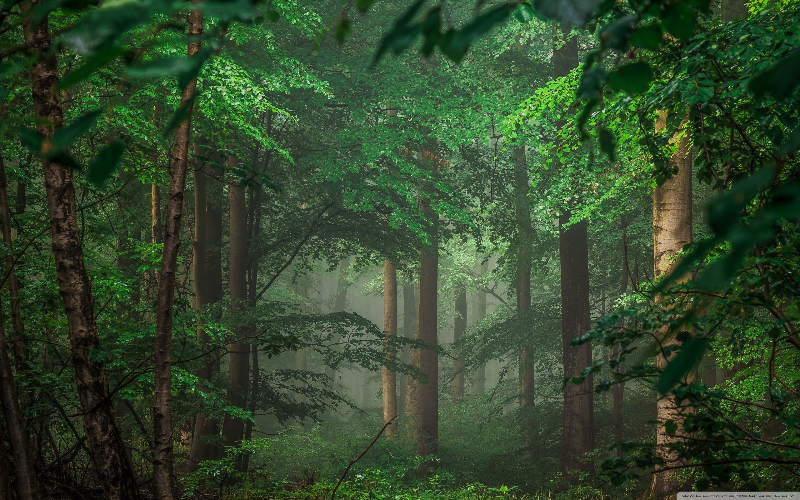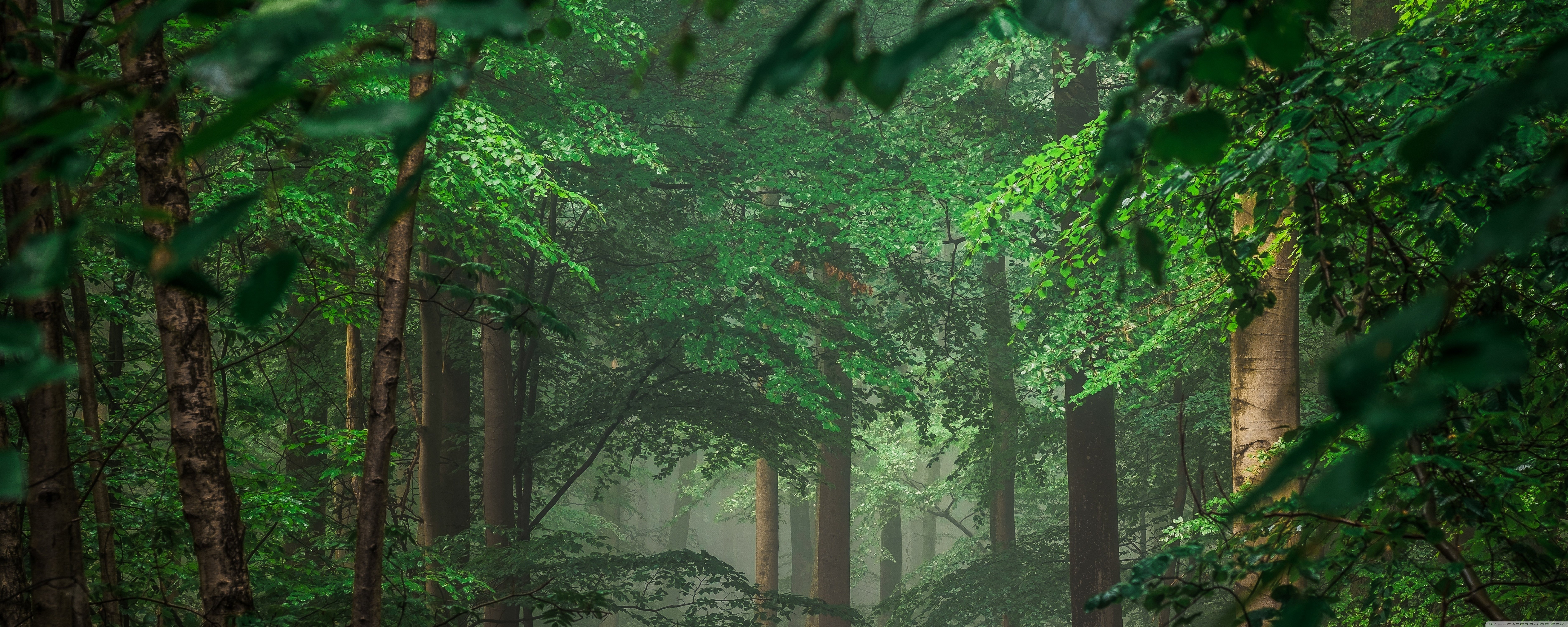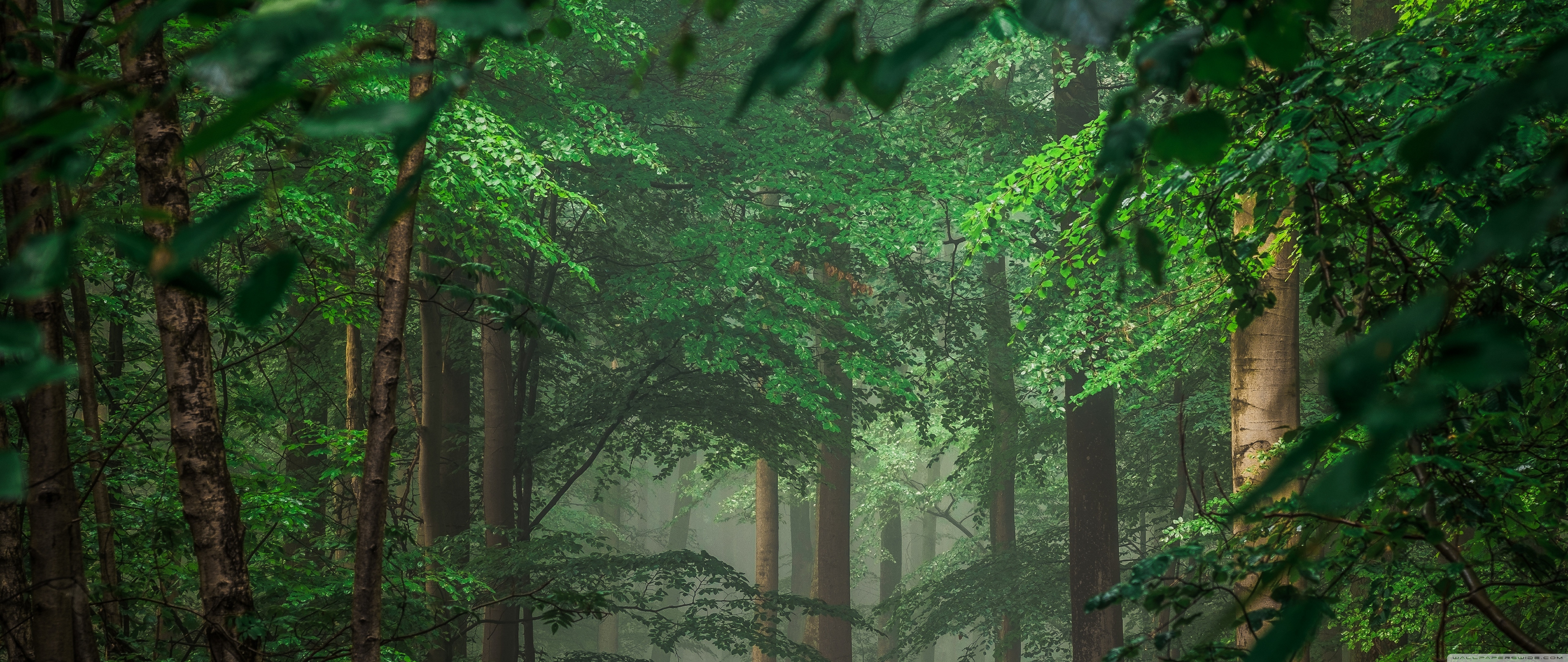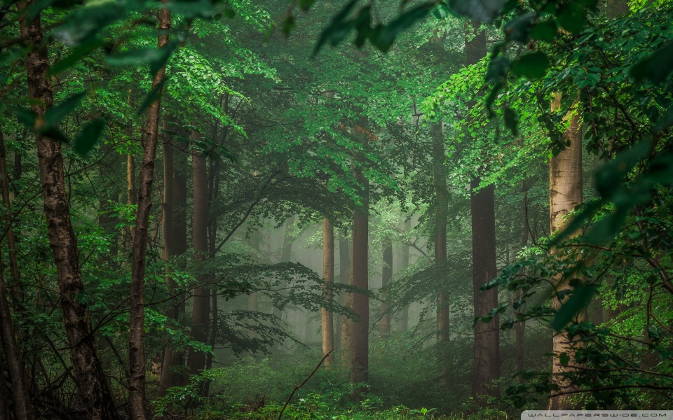 Download Forest after Rain, Green Trees, Mist 4K UHD Wallpaper