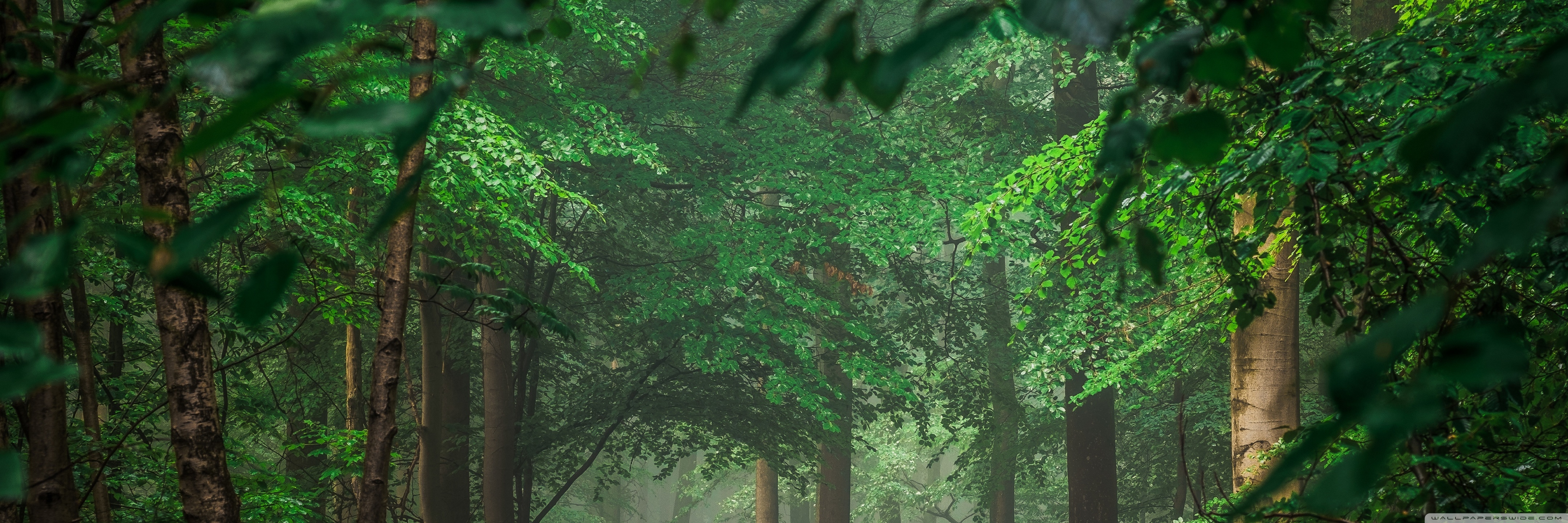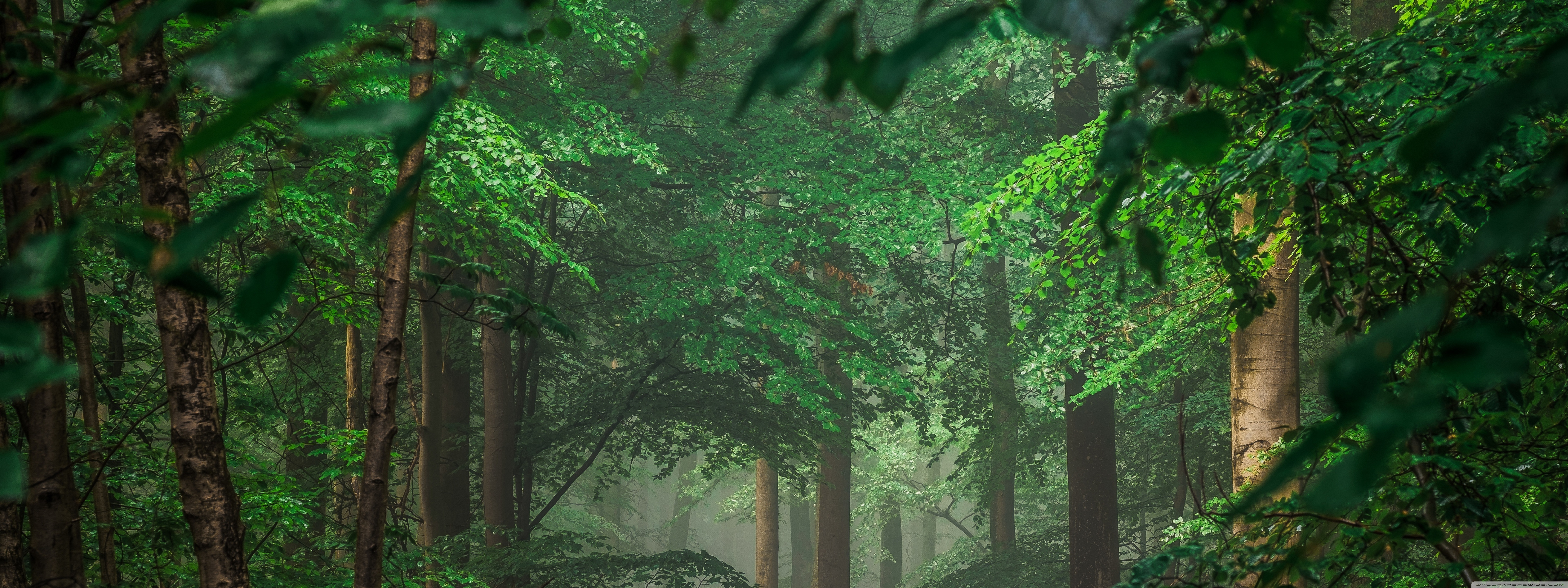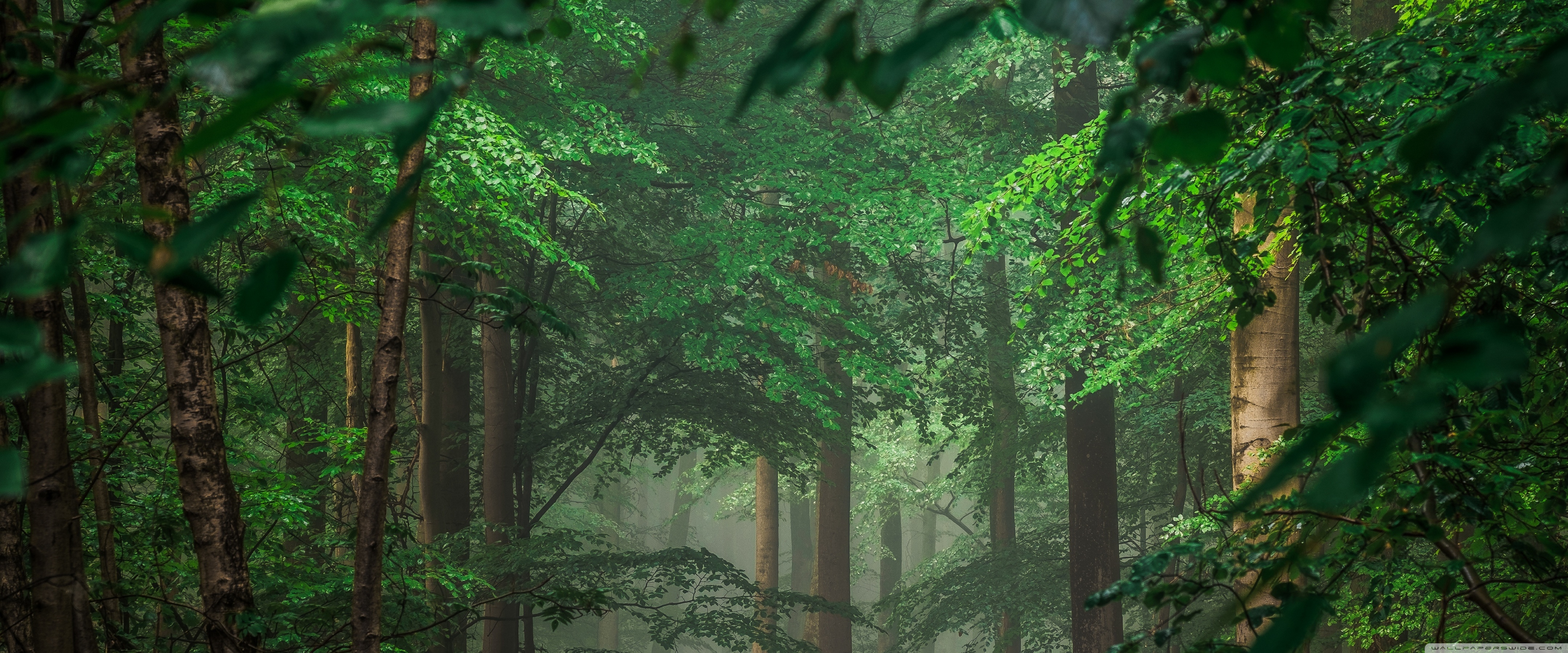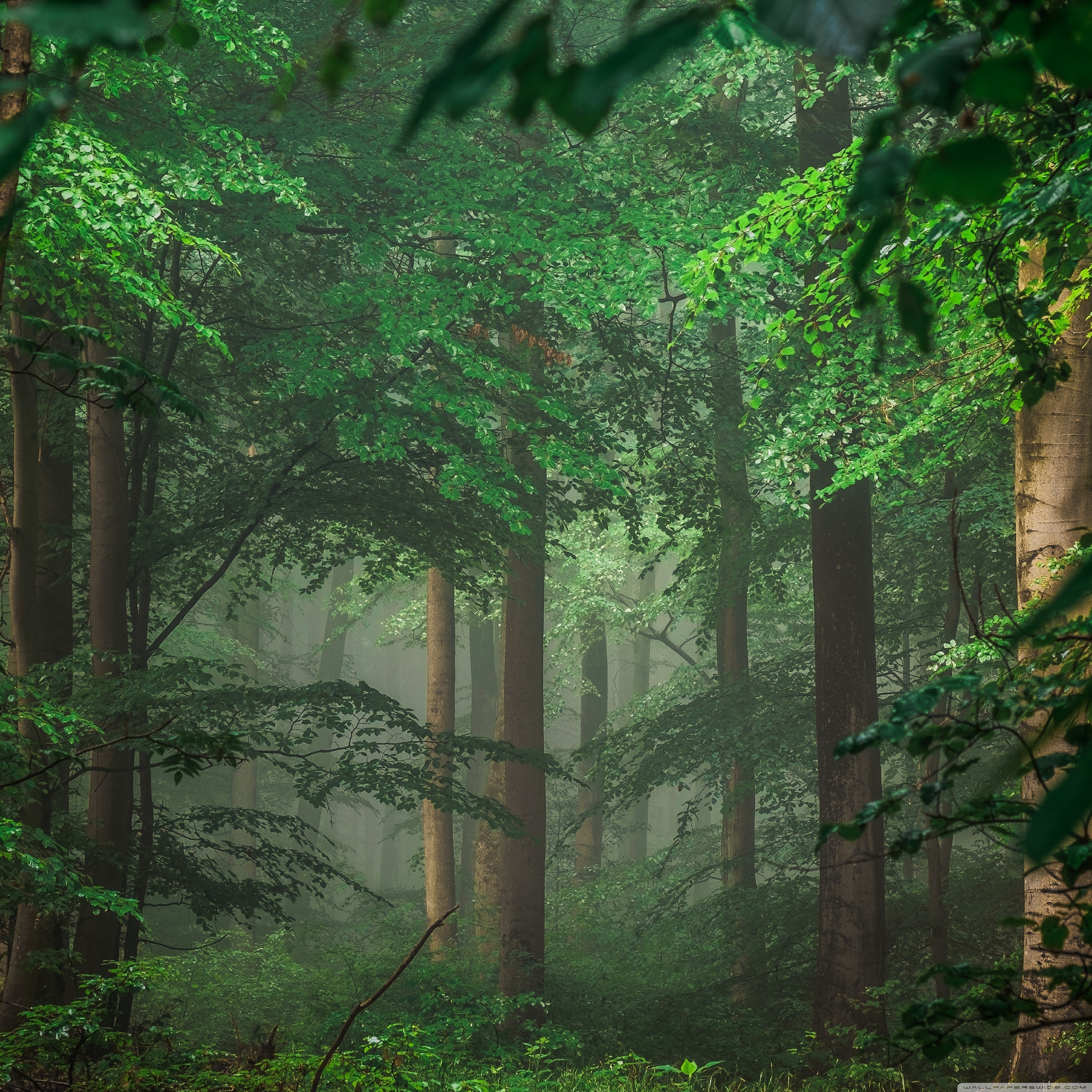 Download Forest after Rain, Green Trees, Mist 4K UHD Wallpaper