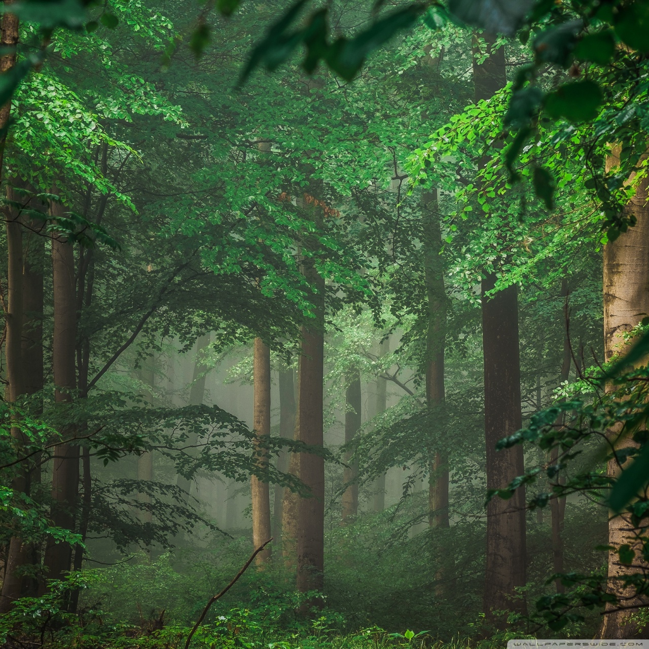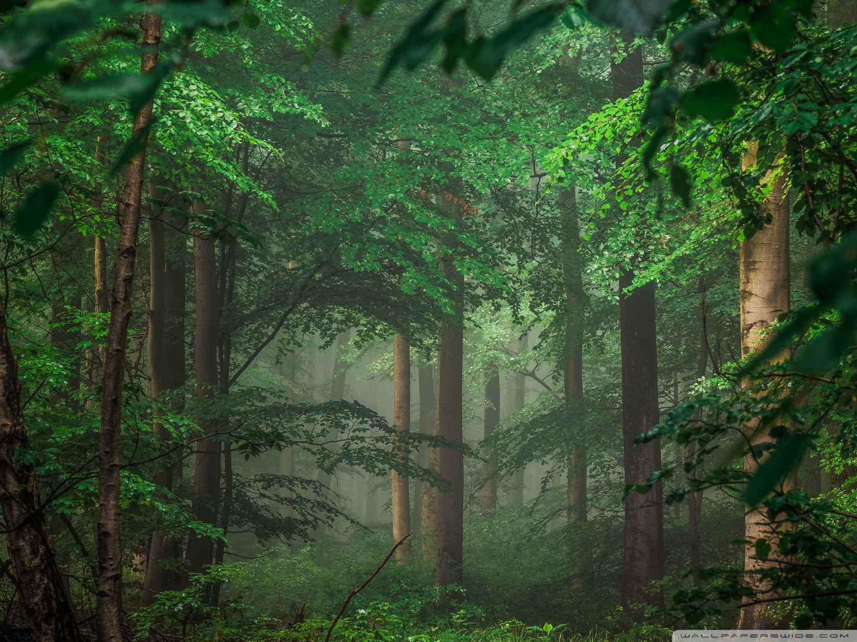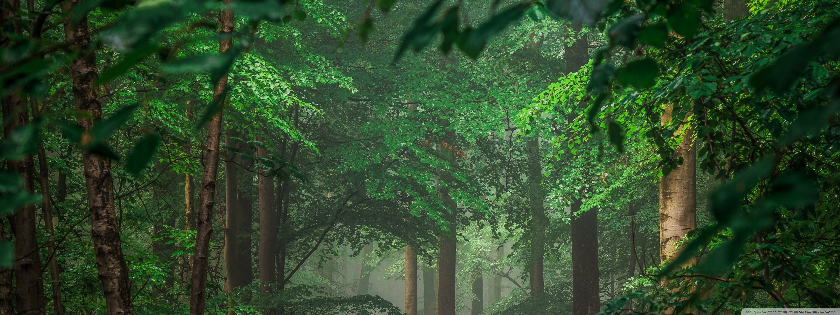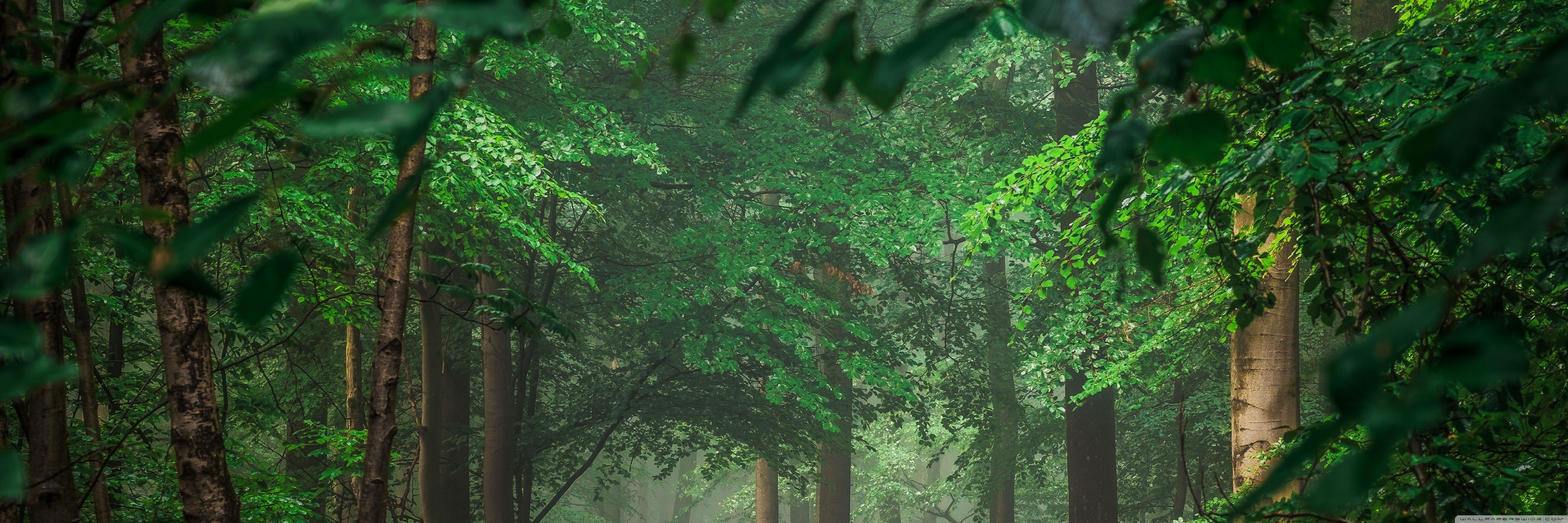 Download Forest after Rain, Green Trees, Mist 4K UHD Wallpaper