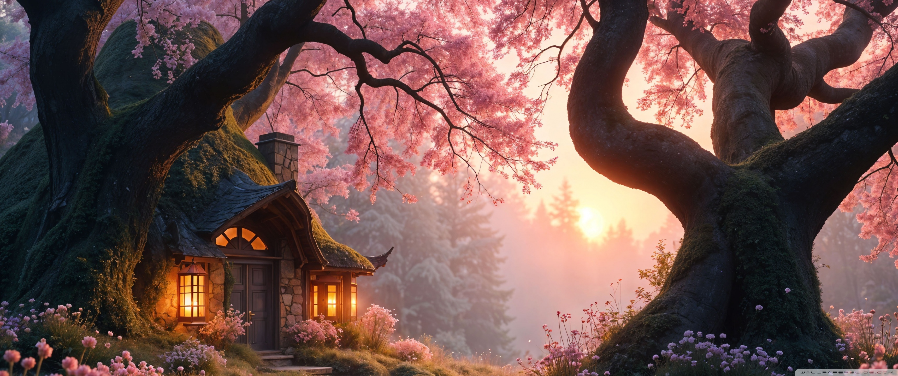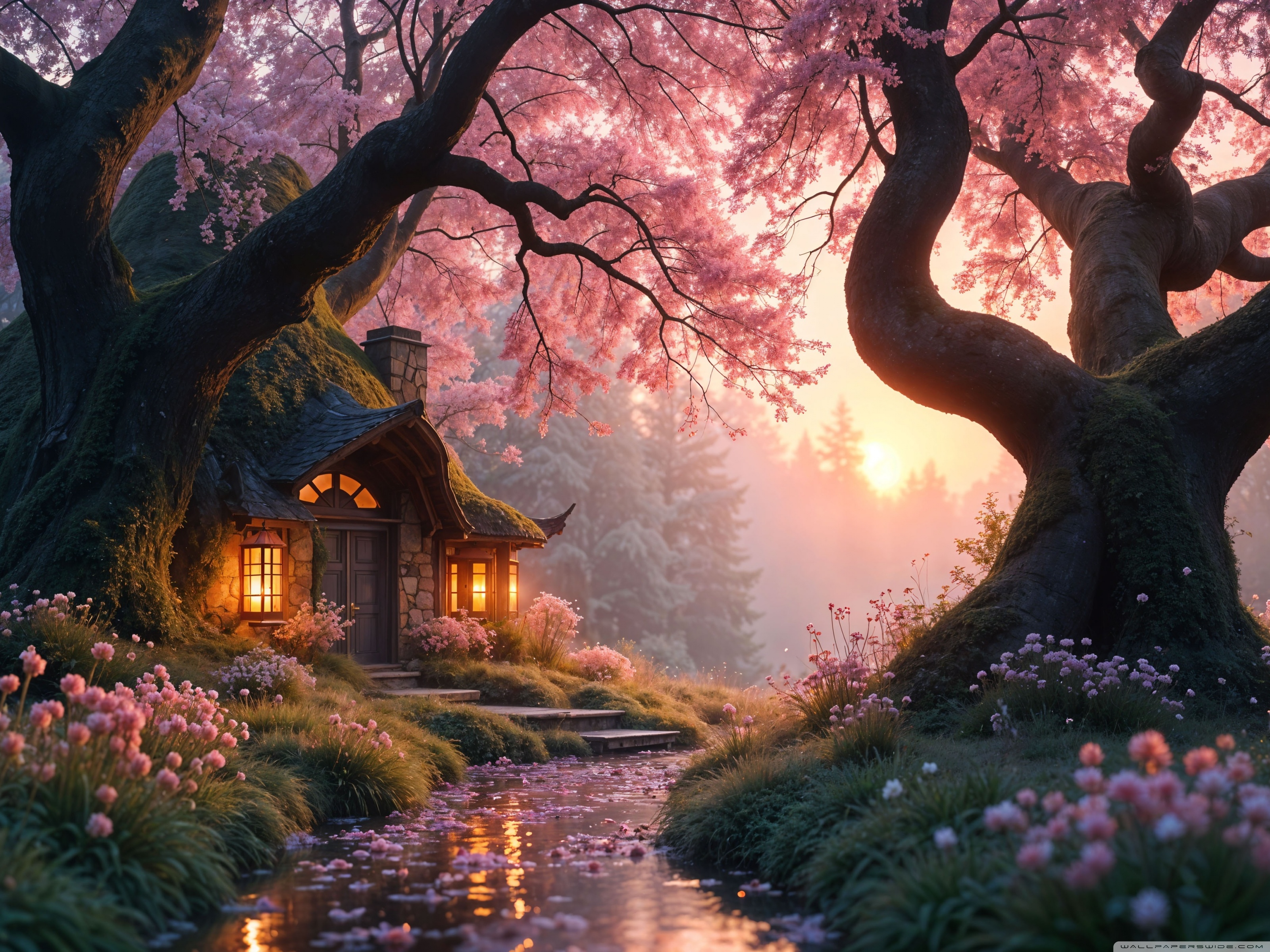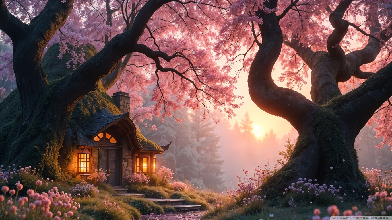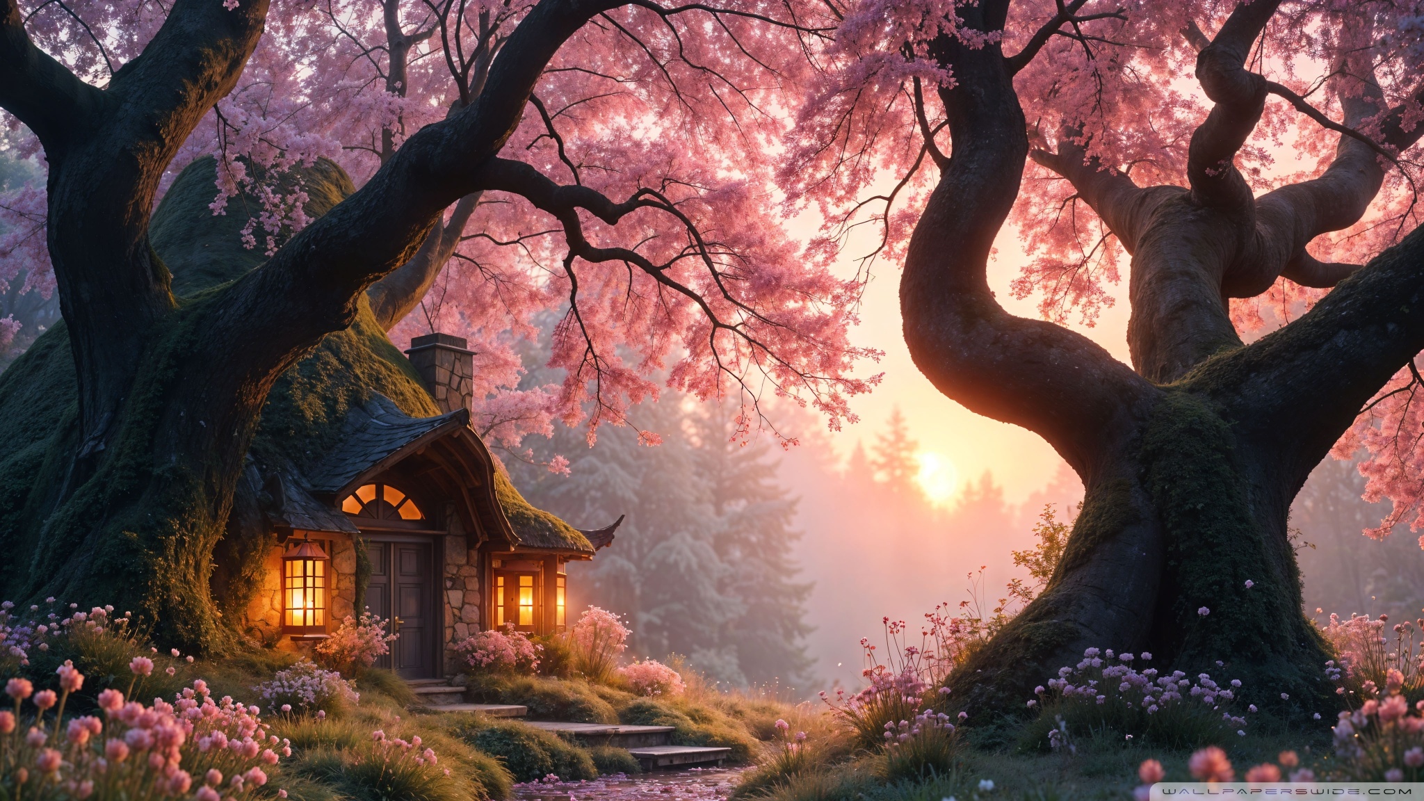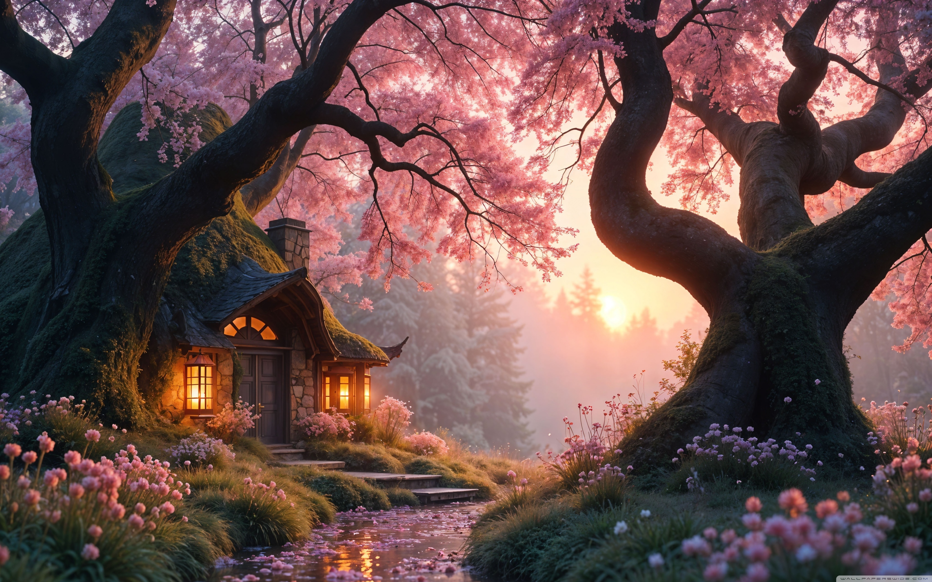 Download Forest Hut, Spring Scene, Artistic 4K UHD Wallpaper