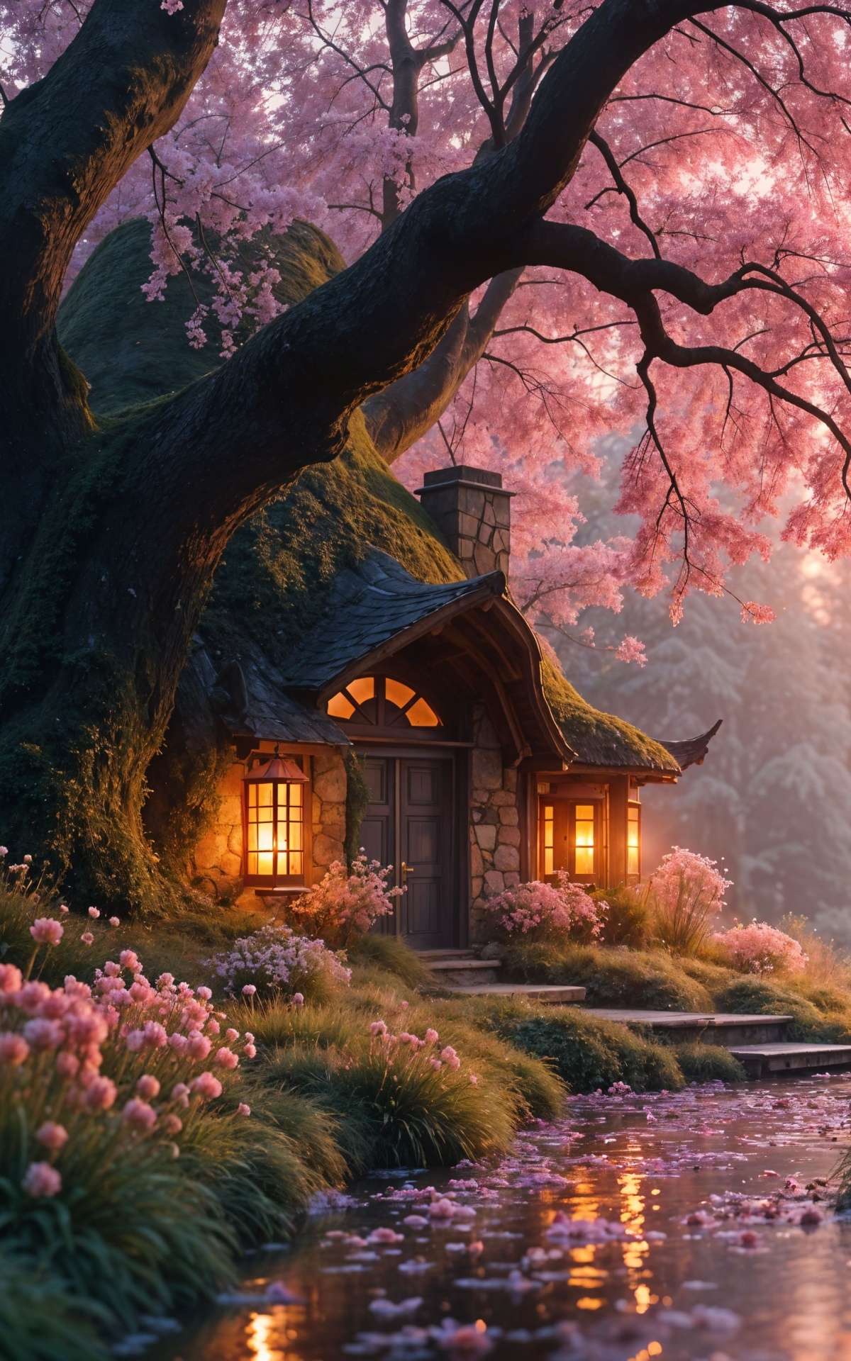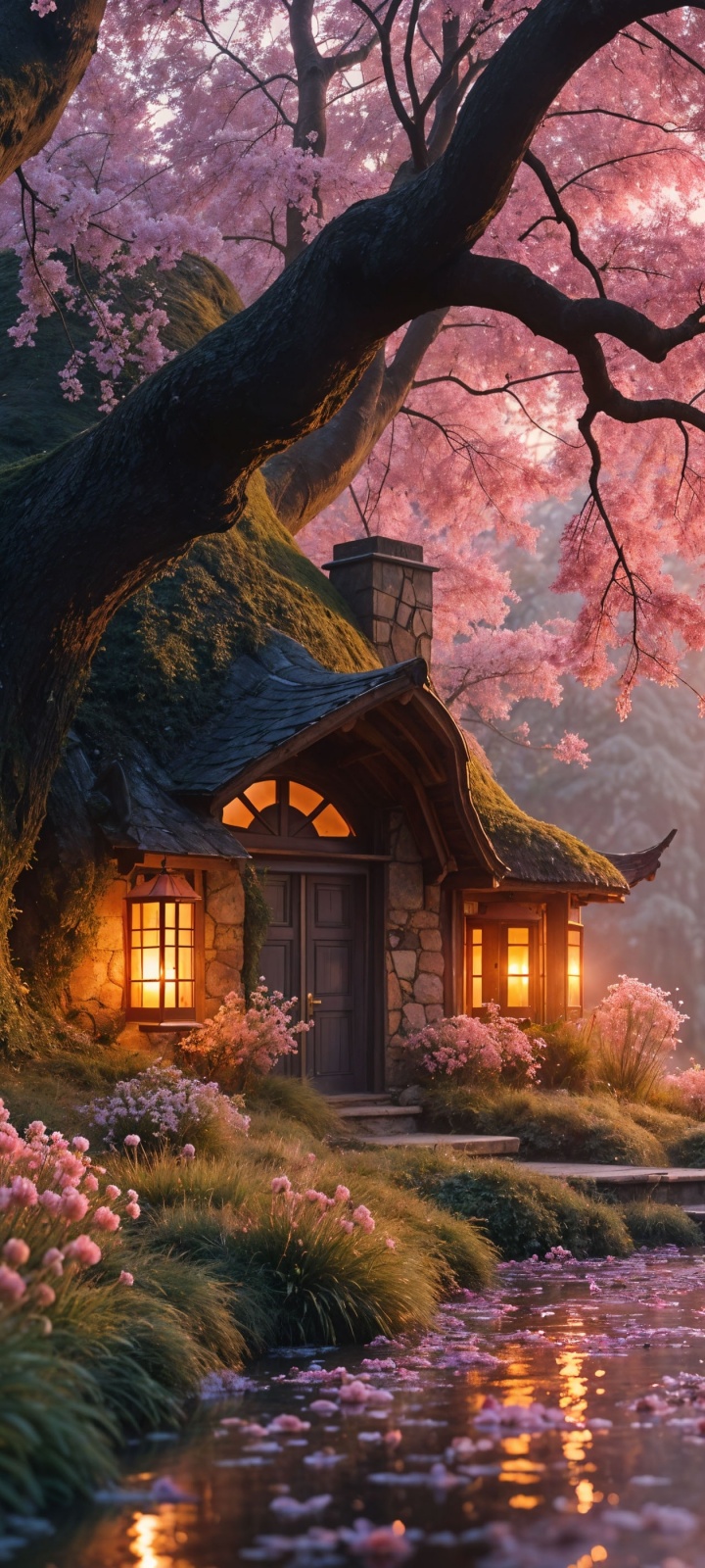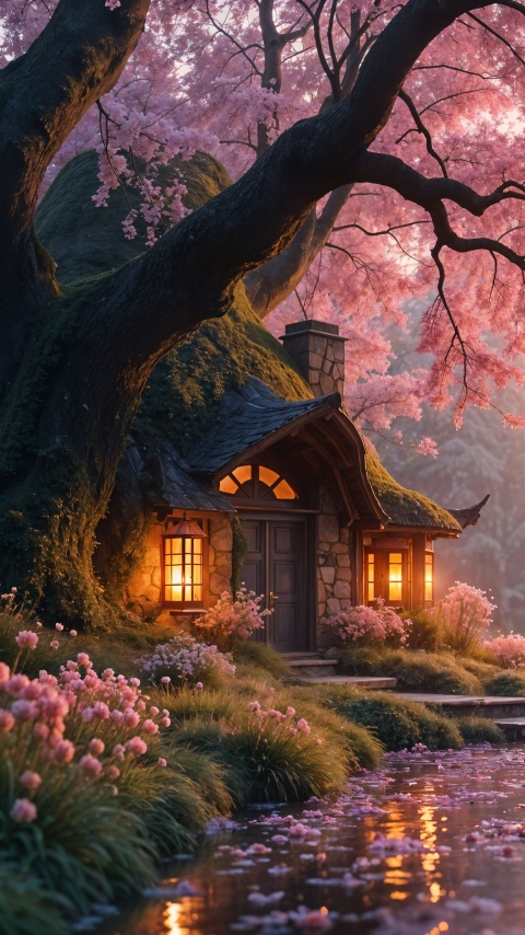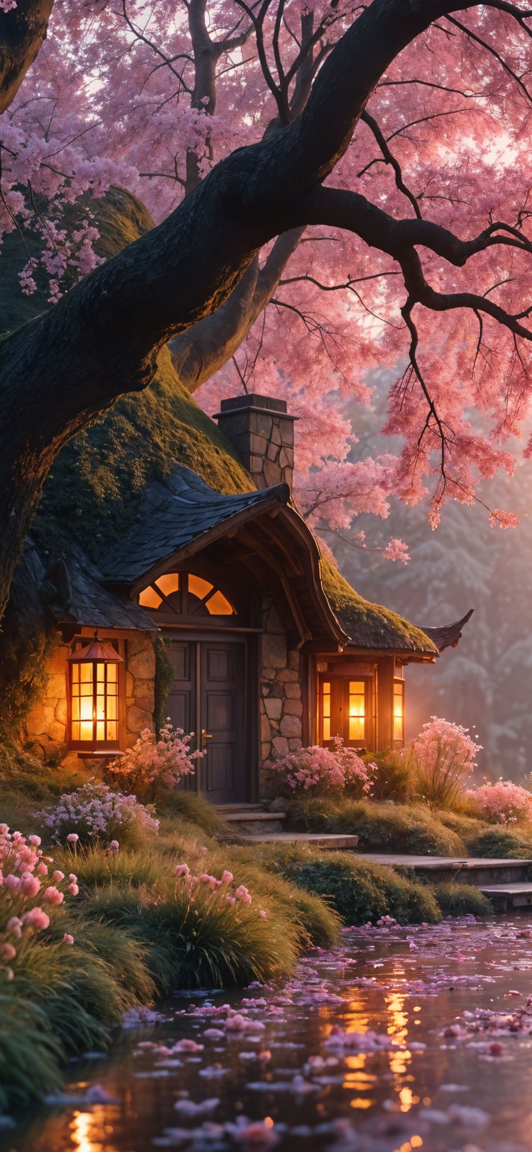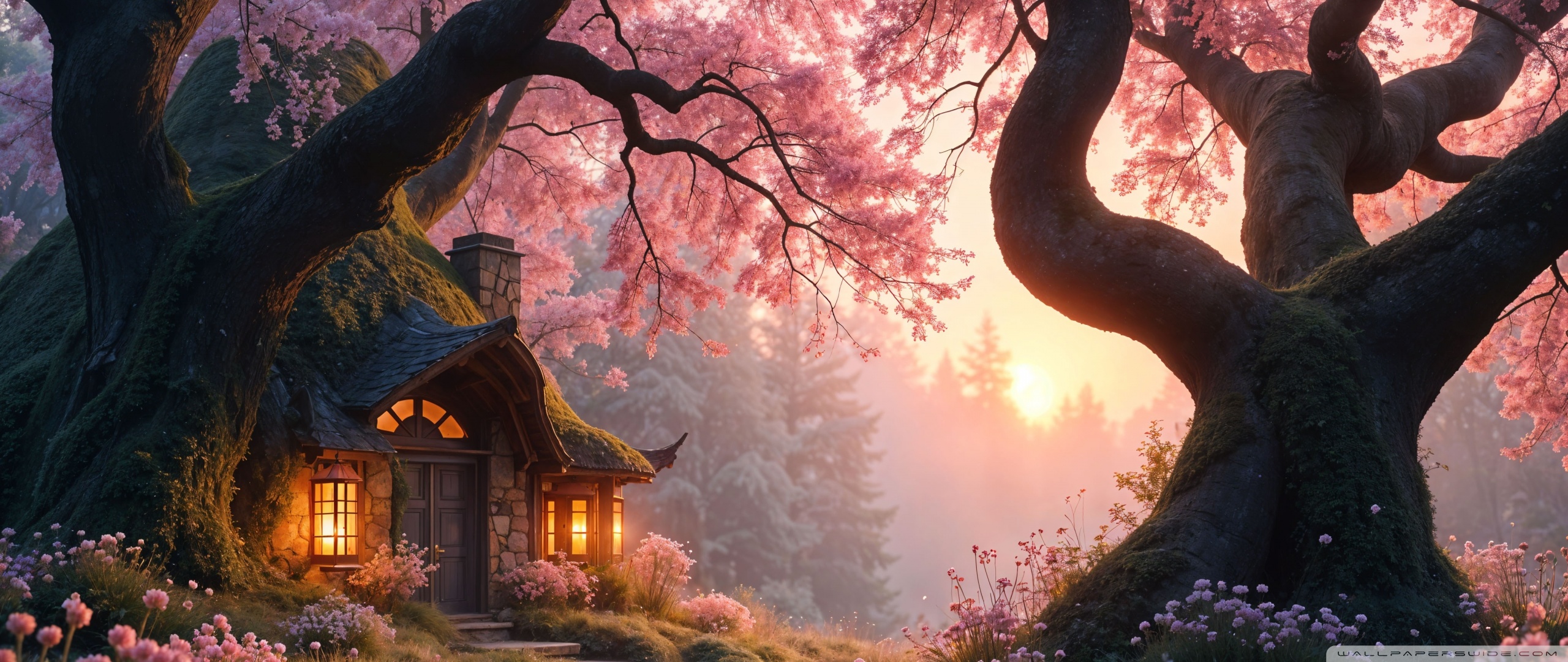 Download Forest Hut, Spring Scene, Artistic 4K UHD Wallpaper