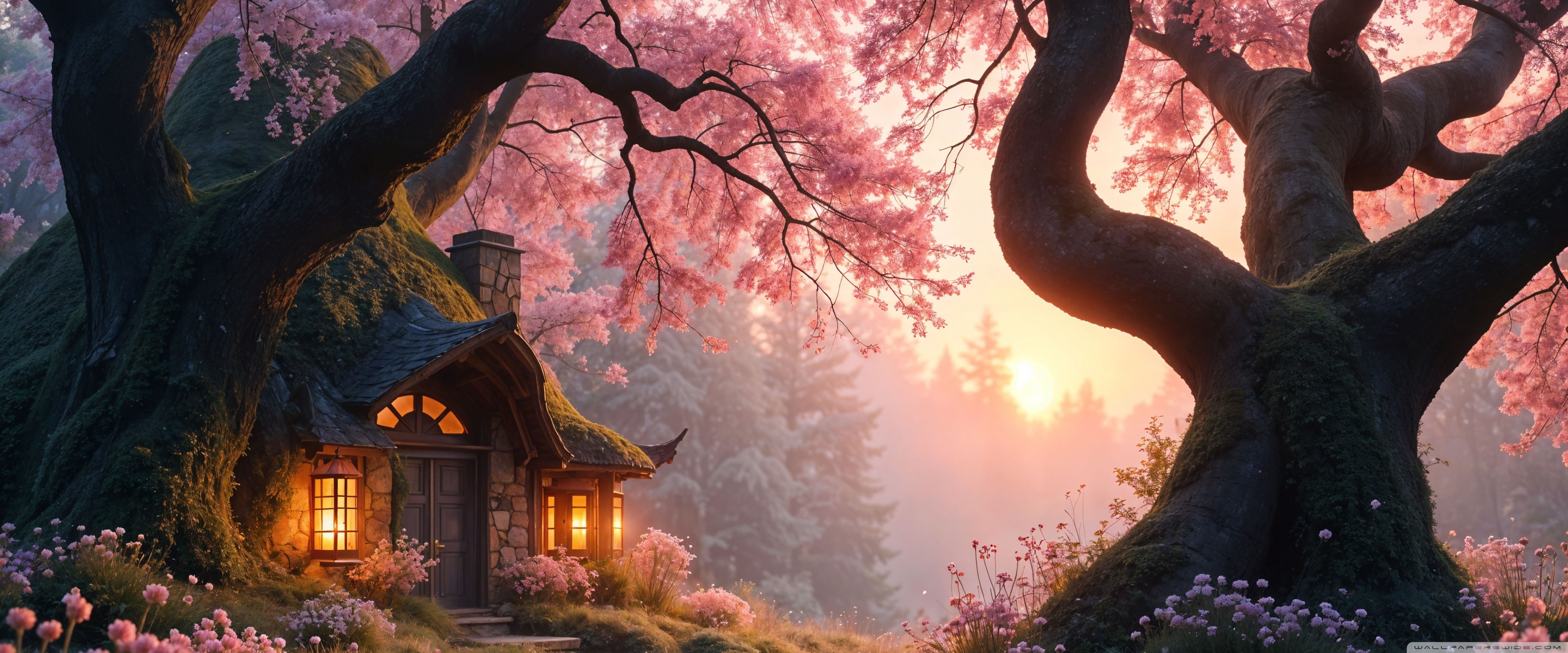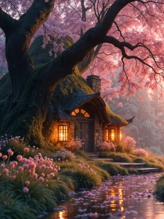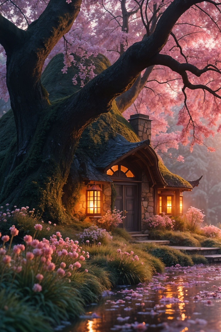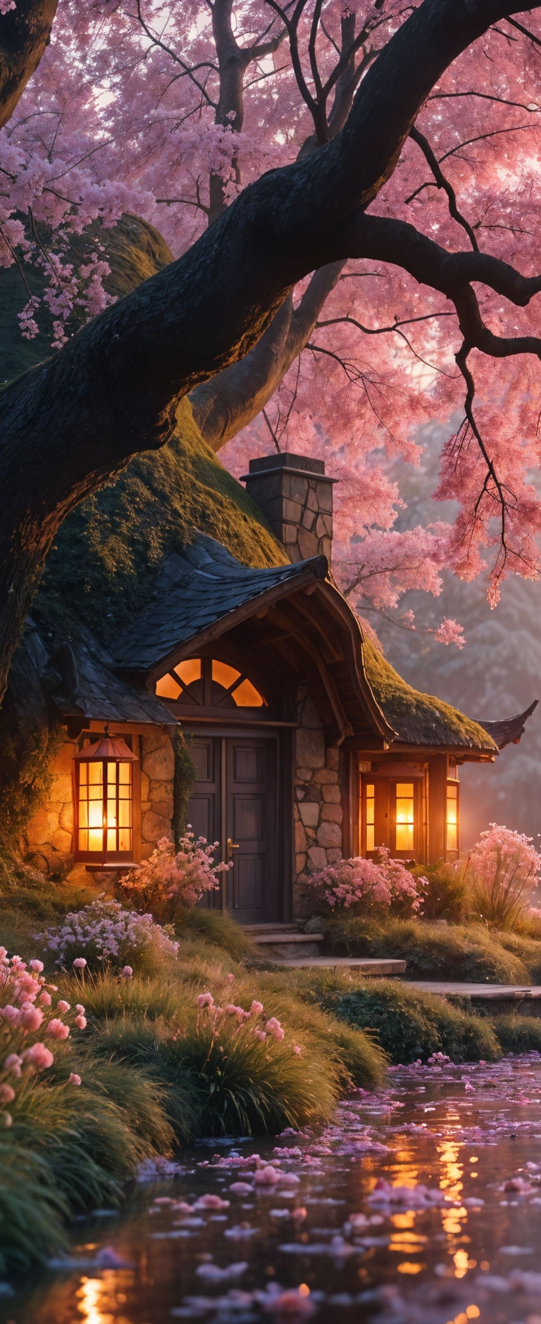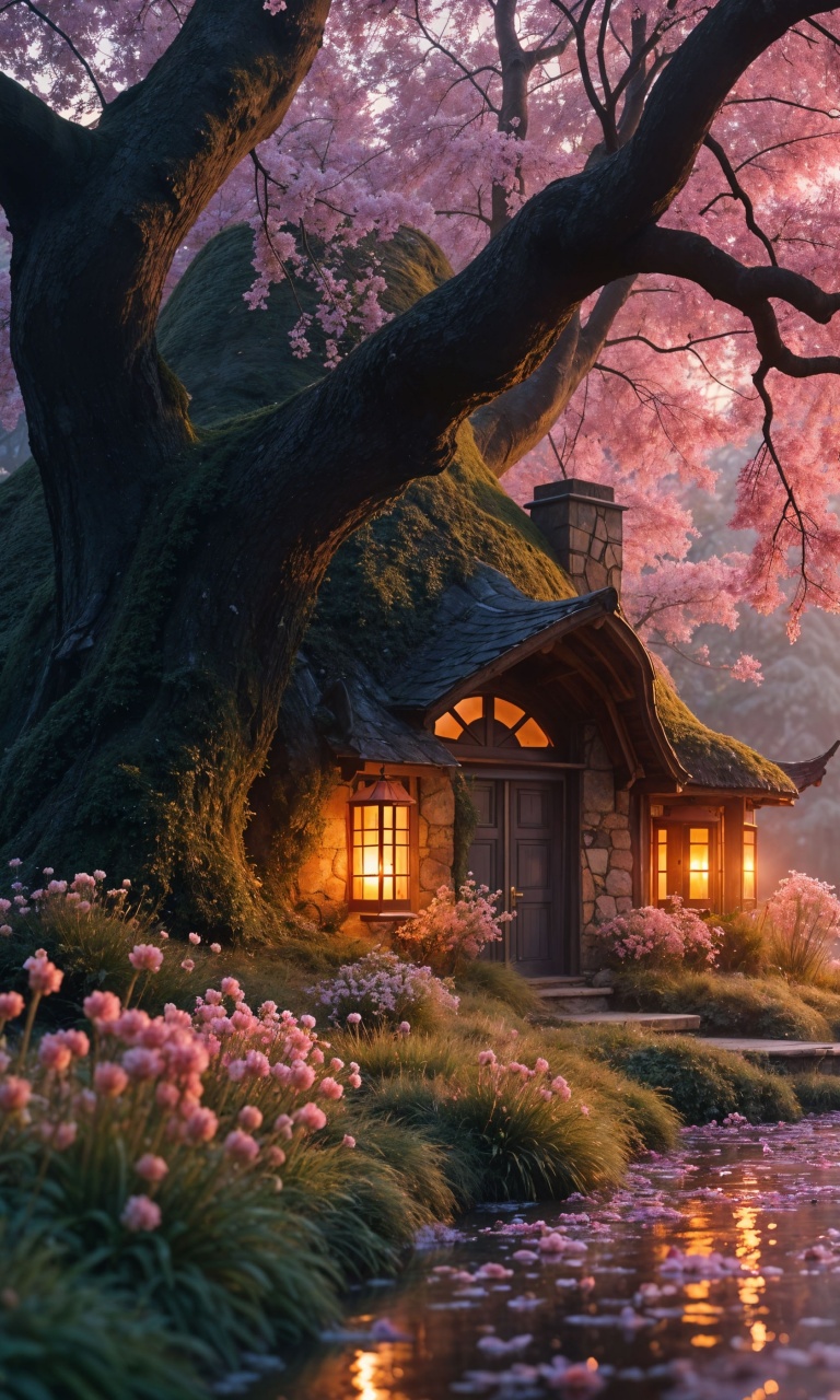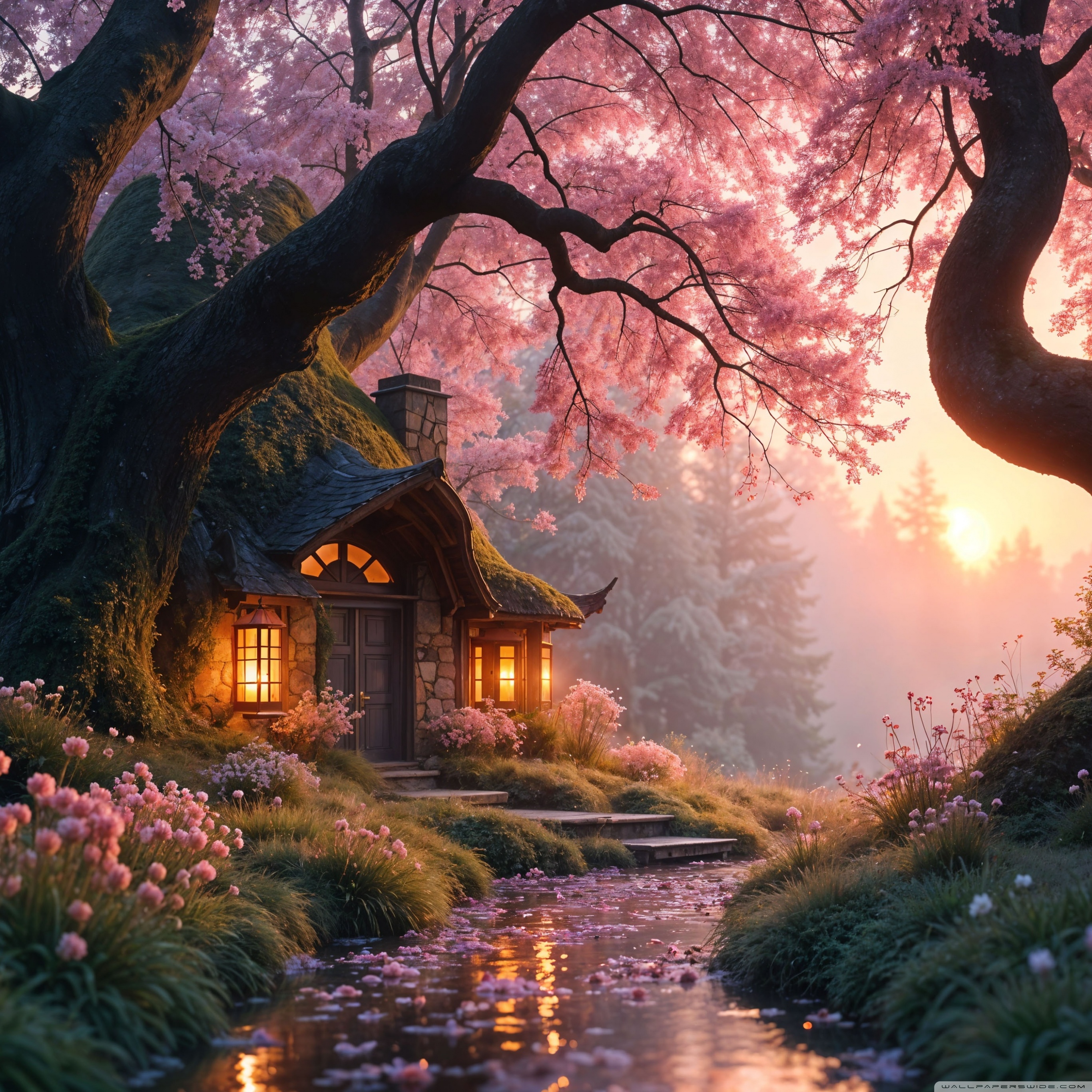 Download Forest Hut, Spring Scene, Artistic 4K UHD Wallpaper