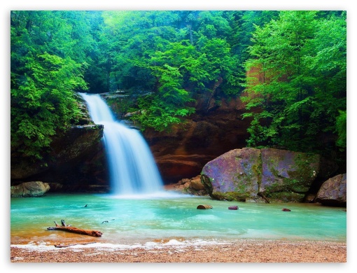 Download forest tree waterfall rock 4K UHD Wallpaper