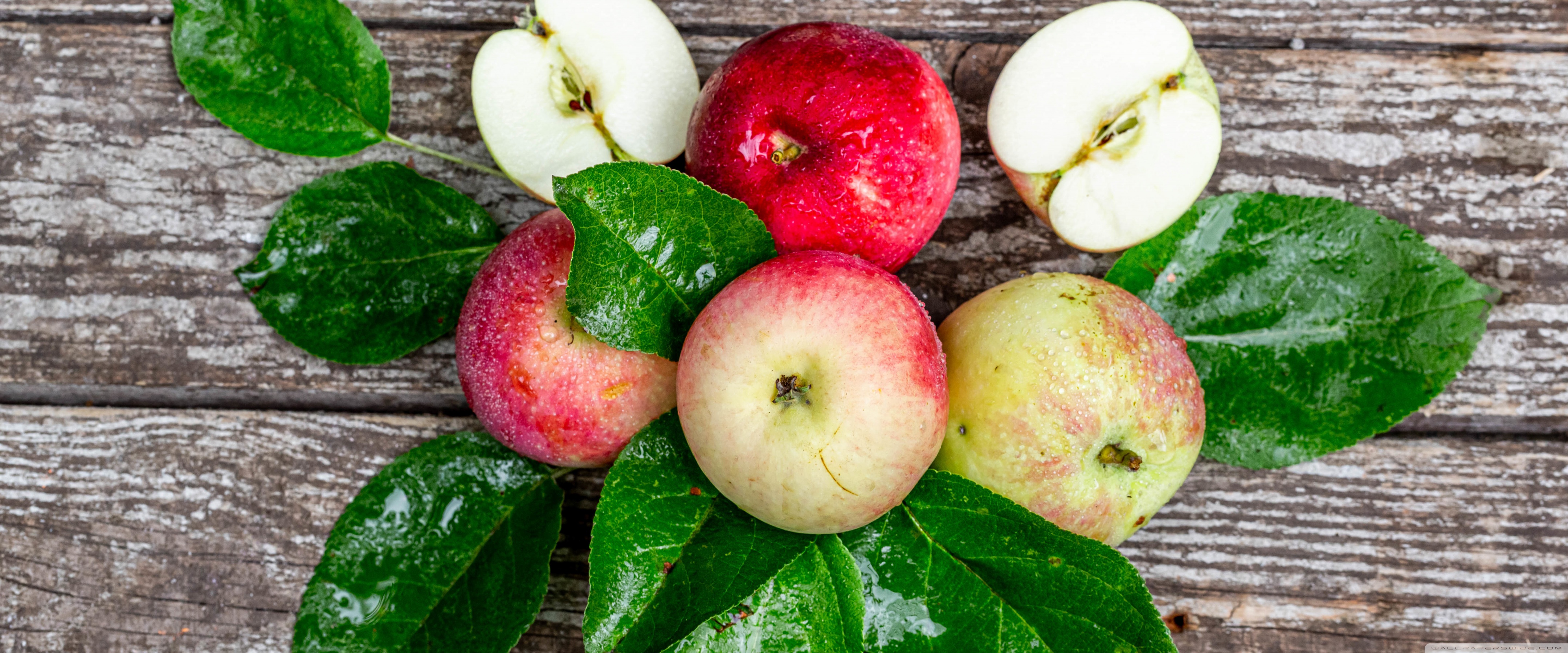 Download Fresh Apples, Leaves, Wooden 4K UHD Wallpaper