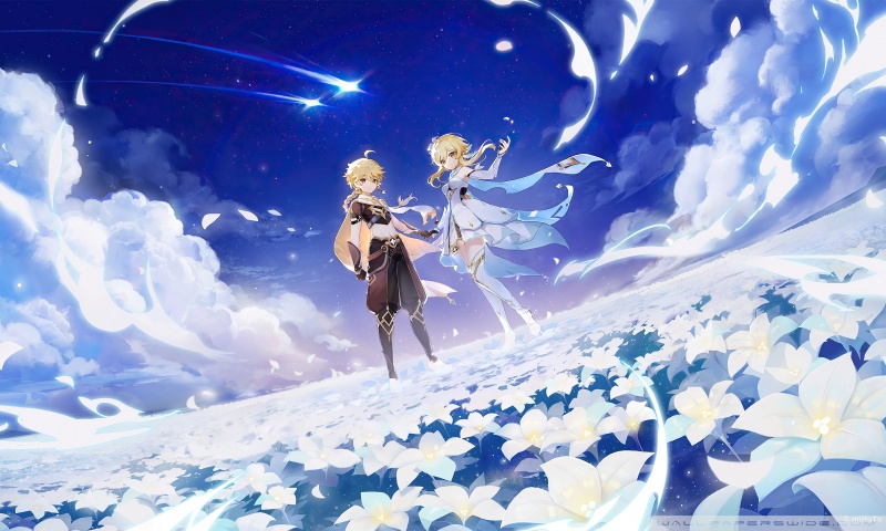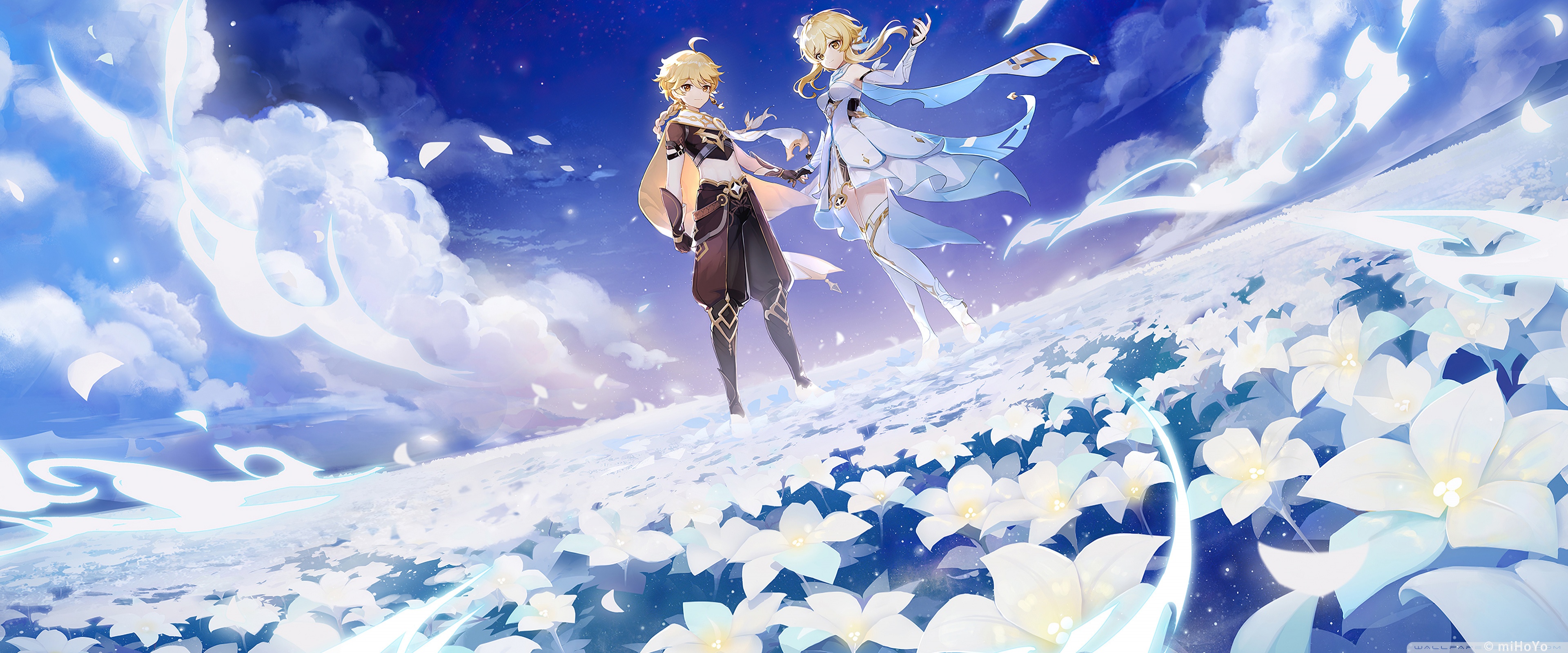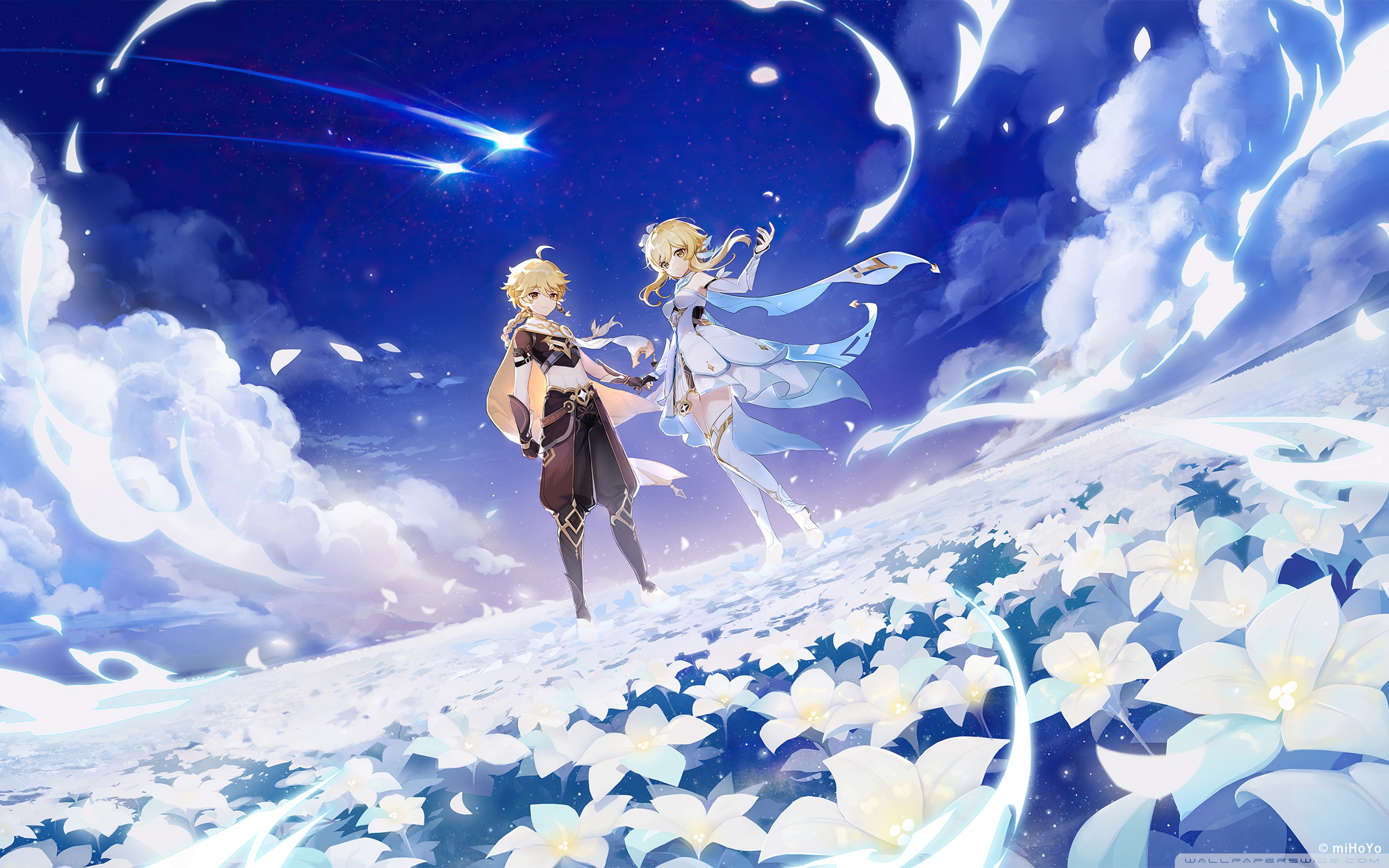 Download Genshin Impact Travelers Aether and Lumine 4K UHD Wallpaper