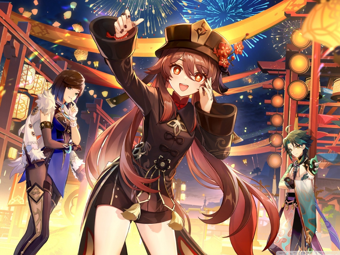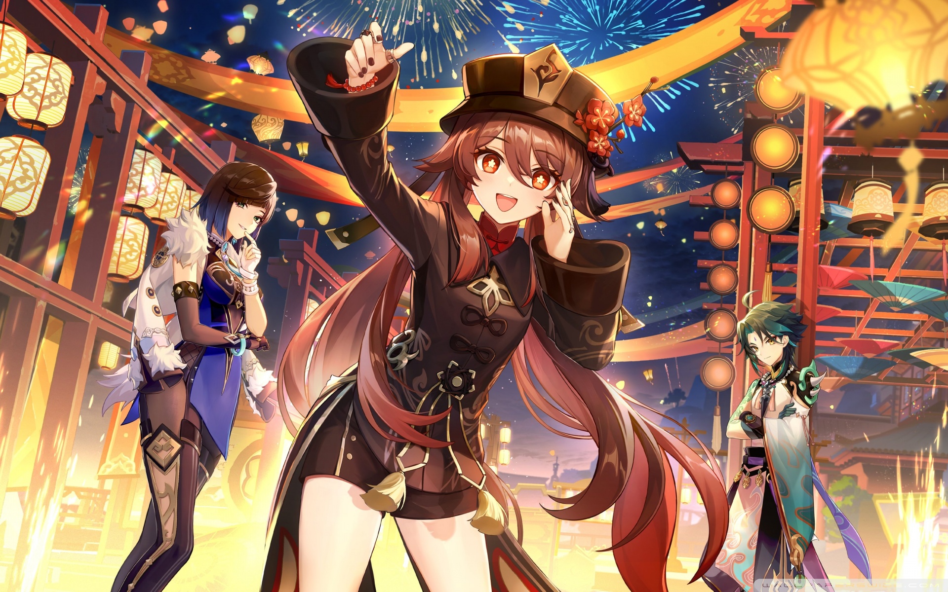 Download Genshin Impact Version 3, Lantern Rite, Hu Tao 4K UHD Wallpaper