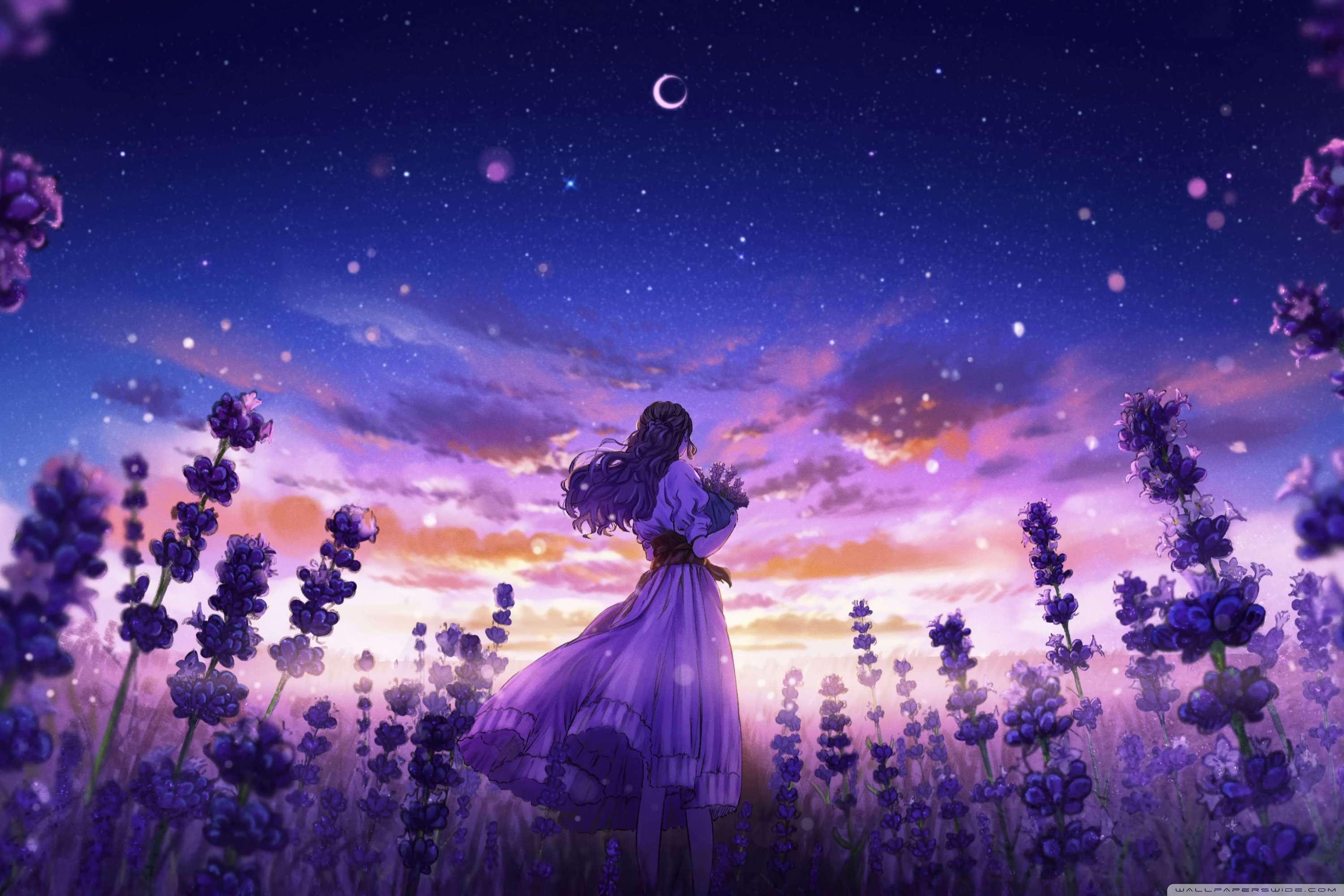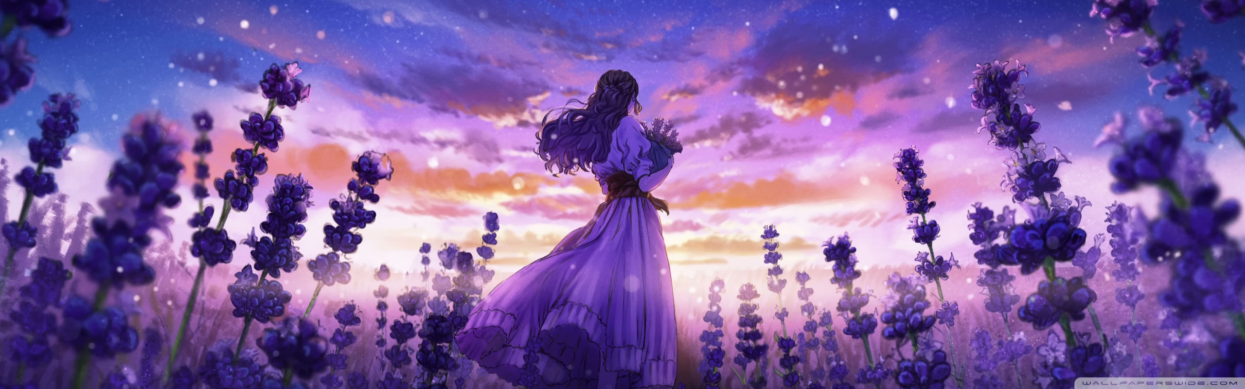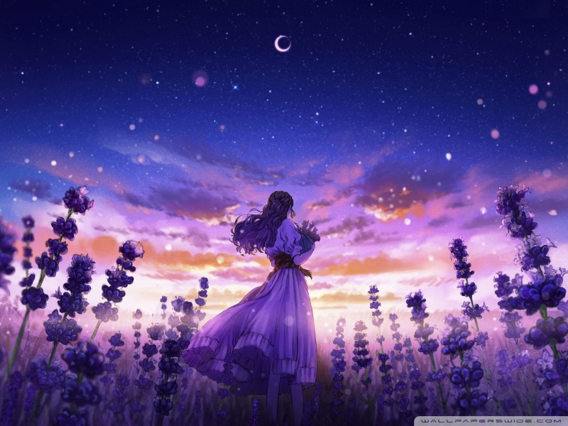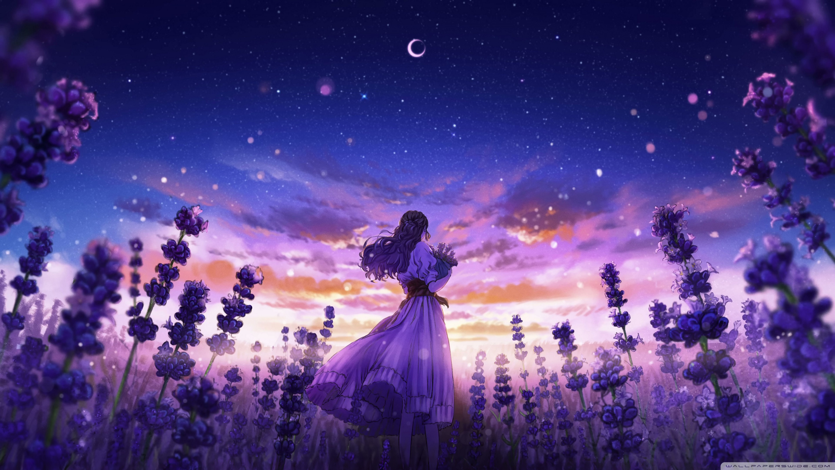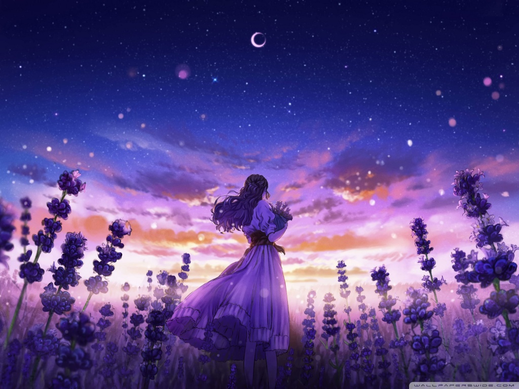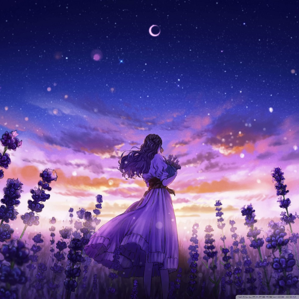 Download Girl Among the Purple Blossoms 4K UHD Wallpaper