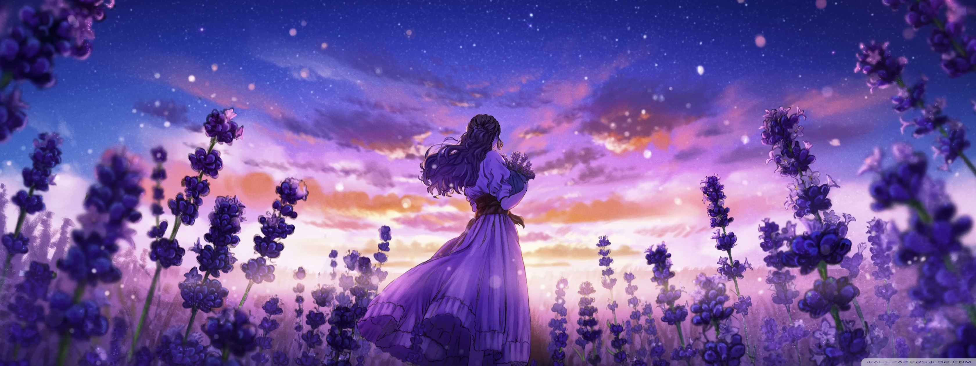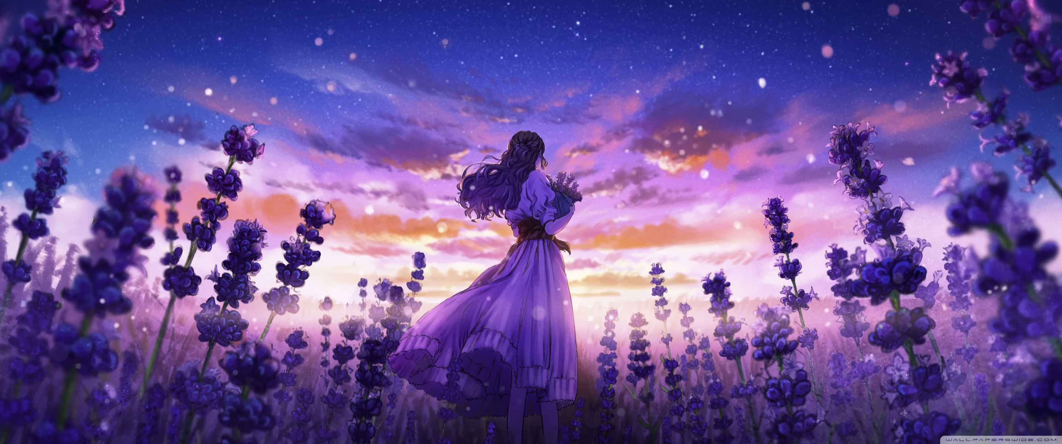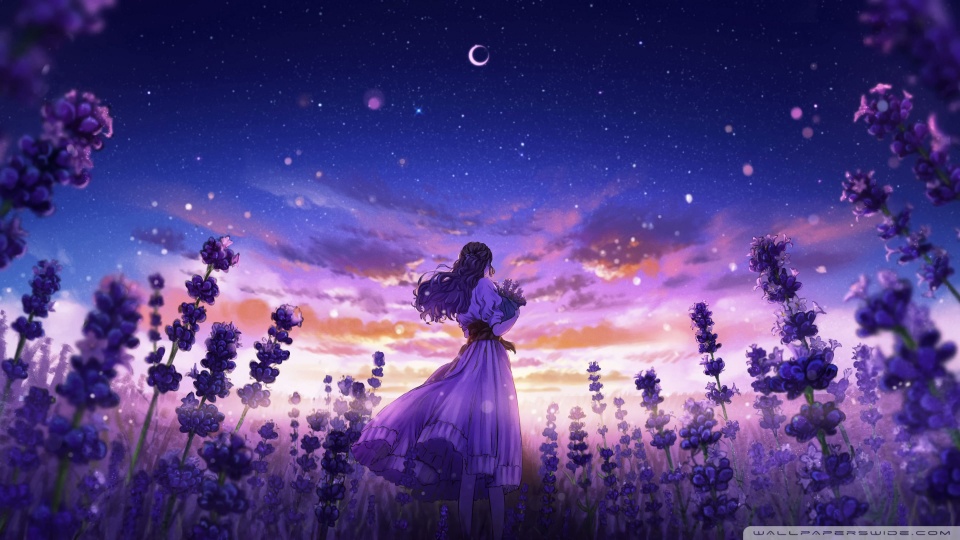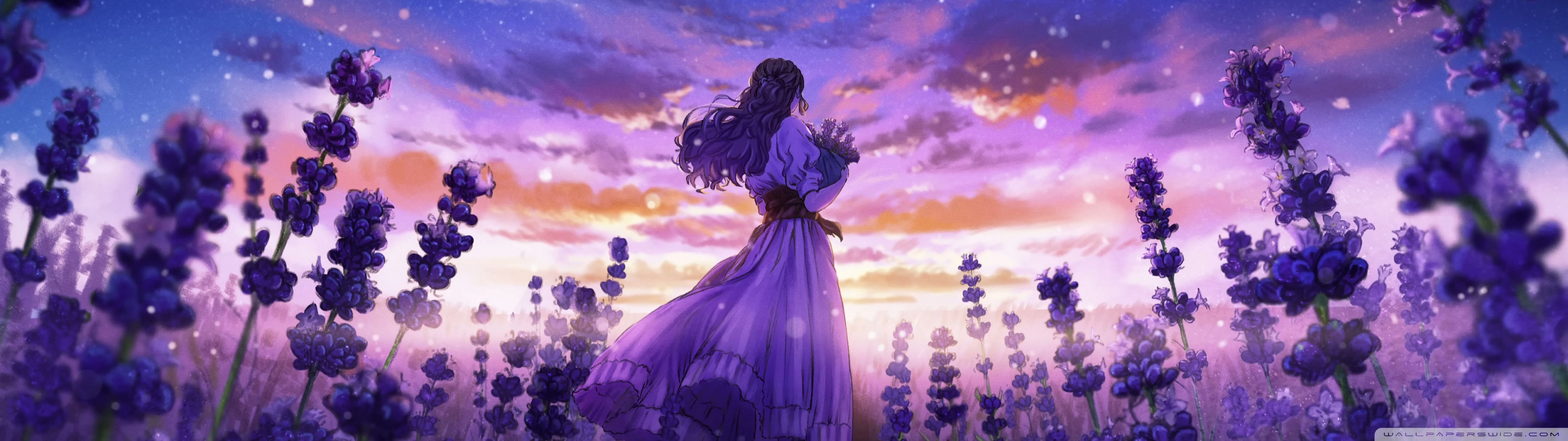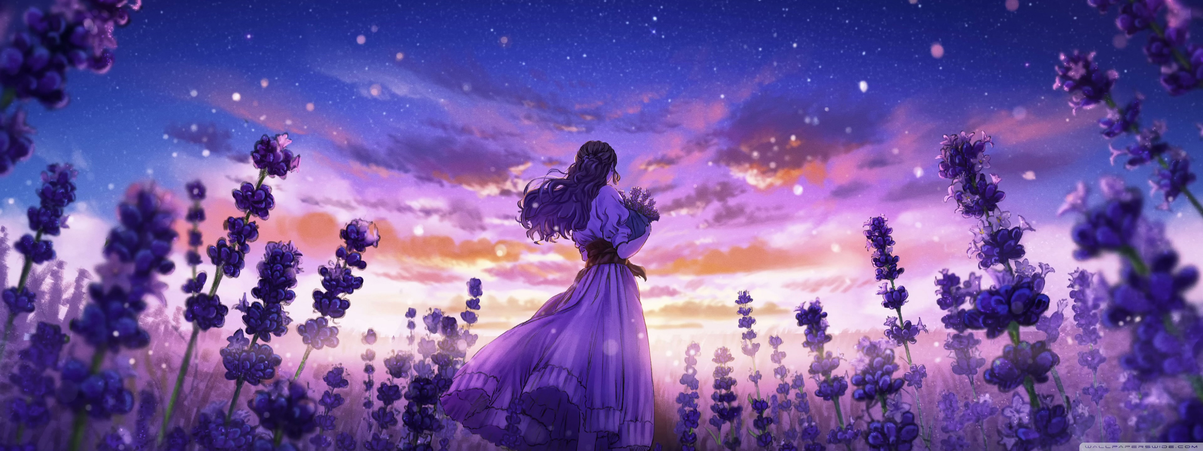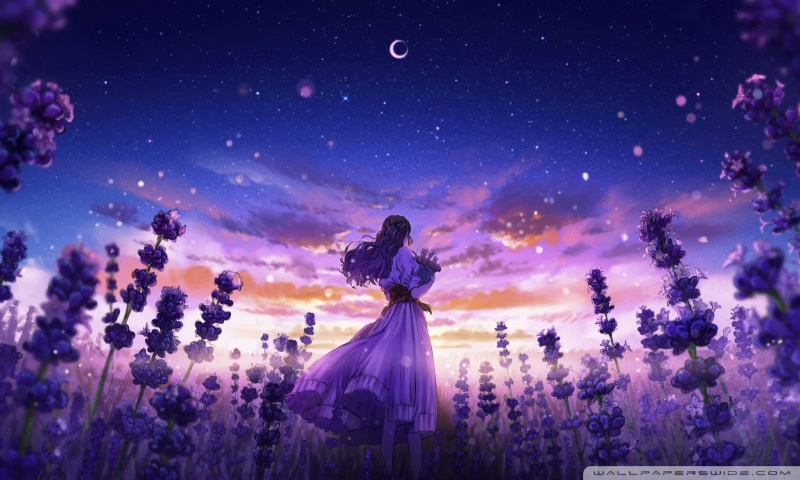 Download Girl Among the Purple Blossoms 4K UHD Wallpaper