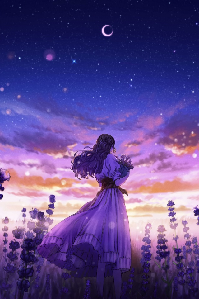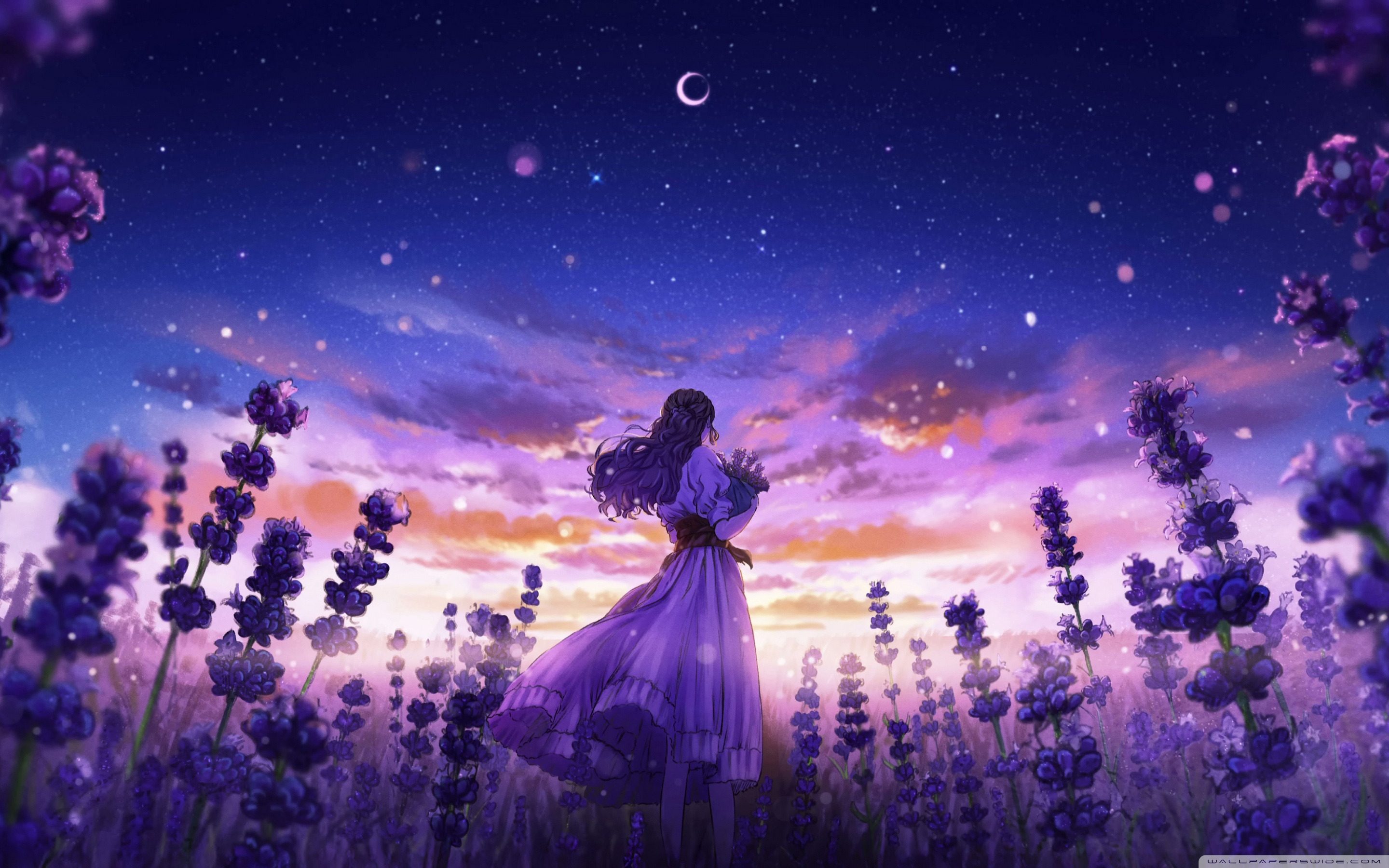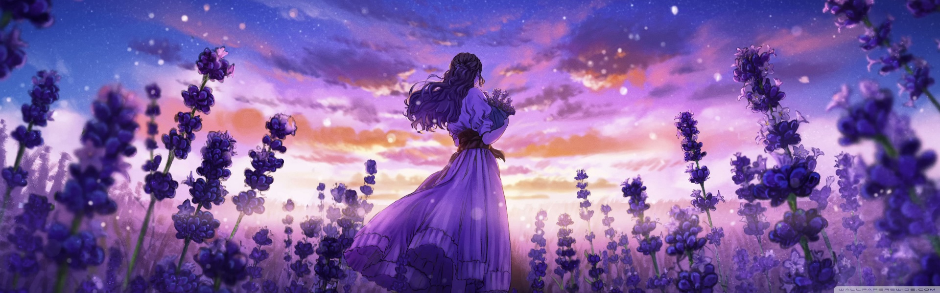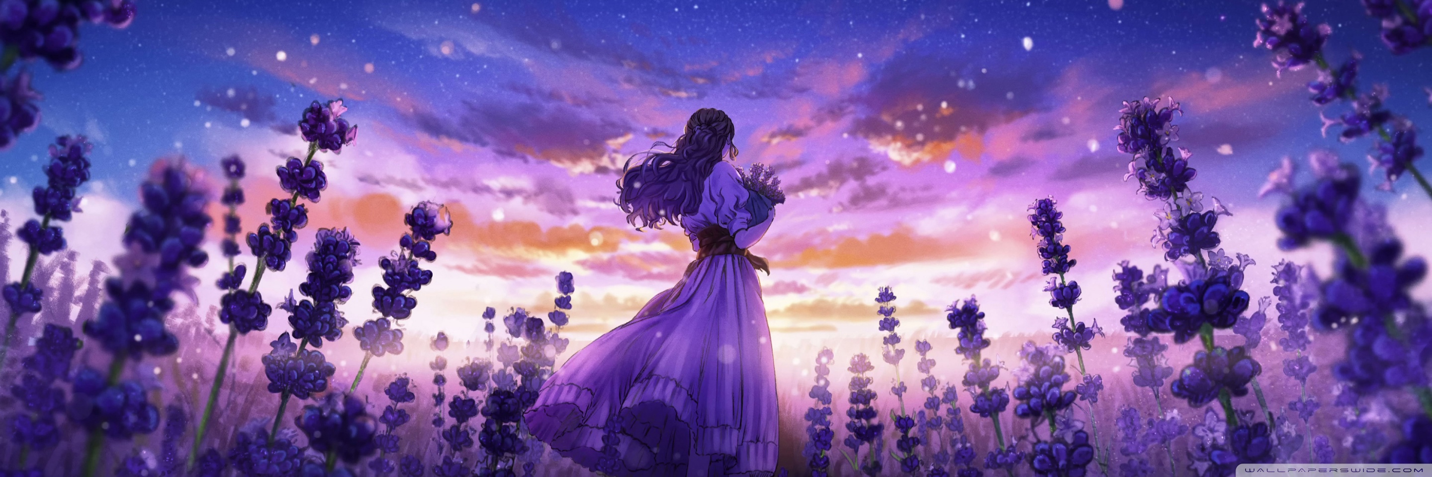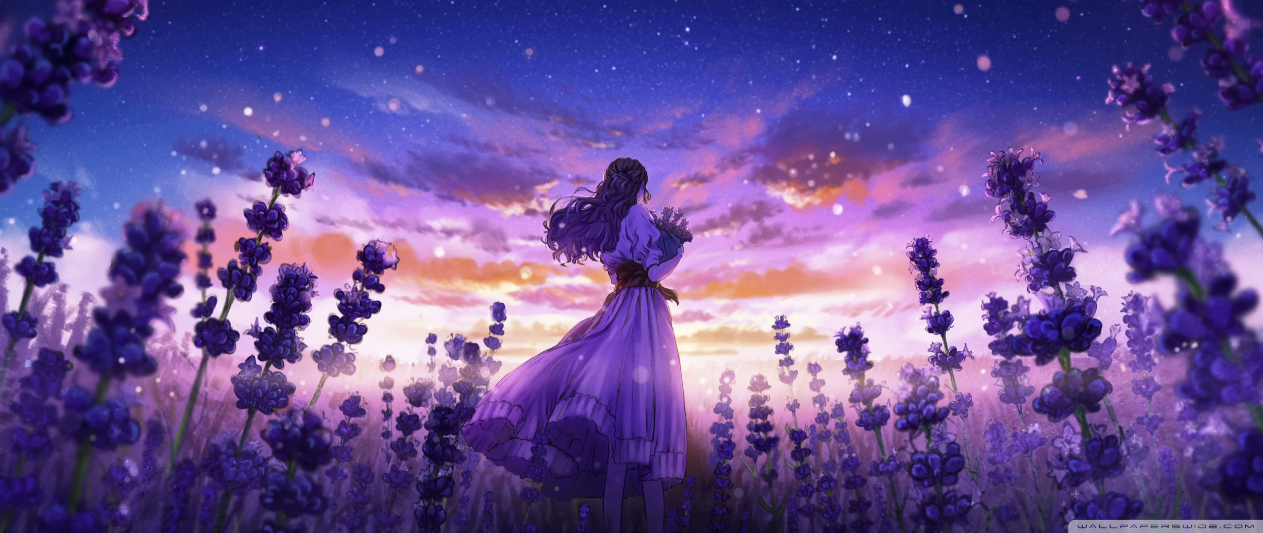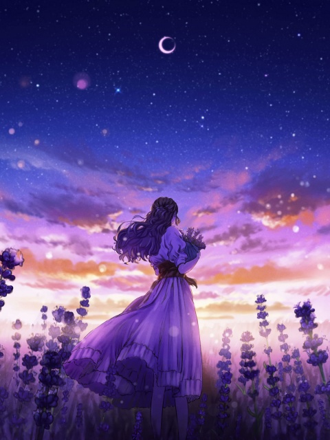 Download Girl Among the Purple Blossoms 4K UHD Wallpaper