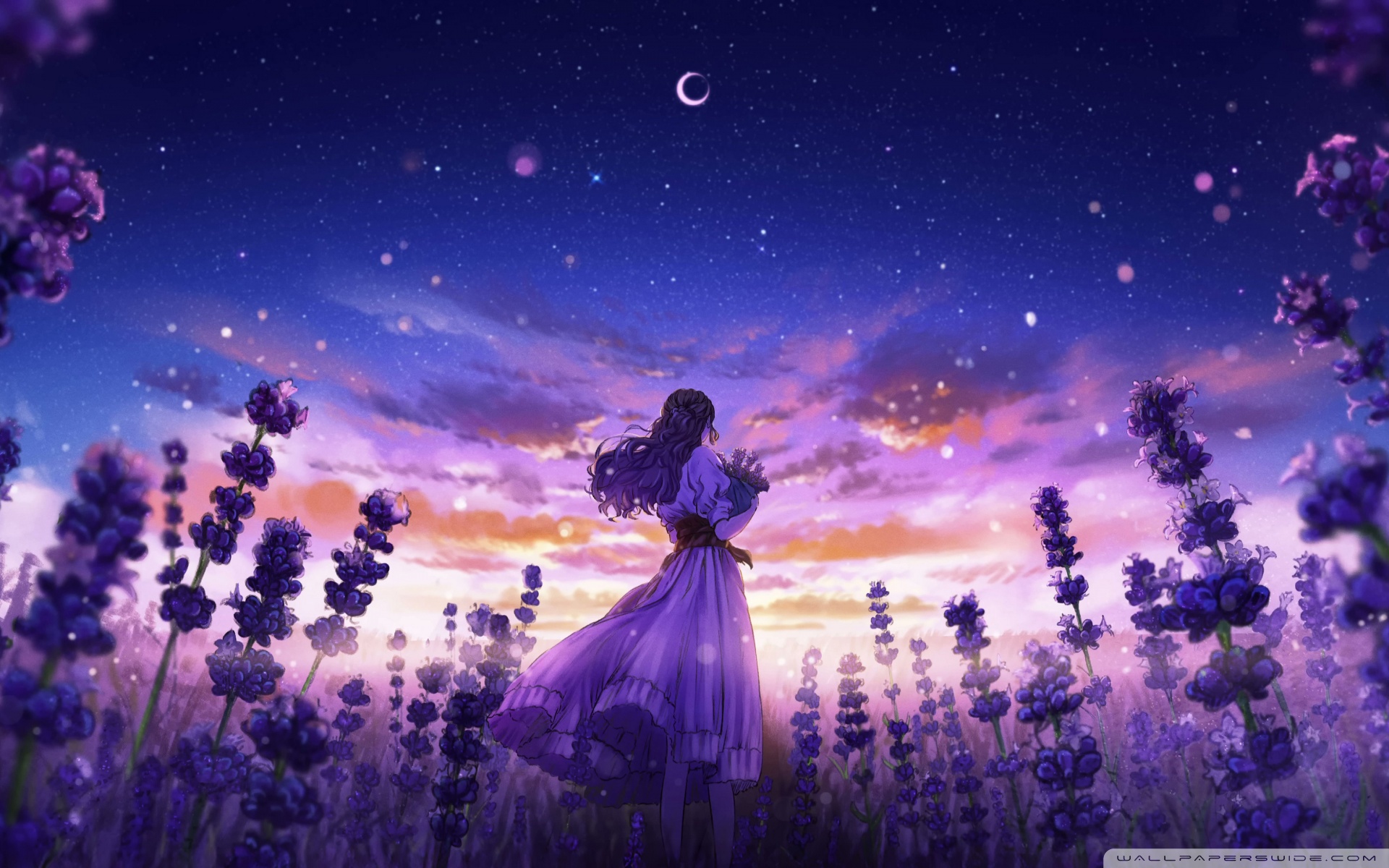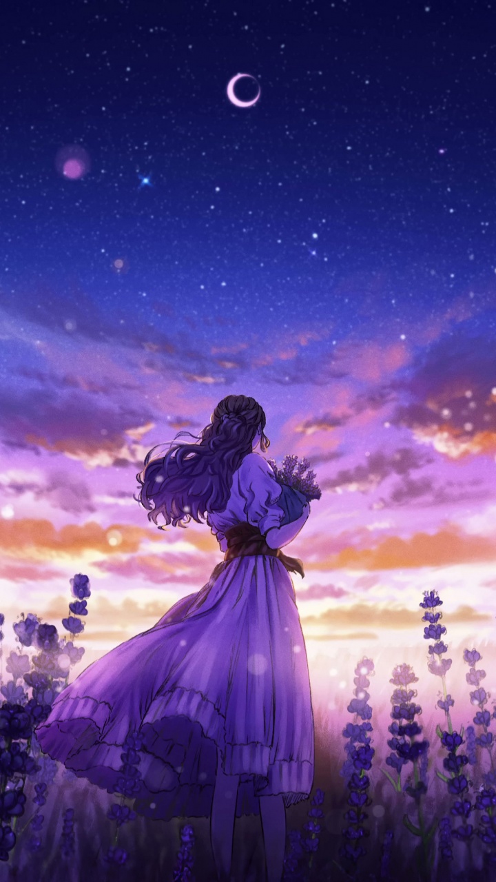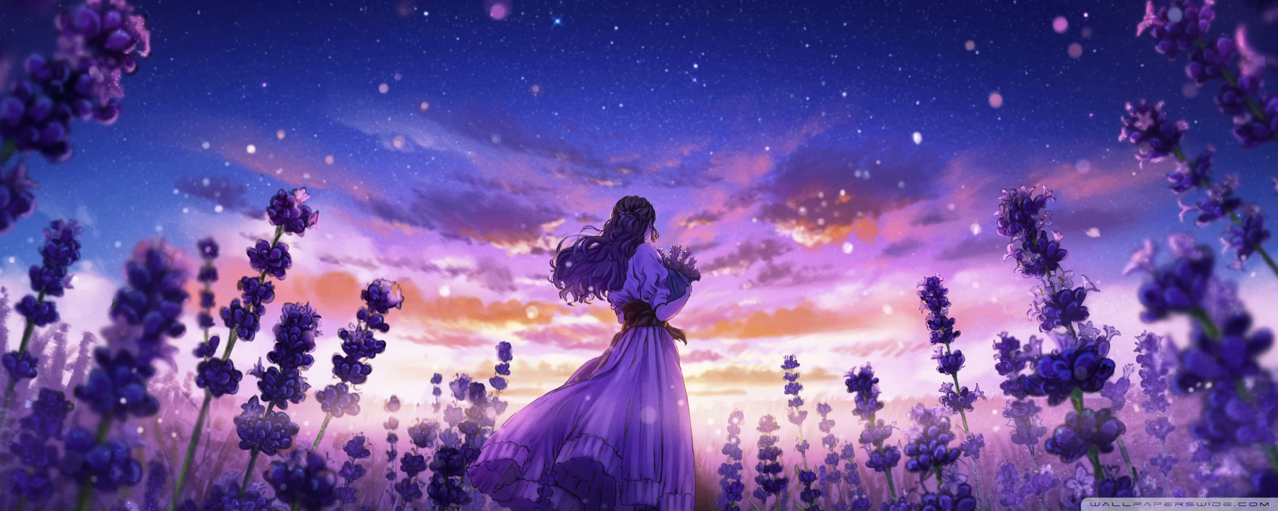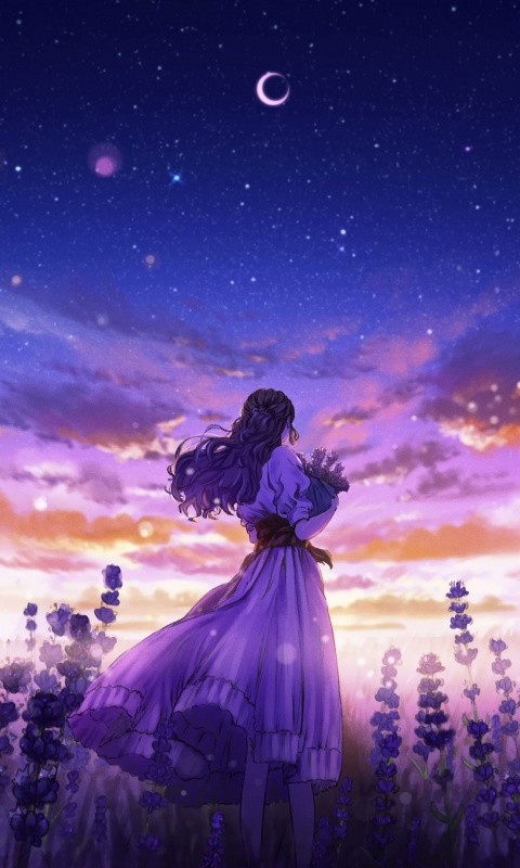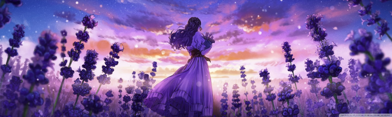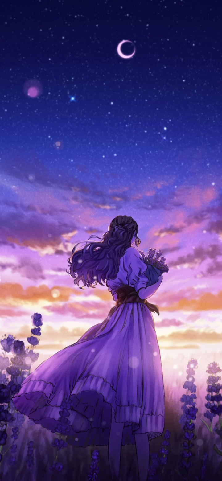 Download Girl Among the Purple Blossoms 4K UHD Wallpaper