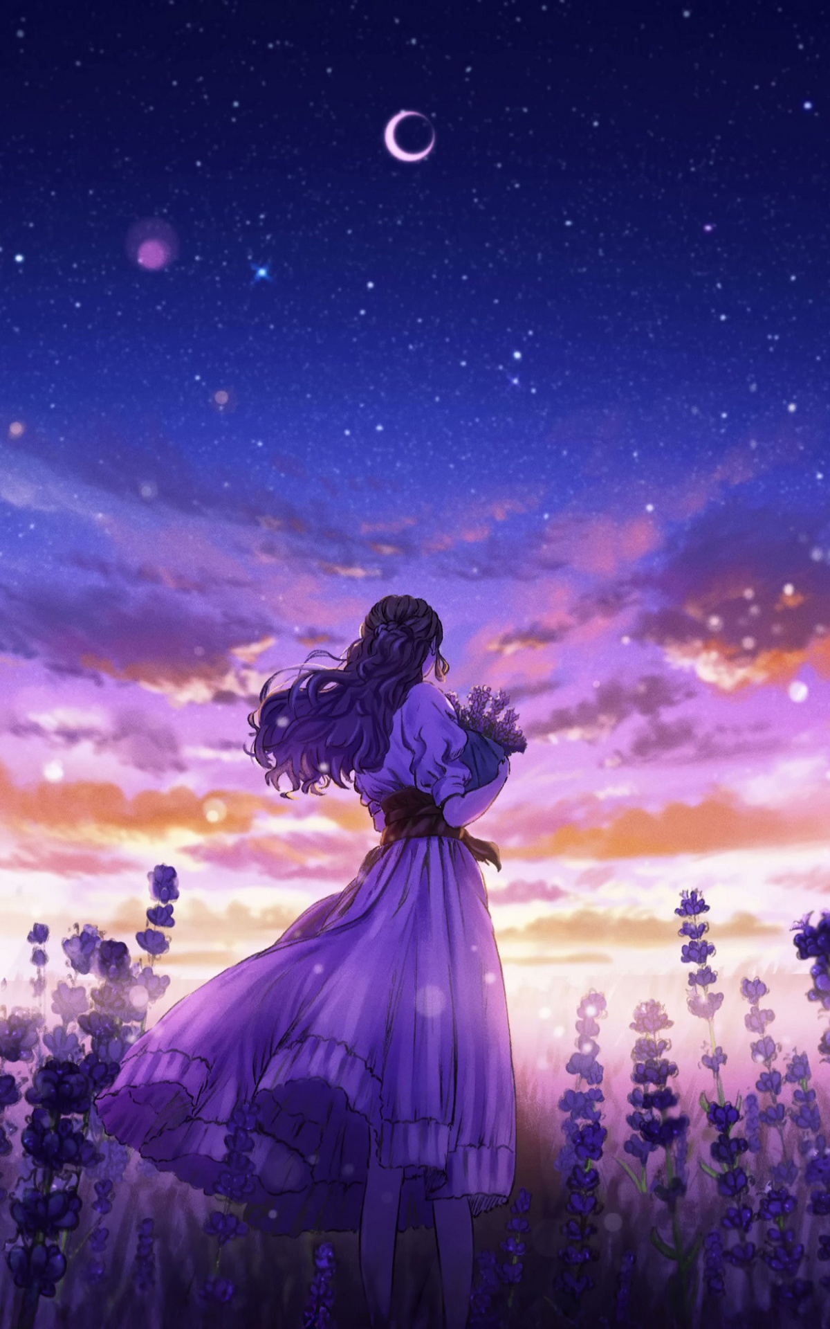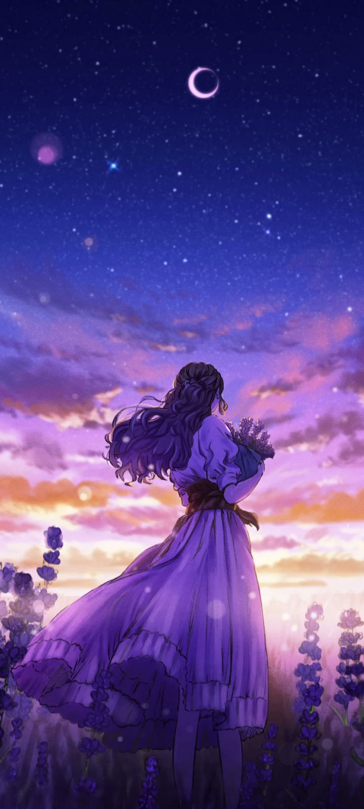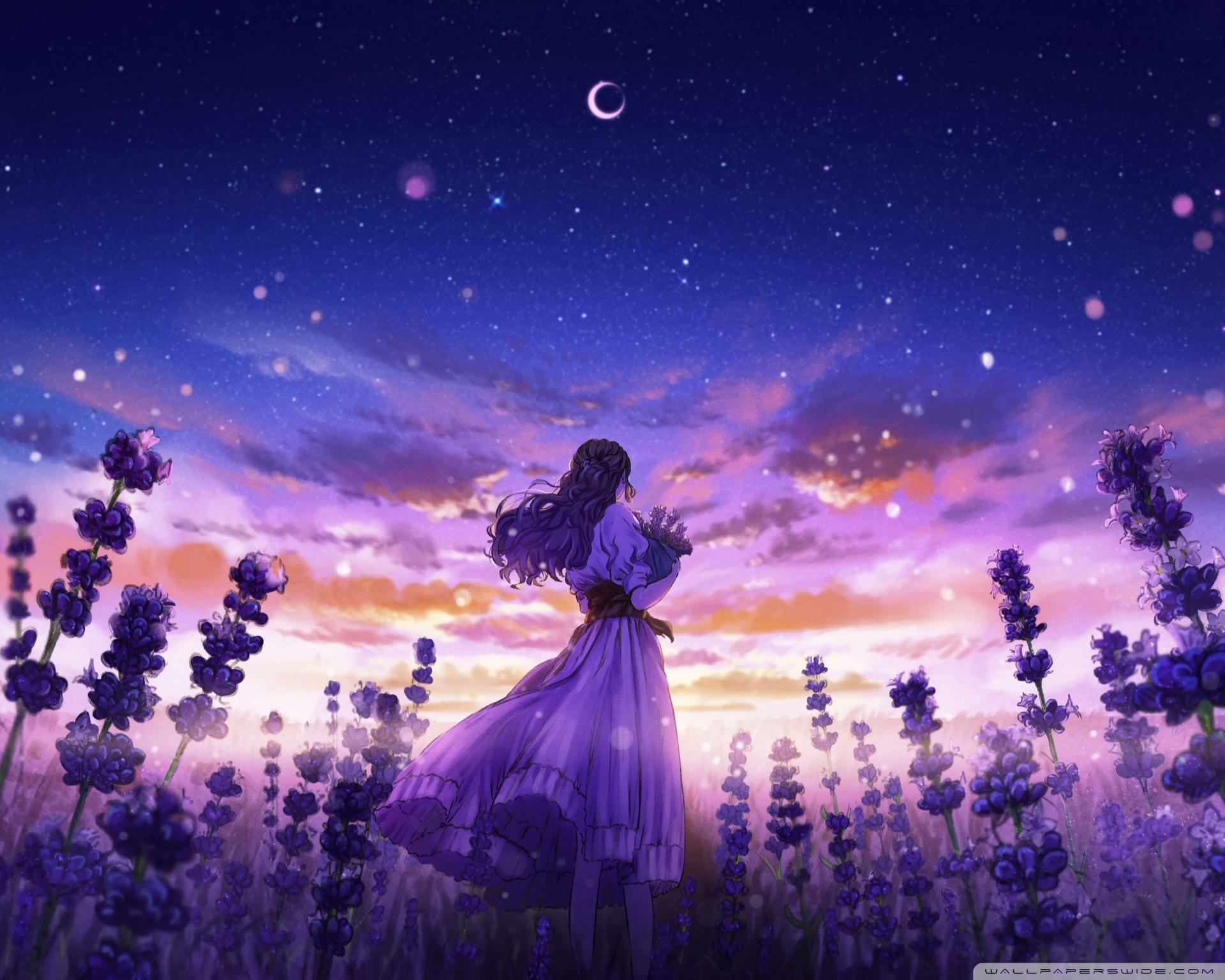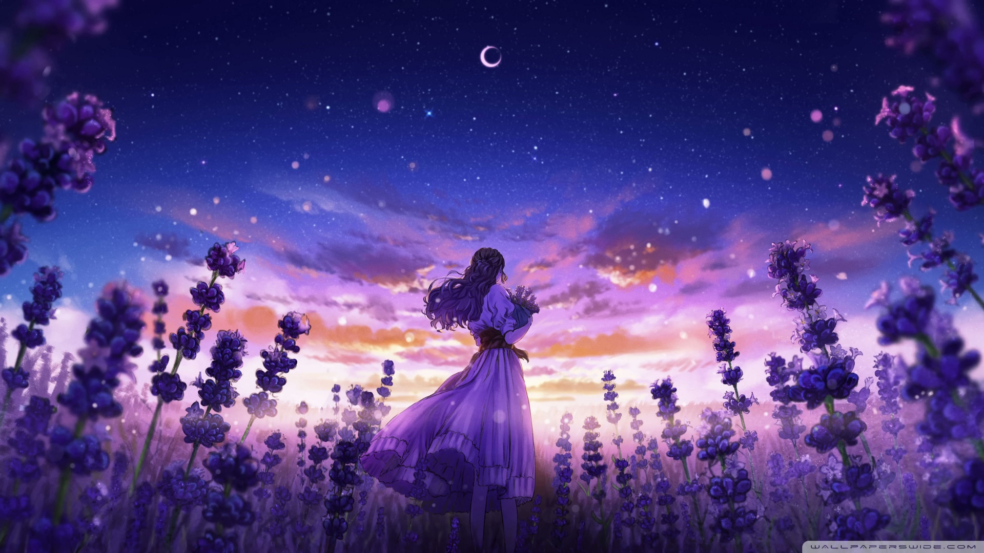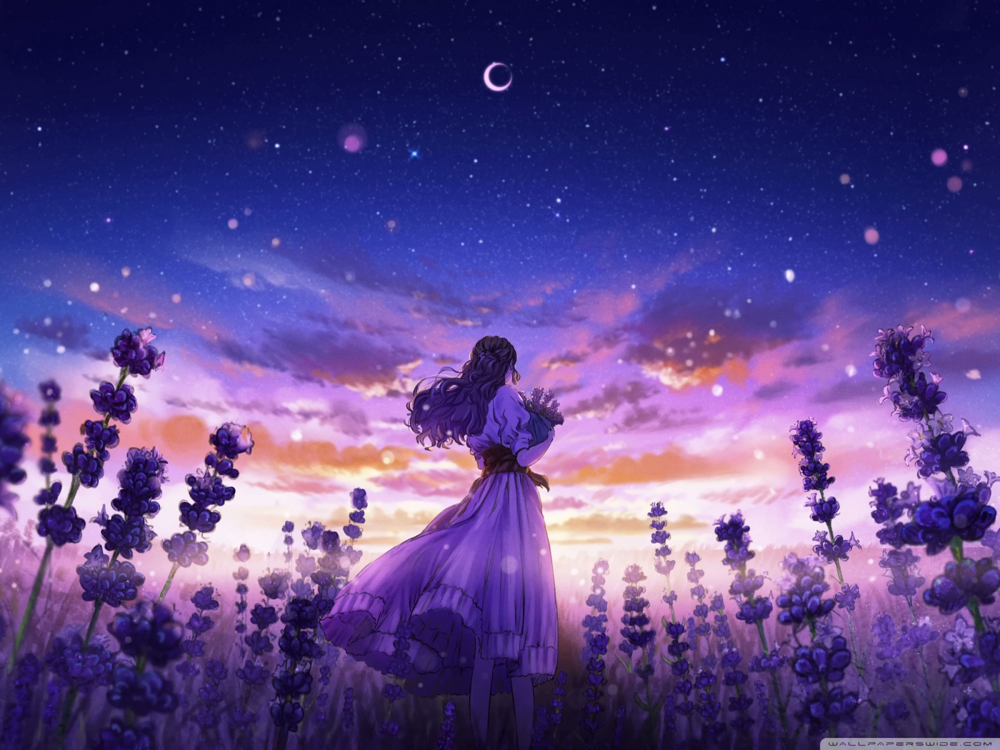 Download Girl Among the Purple Blossoms 4K UHD Wallpaper