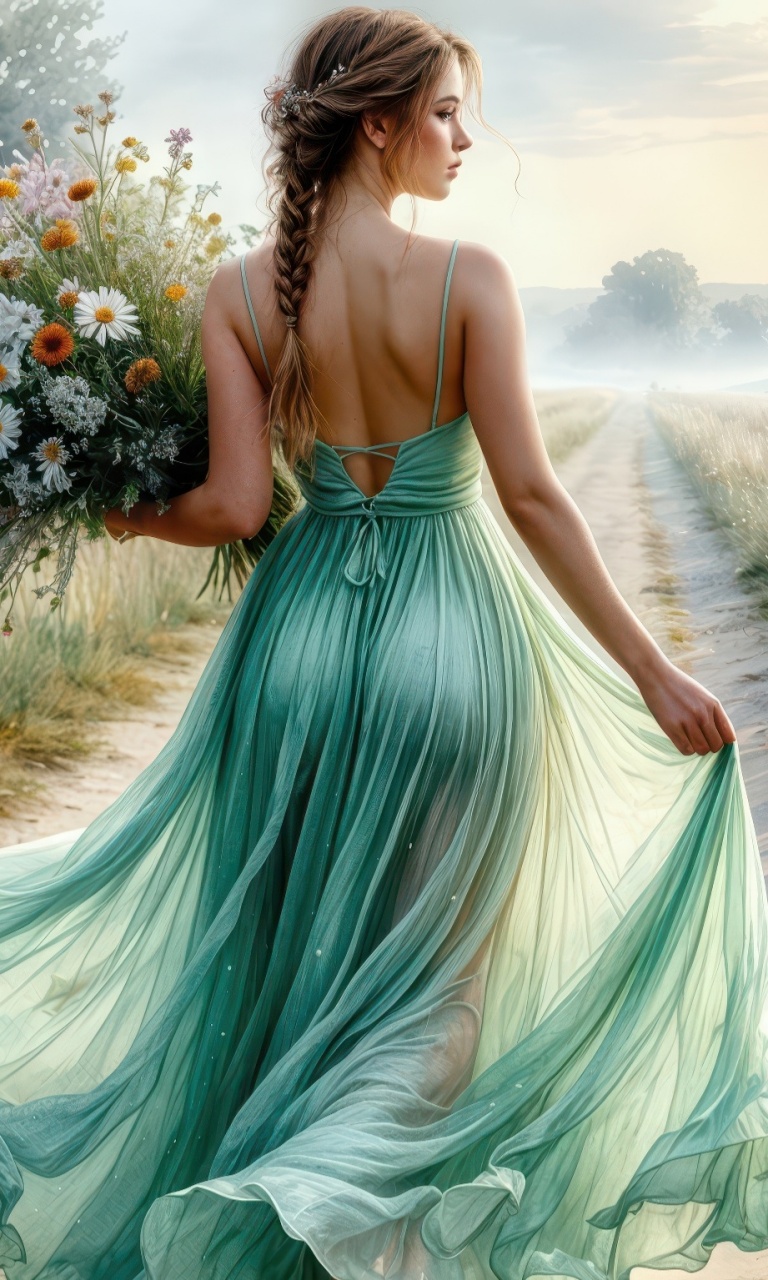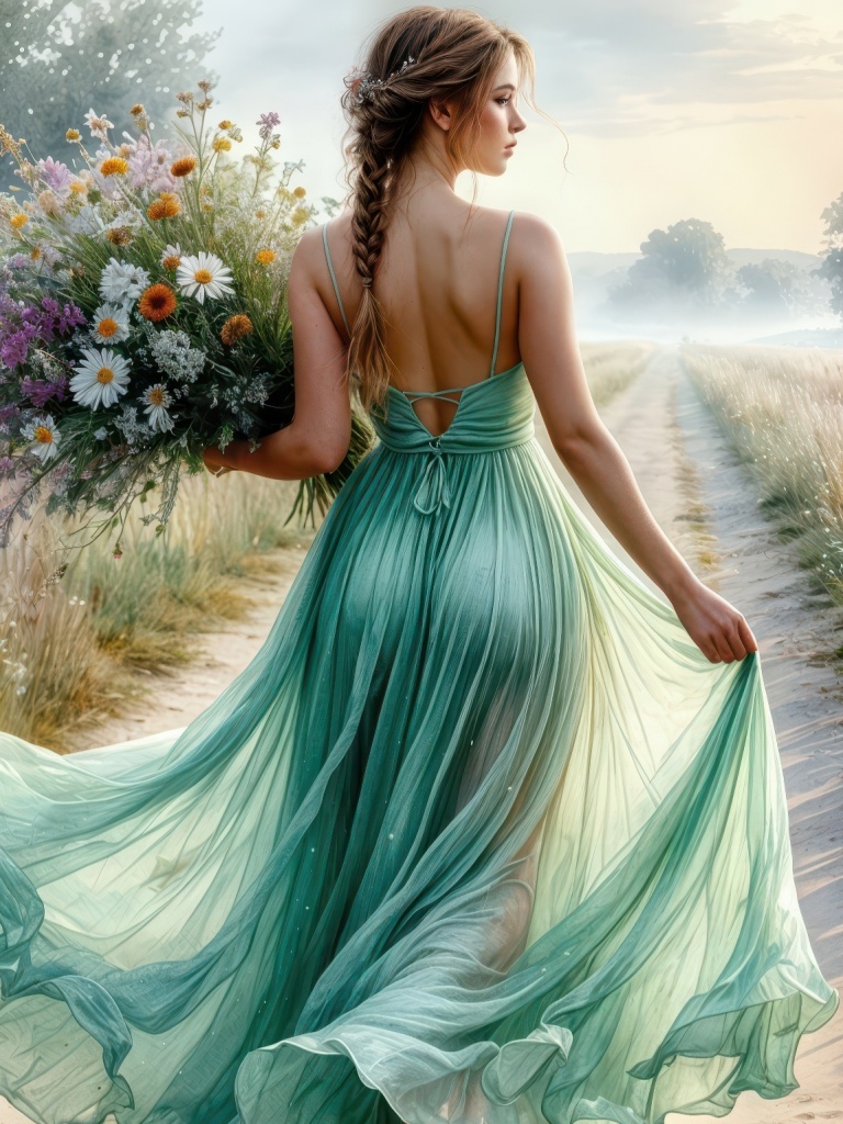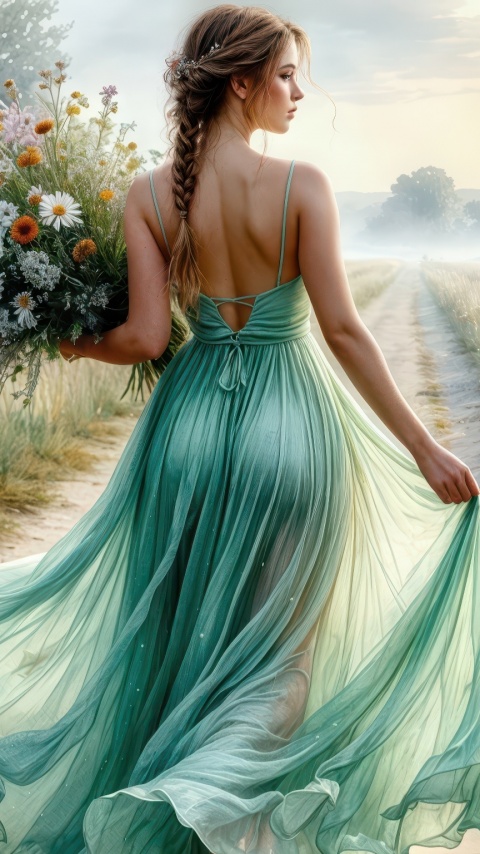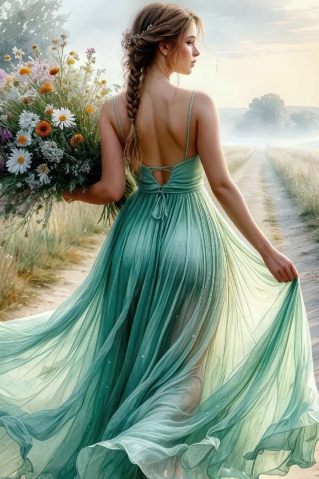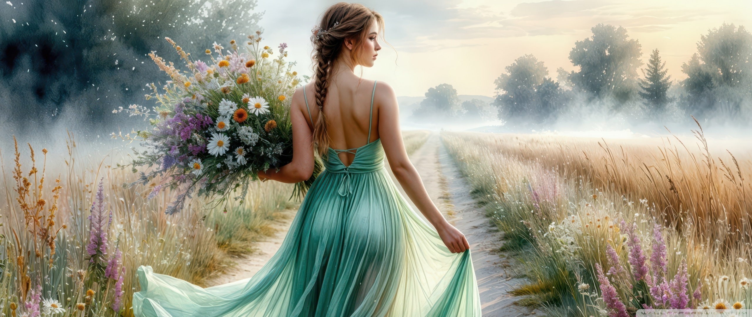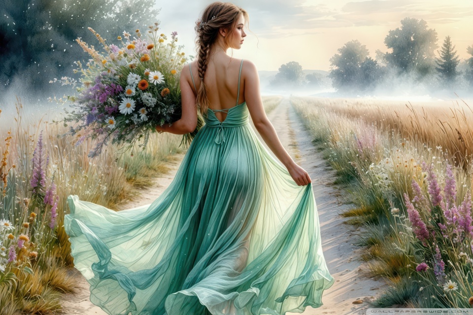 Download Girl in a Flowy Dress on a Country Road 4K UHD Wallpaper