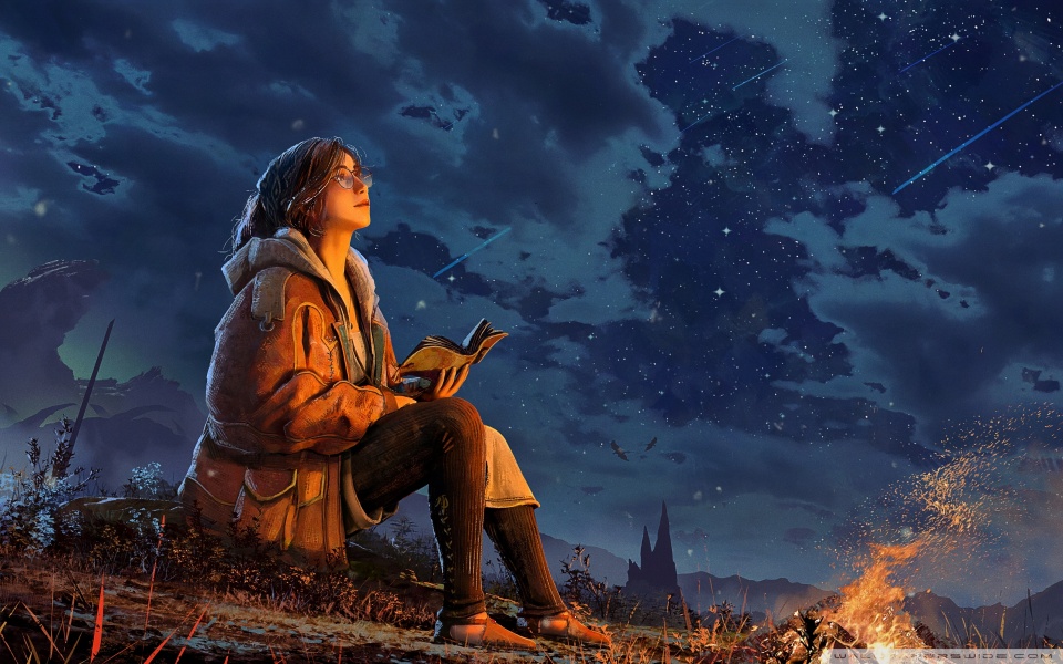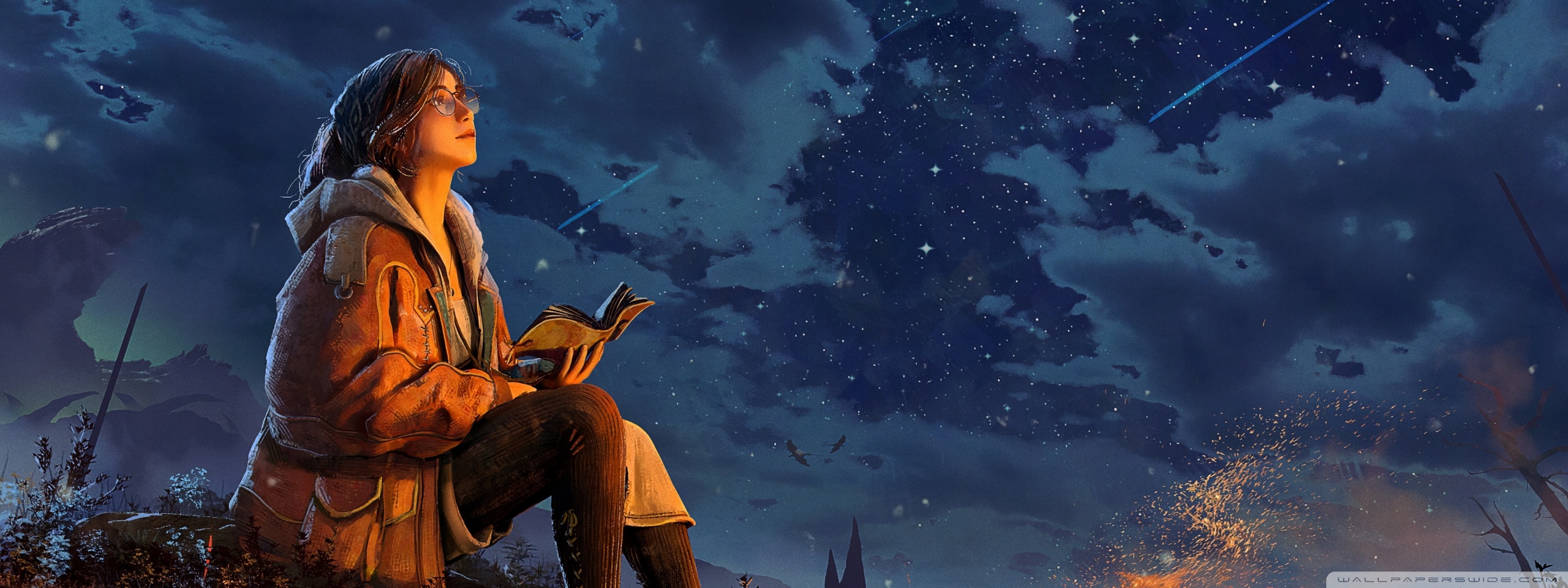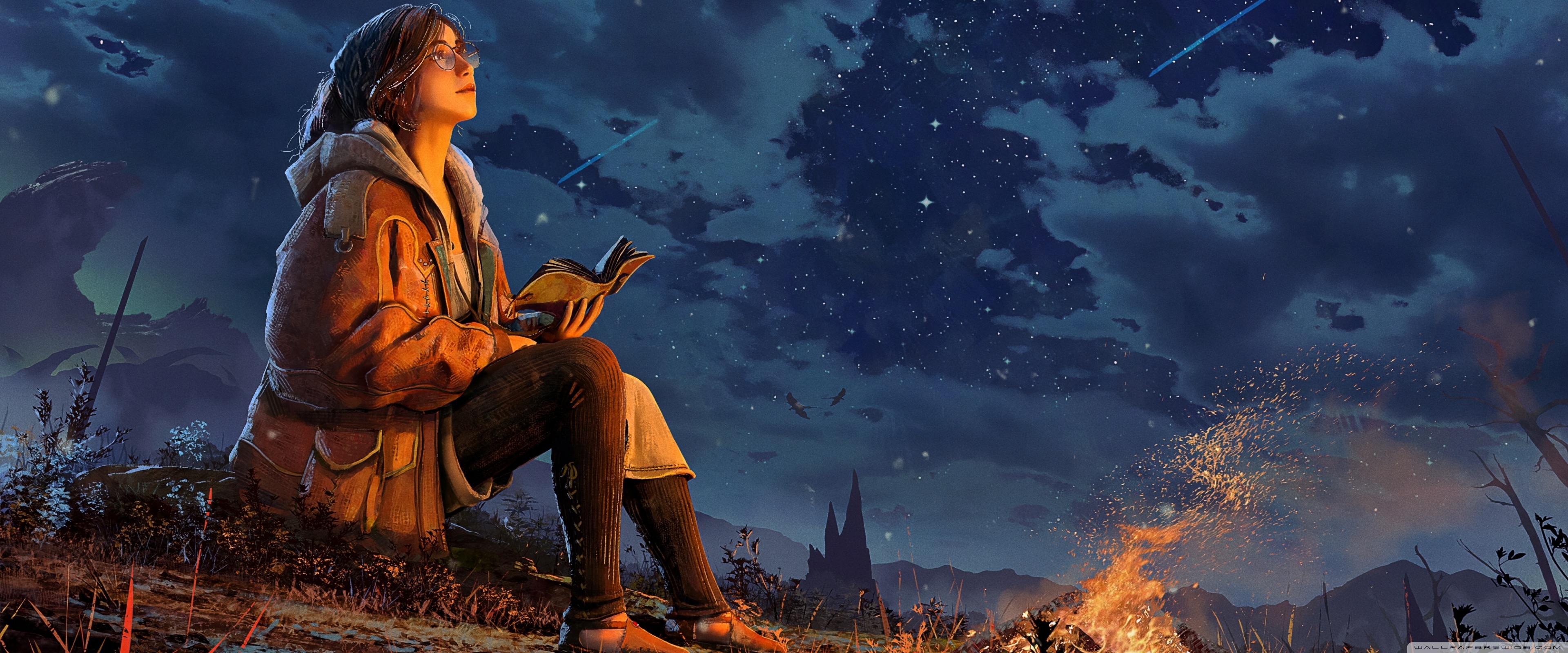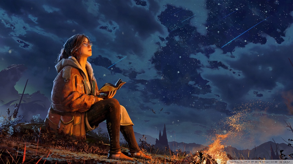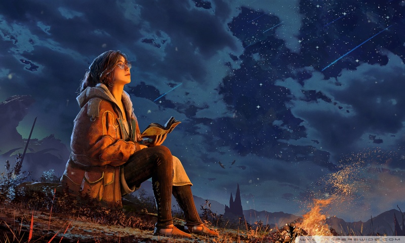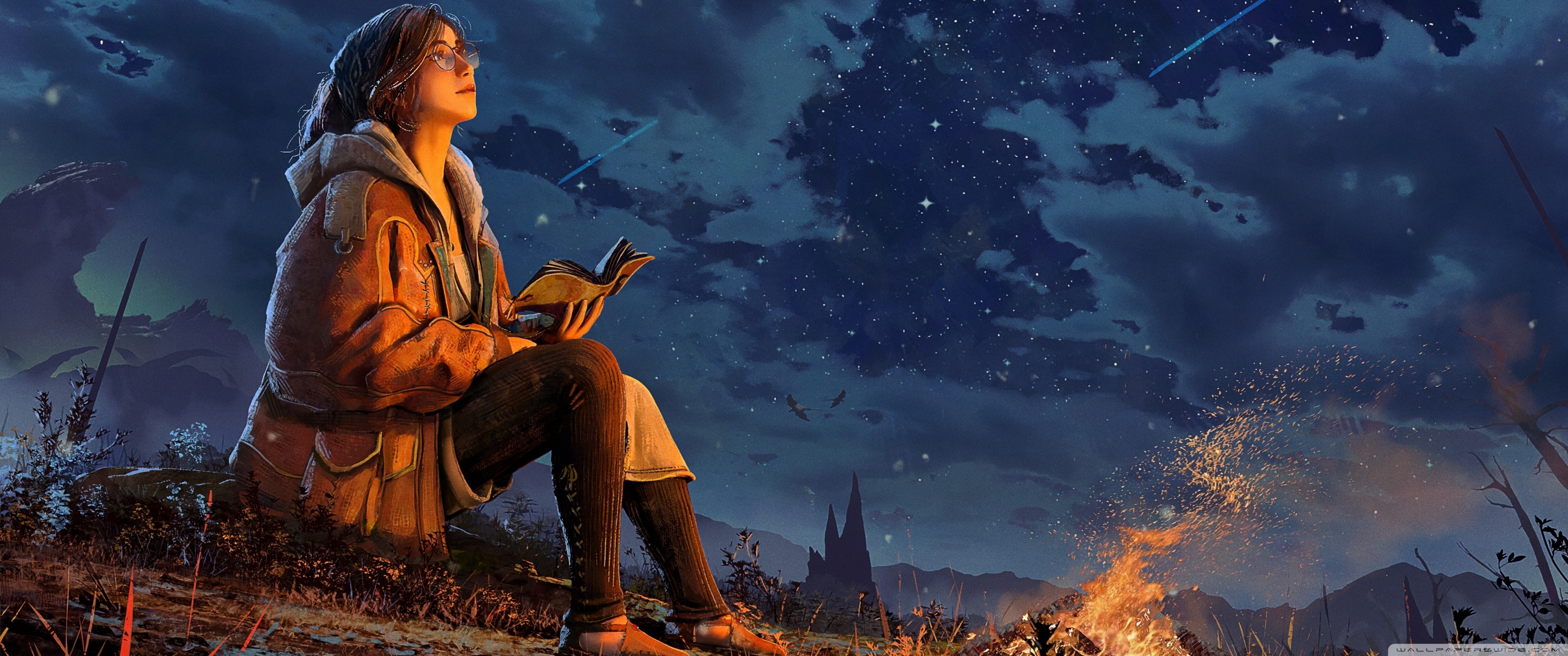 Download Girl Stargazing by a Campfire at Night 4K UHD Wallpaper