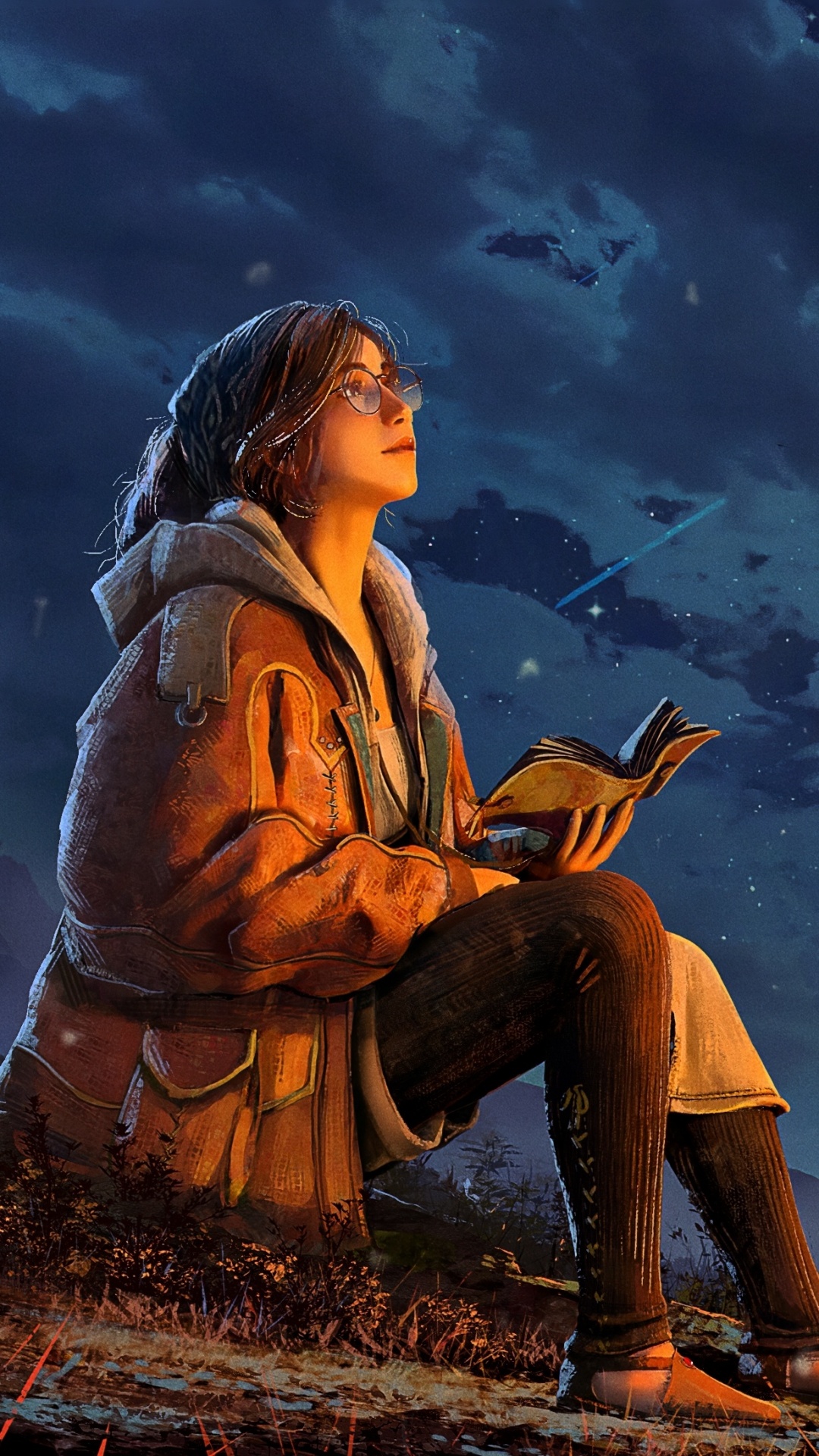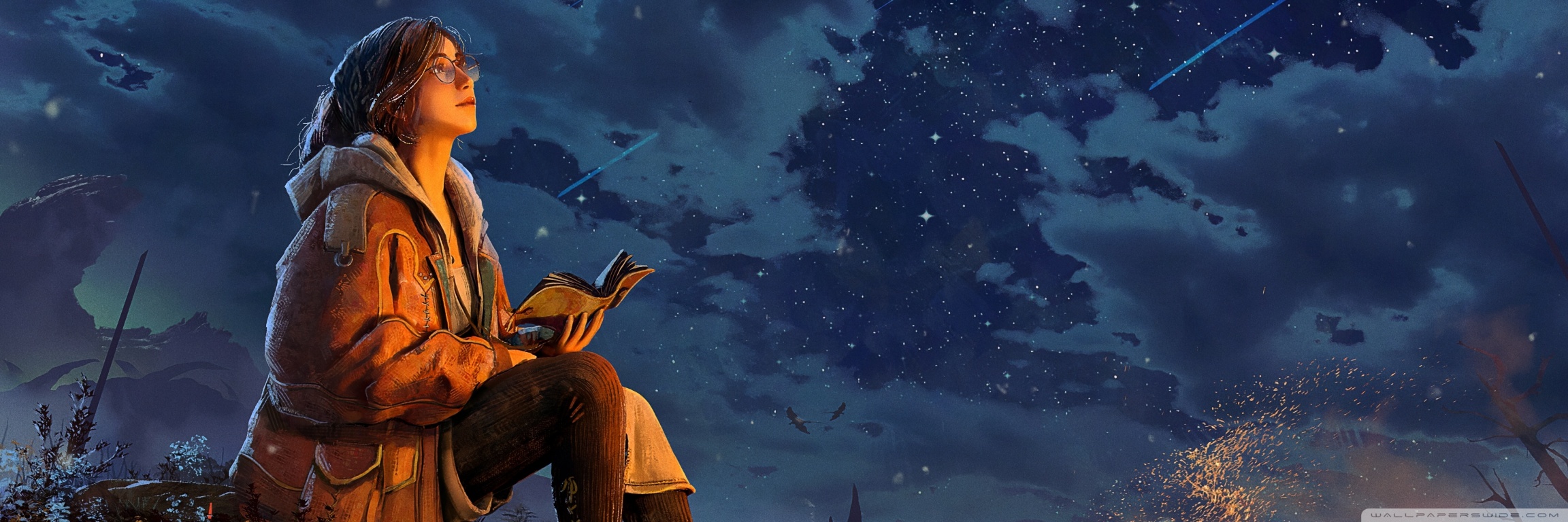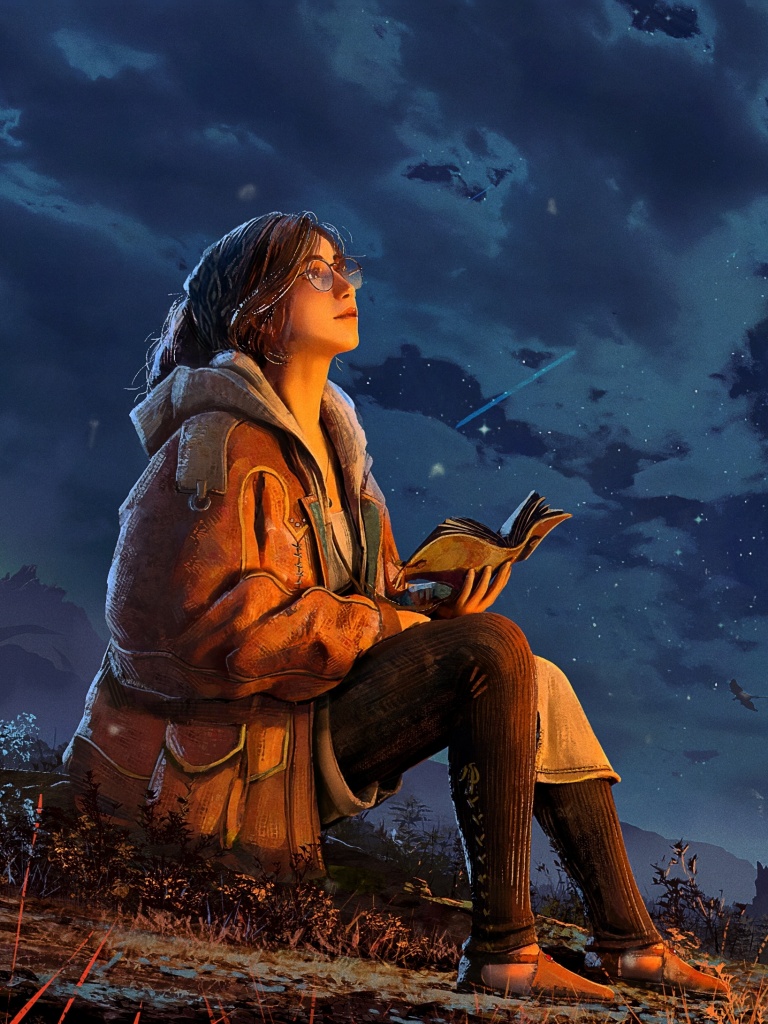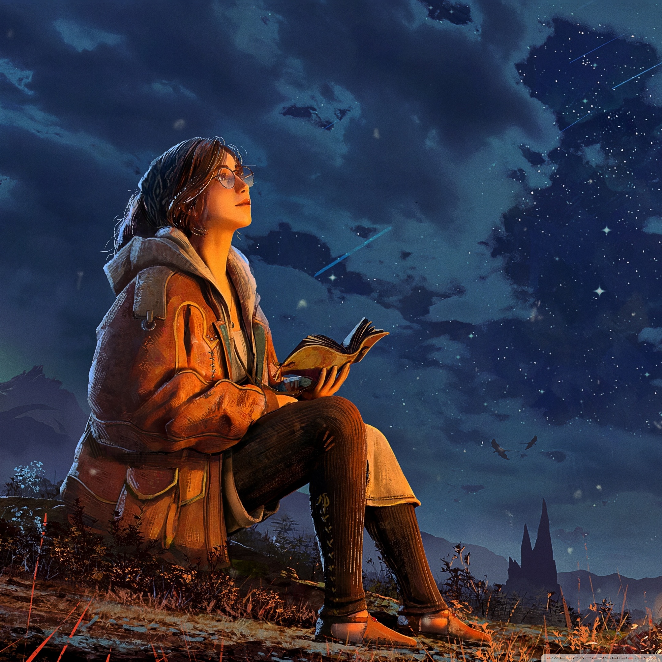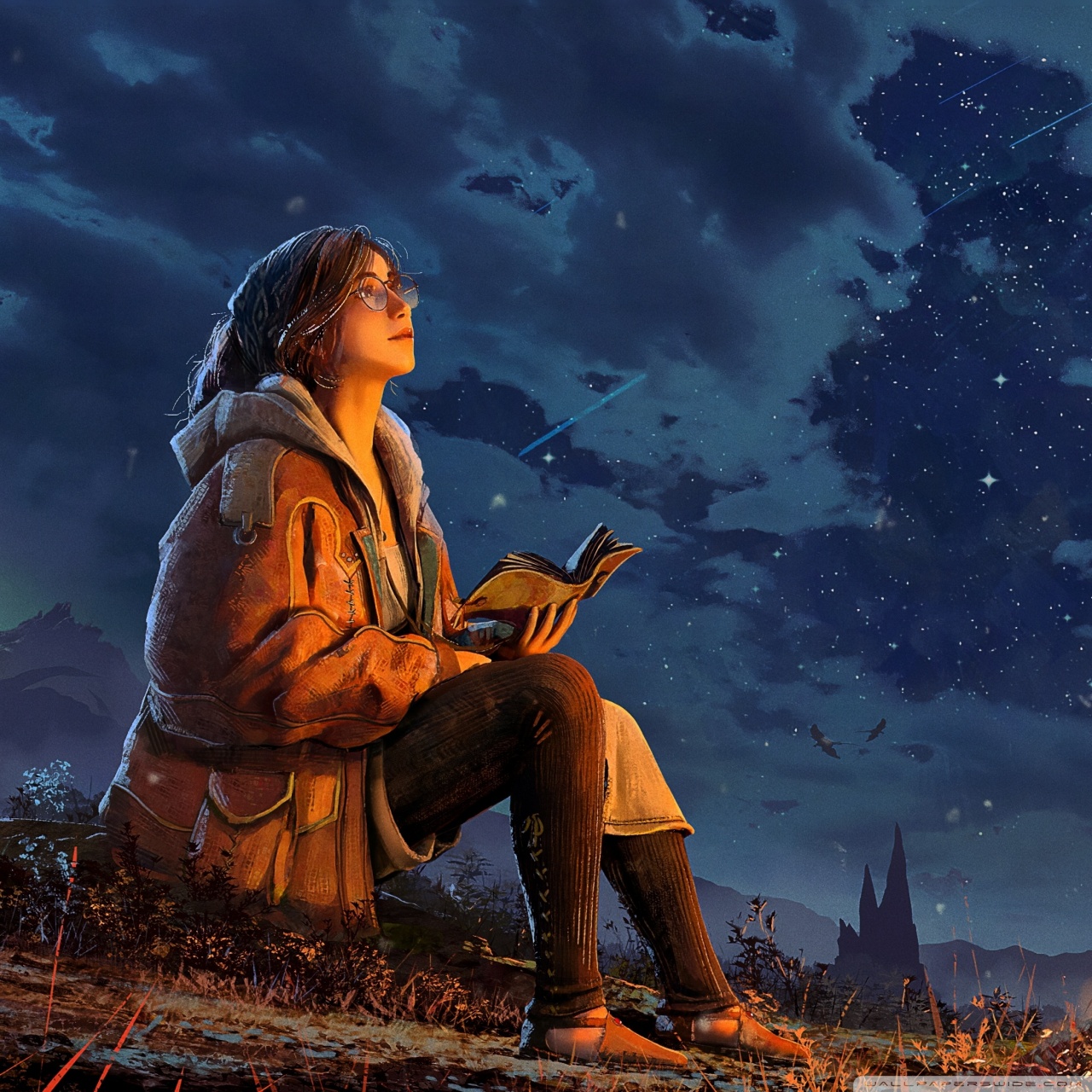 Download Girl Stargazing by a Campfire at Night 4K UHD Wallpaper