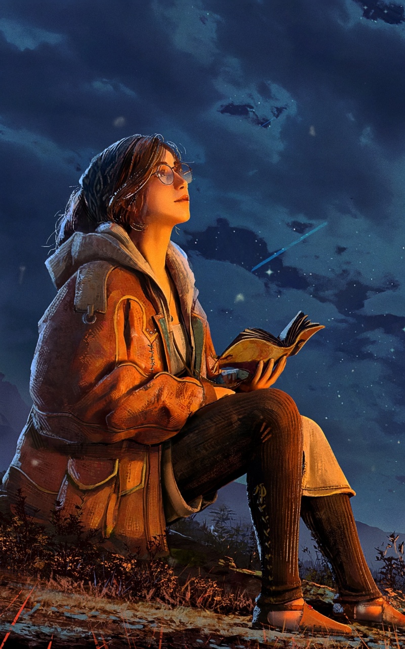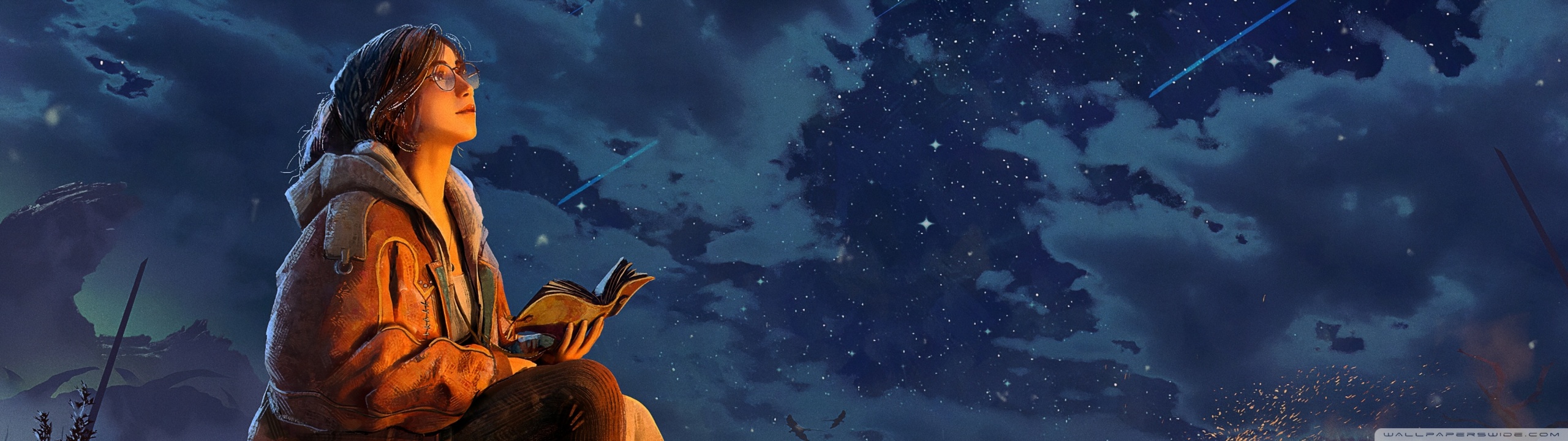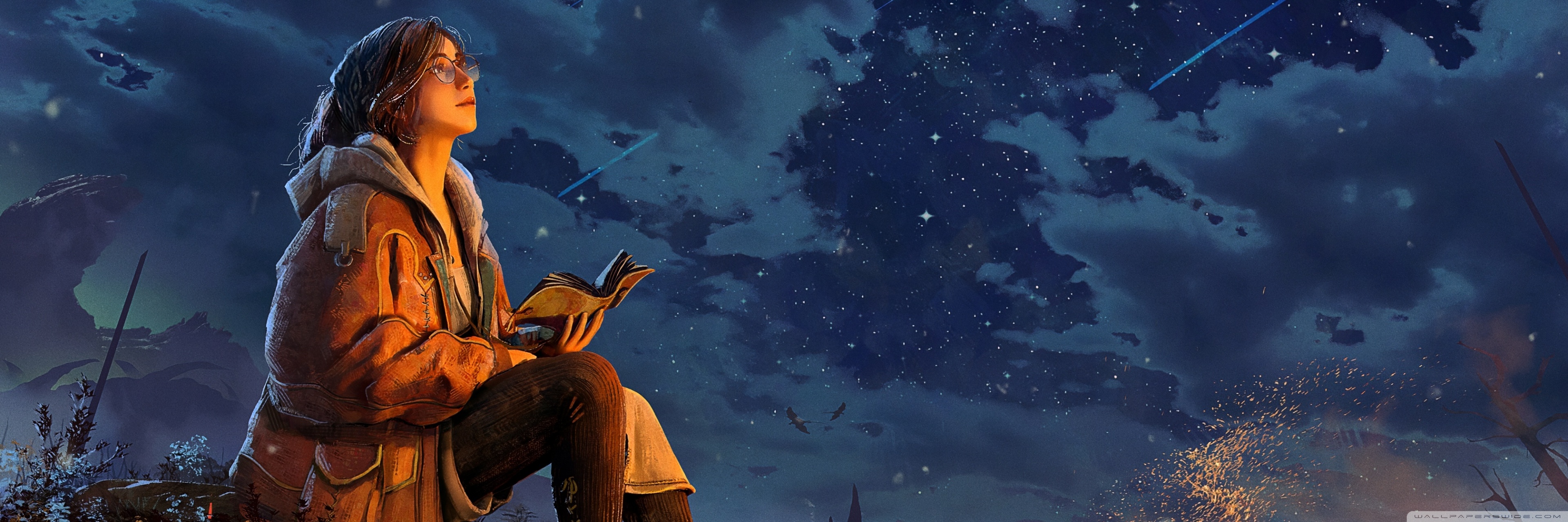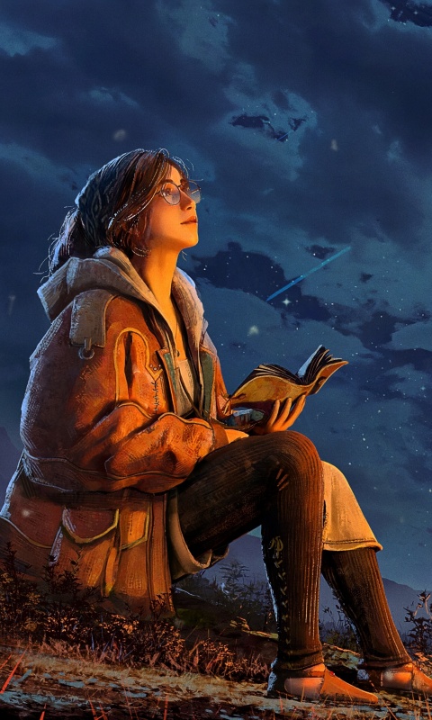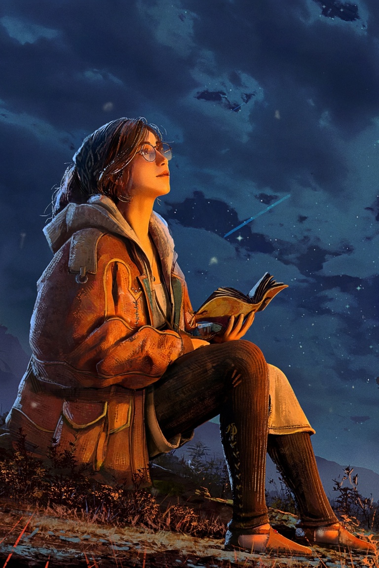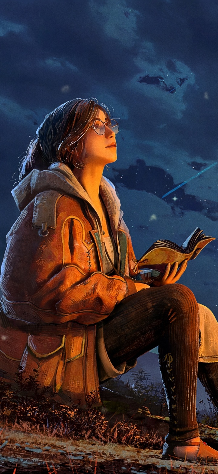 Download Girl Stargazing by a Campfire at Night 4K UHD Wallpaper