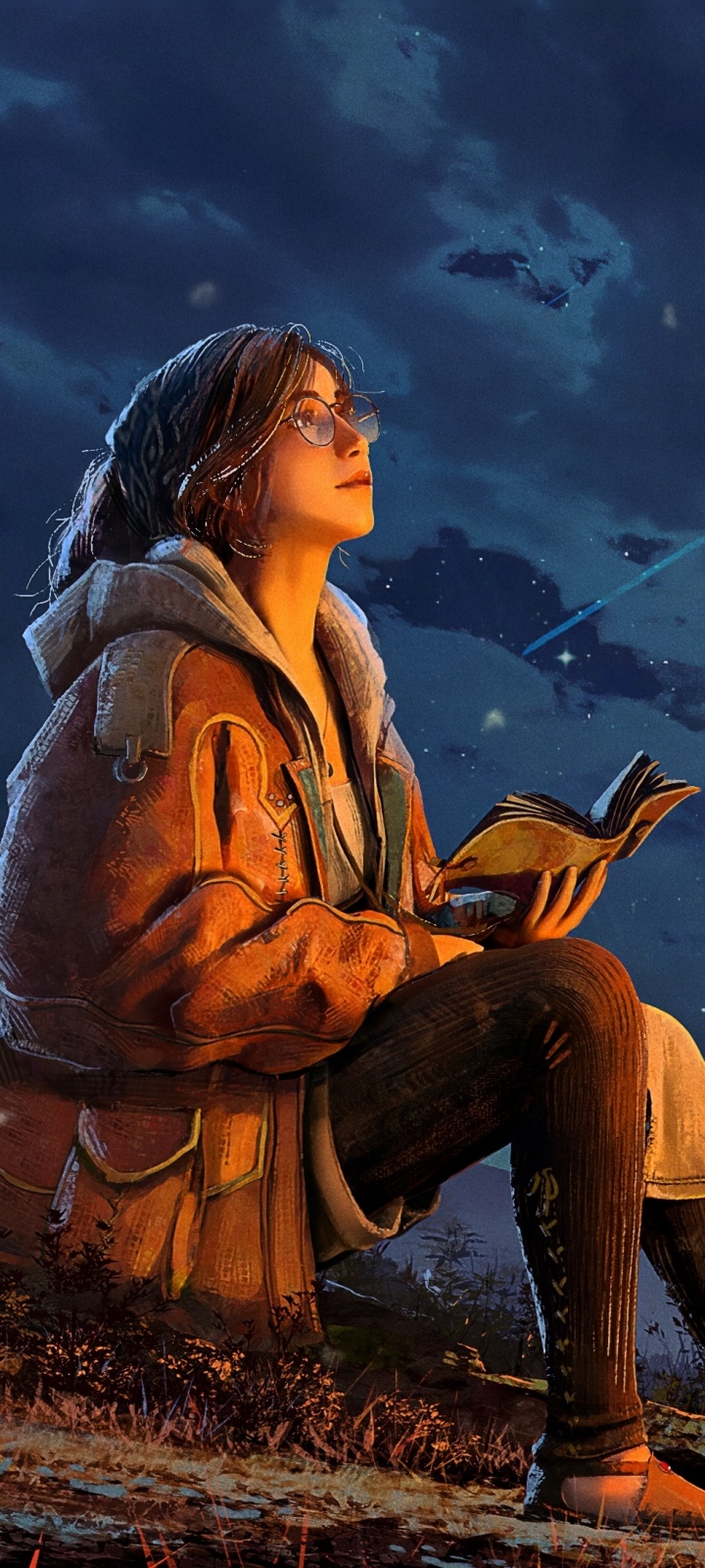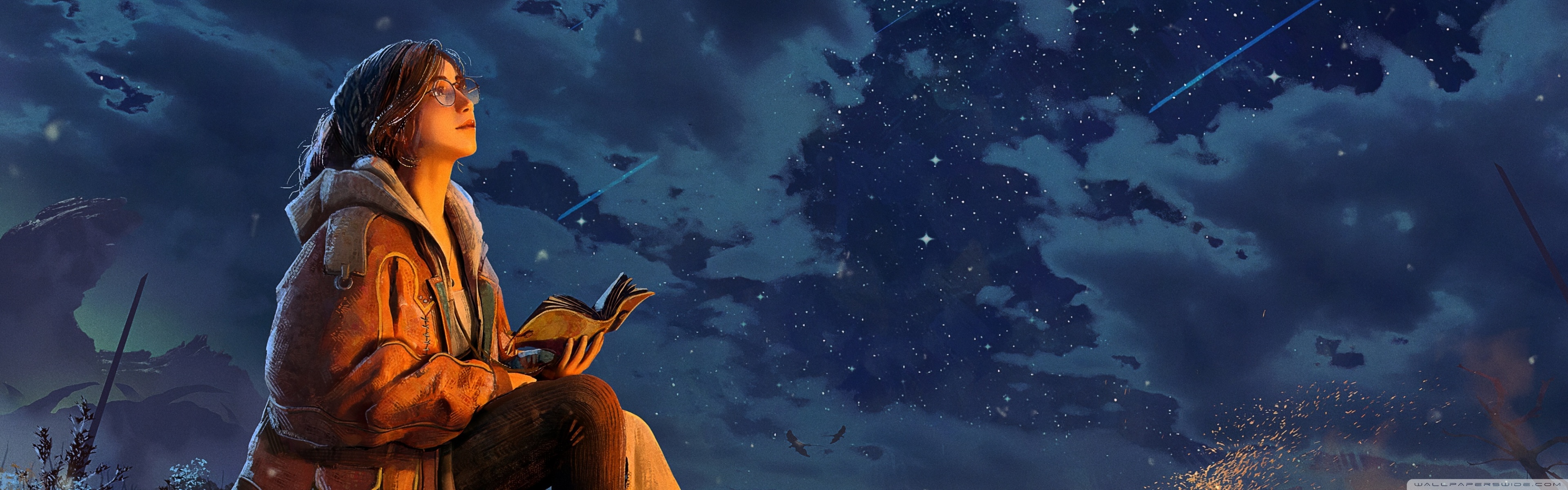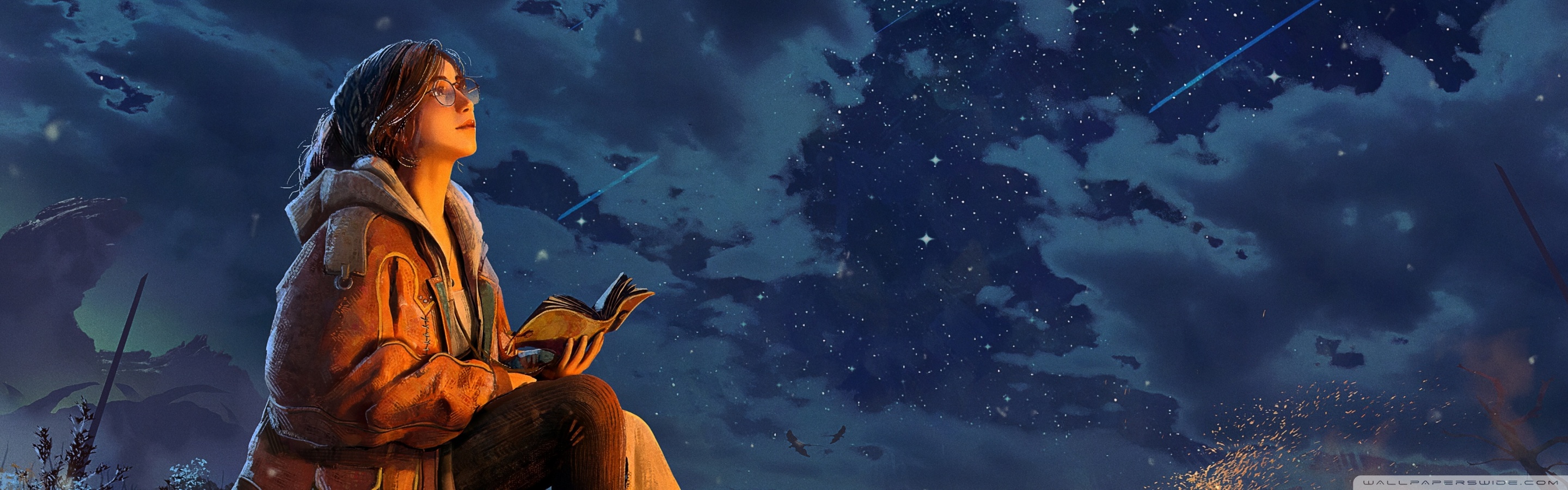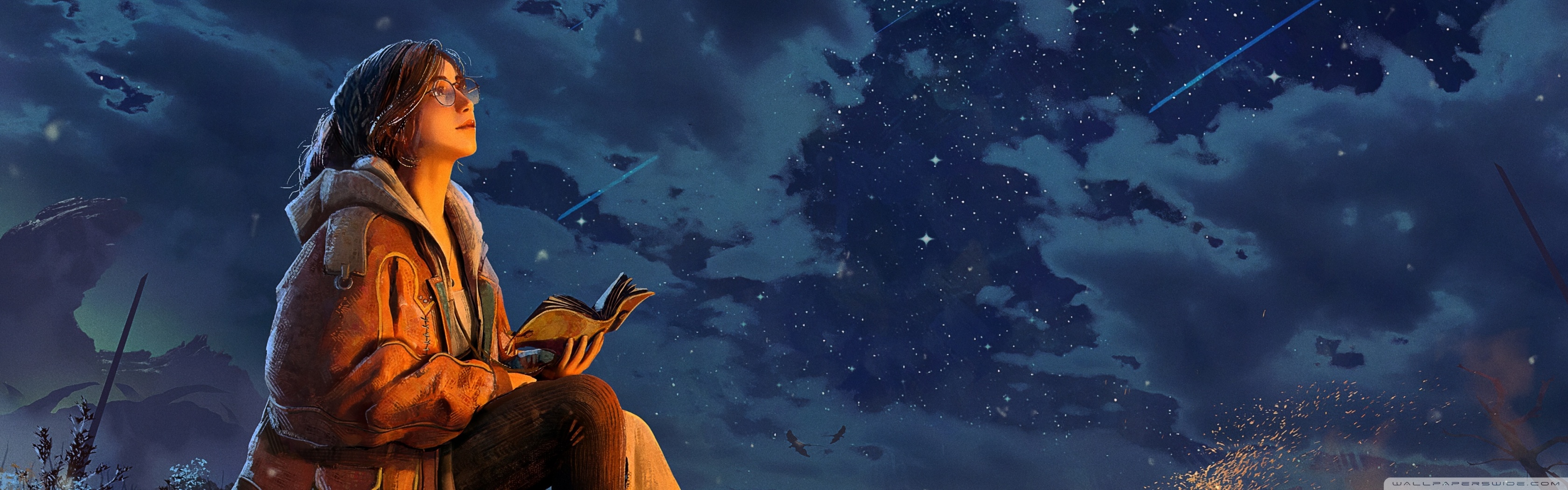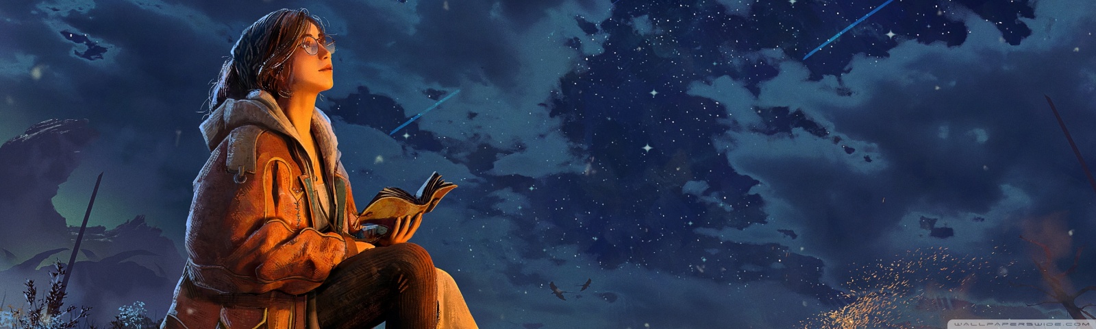 Download Girl Stargazing by a Campfire at Night 4K UHD Wallpaper