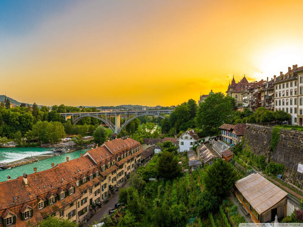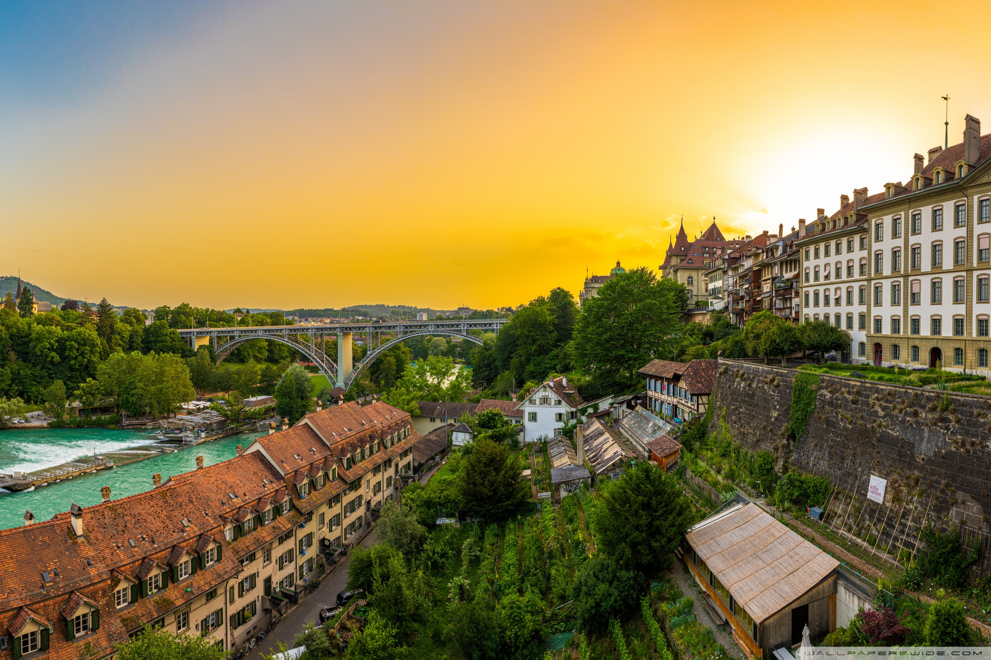 Download Golden Hour in Bern Mittelland, Switzerland 4K UHD Wallpaper