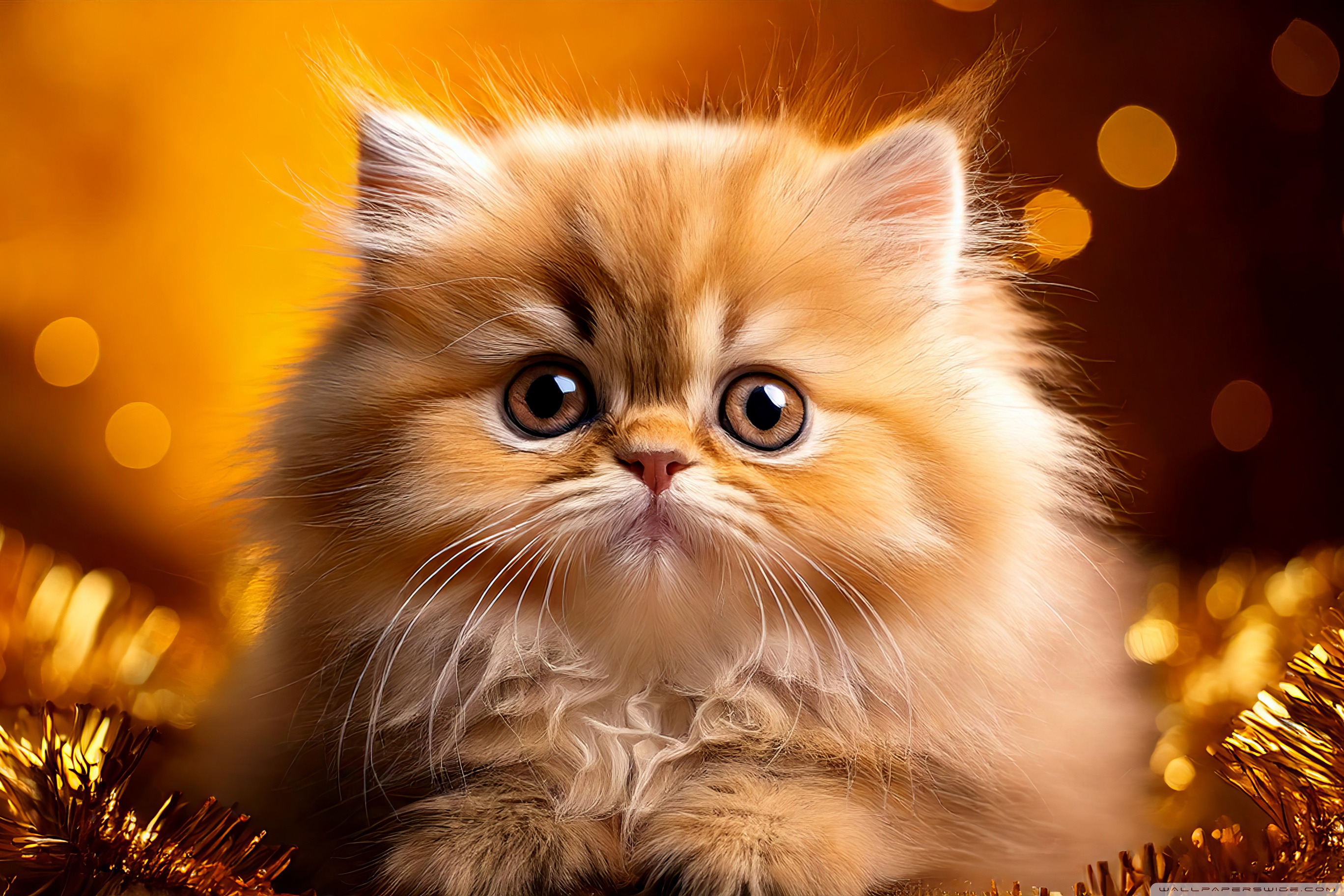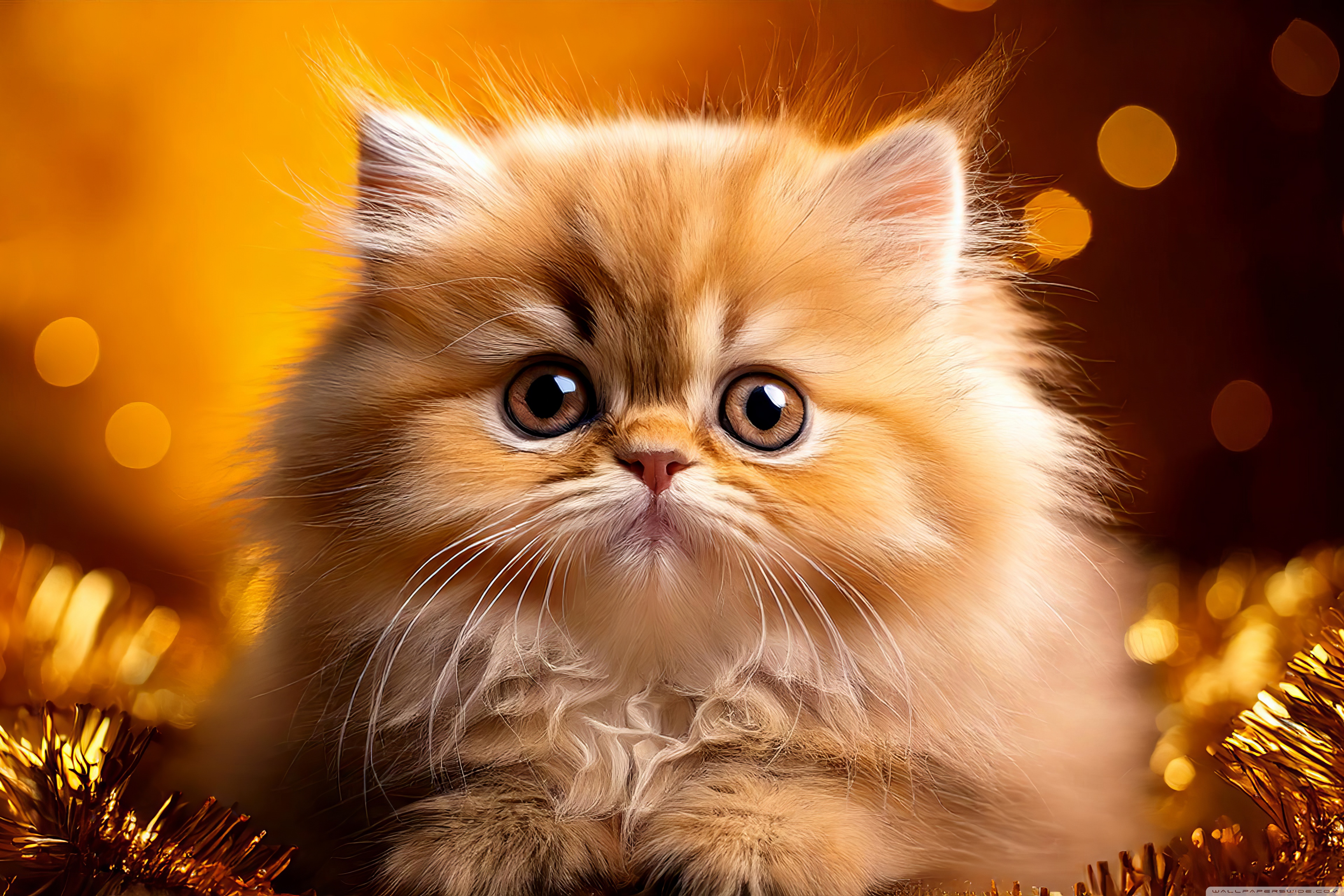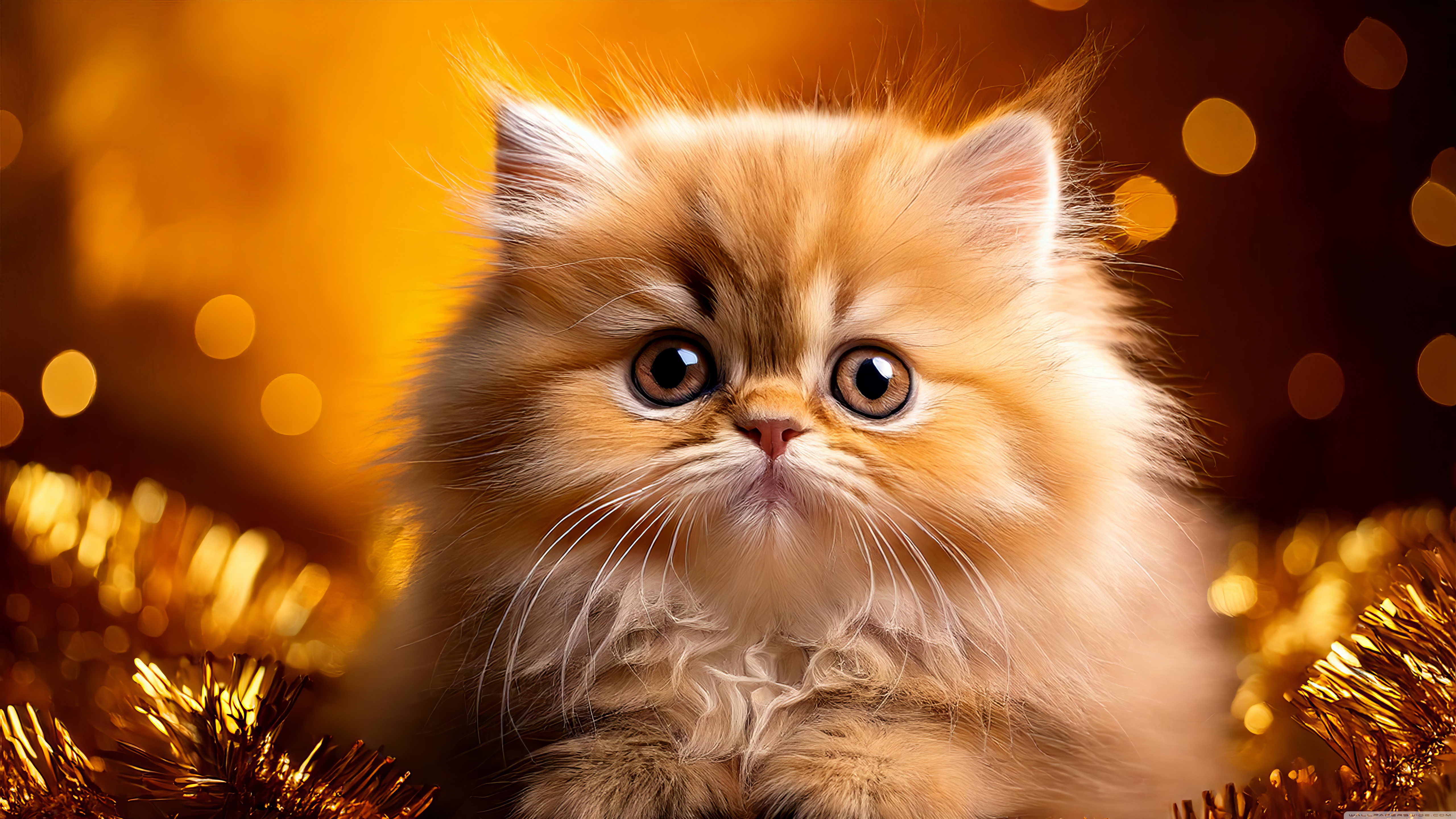 Download Golden Persian Kitten Holiday 4K UHD Wallpaper