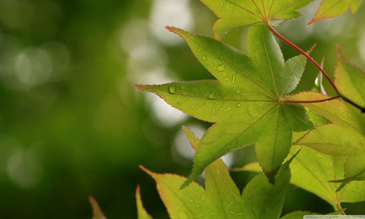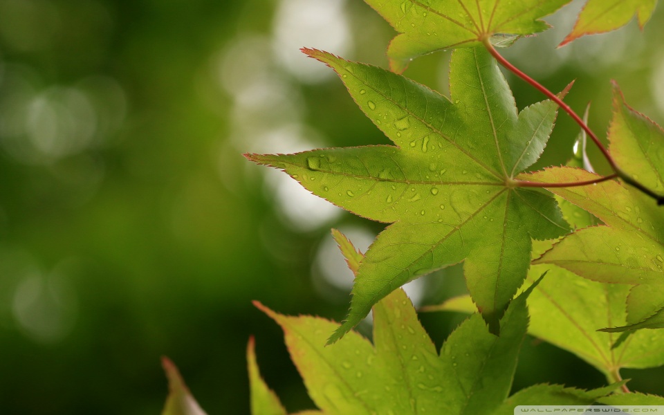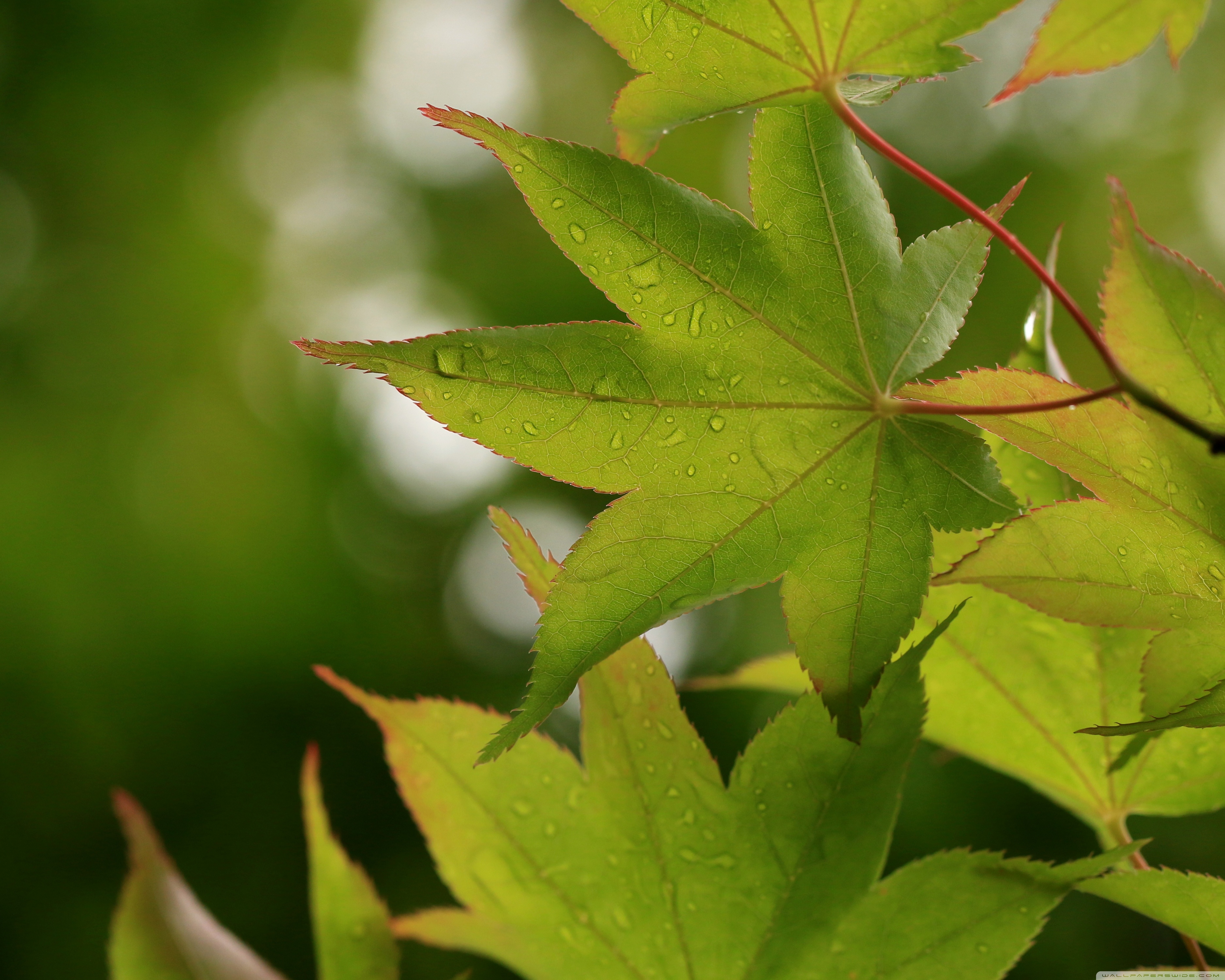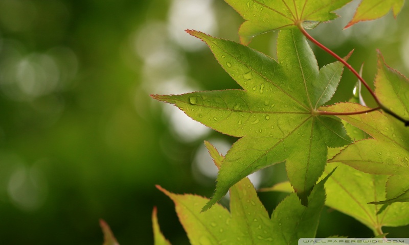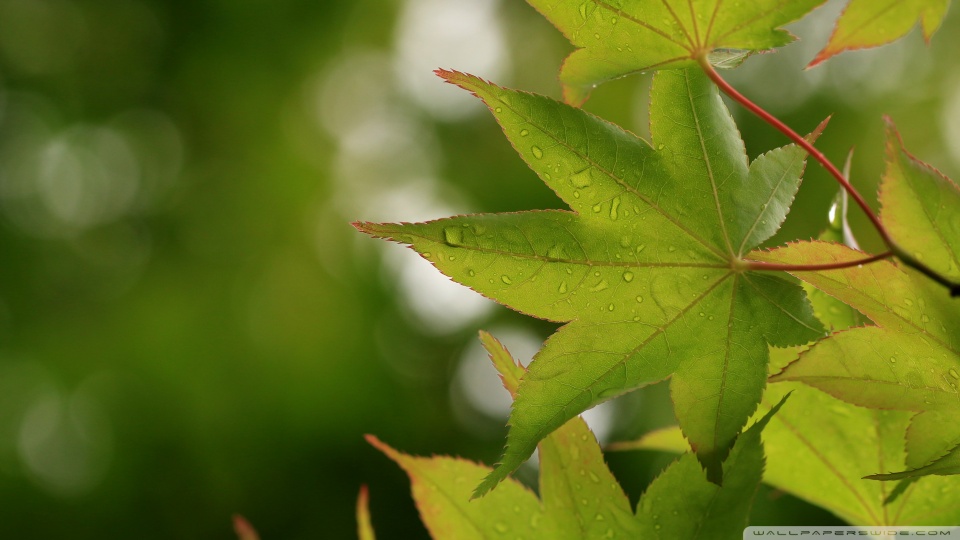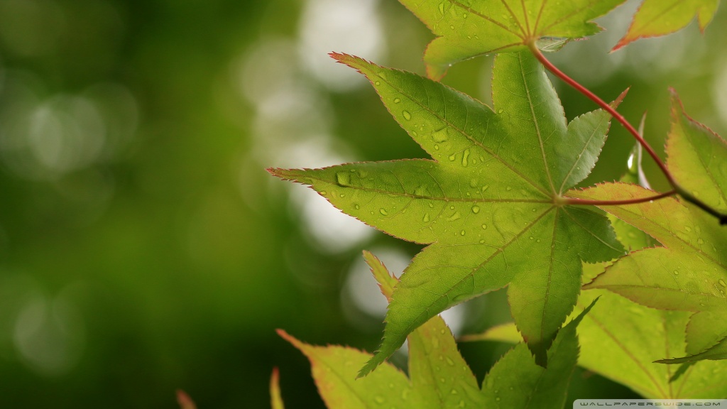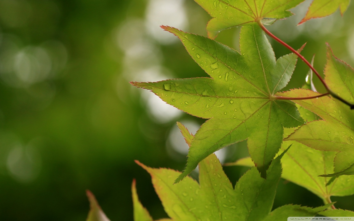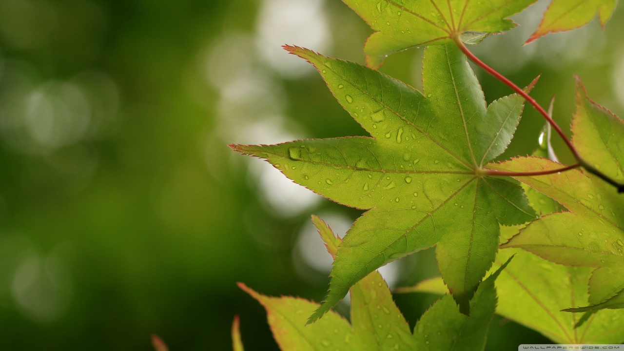 Download Green Japanese Maple Leaves after Rainfall,... 4K UHD Wallpaper