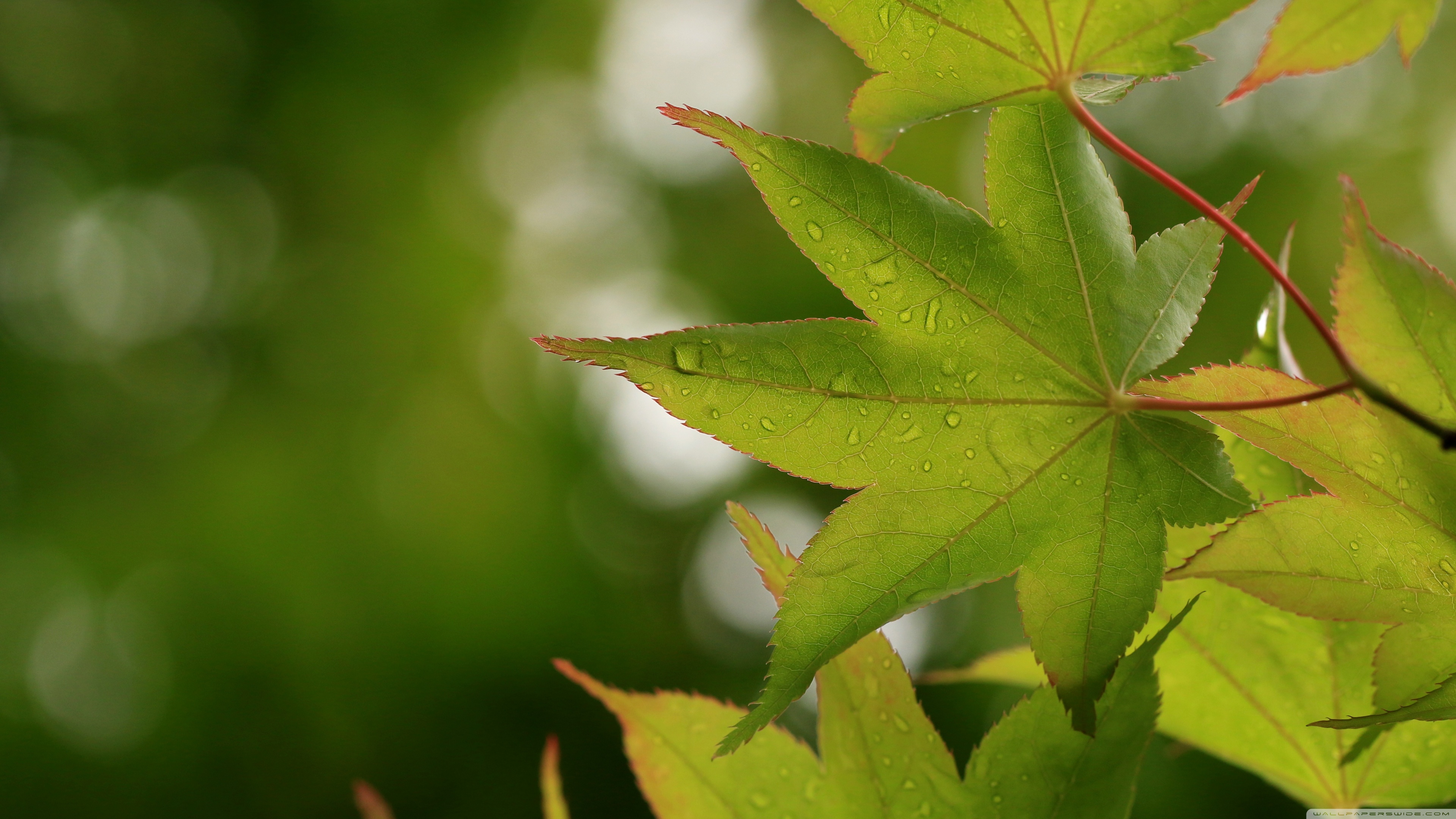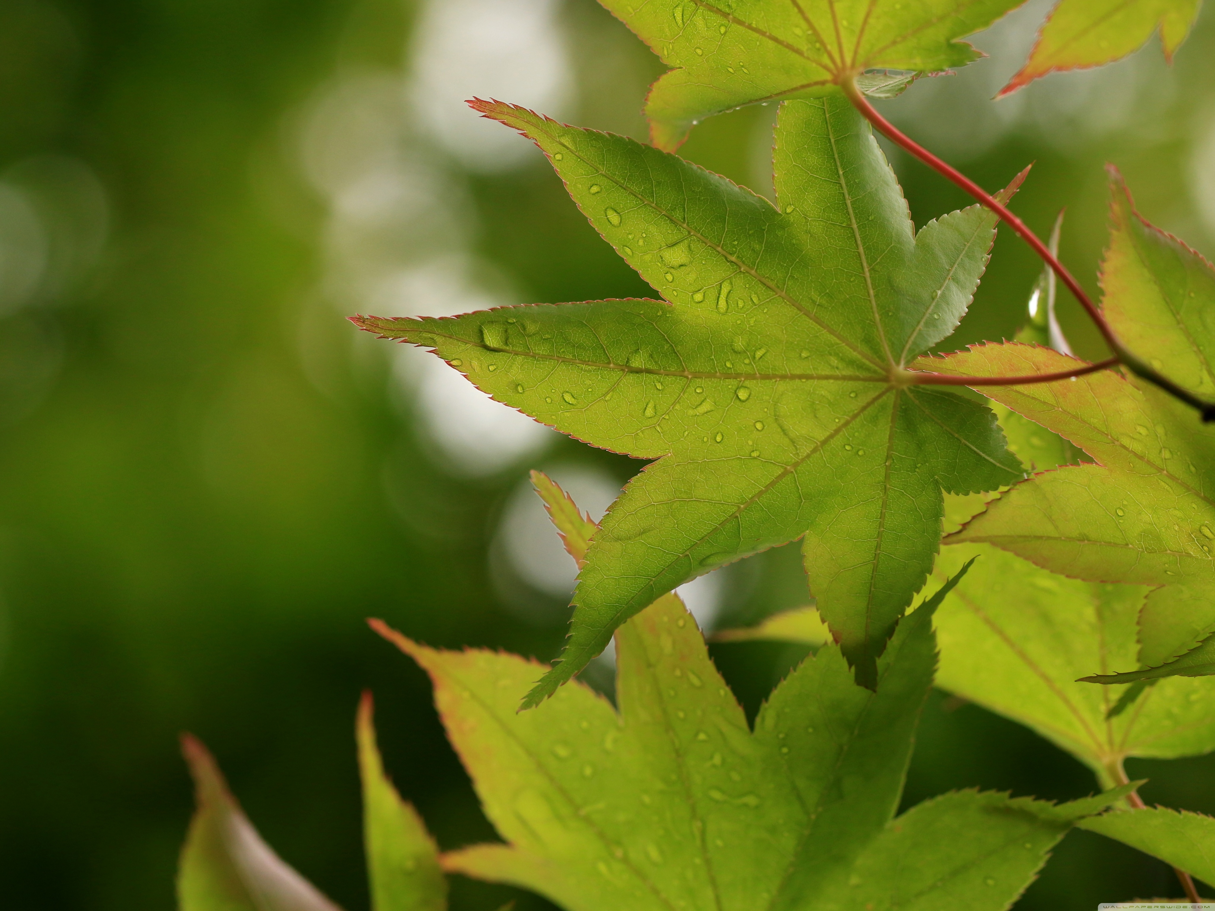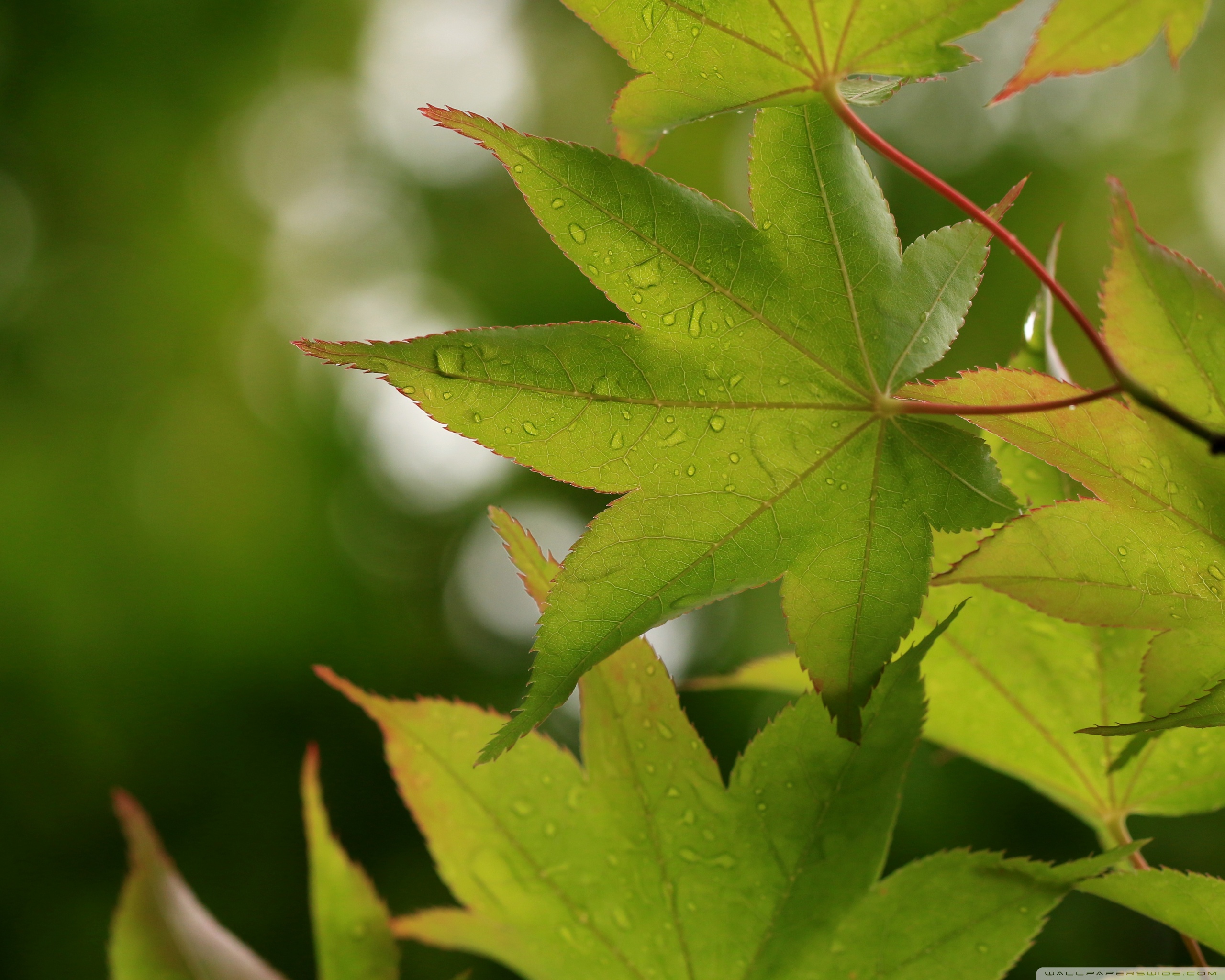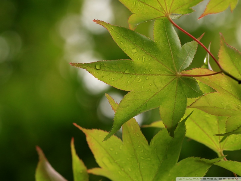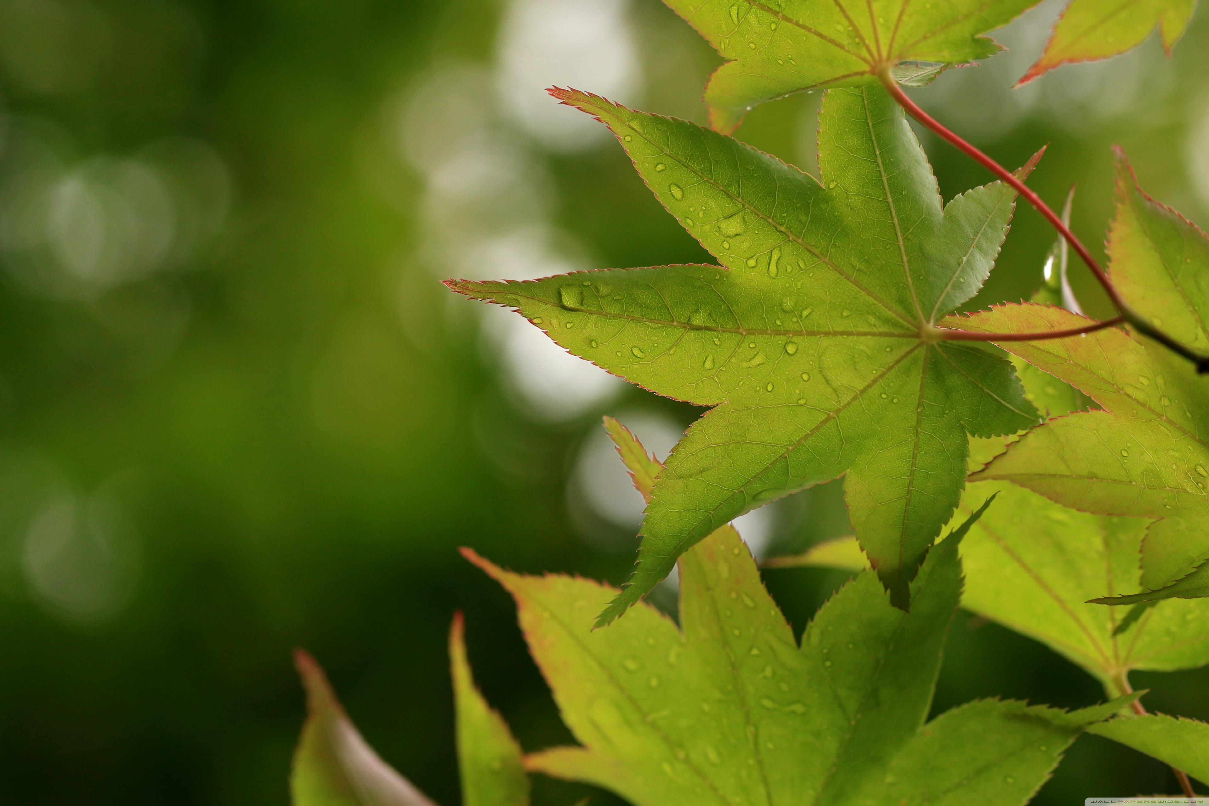 Download Green Japanese Maple Leaves after Rainfall,... 4K UHD Wallpaper