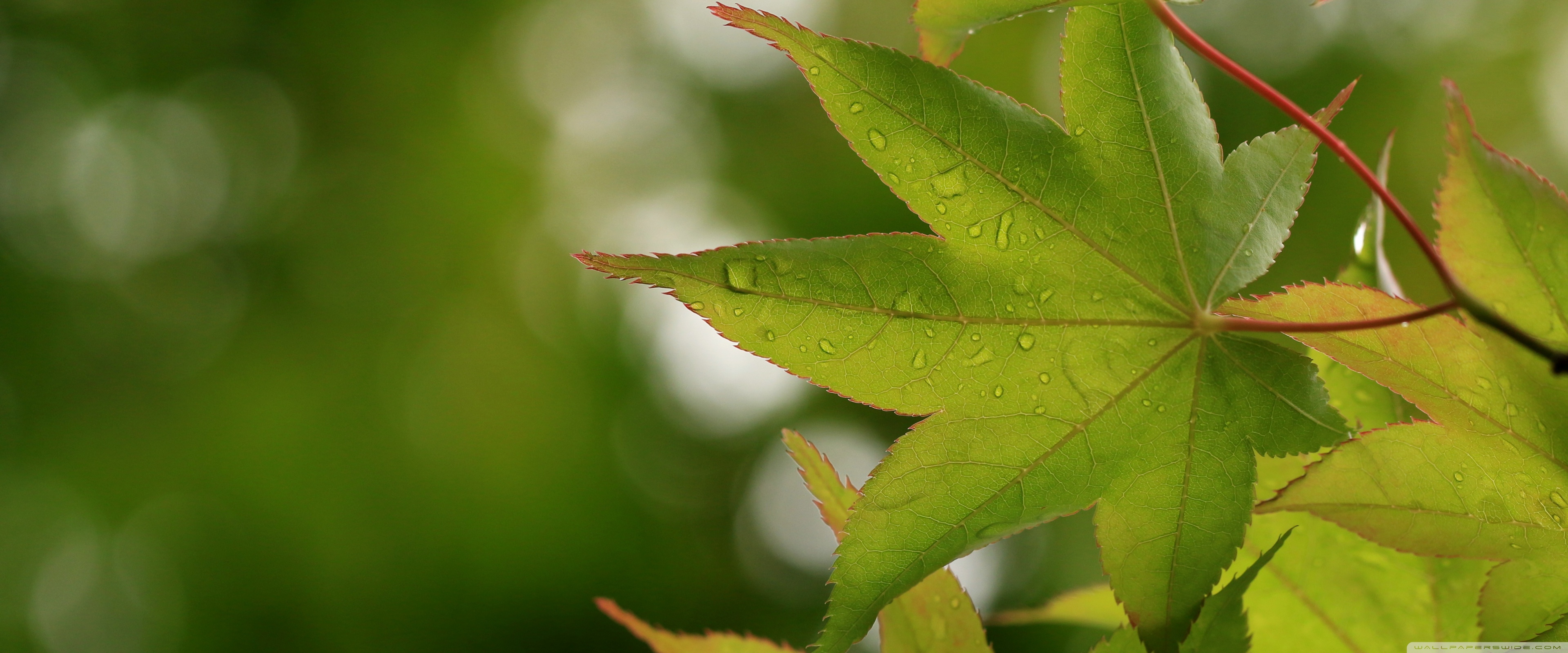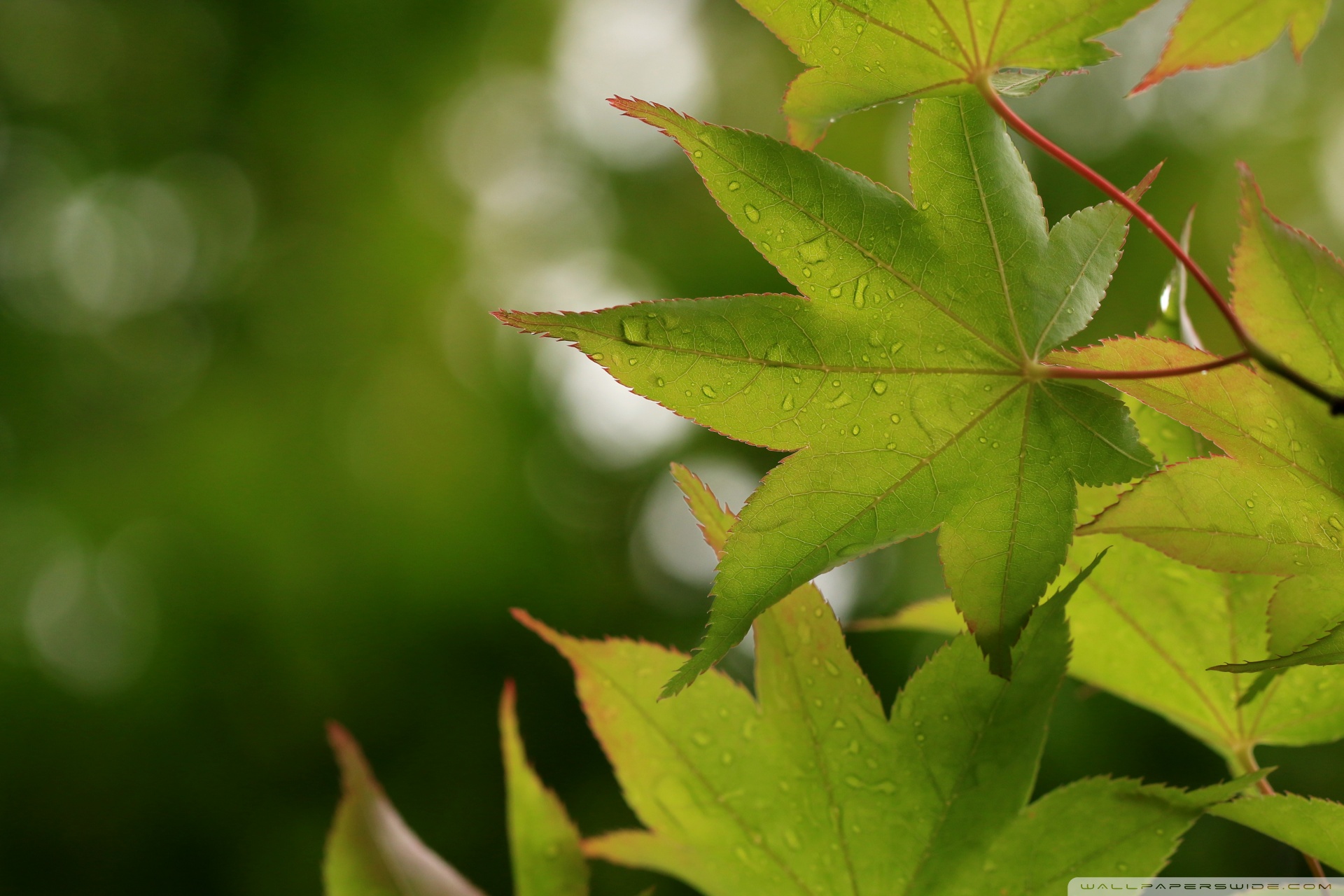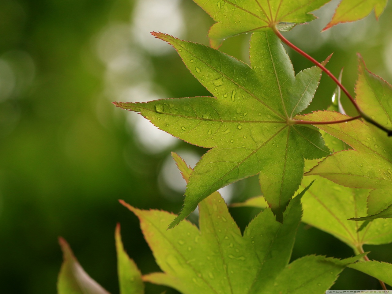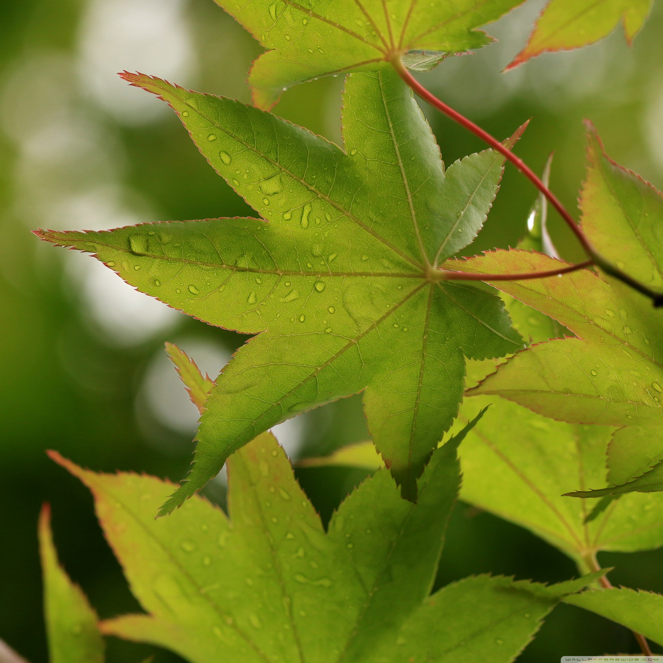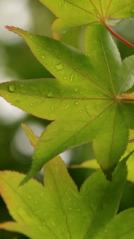 Download Green Japanese Maple Leaves after Rainfall,... 4K UHD Wallpaper