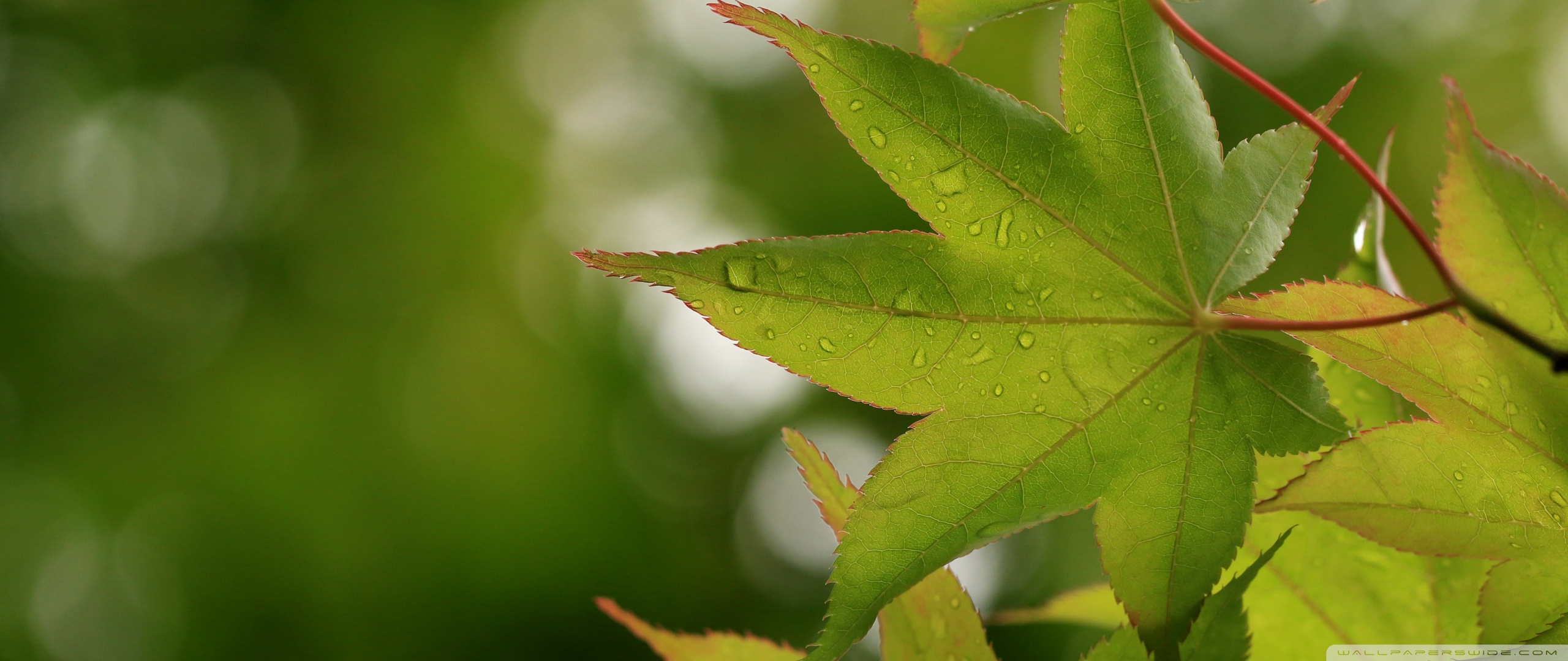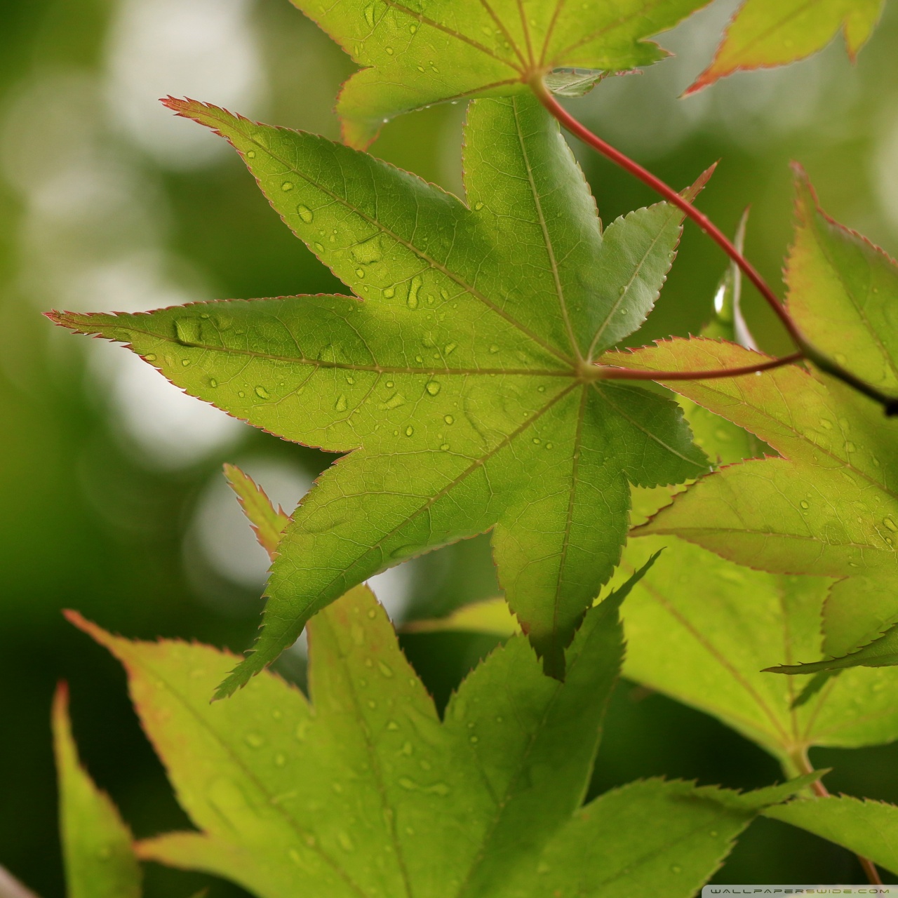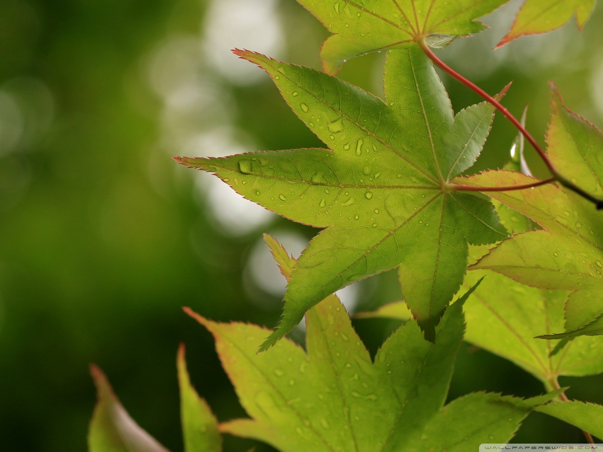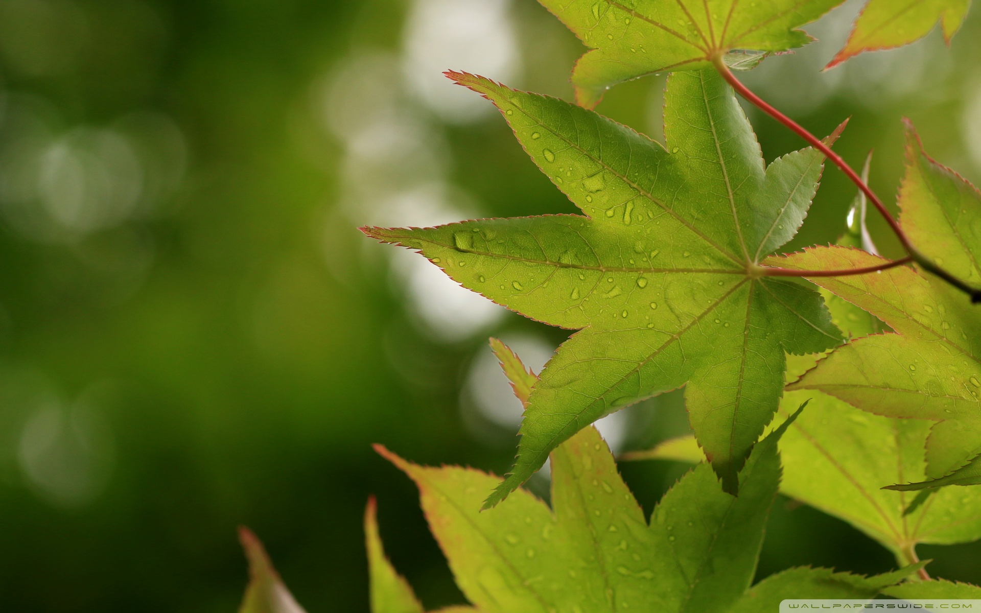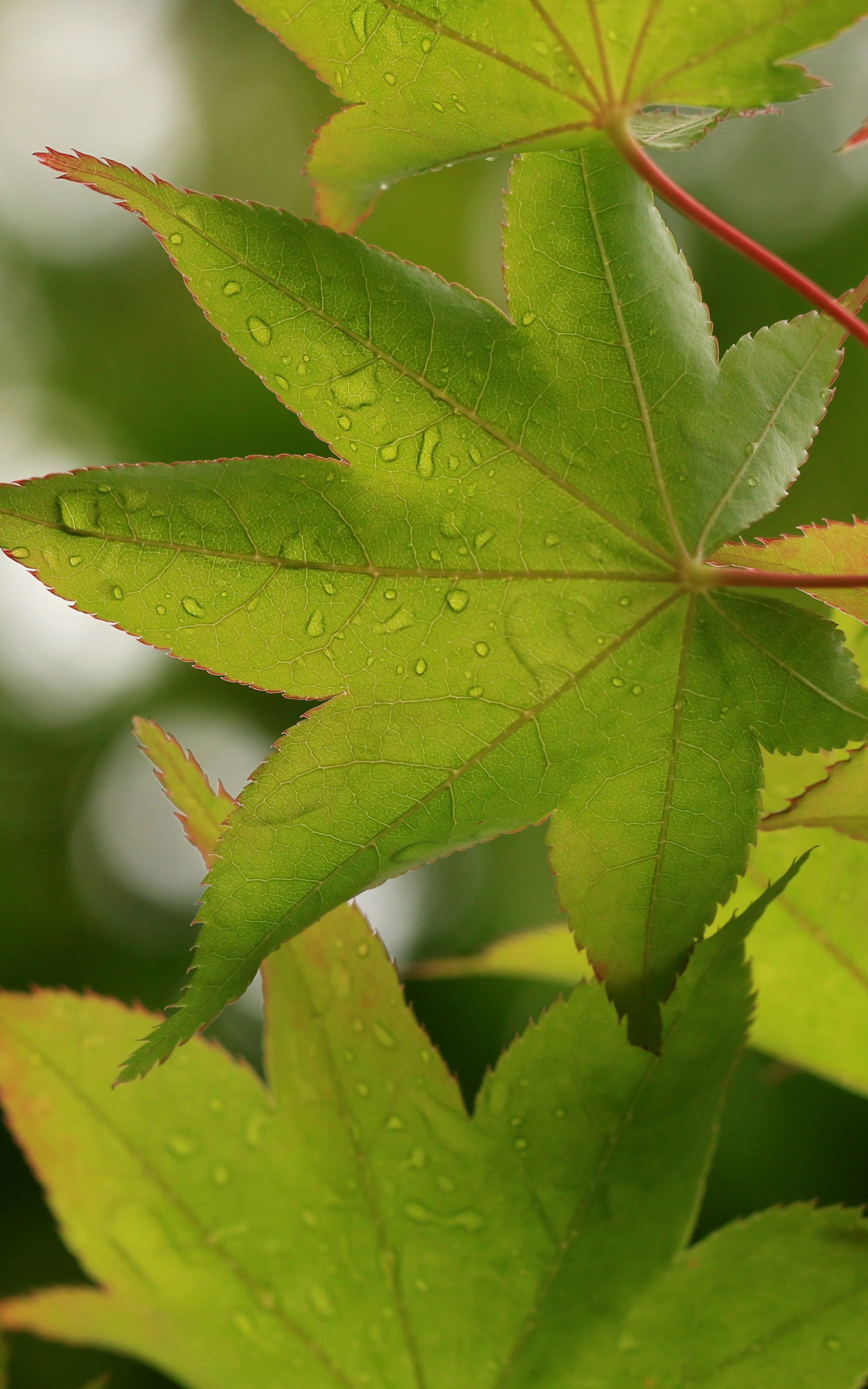 Download Green Japanese Maple Leaves after Rainfall,... 4K UHD Wallpaper