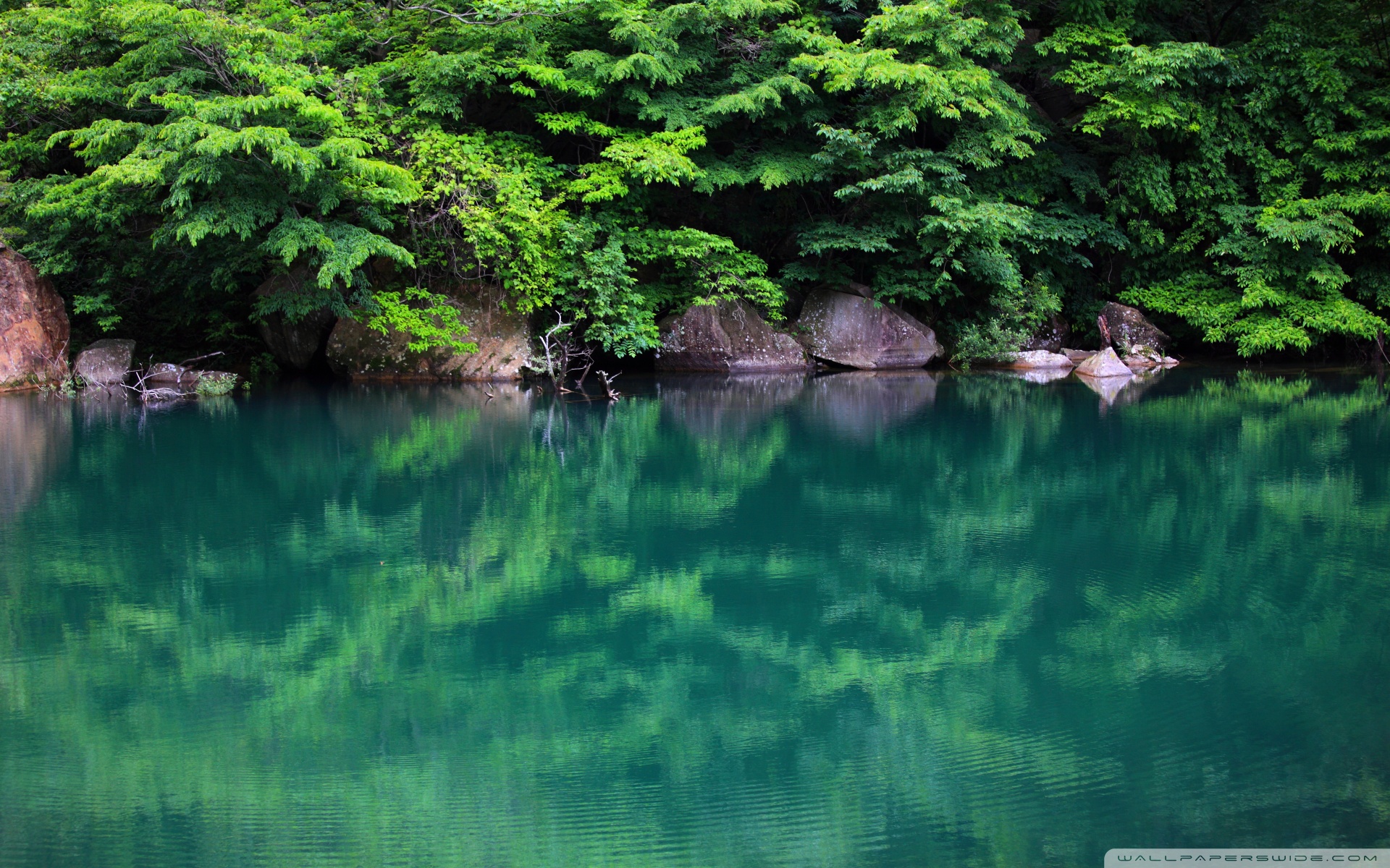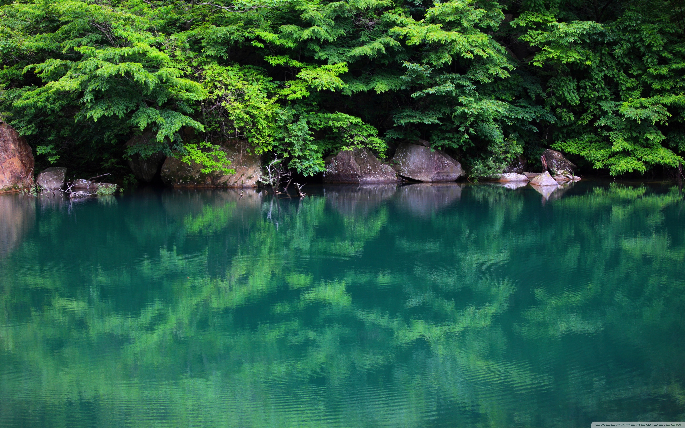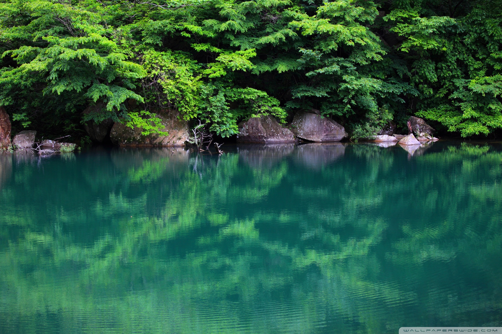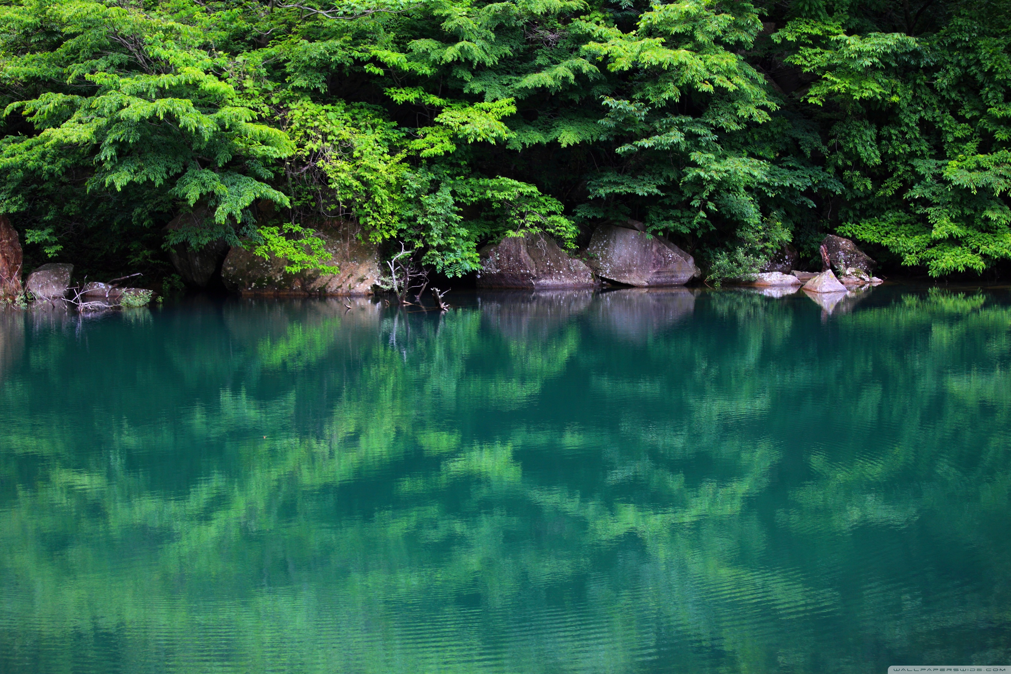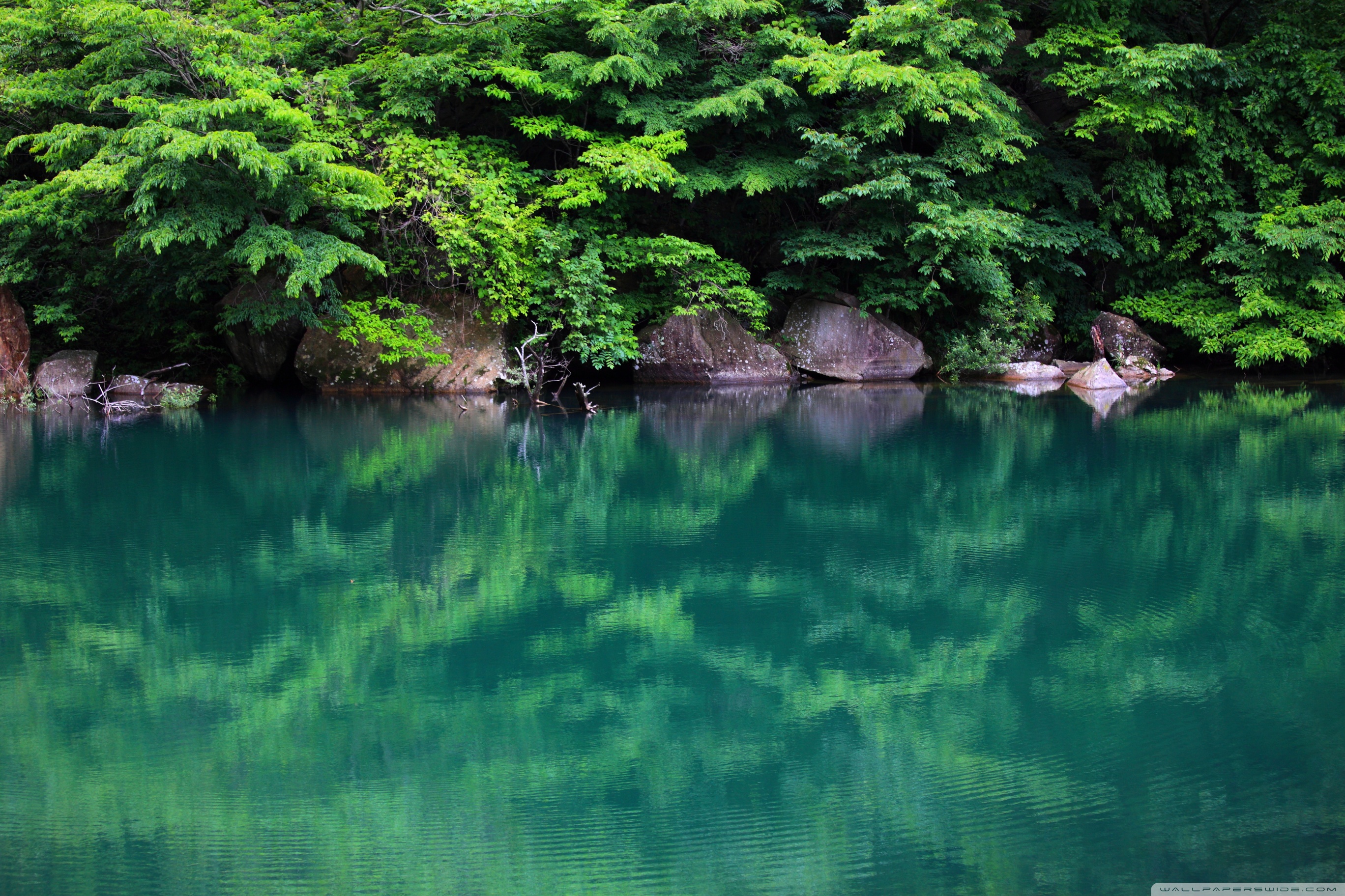 Download Green Volcanic Lake, Japan 4K UHD Wallpaper