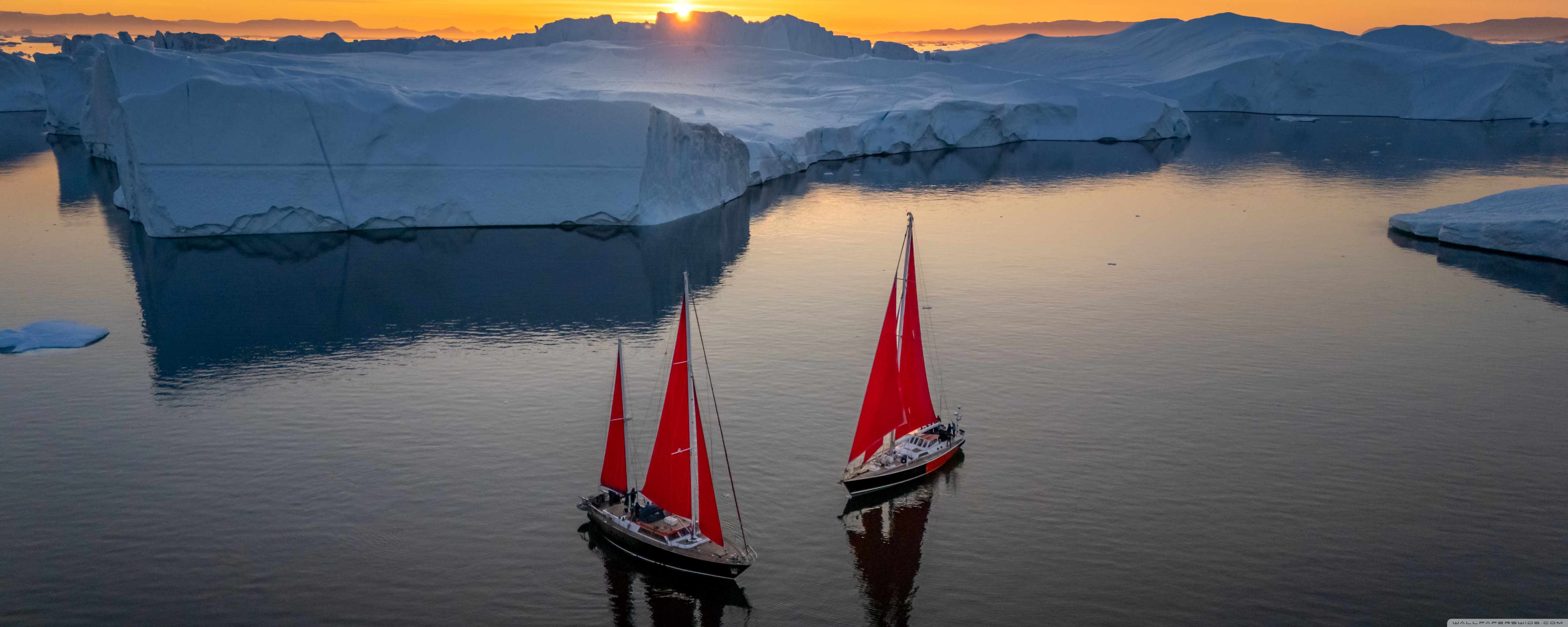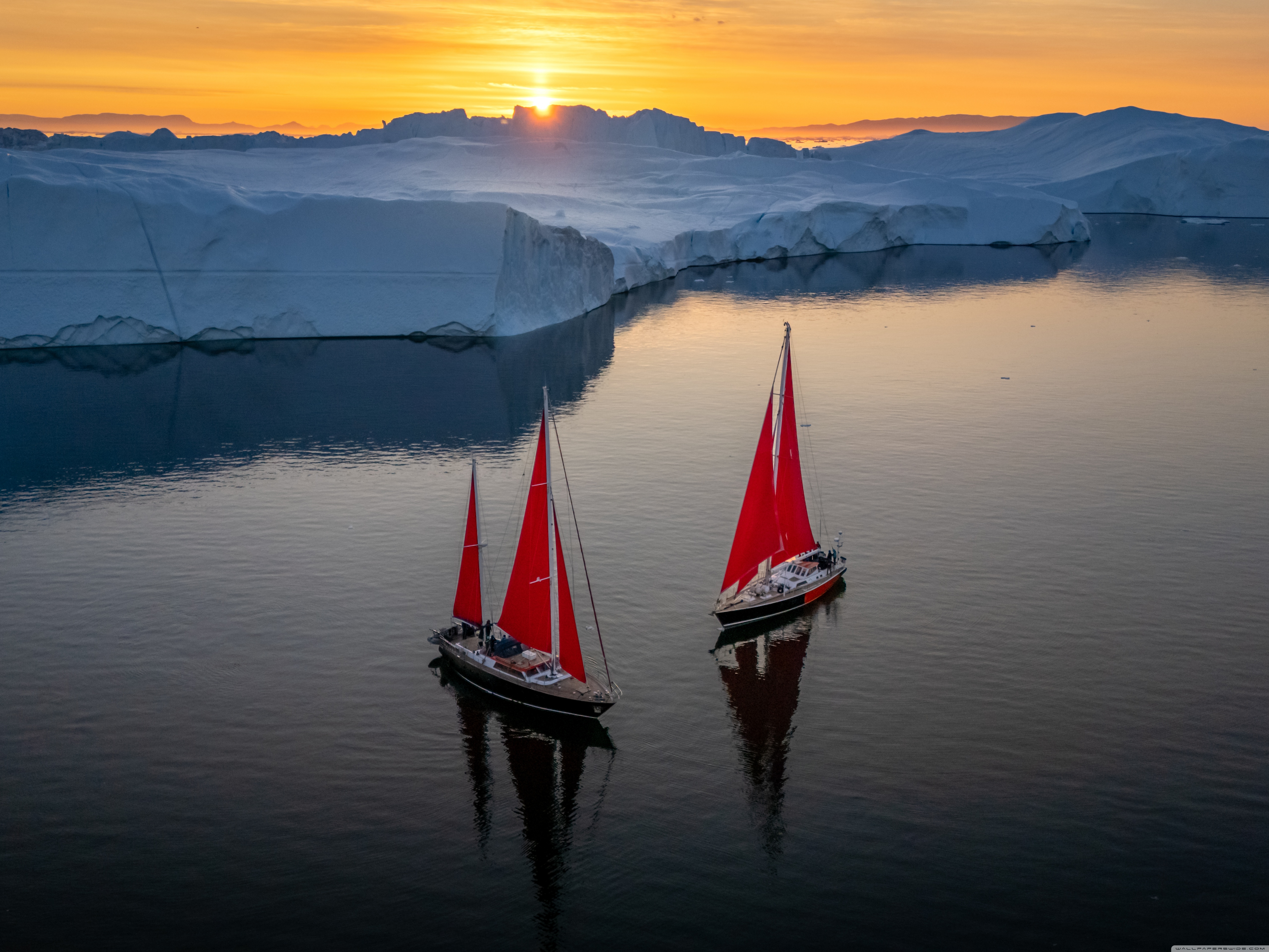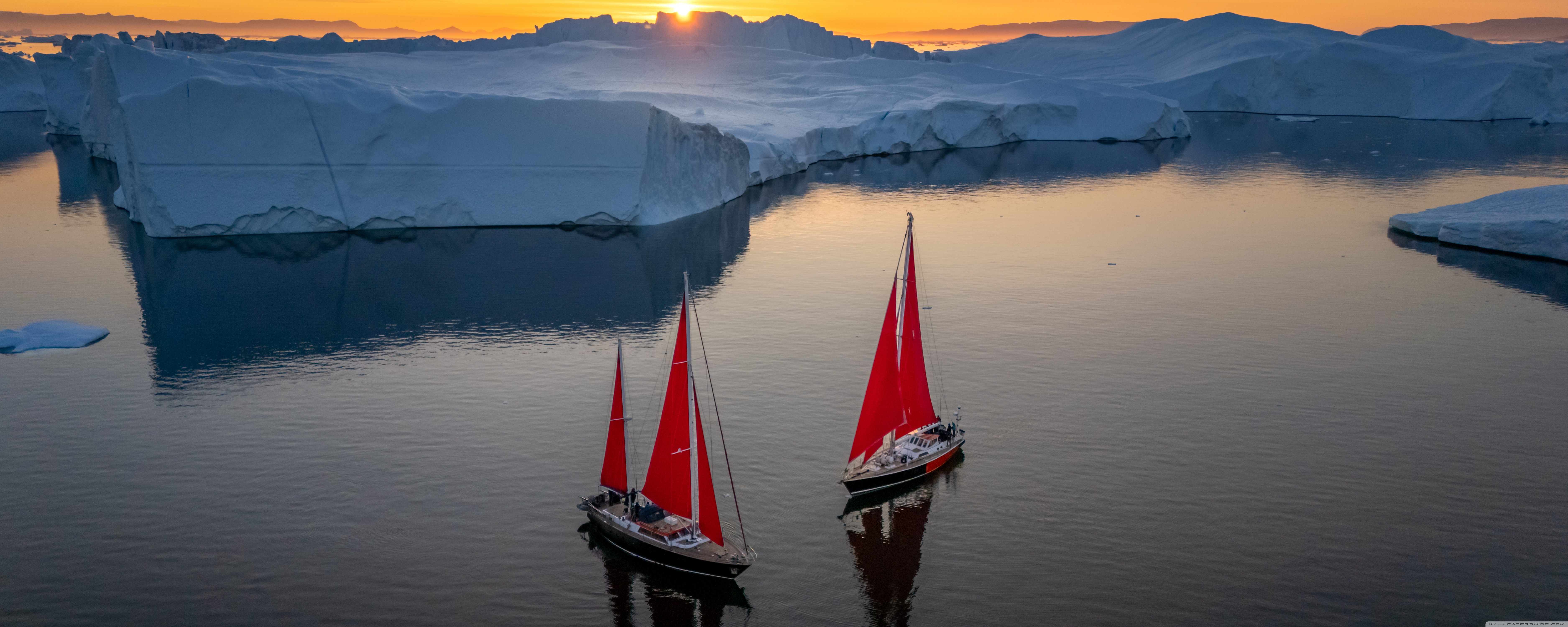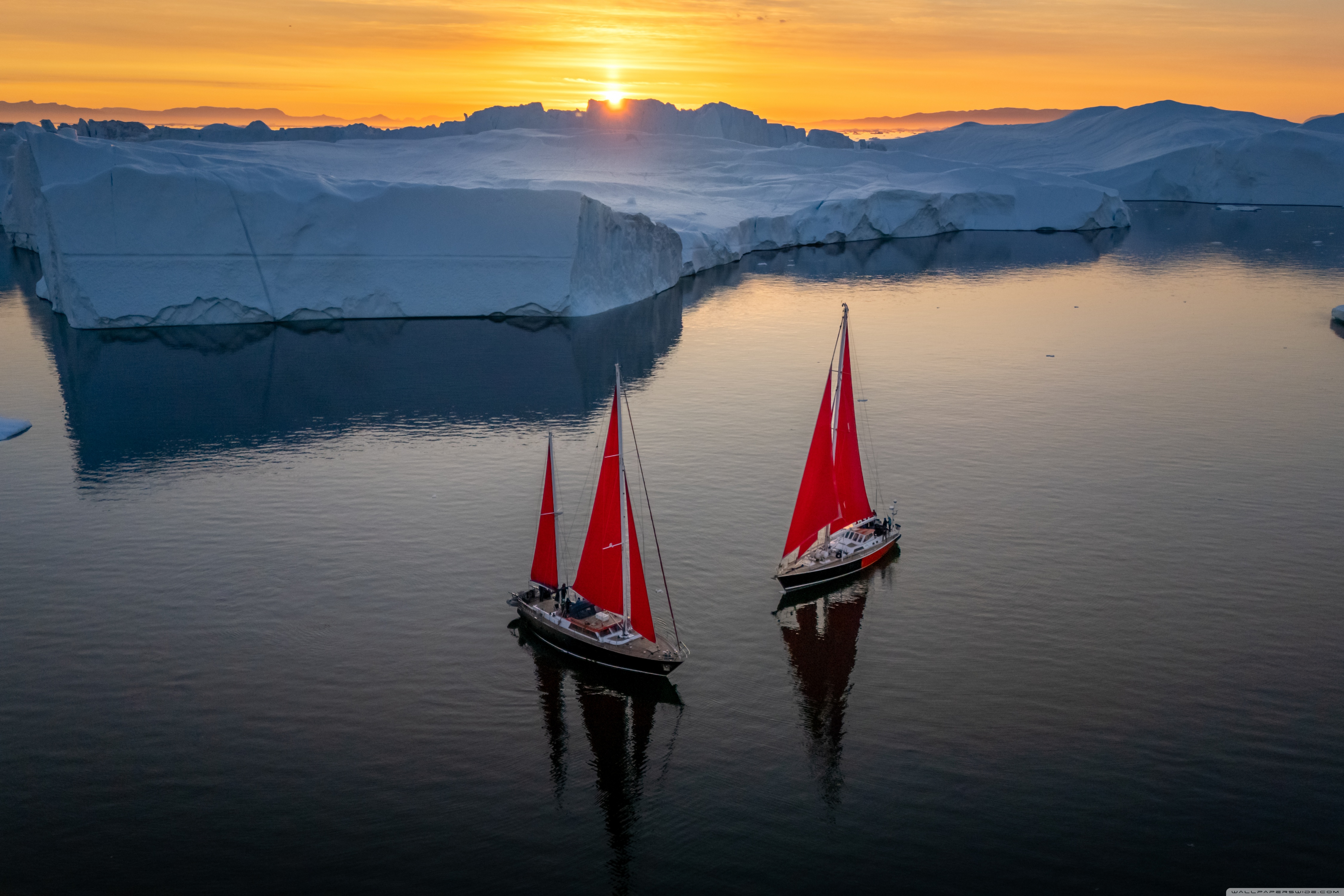 Download Greenland Sailing Boats at Sunset across Ice... 4K UHD Wallpaper