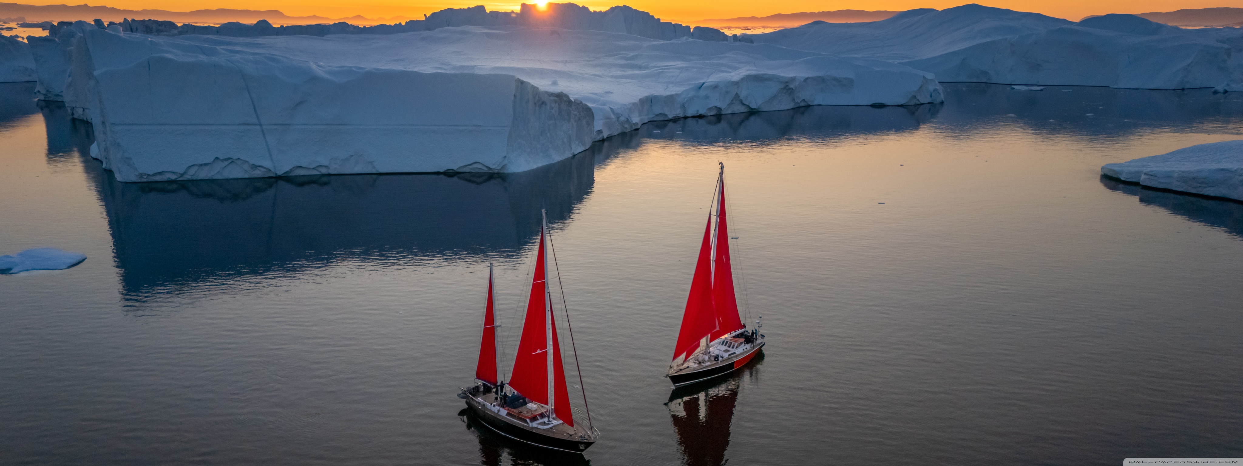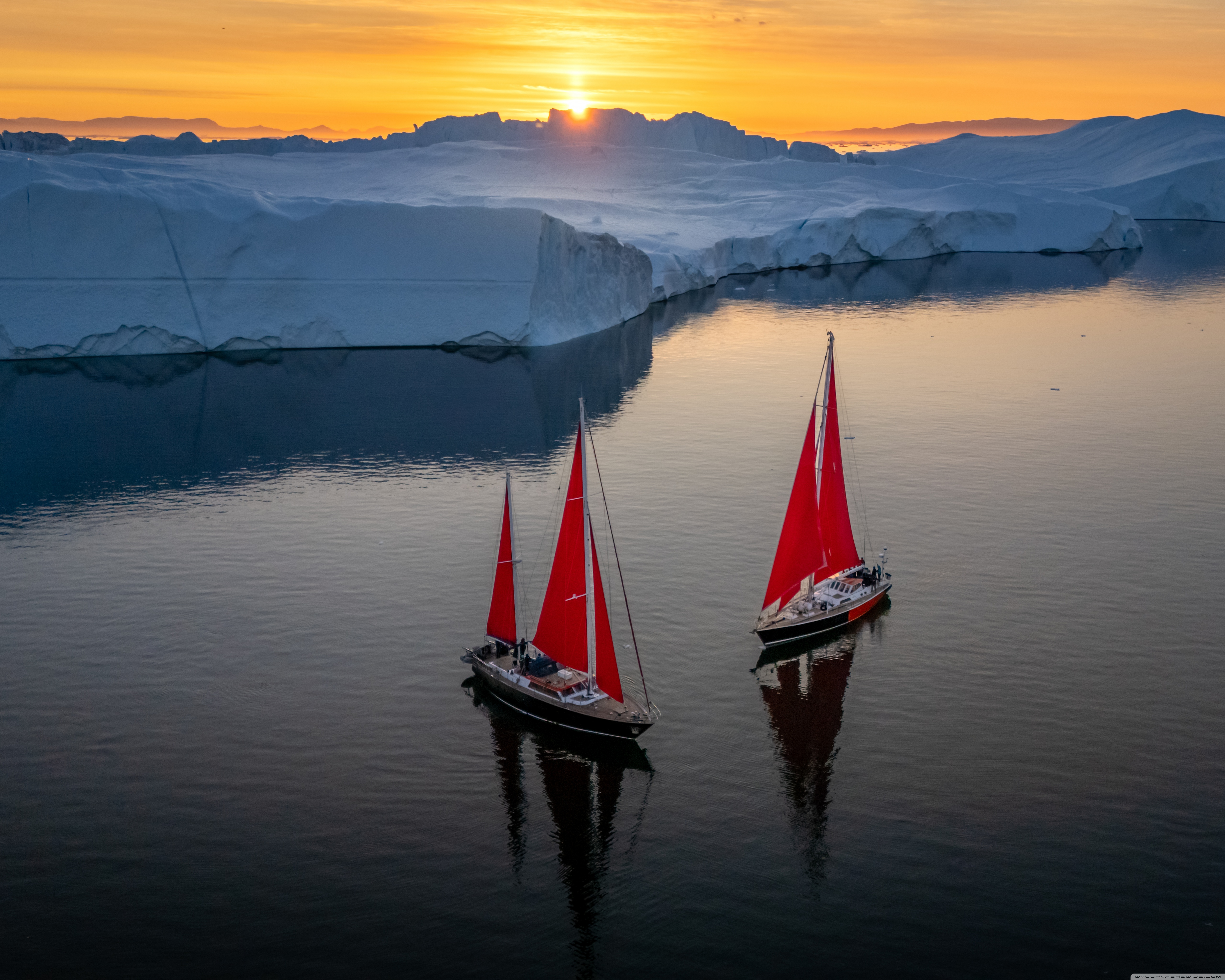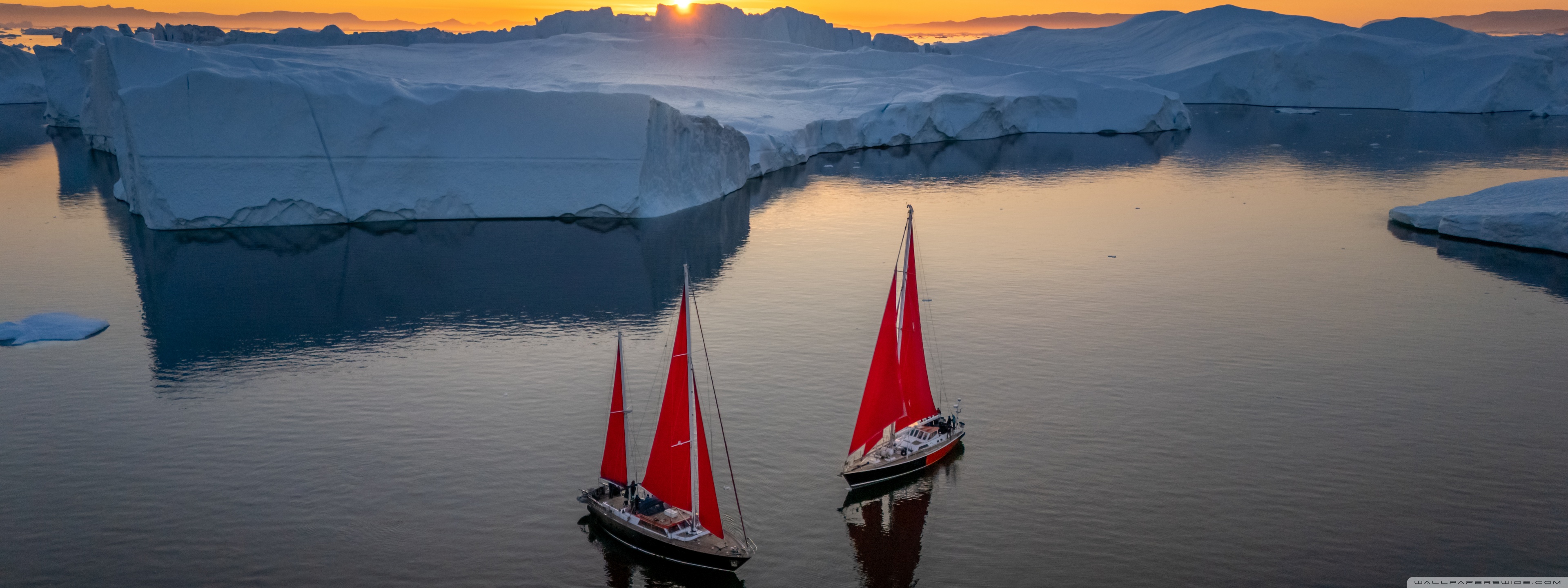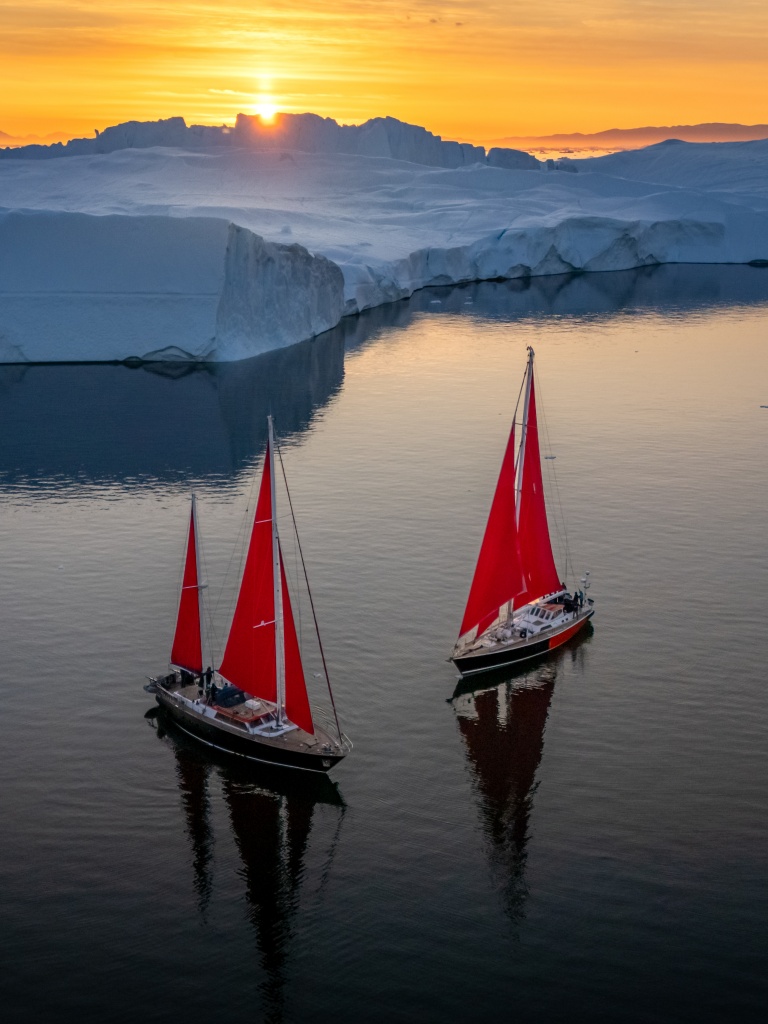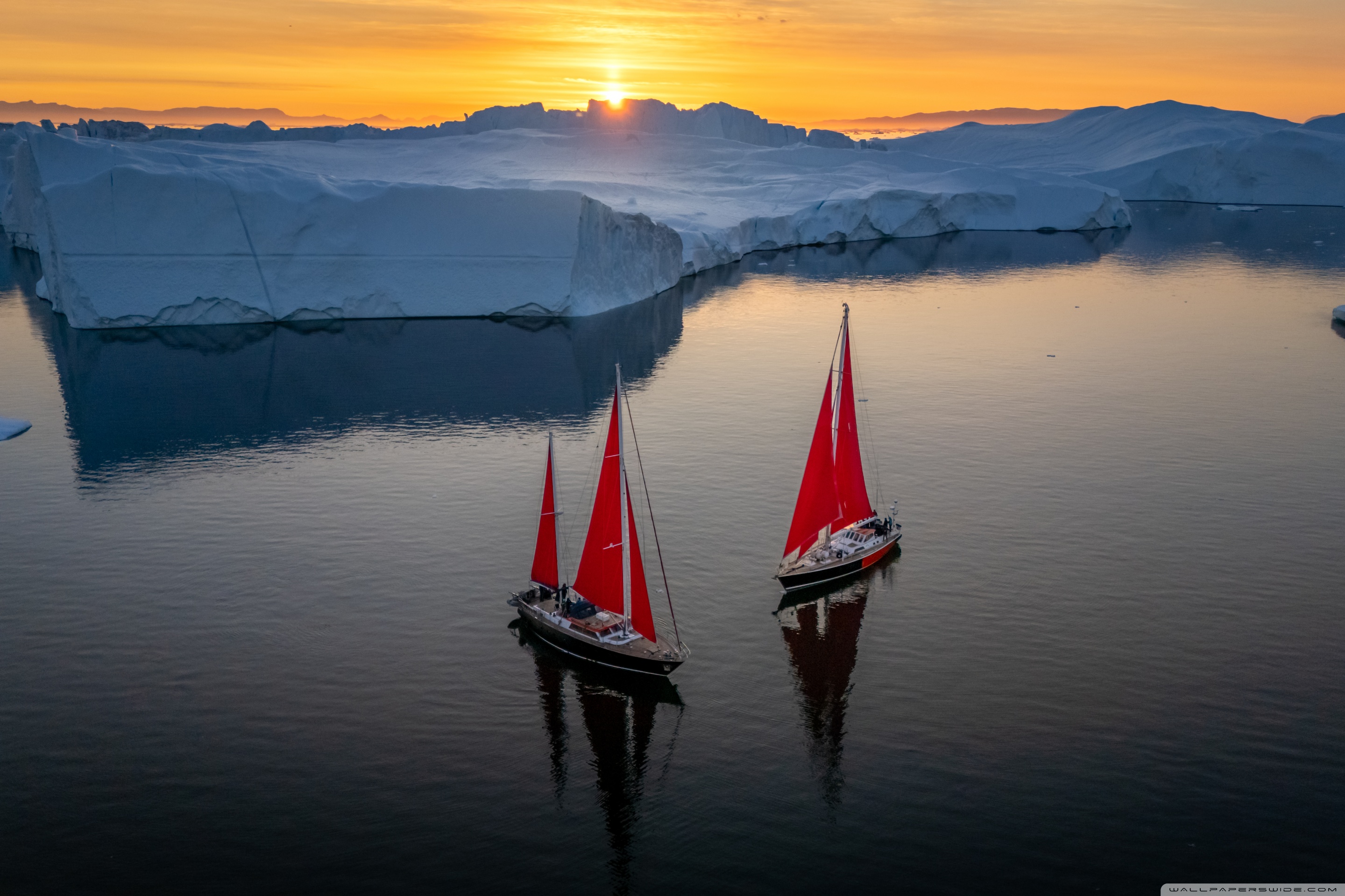 Download Greenland Sailing Boats at Sunset across Ice... 4K UHD Wallpaper