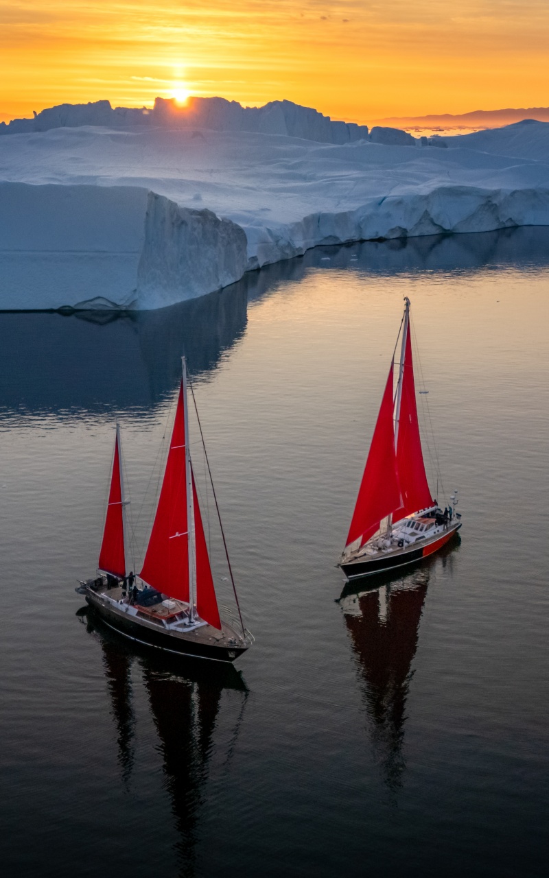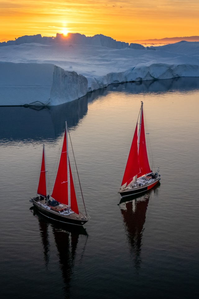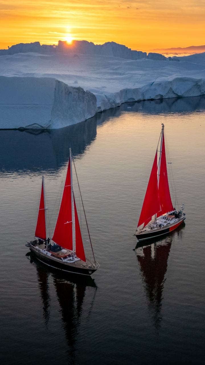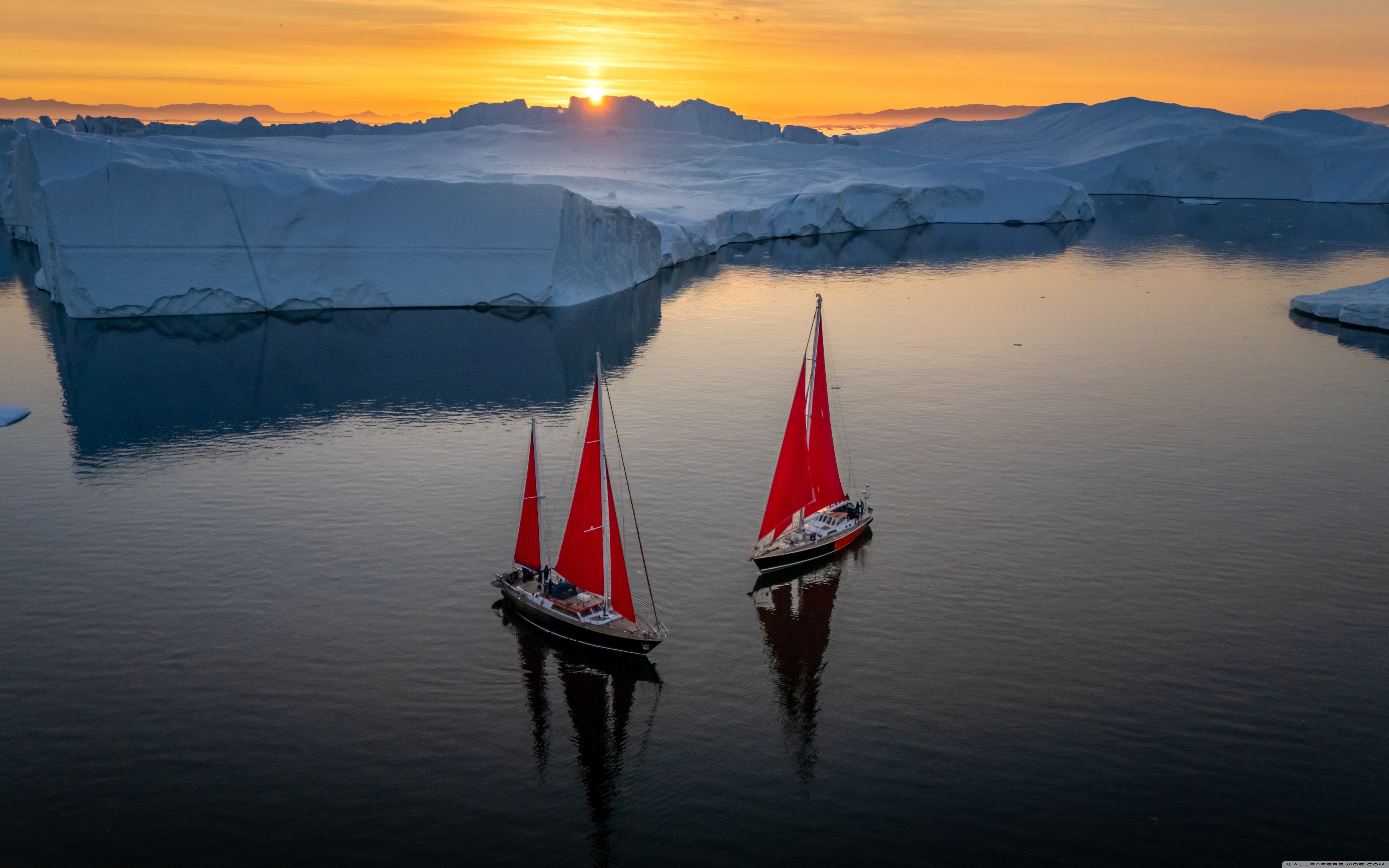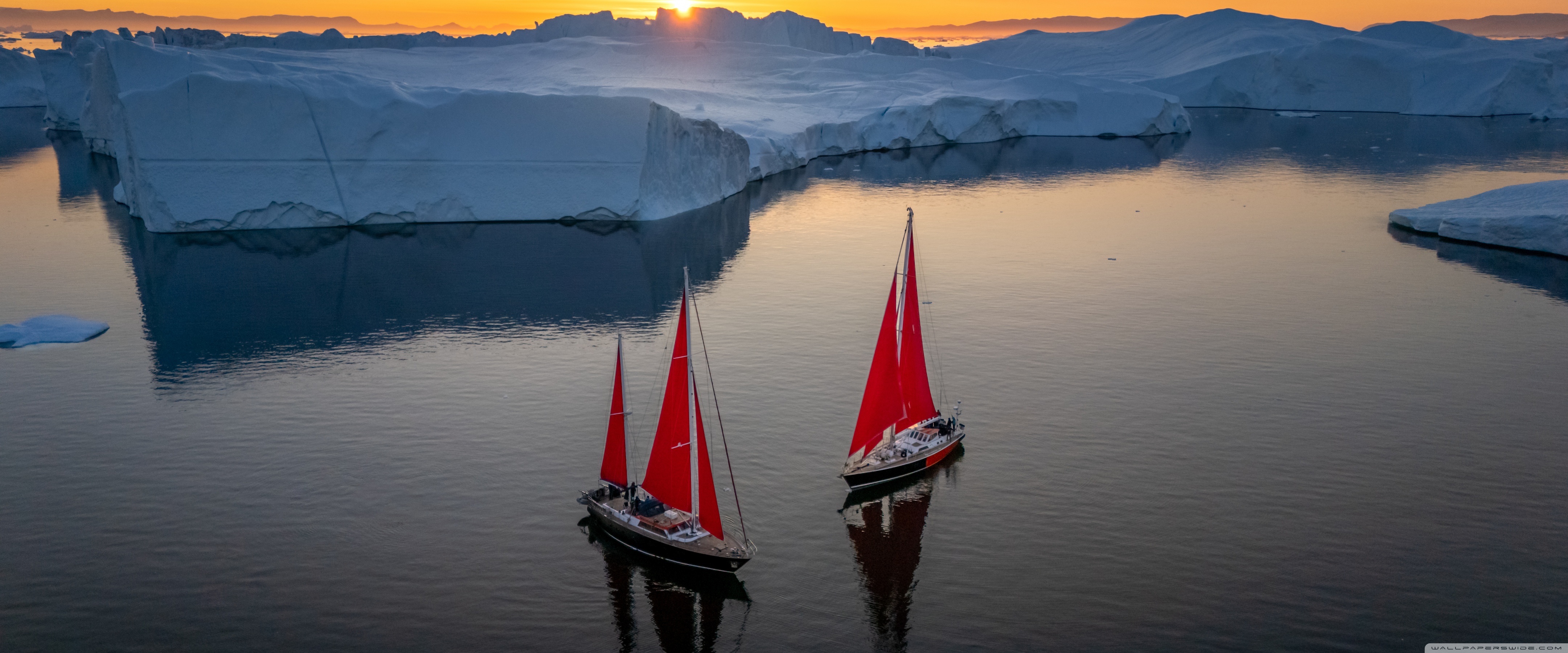 Download Greenland Sailing Boats at Sunset across Ice... 4K UHD Wallpaper