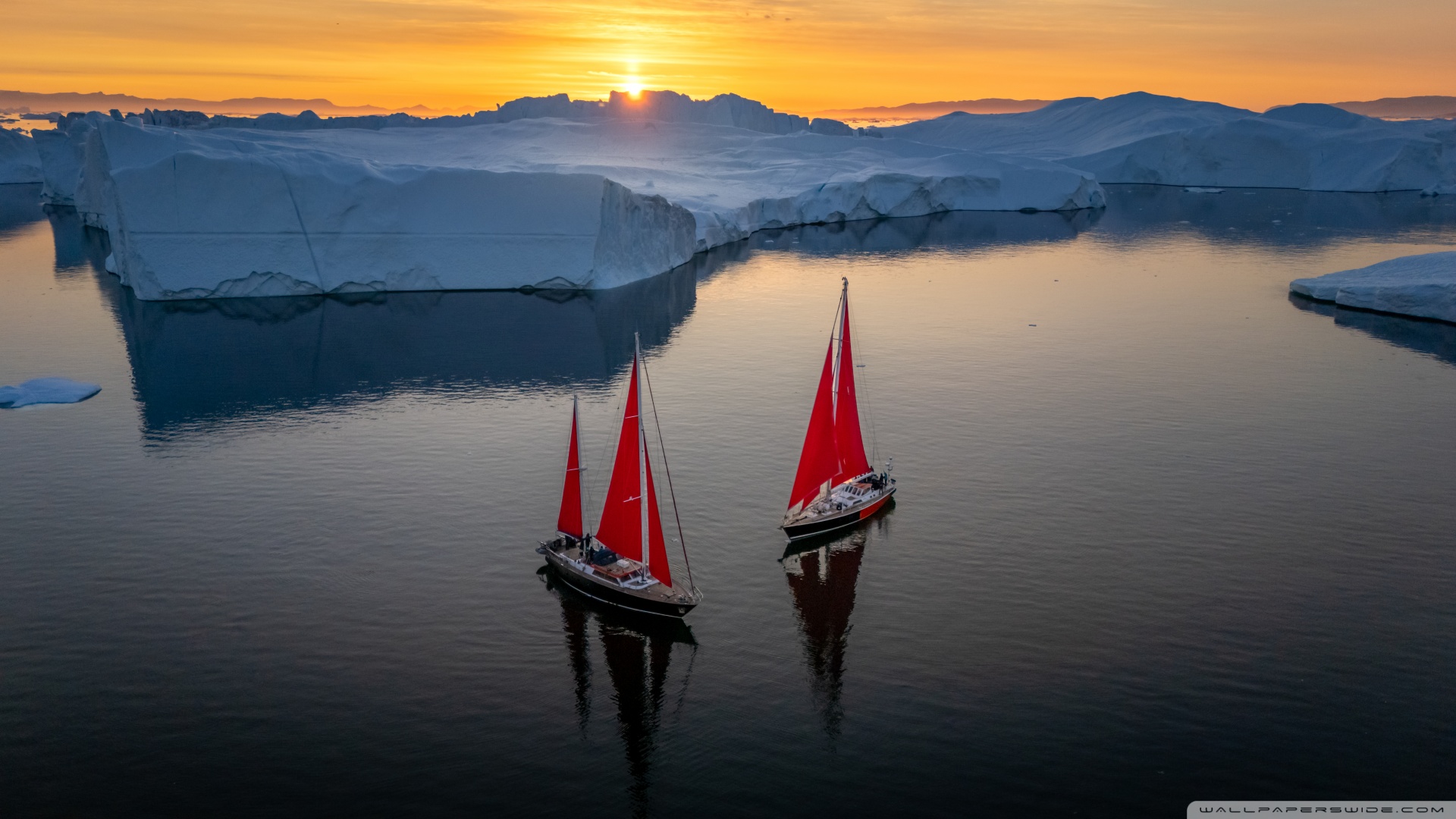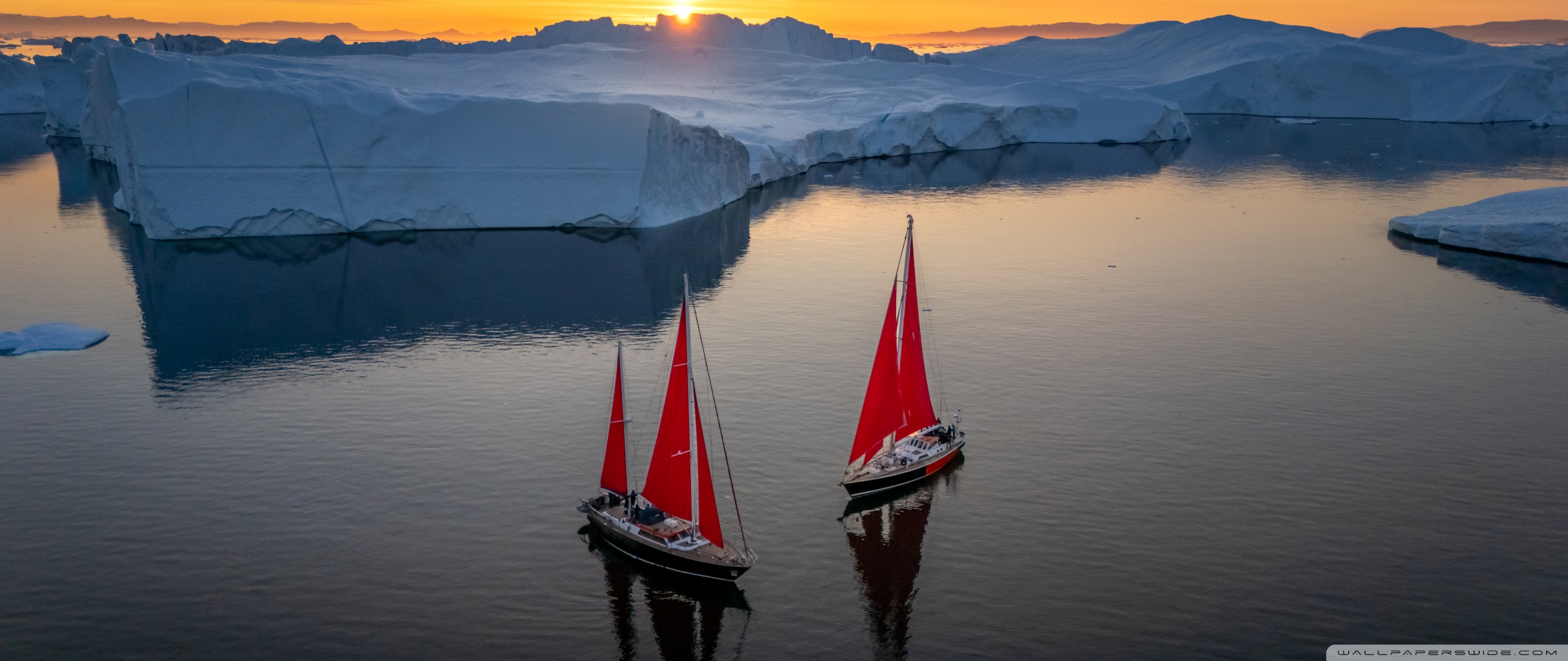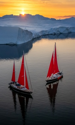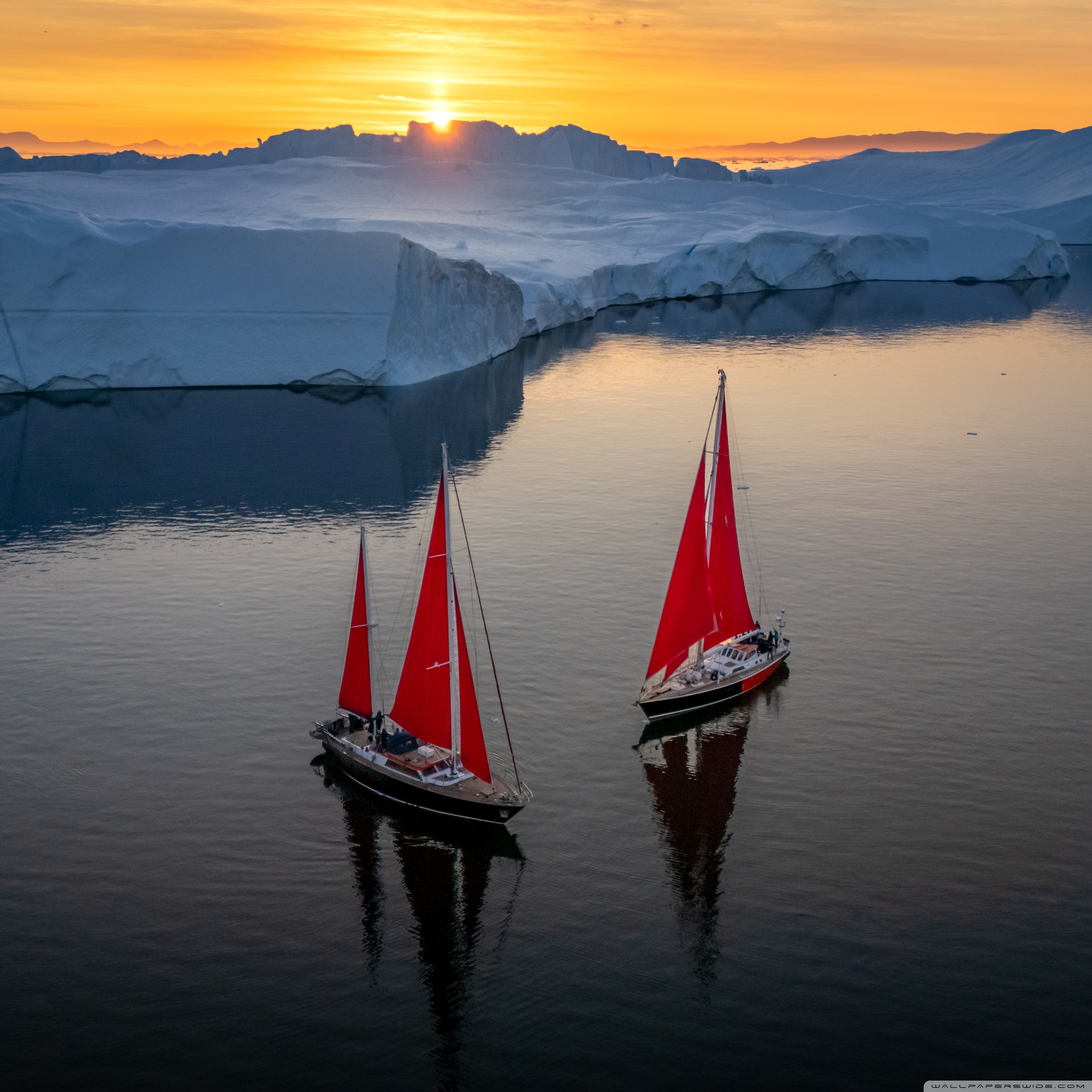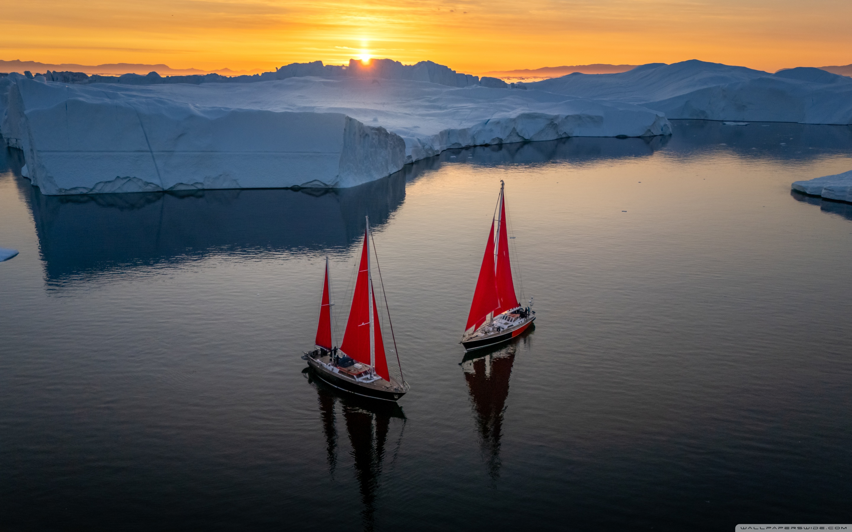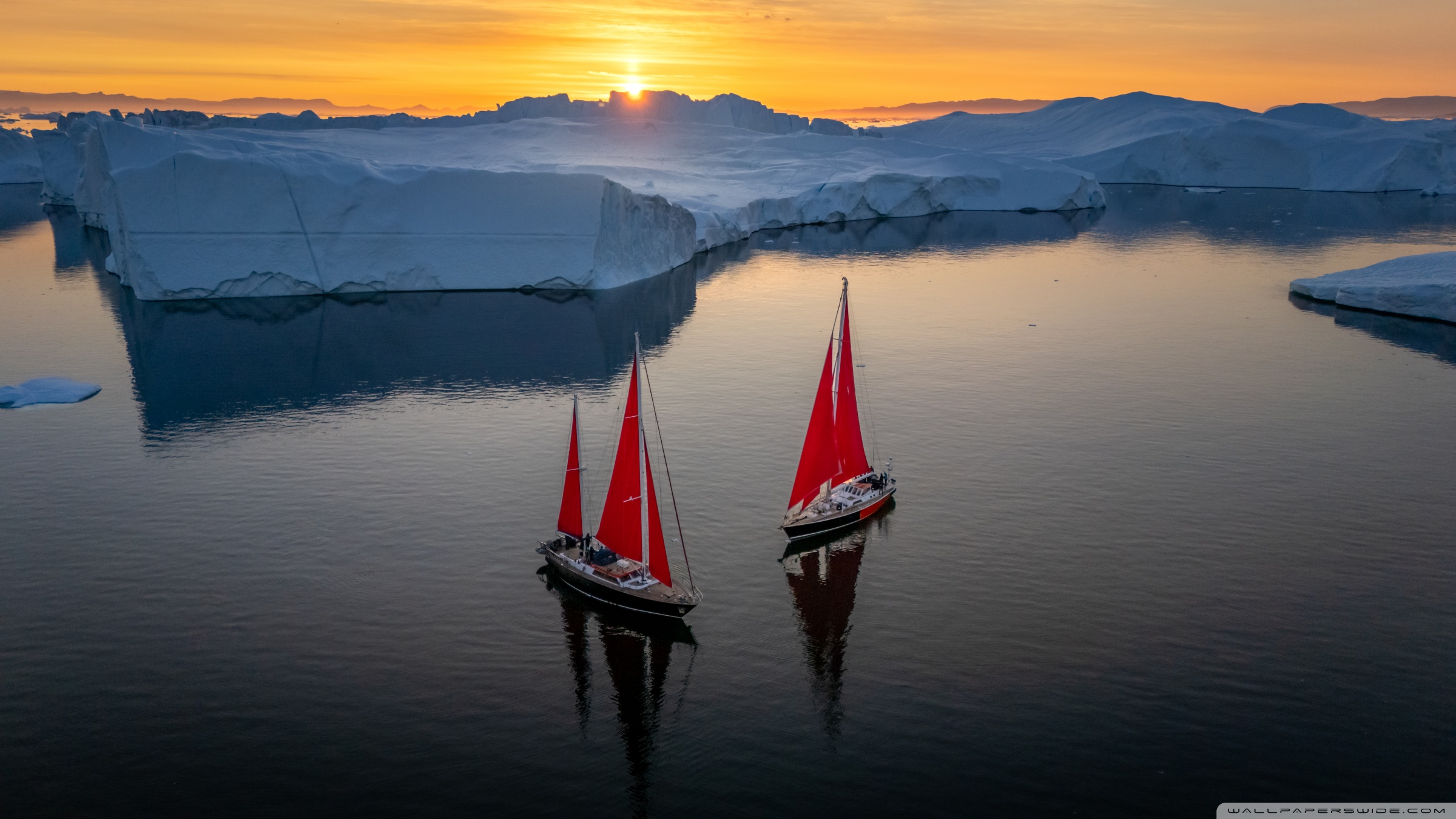Download Greenland Sailing Boats at Sunset across Ice... 4K UHD Wallpaper