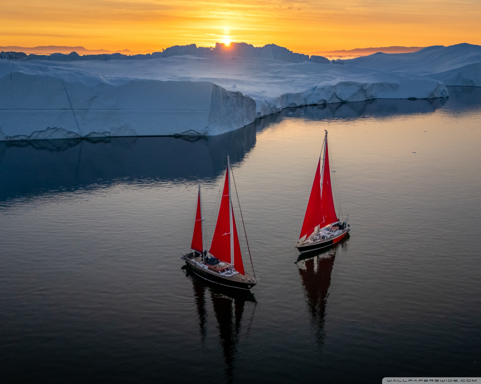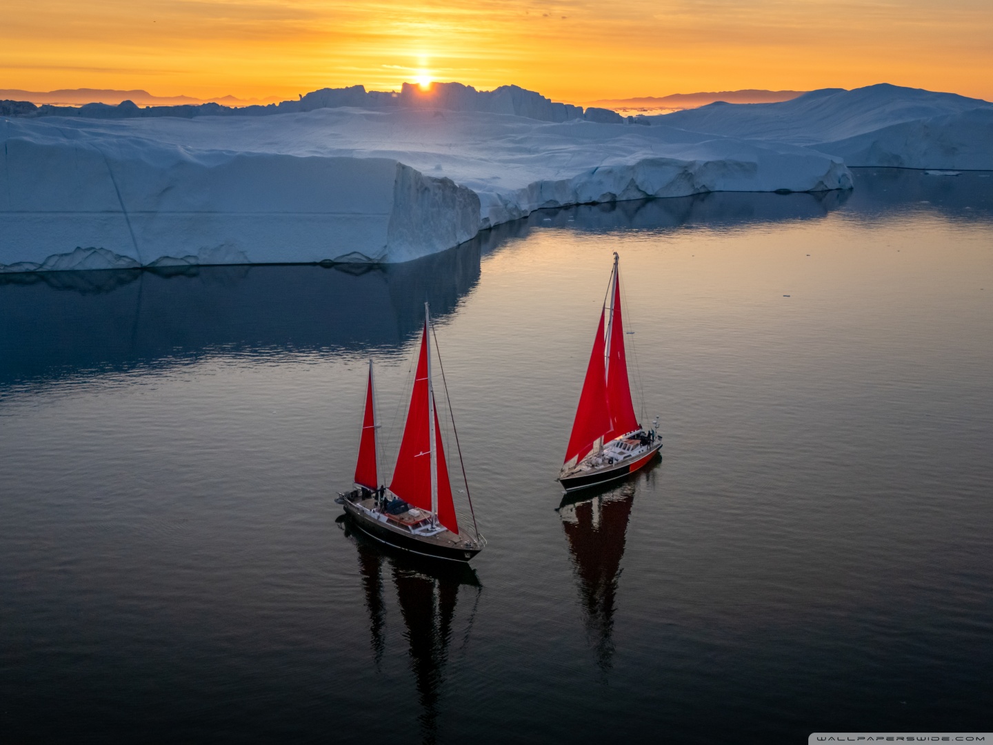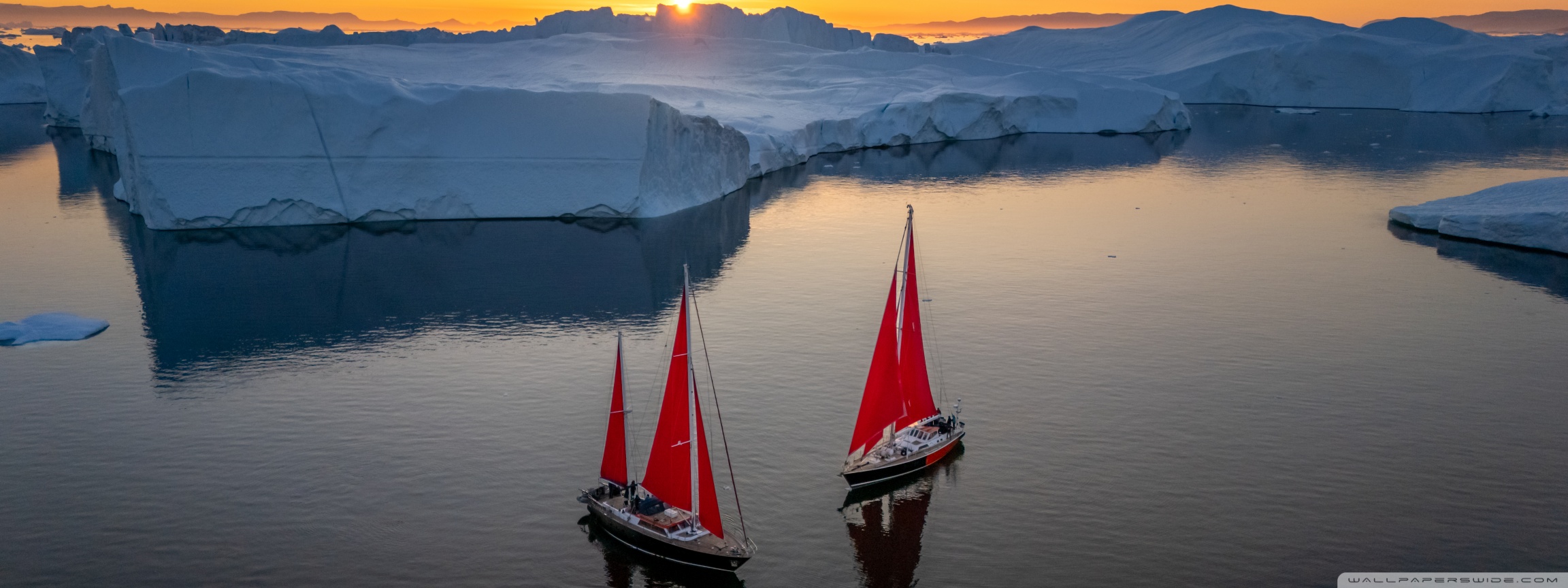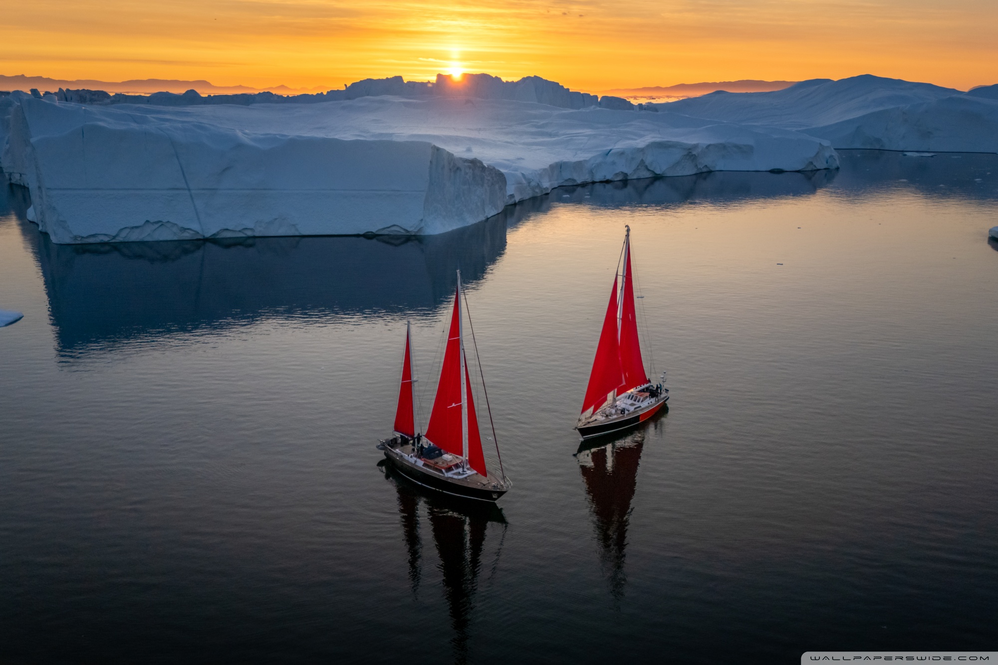 Download Greenland Sailing Boats at Sunset across Ice... 4K UHD Wallpaper