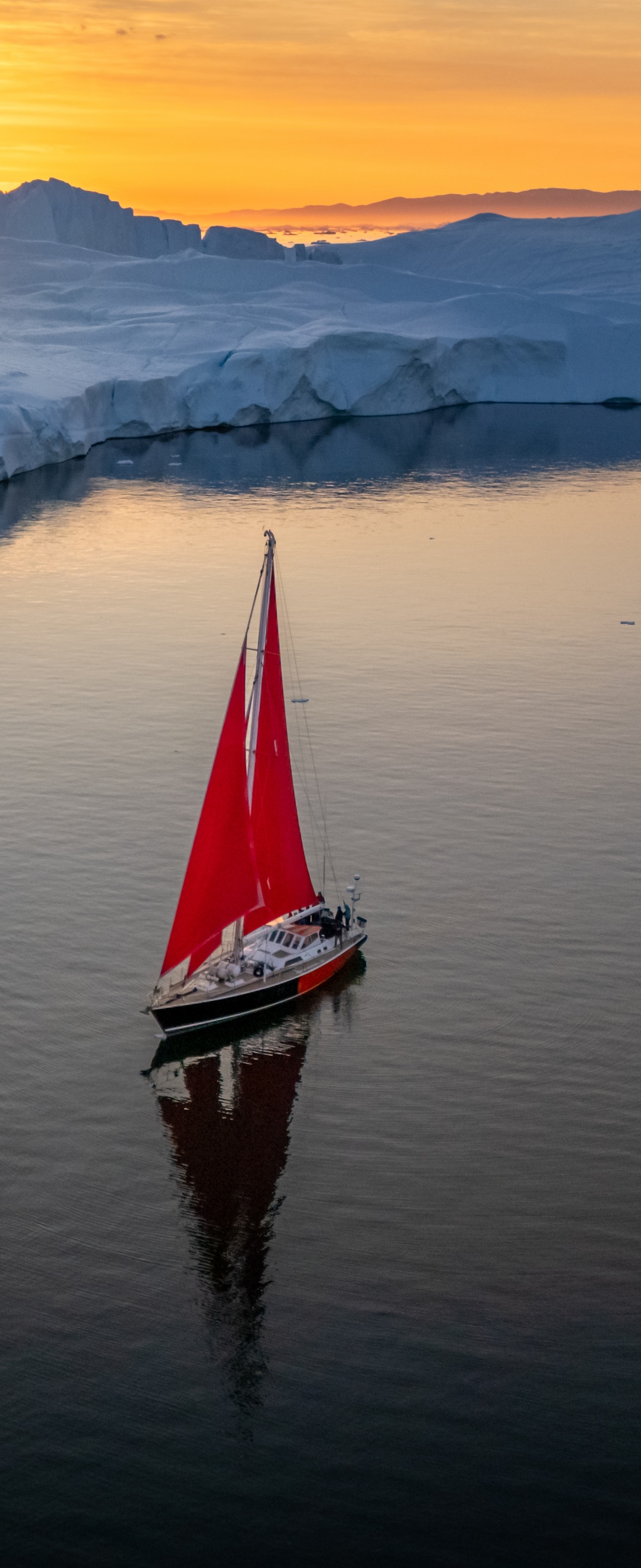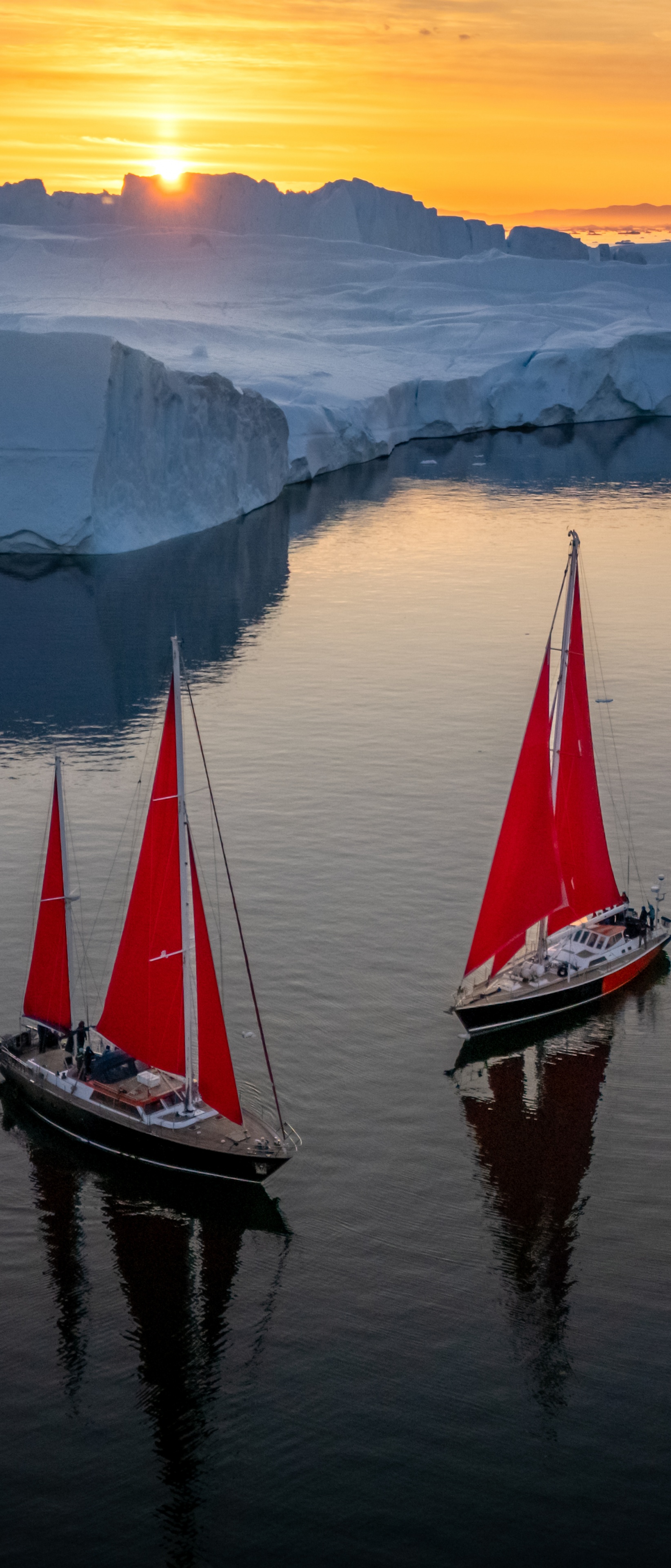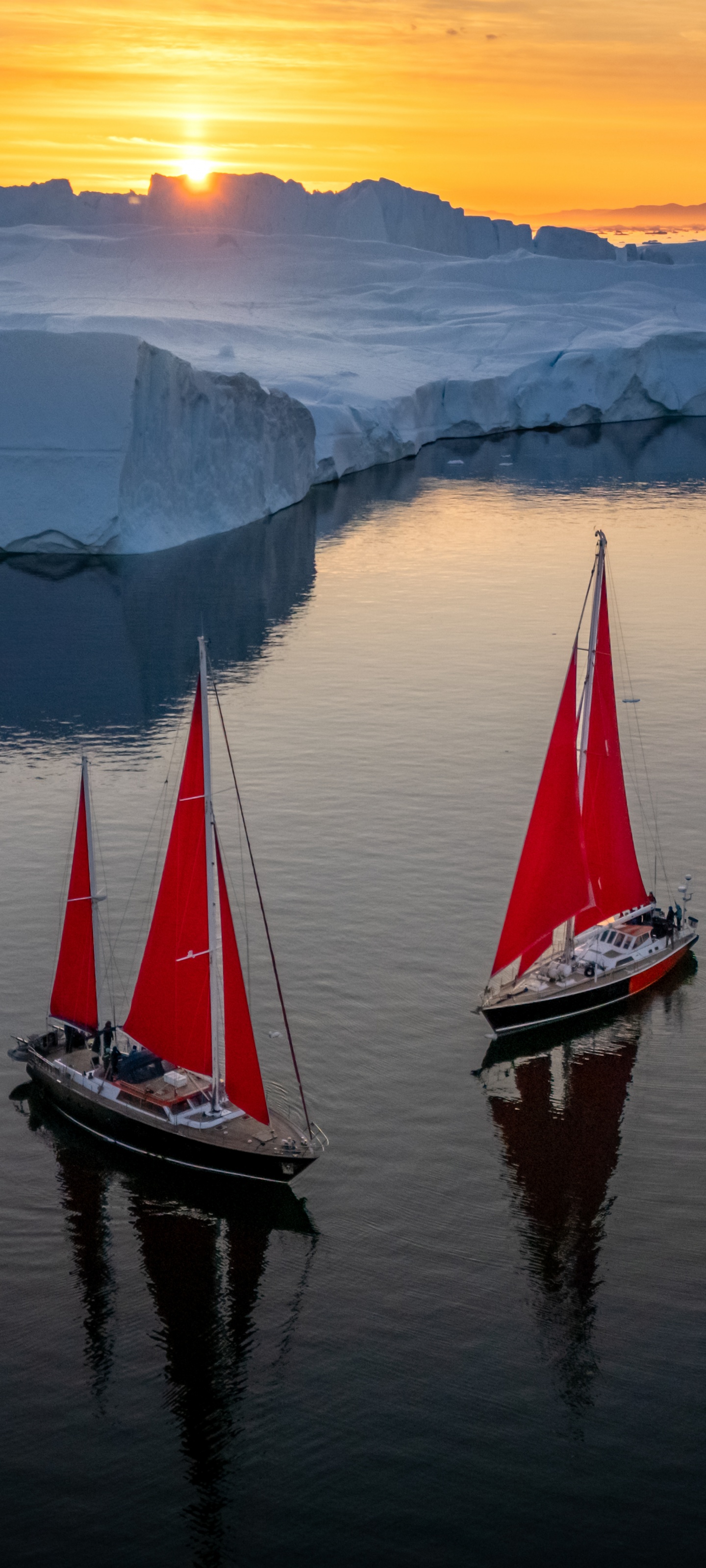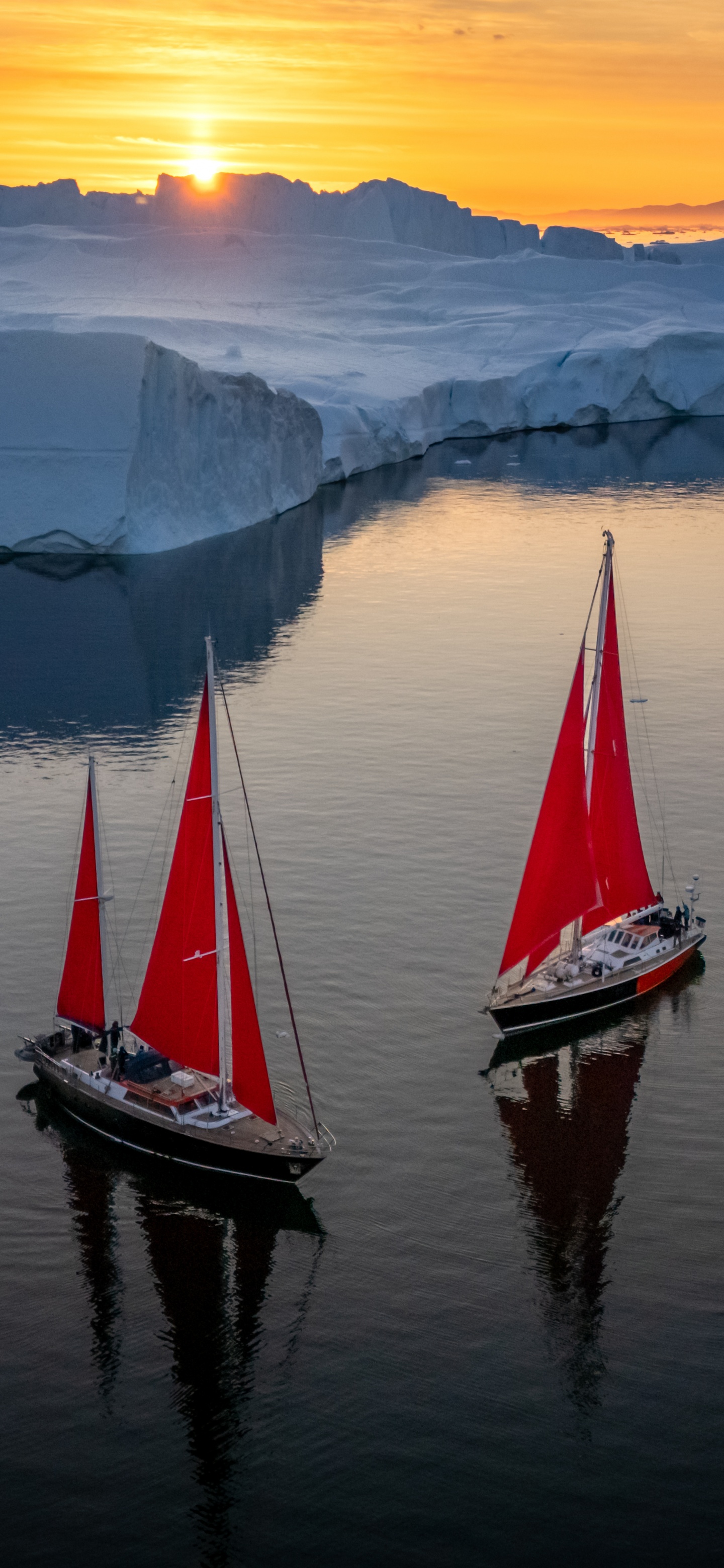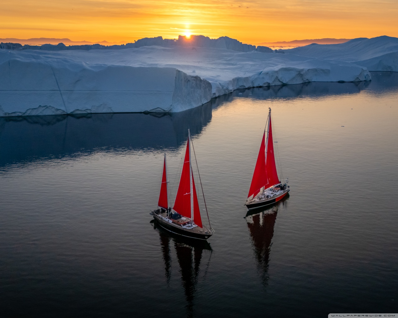 Download Greenland Sailing Boats at Sunset across Ice... 4K UHD Wallpaper