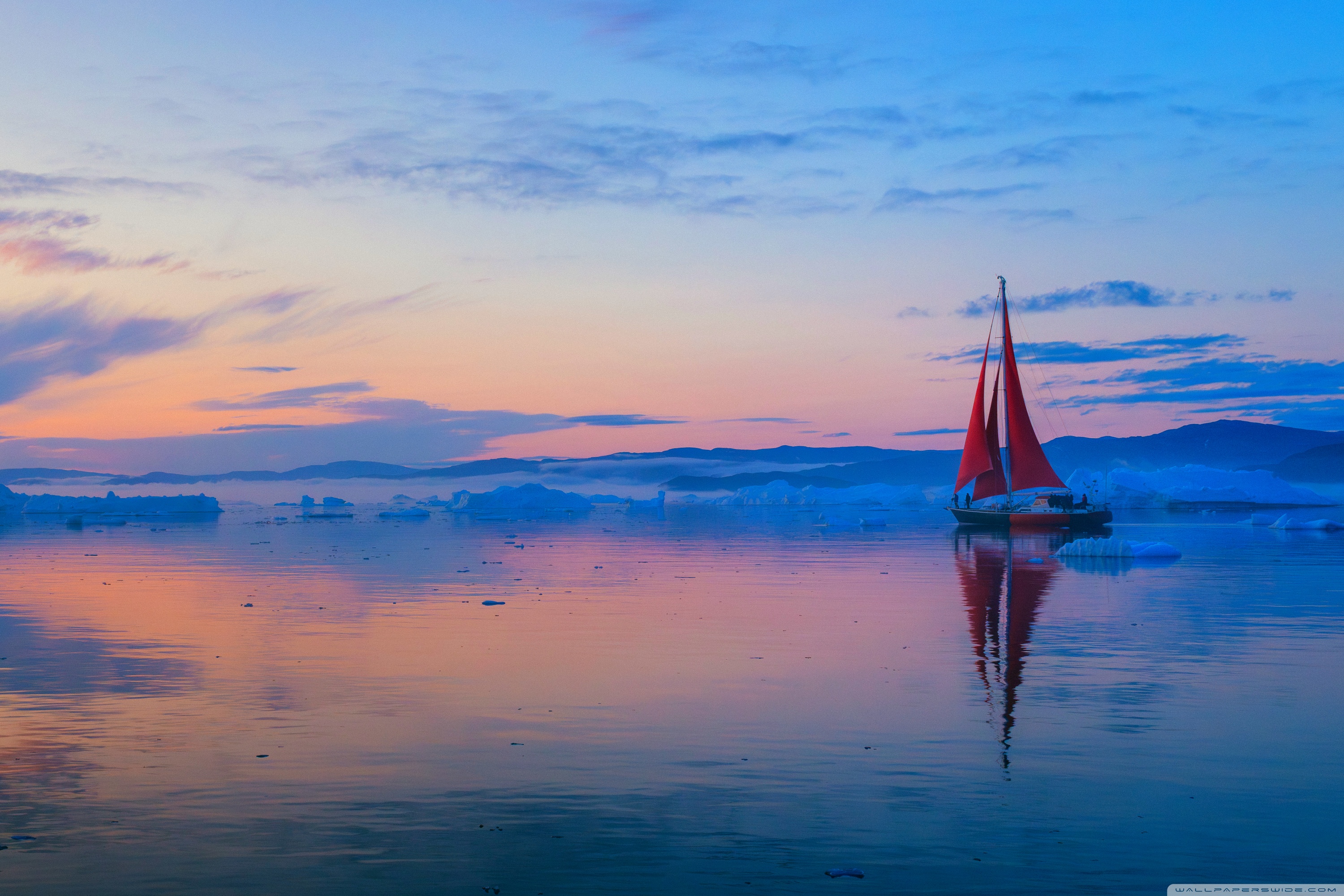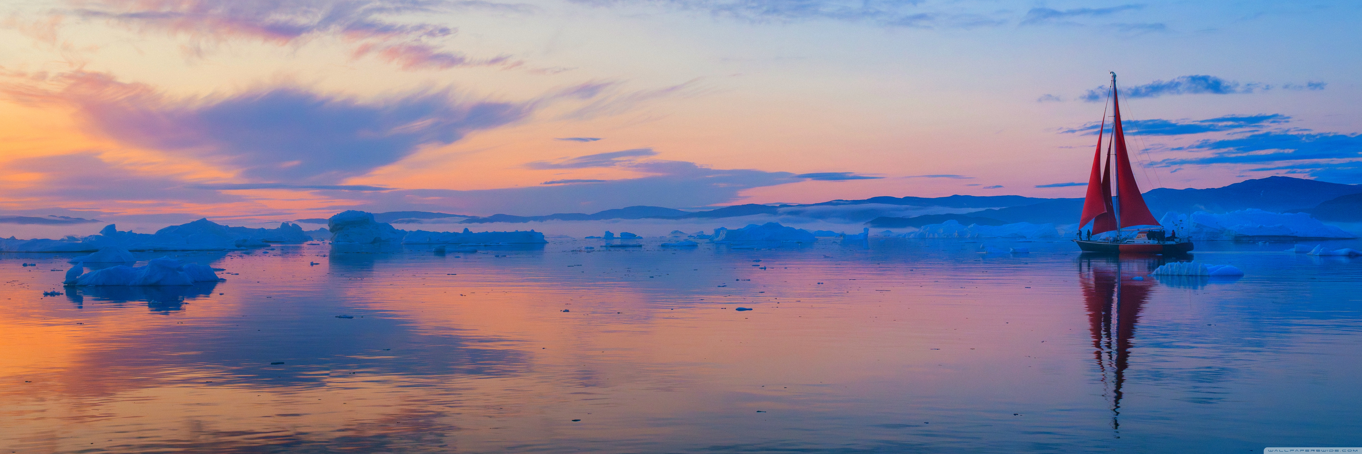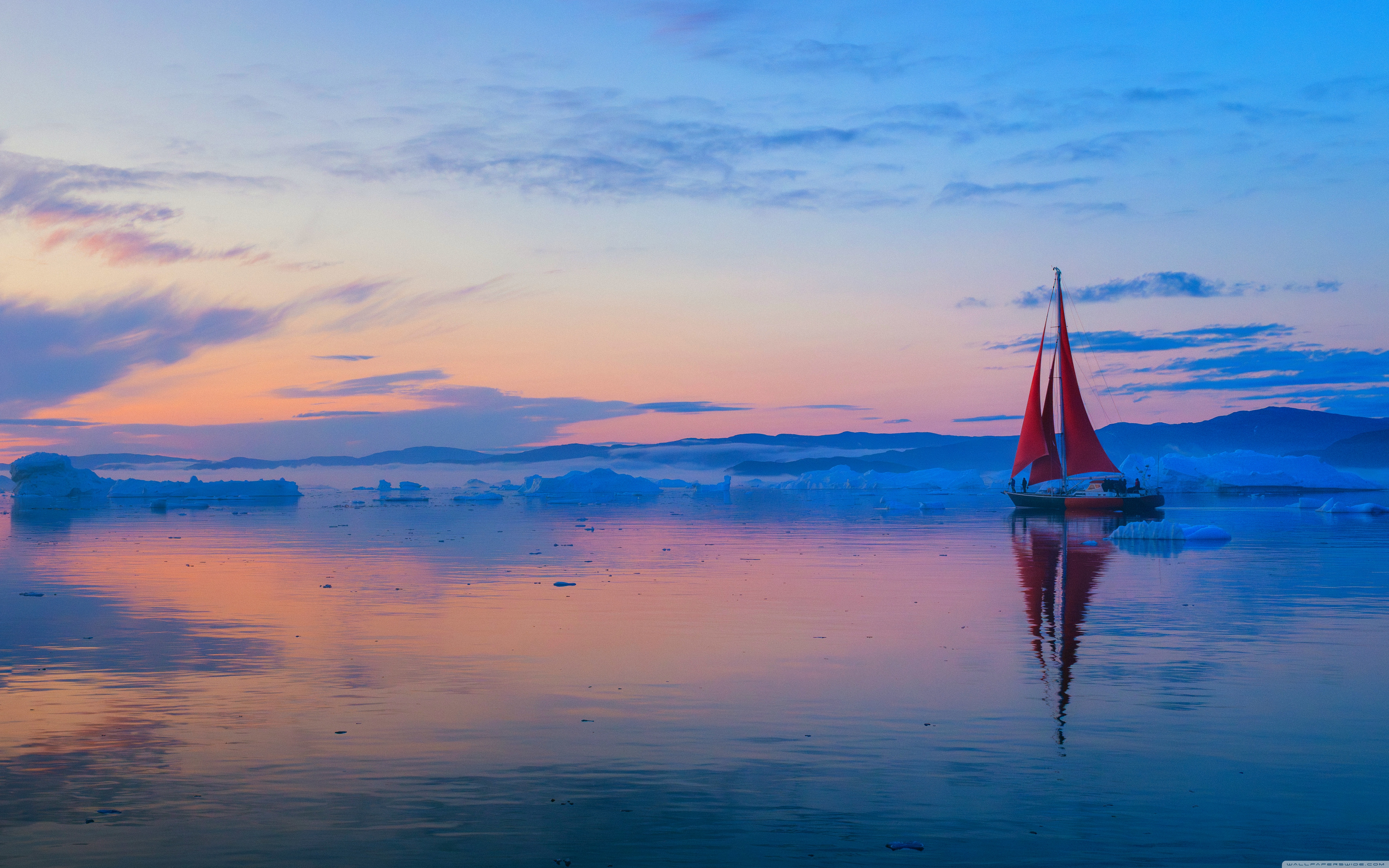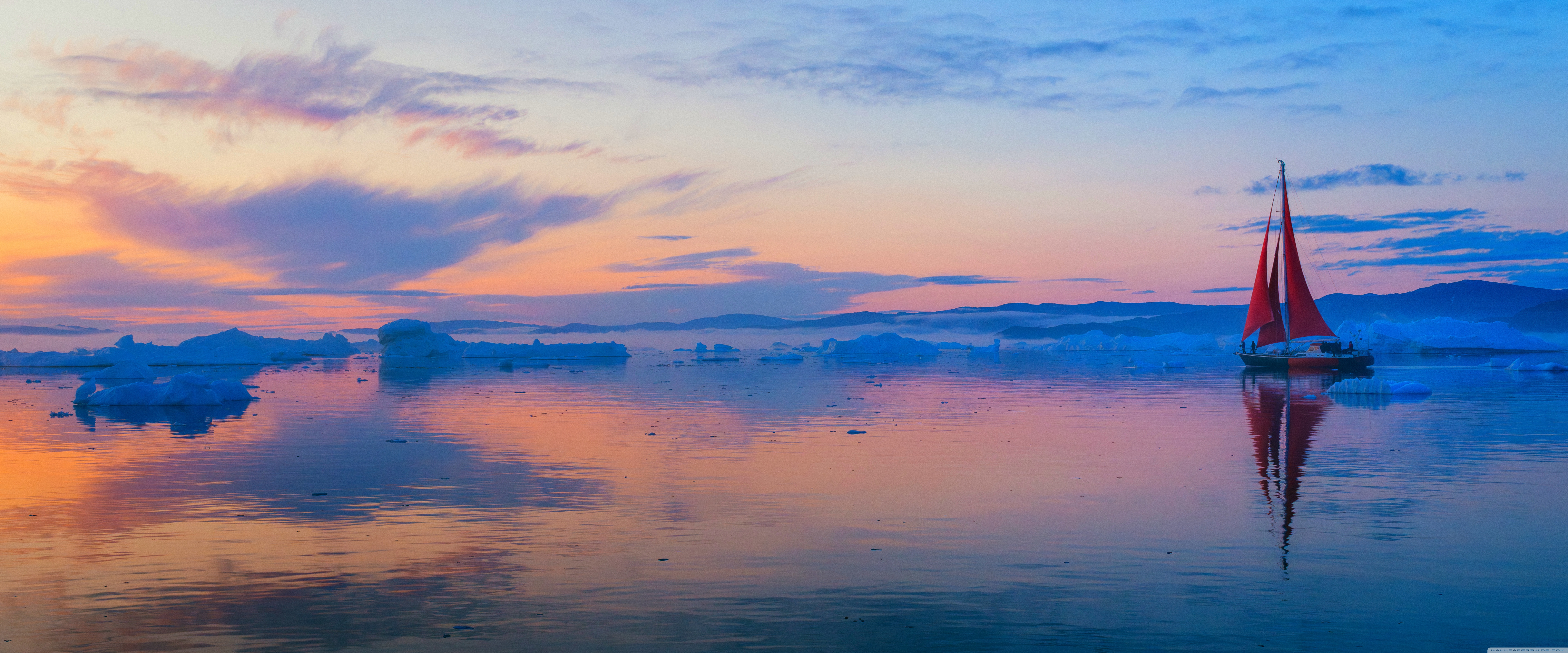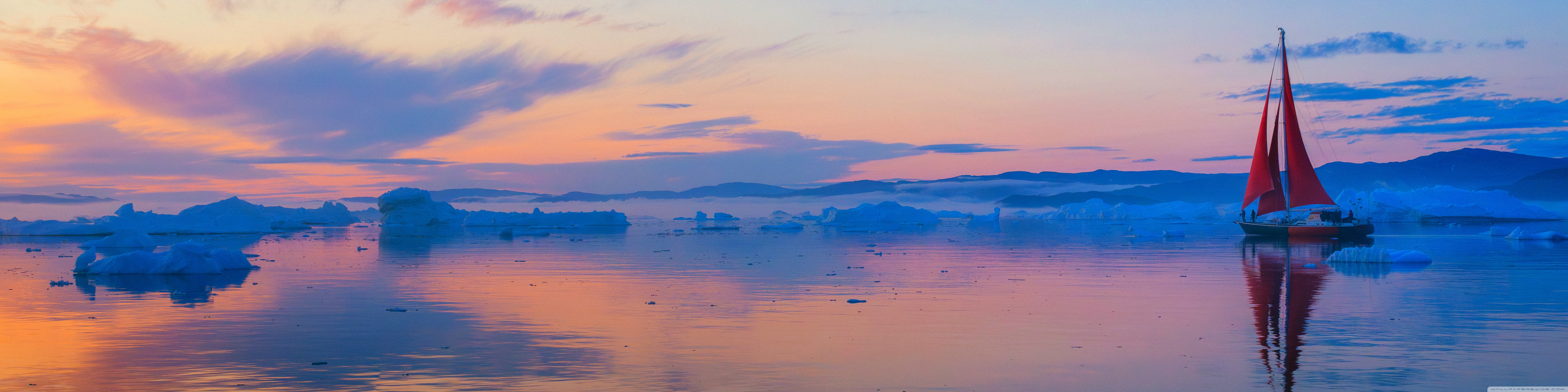 Download Greenland Sunrise Sailing in Avannaata Ice Caps 4K UHD Wallpaper