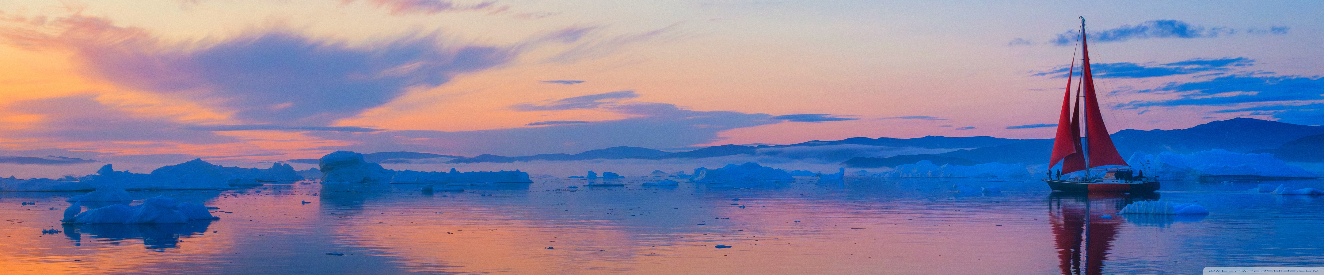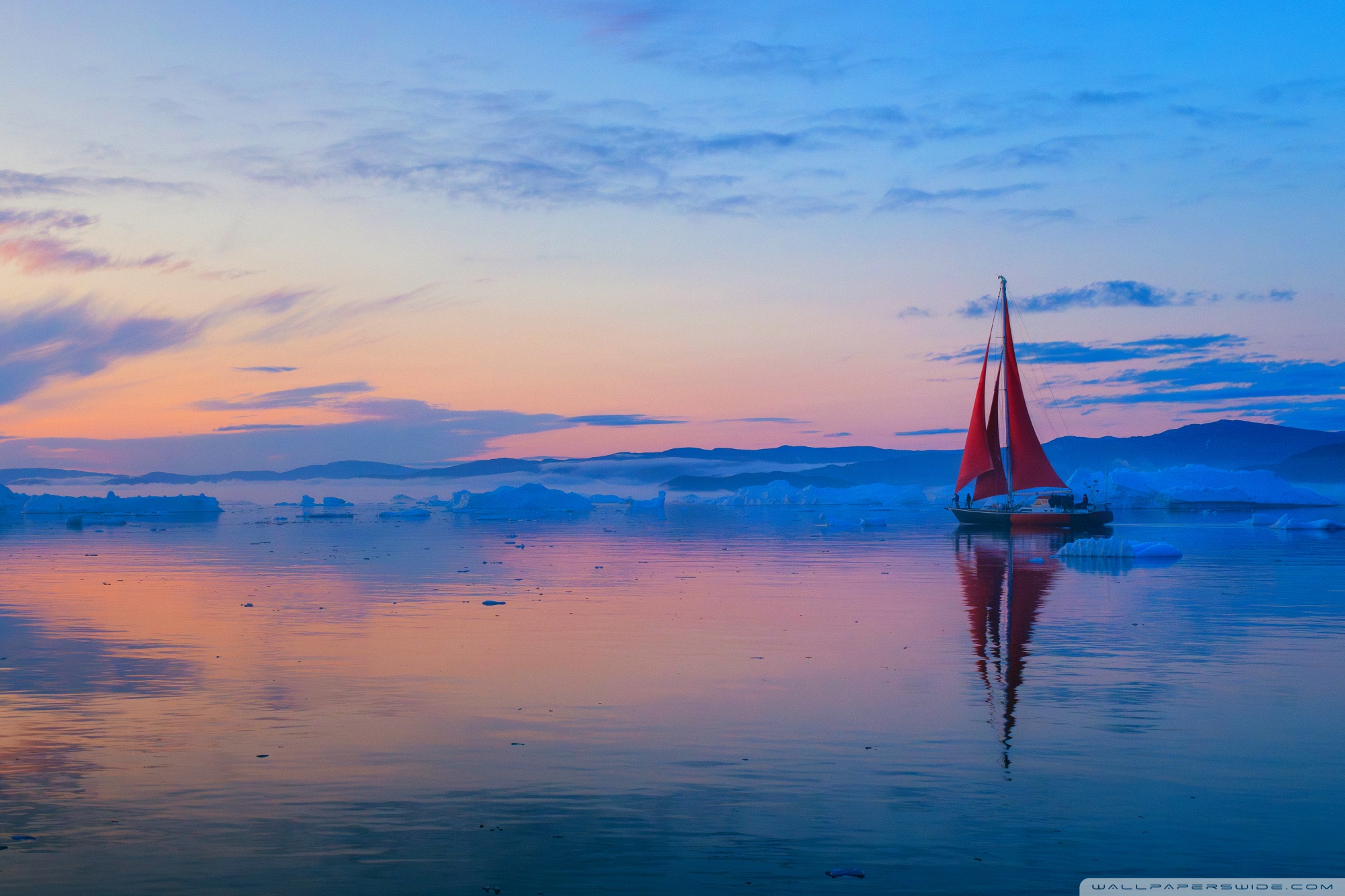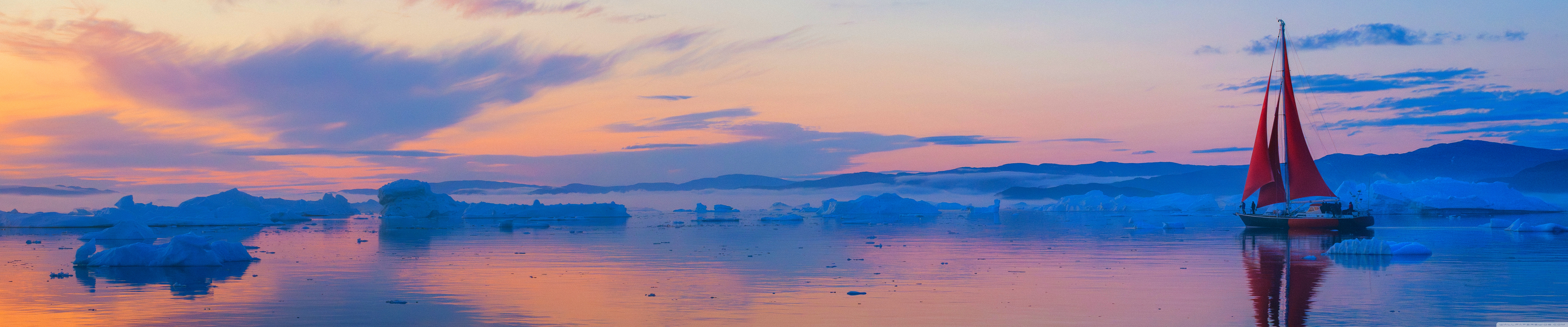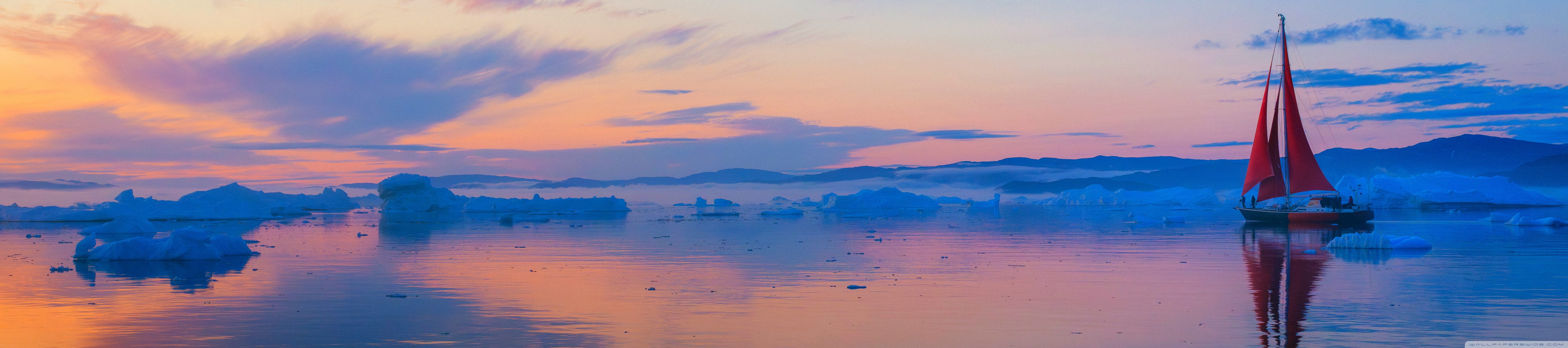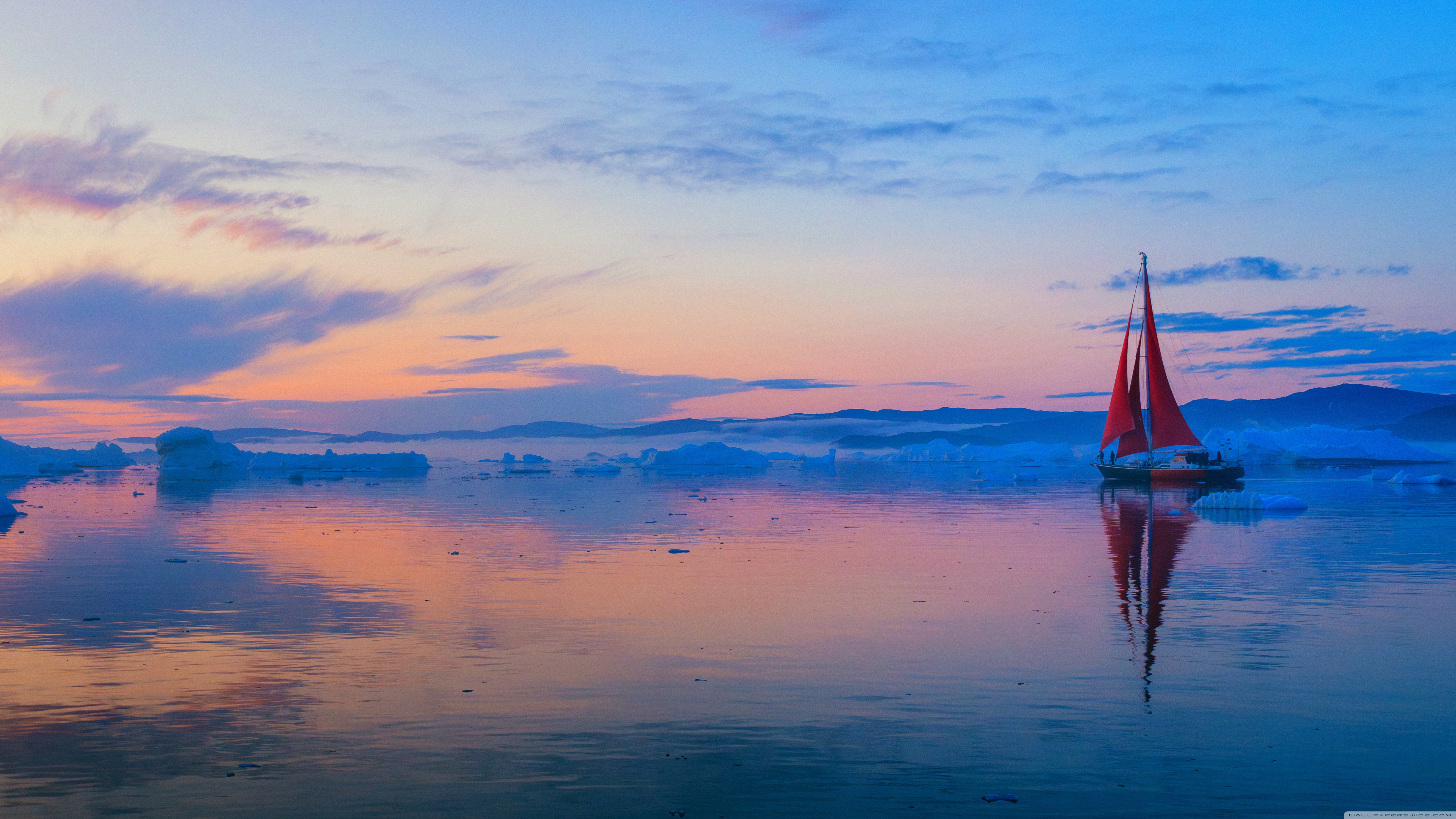 Download Greenland Sunrise Sailing in Avannaata Ice Caps 4K UHD Wallpaper