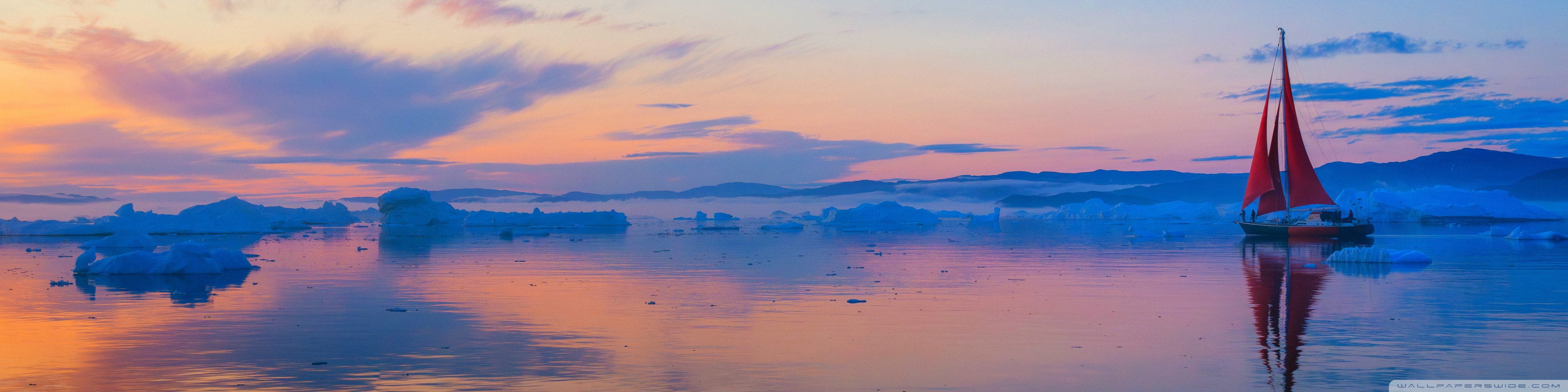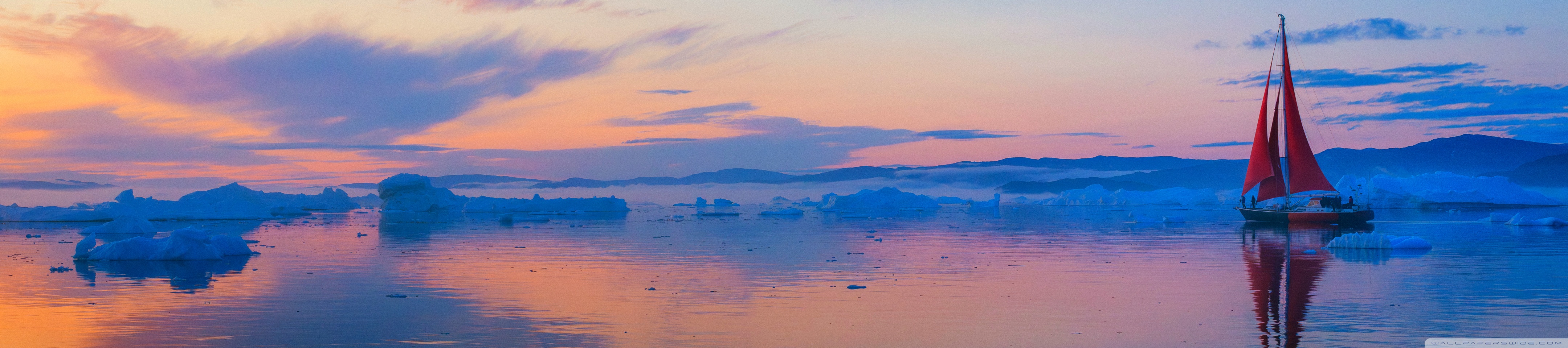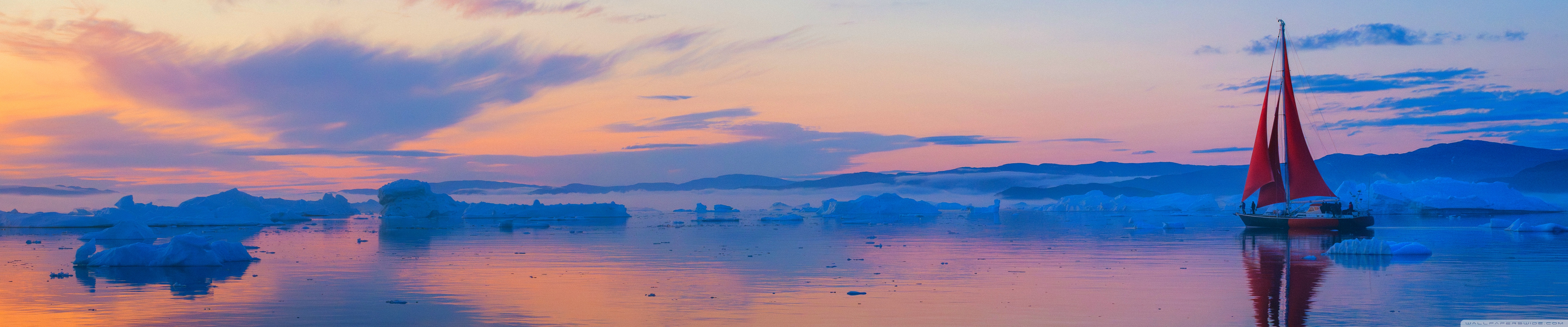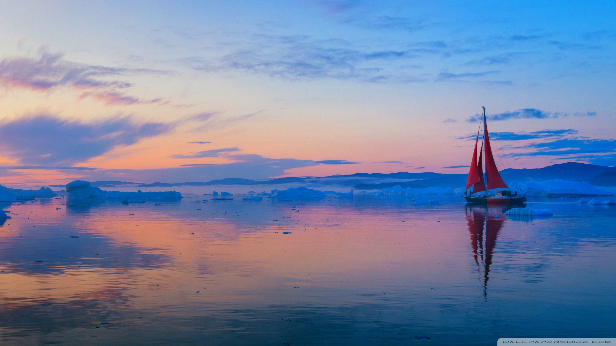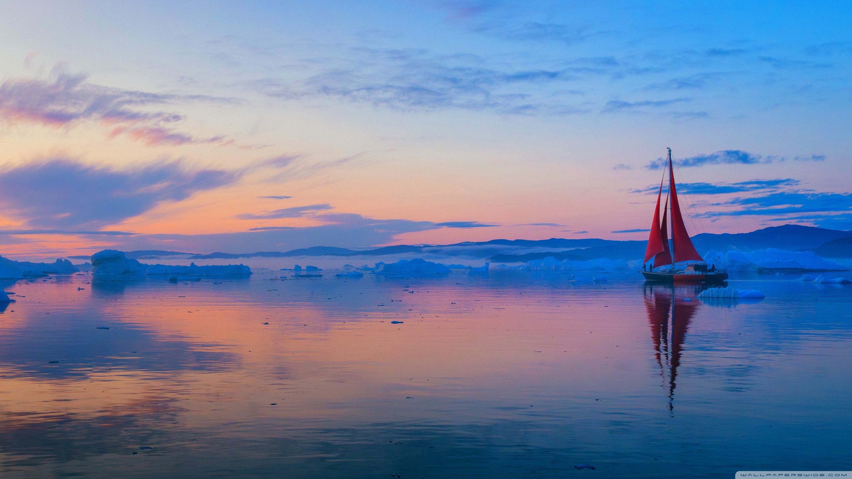 Download Greenland Sunrise Sailing in Avannaata Ice Caps 4K UHD Wallpaper