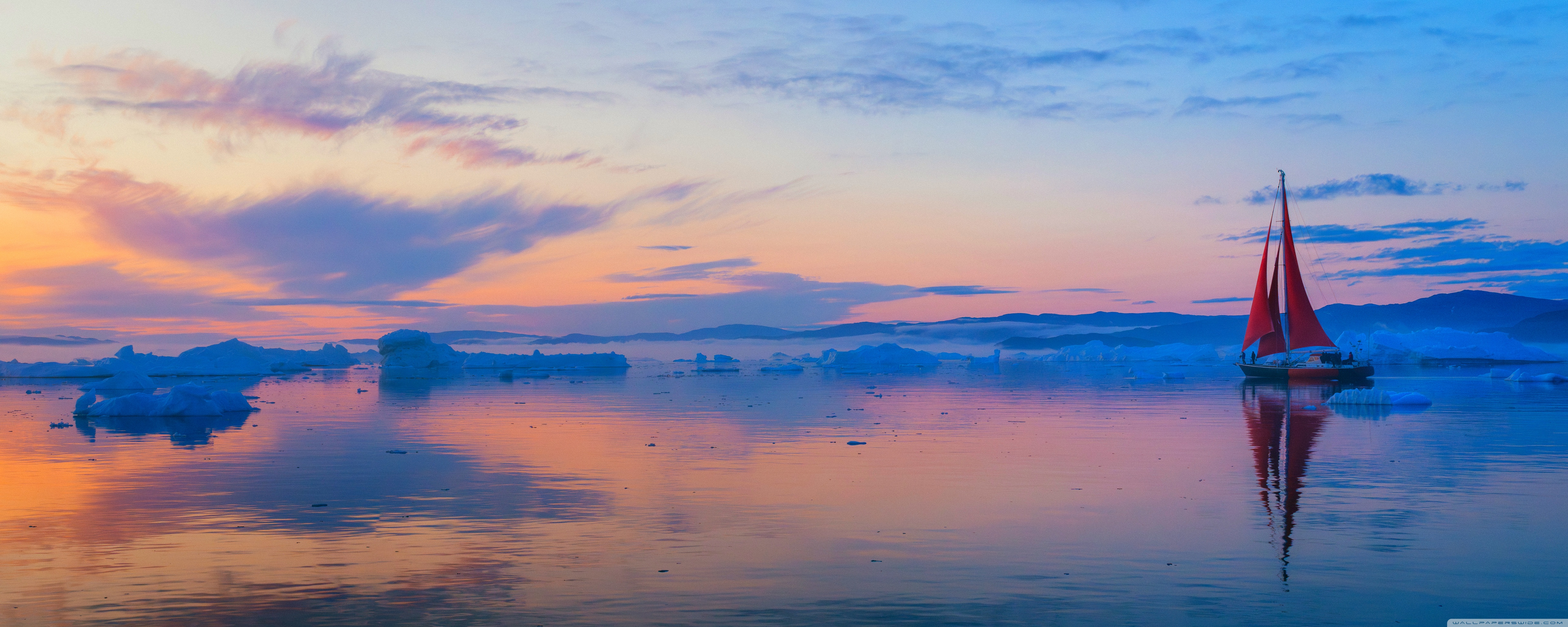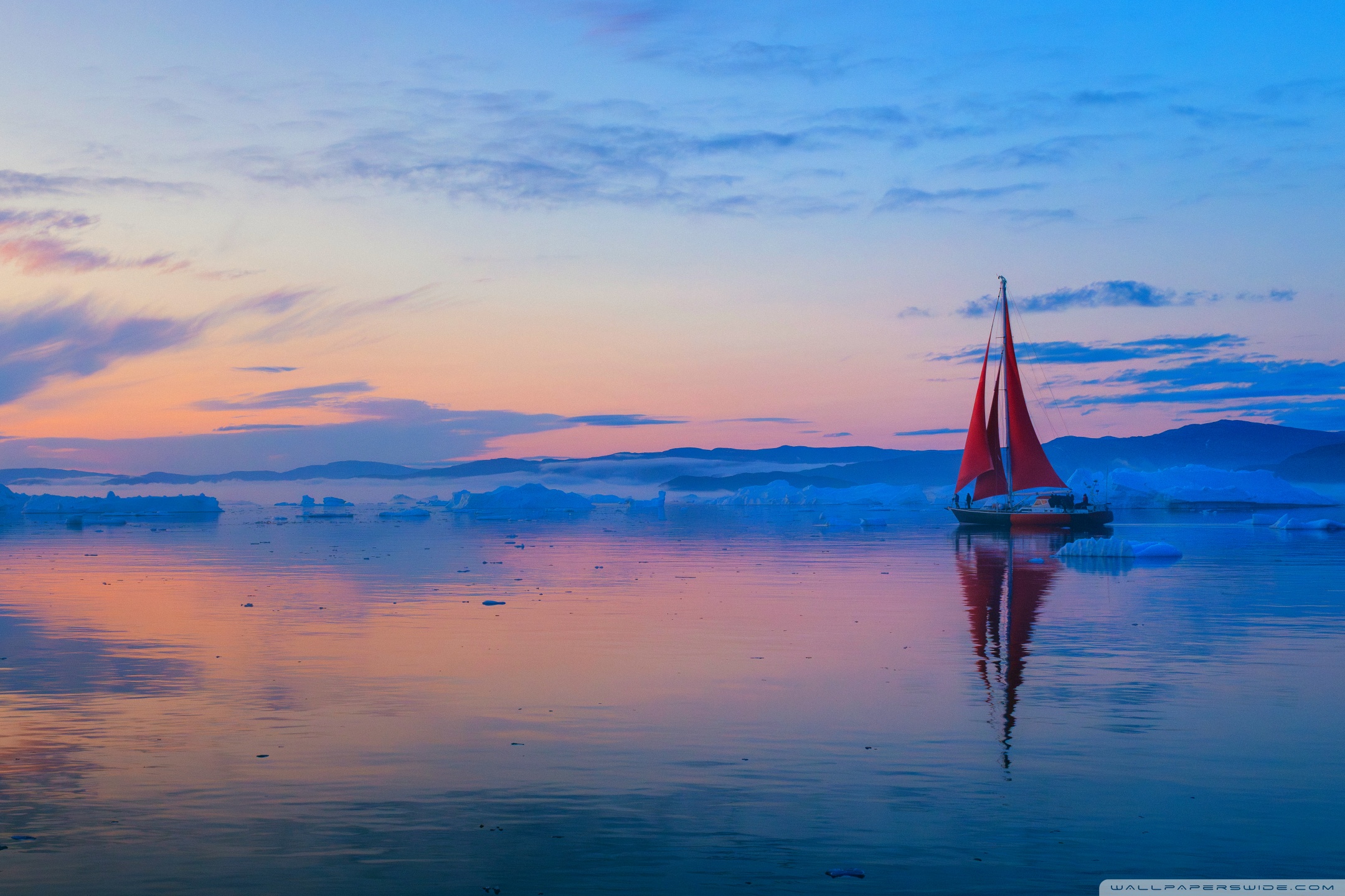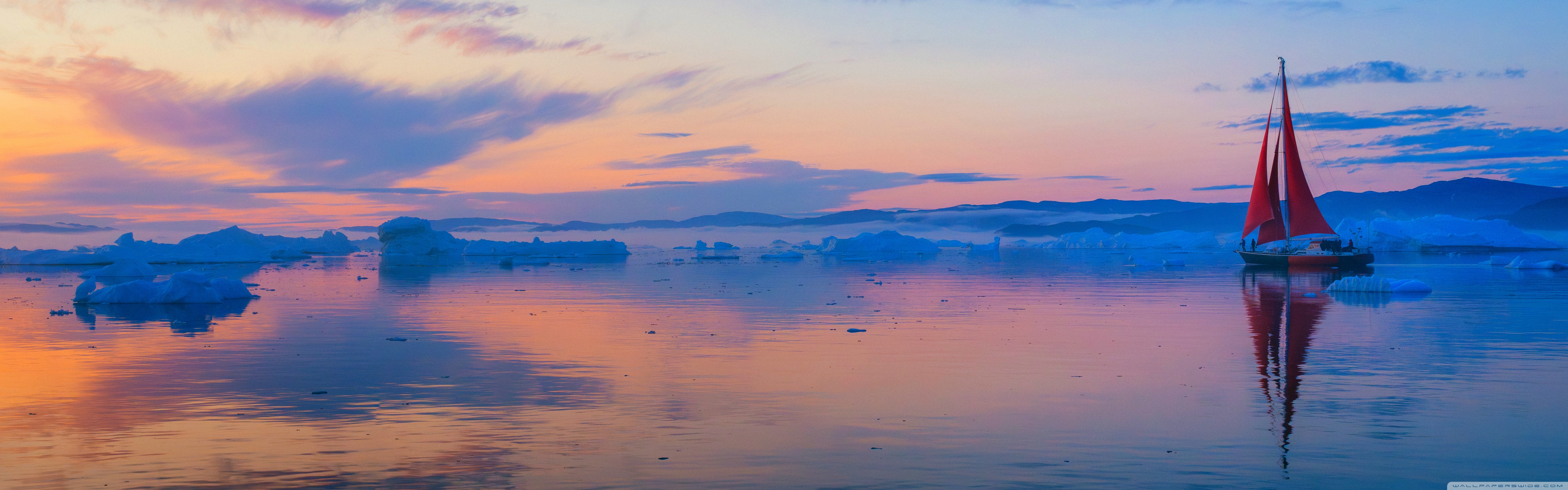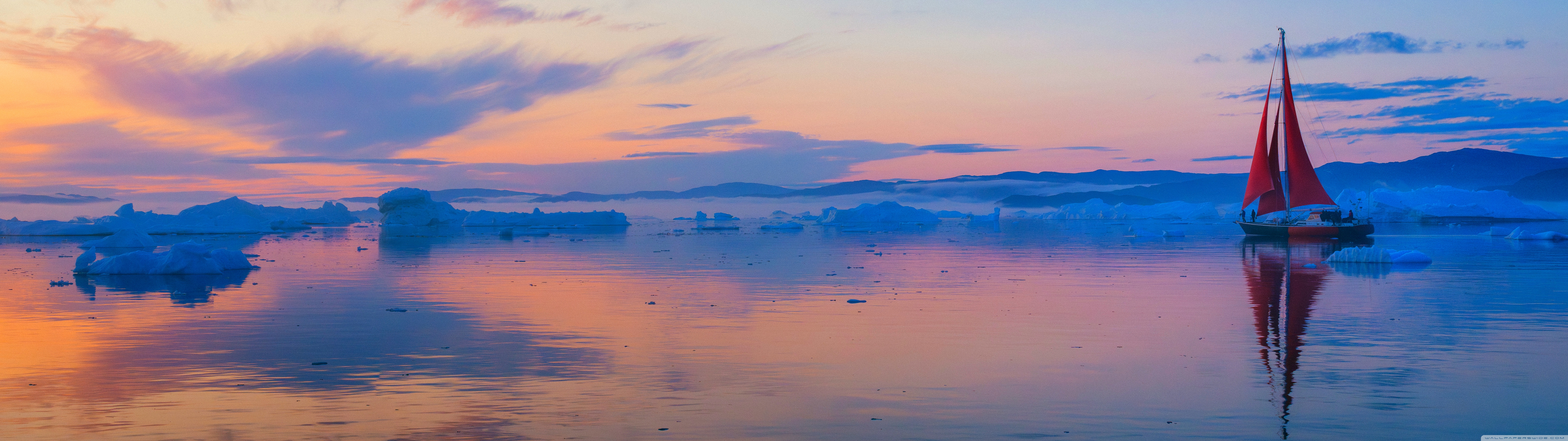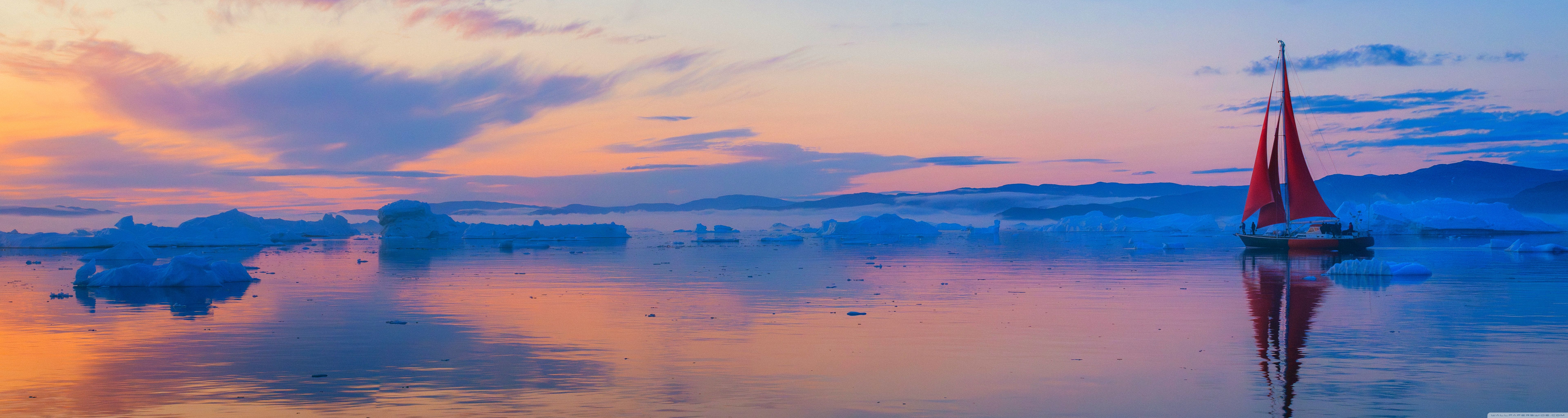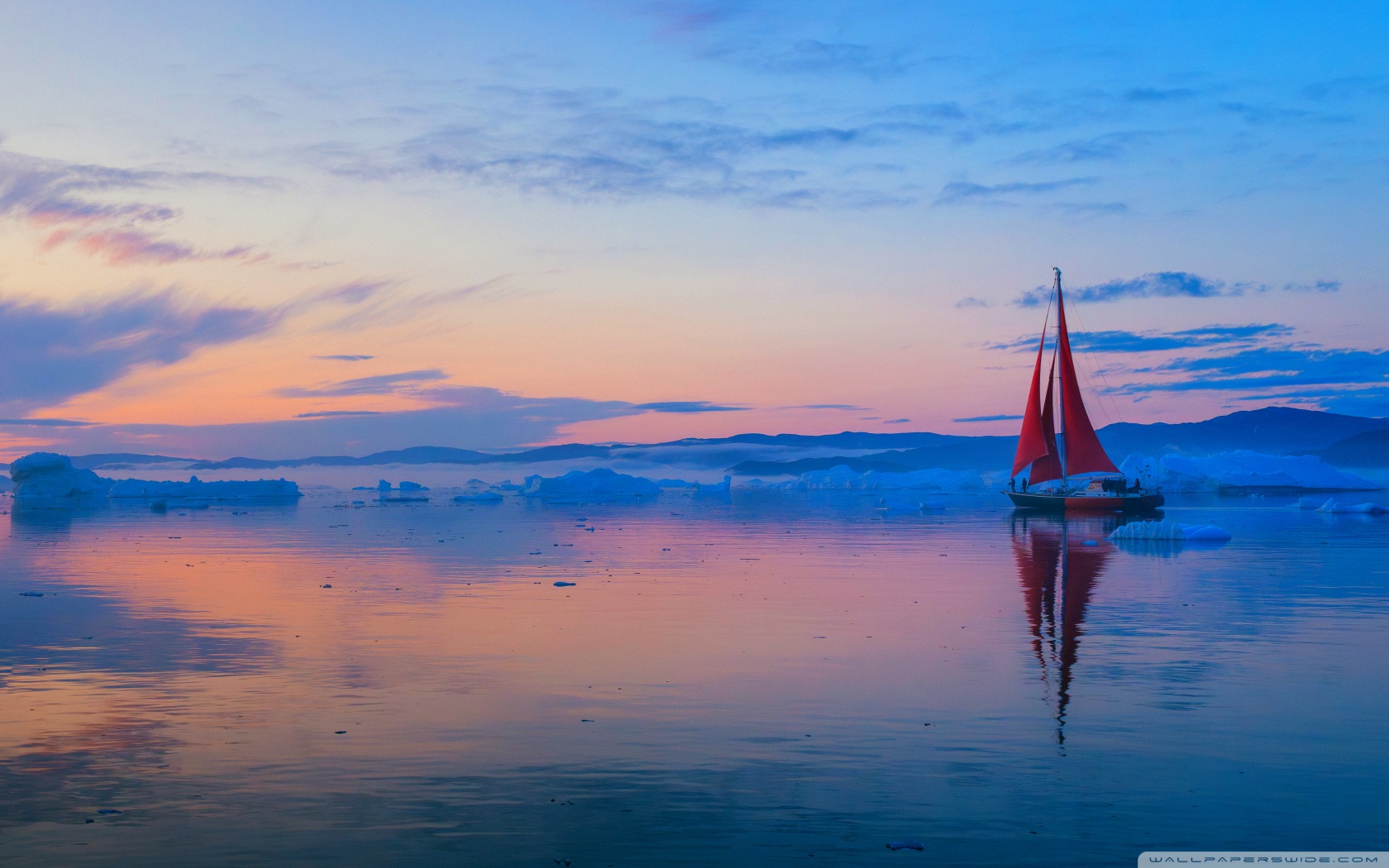 Download Greenland Sunrise Sailing in Avannaata Ice Caps 4K UHD Wallpaper