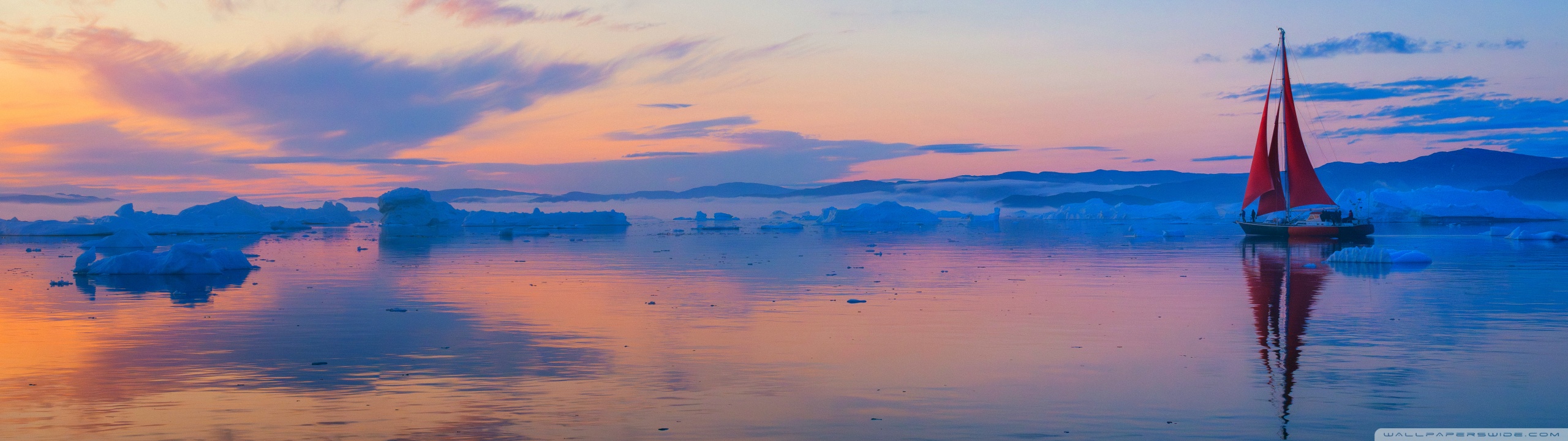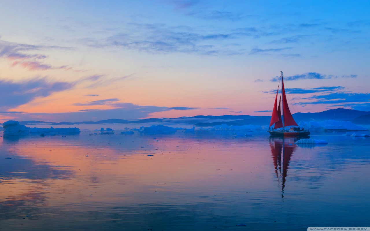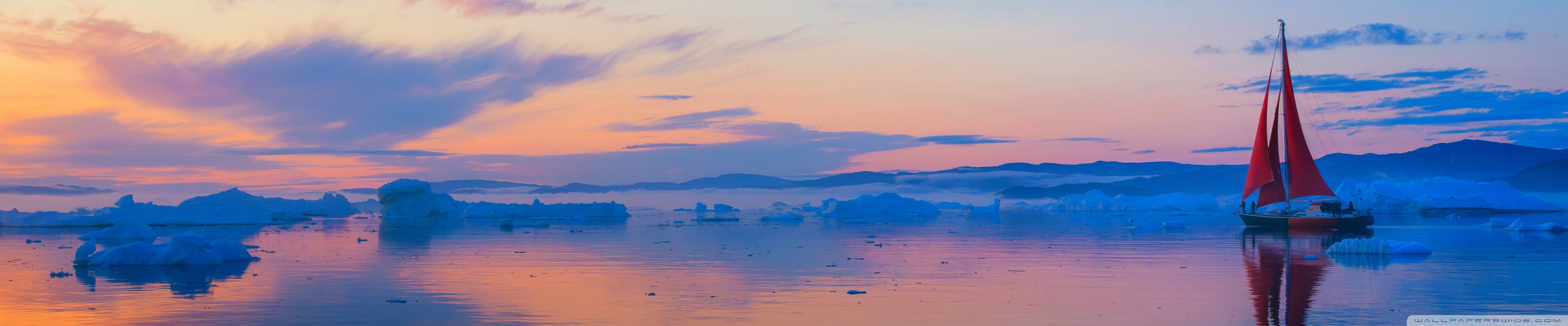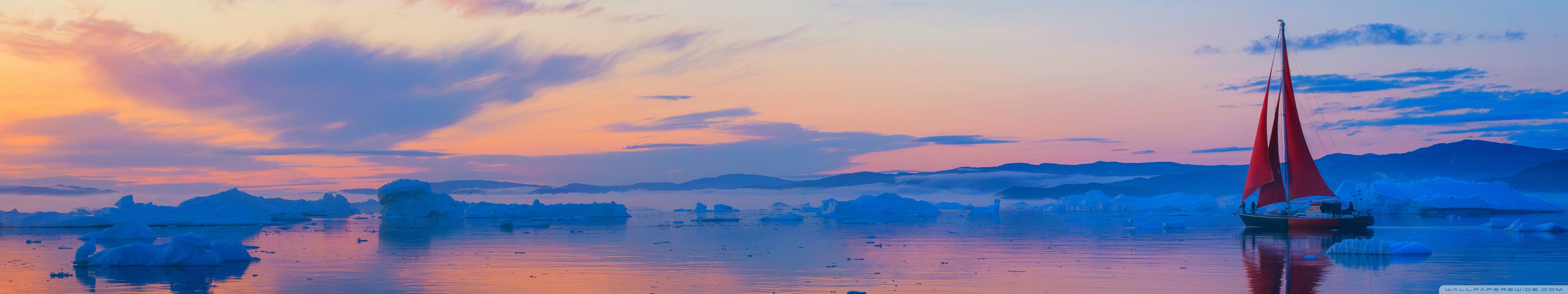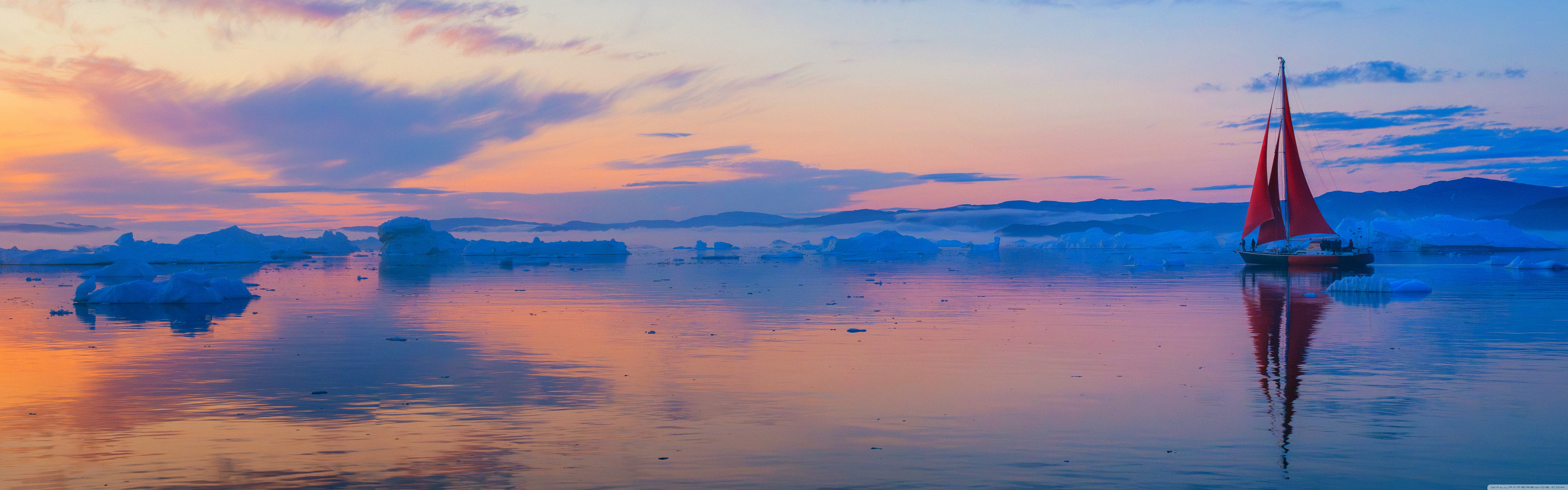 Download Greenland Sunrise Sailing in Avannaata Ice Caps 4K UHD Wallpaper