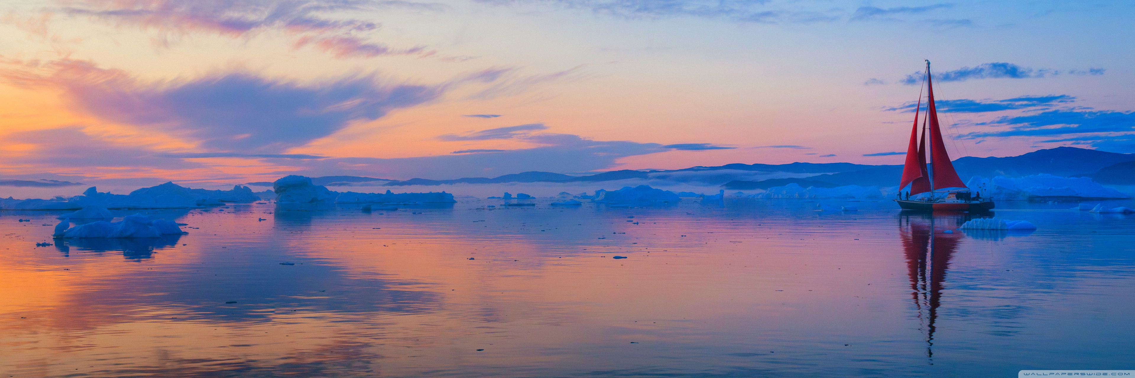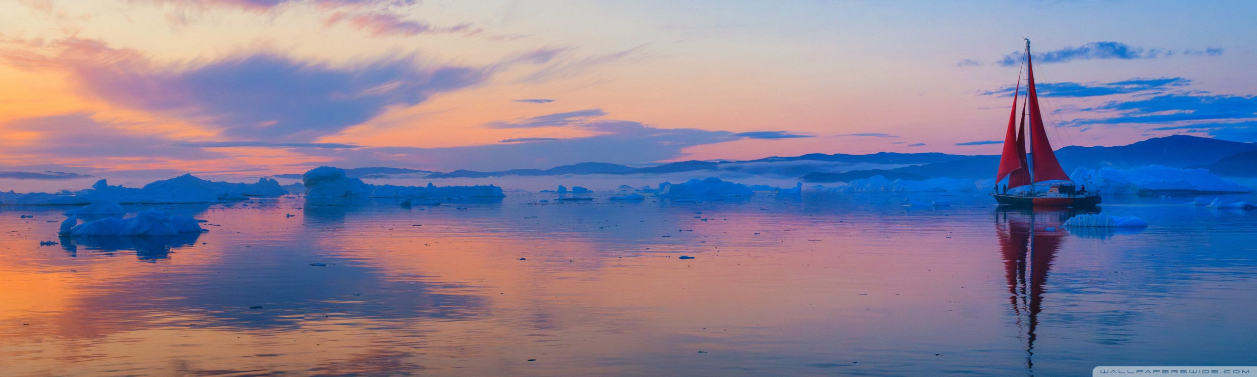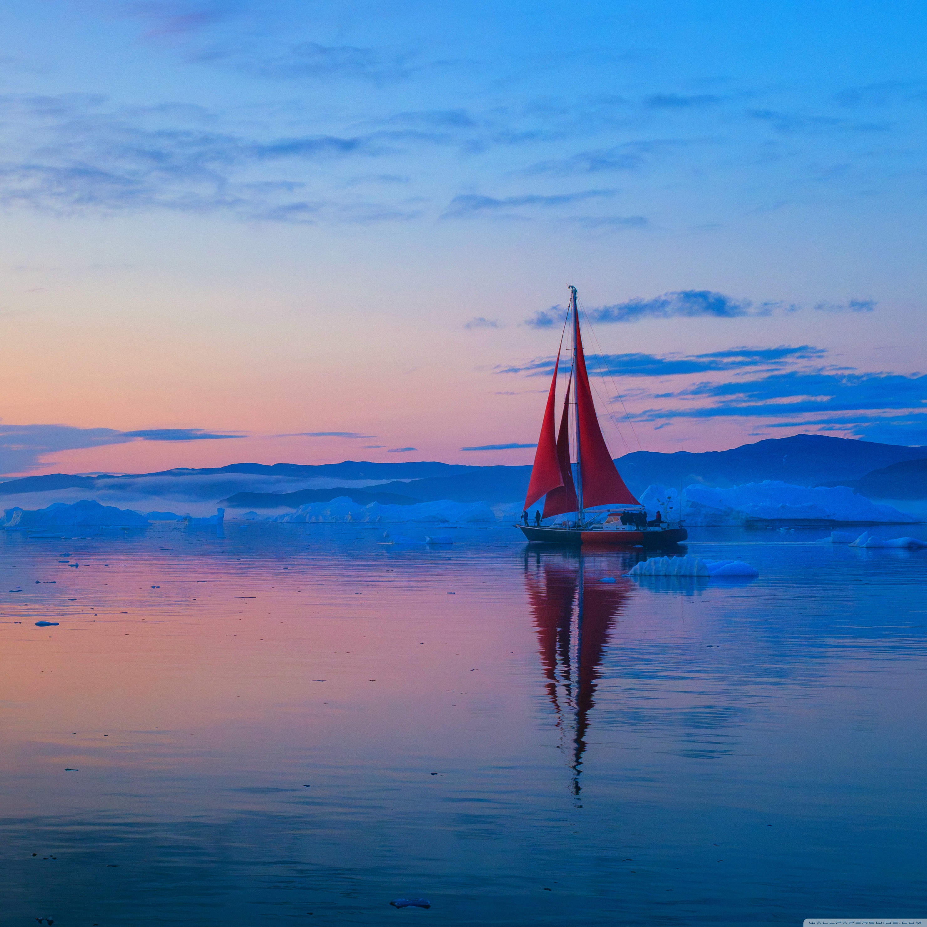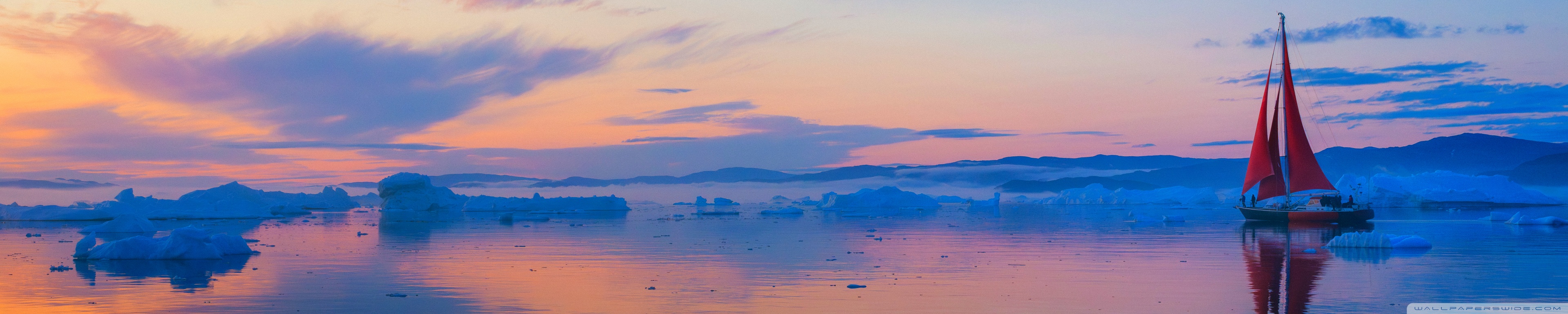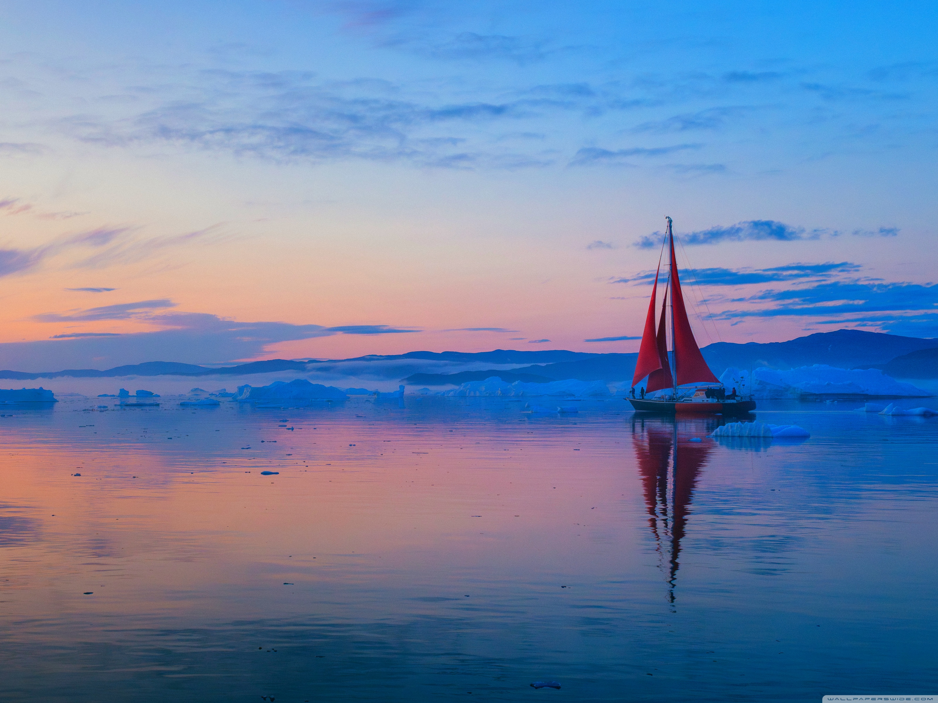 Download Greenland Sunrise Sailing in Avannaata Ice Caps 4K UHD Wallpaper