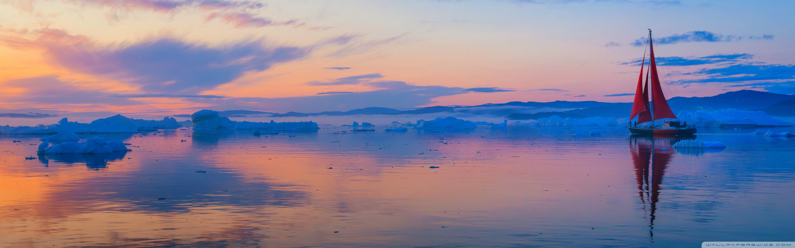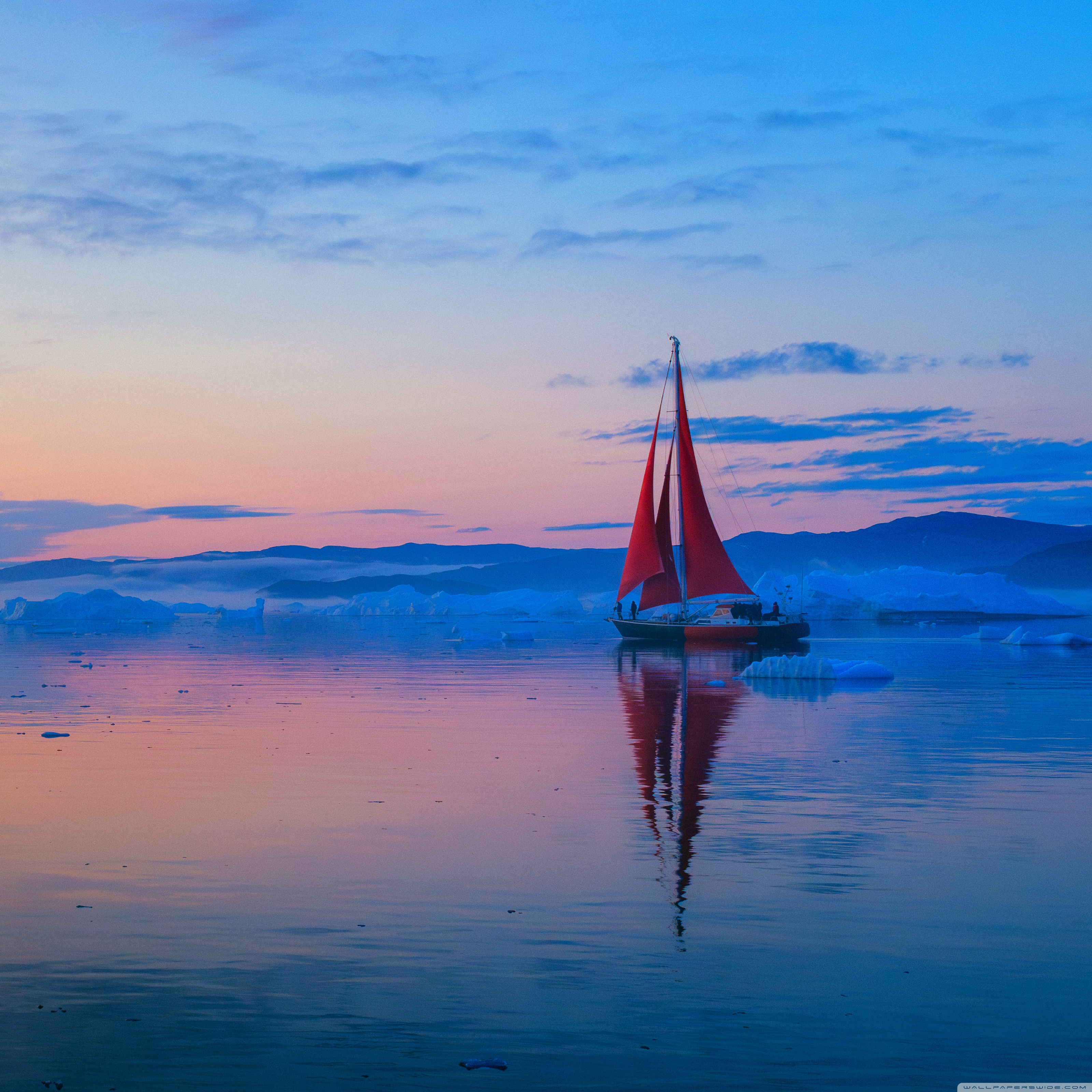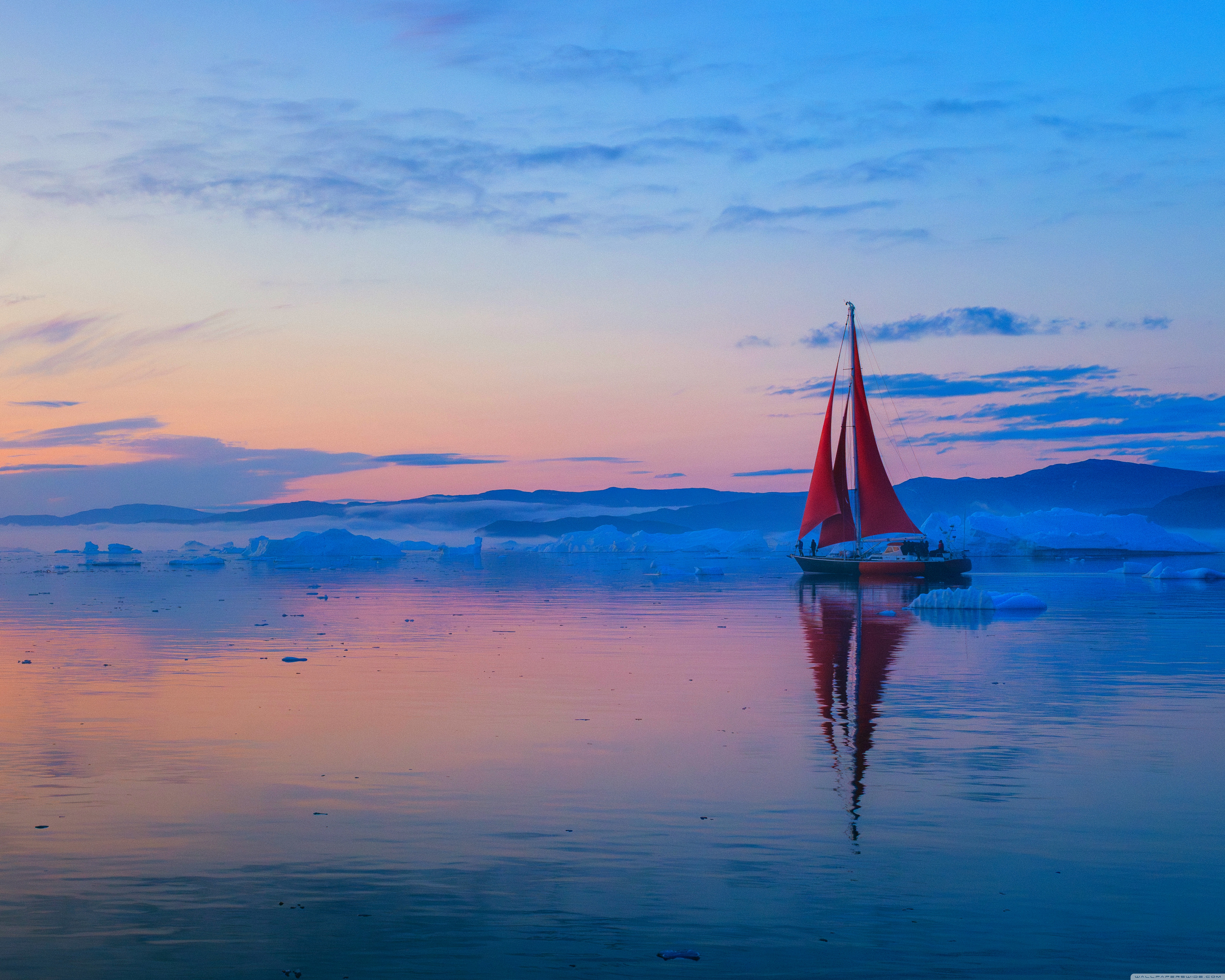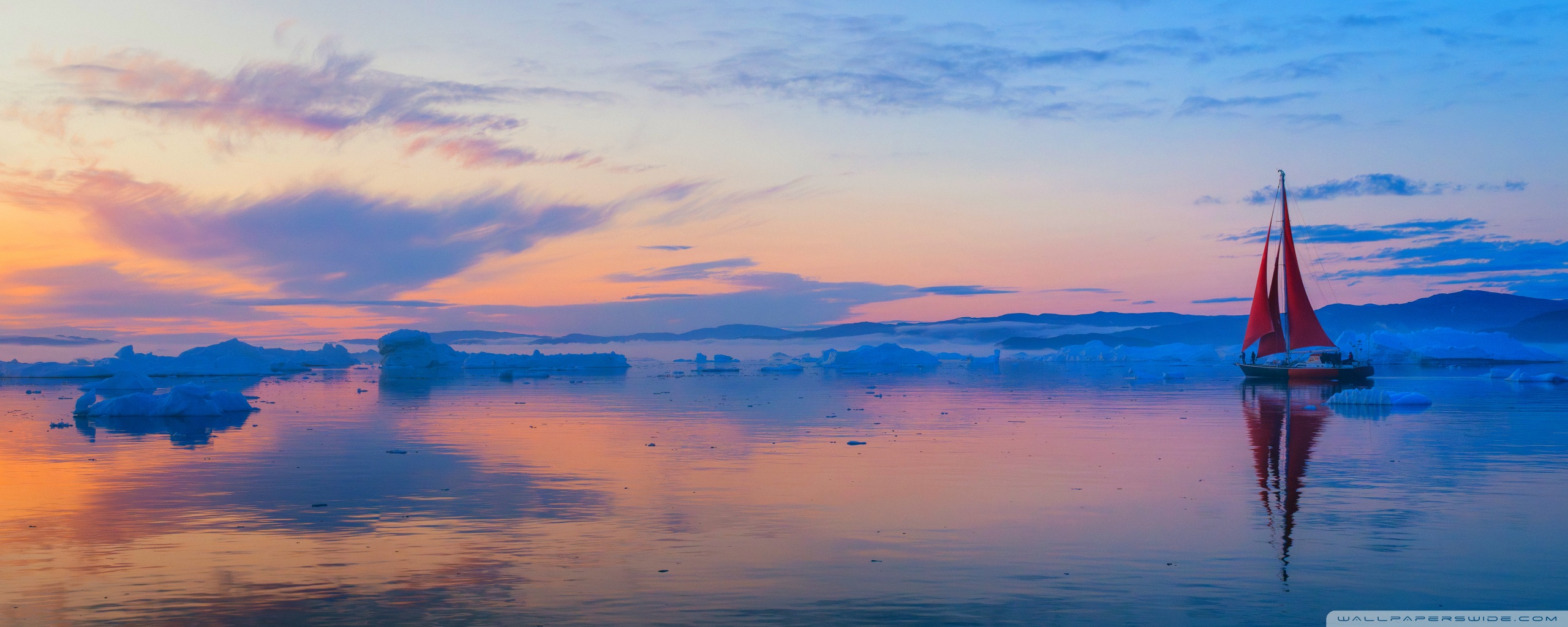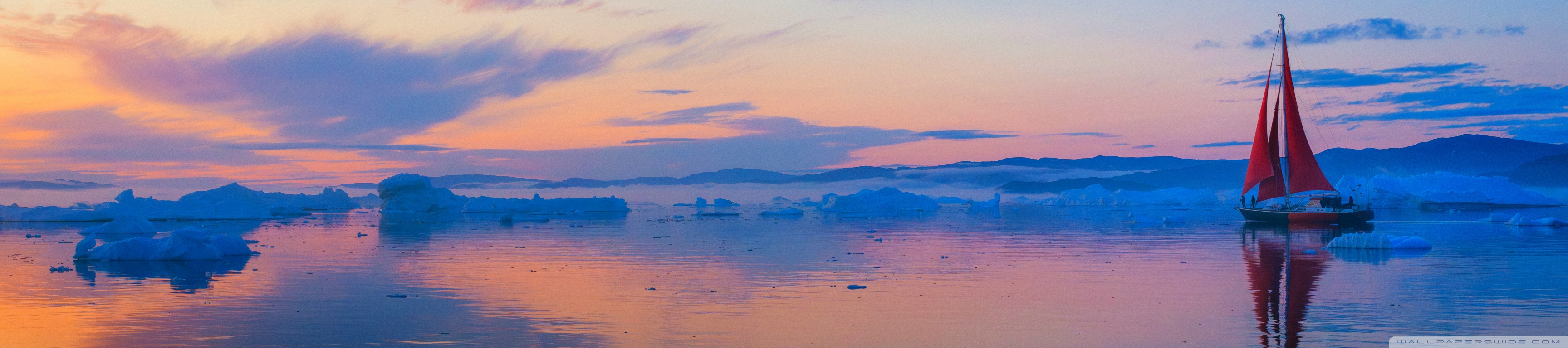 Download Greenland Sunrise Sailing in Avannaata Ice Caps 4K UHD Wallpaper
