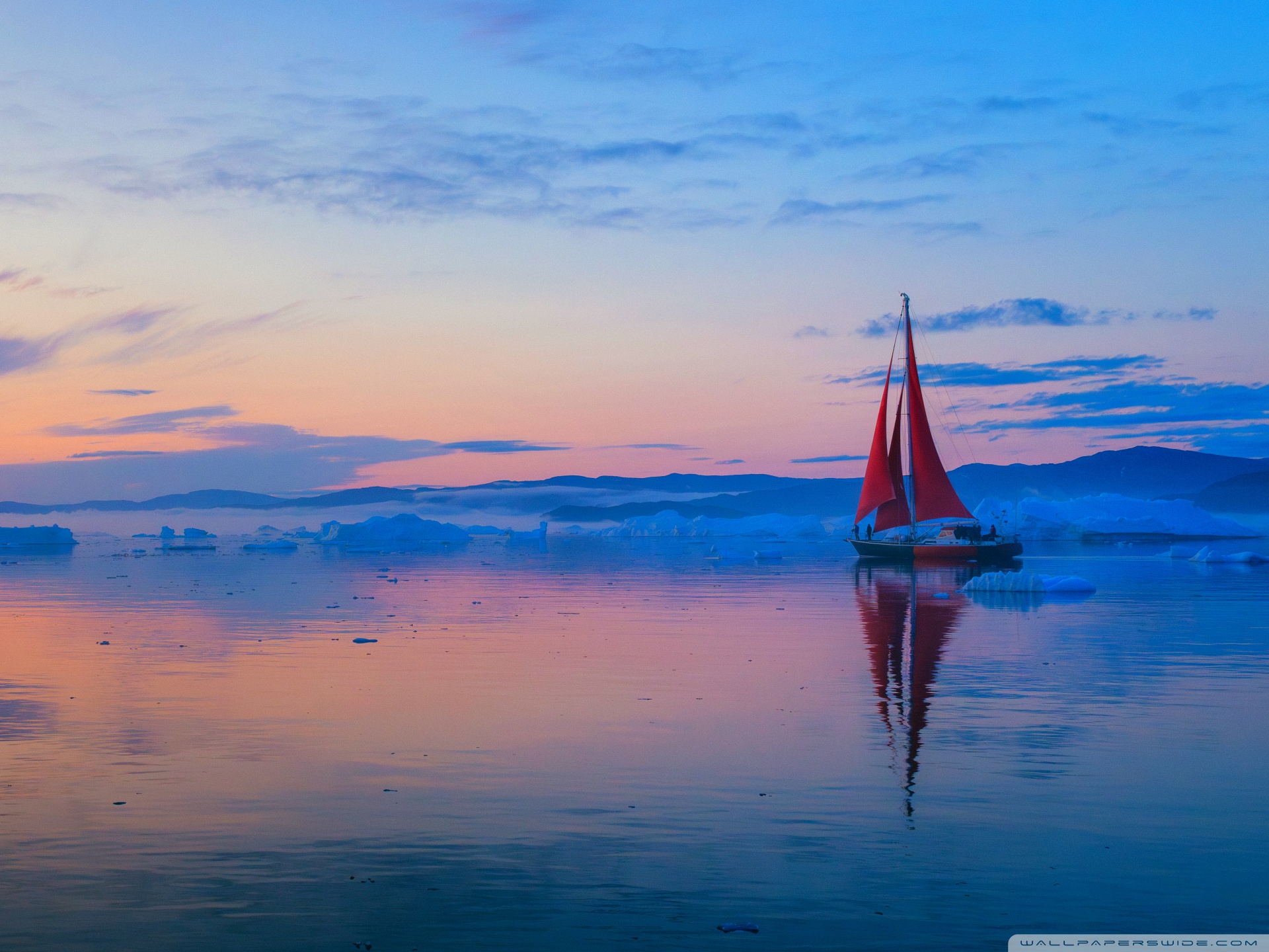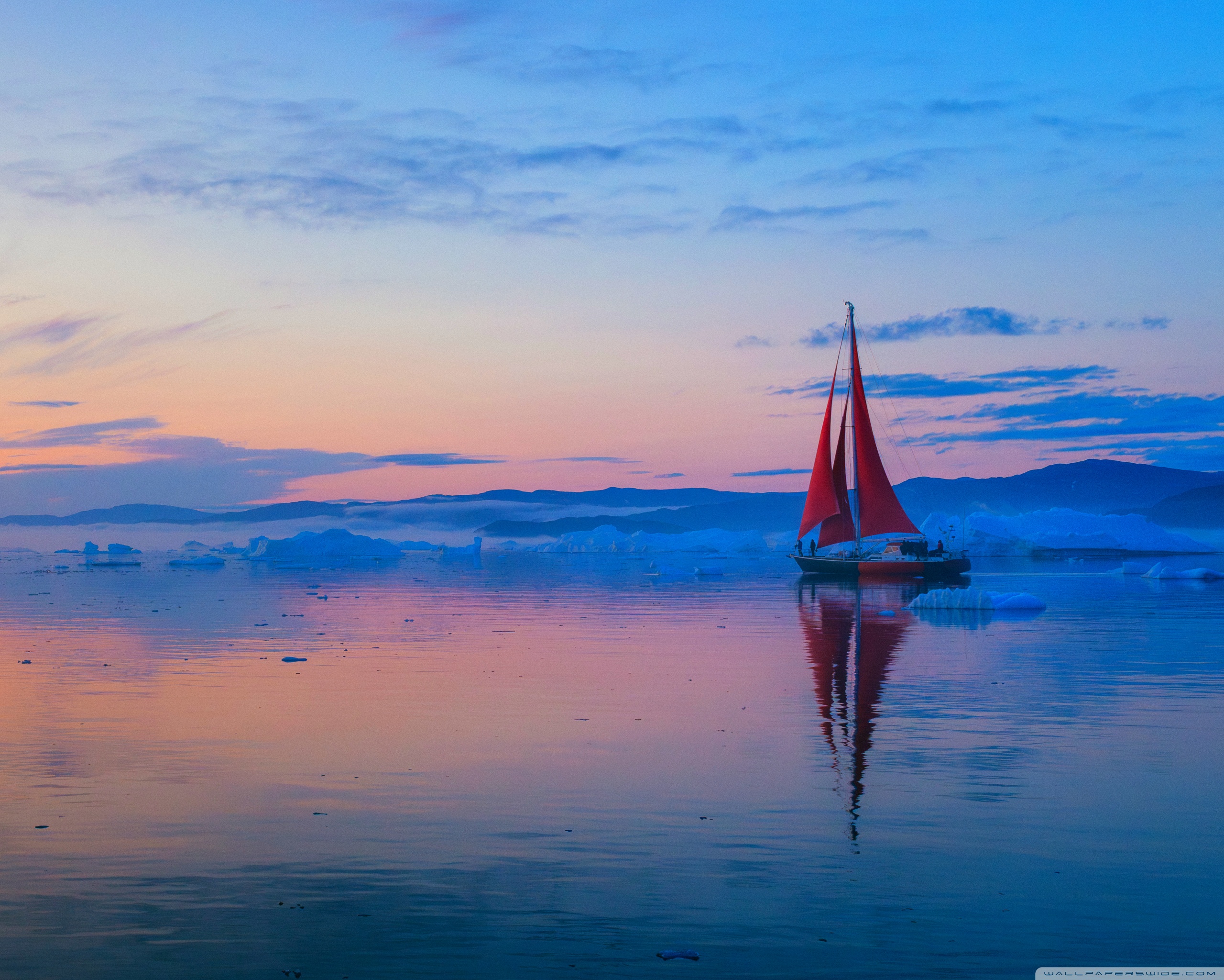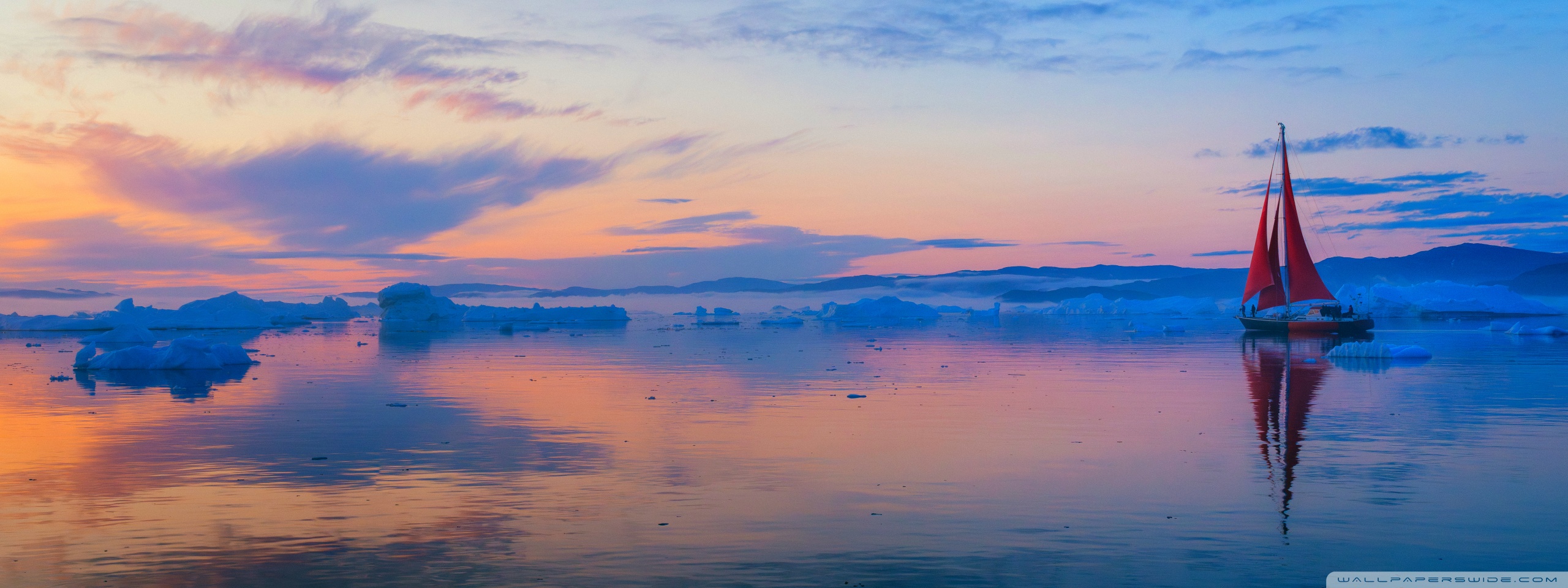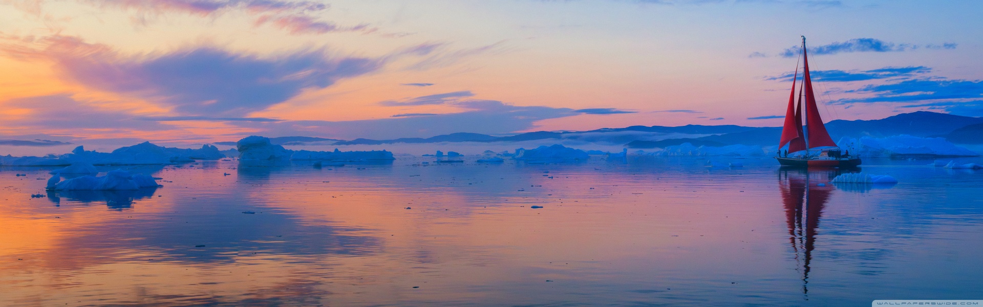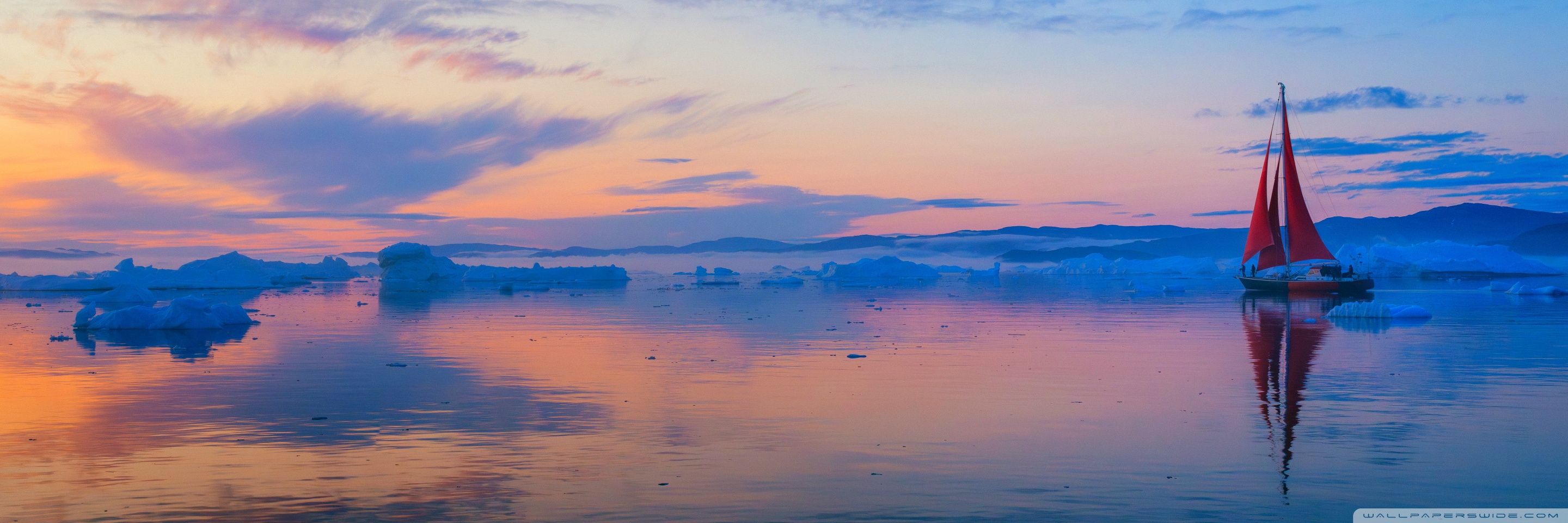 Download Greenland Sunrise Sailing in Avannaata Ice Caps 4K UHD Wallpaper
