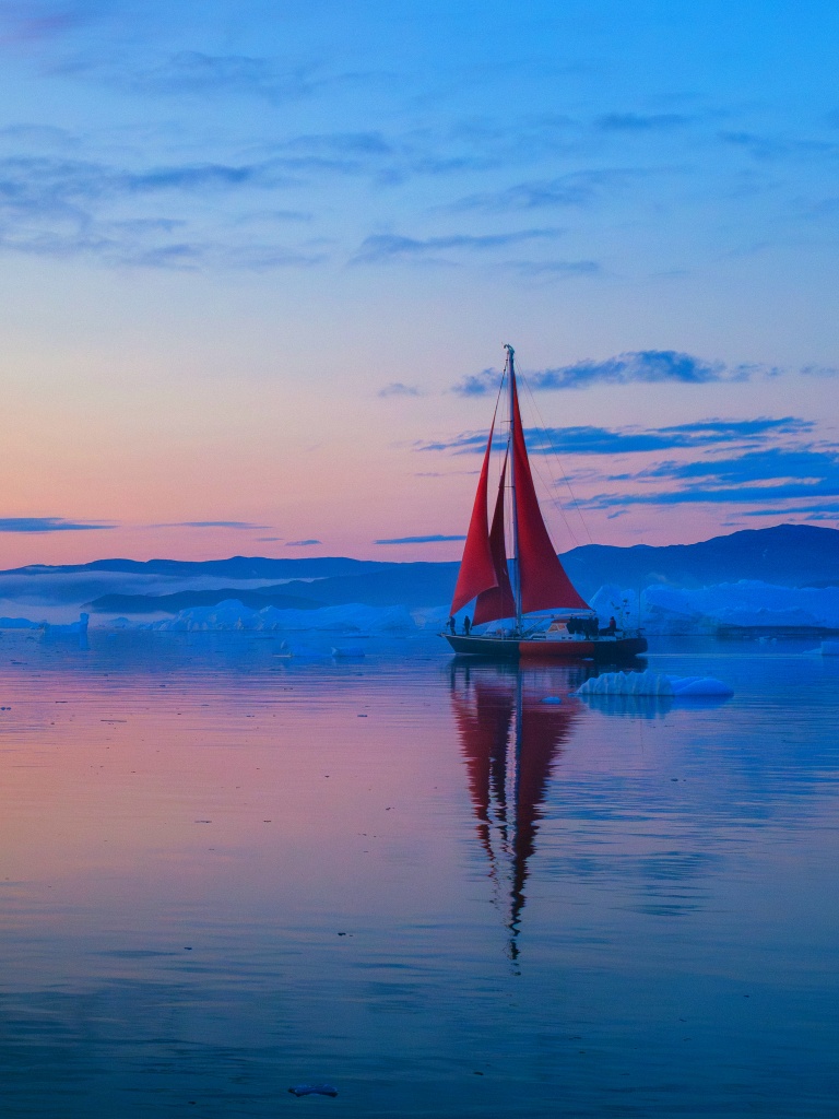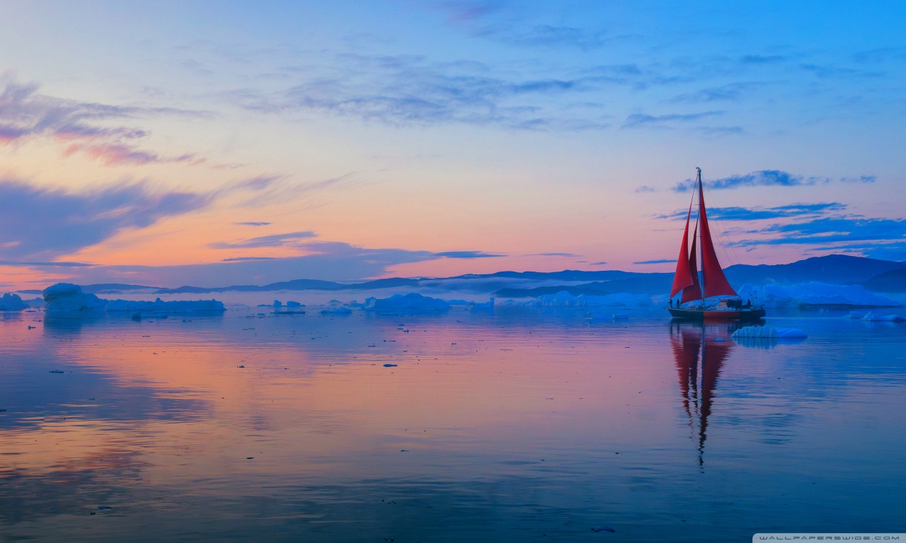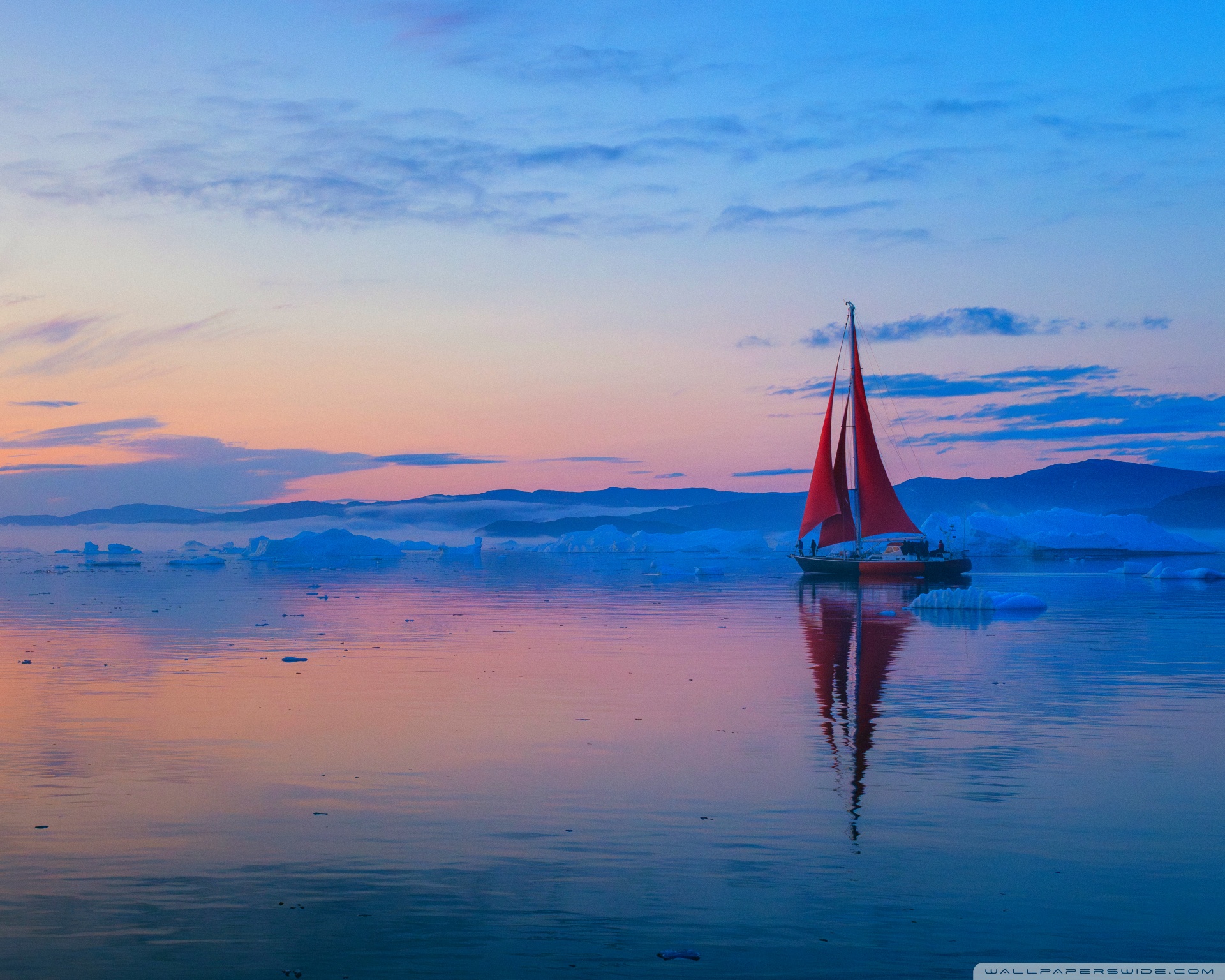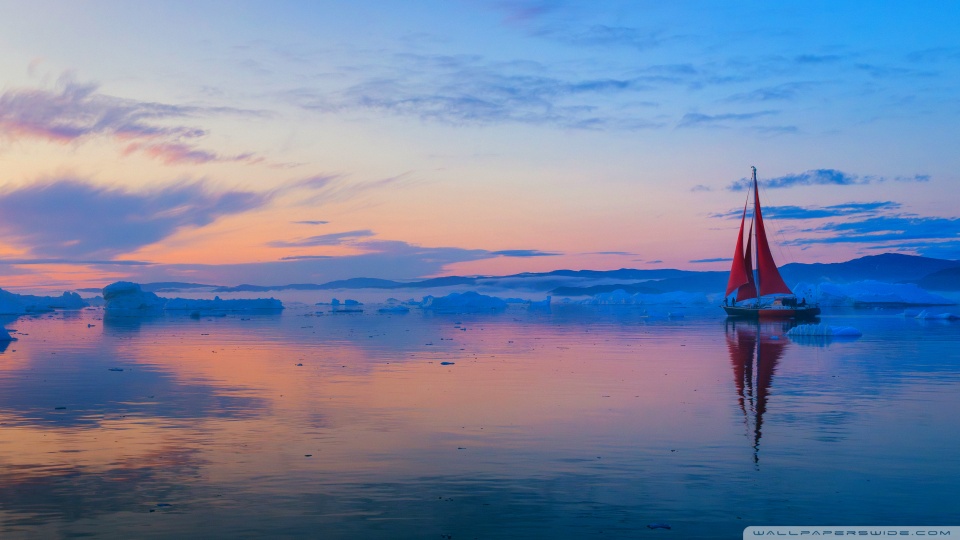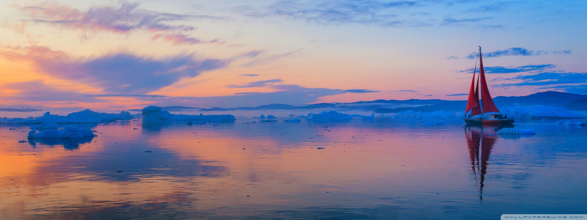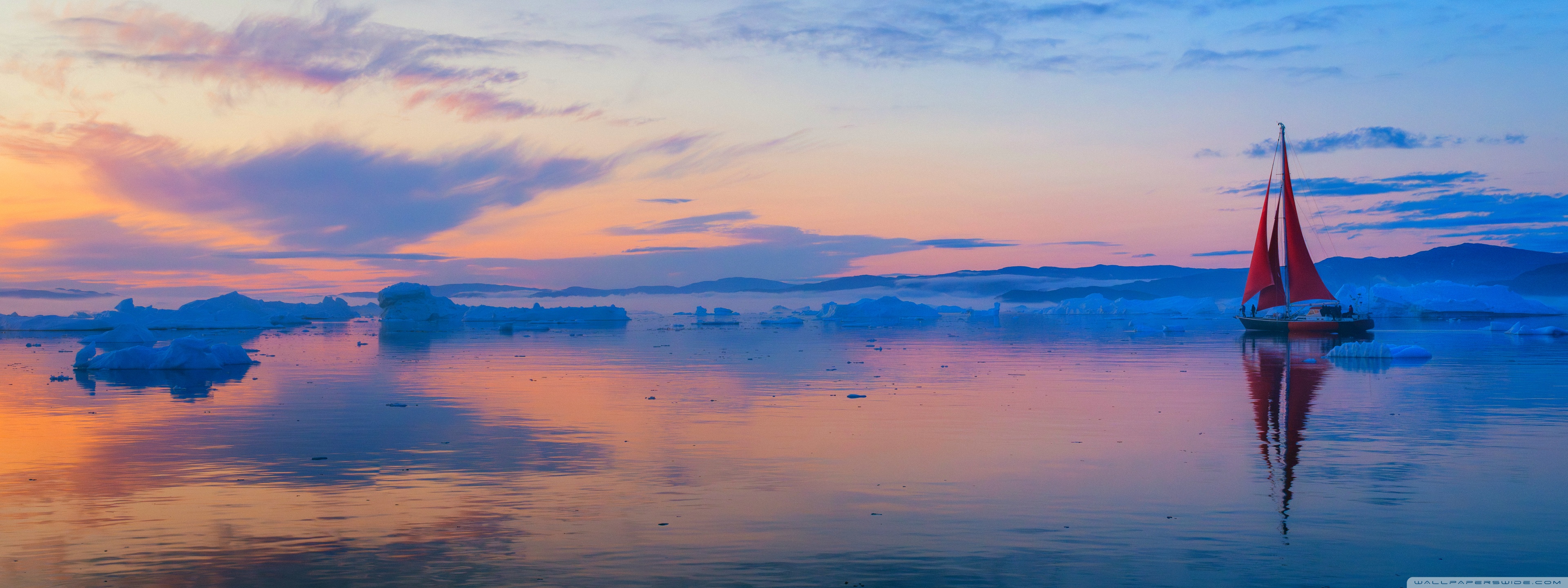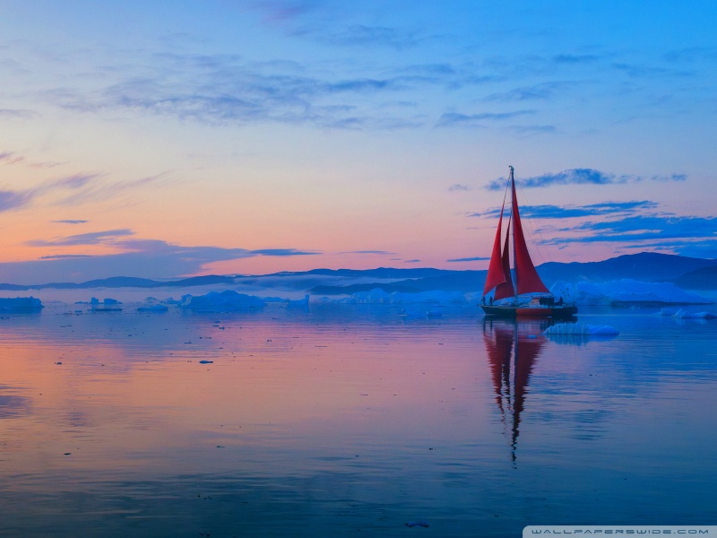 Download Greenland Sunrise Sailing in Avannaata Ice Caps 4K UHD Wallpaper