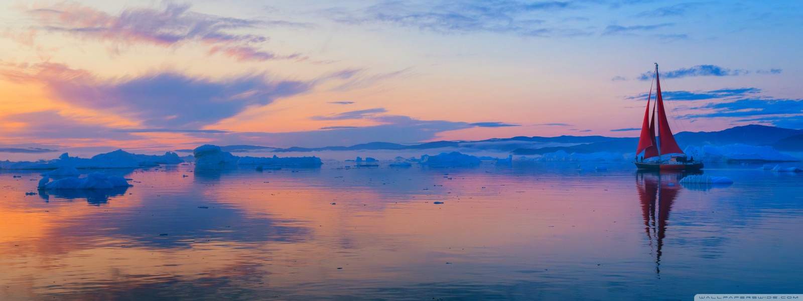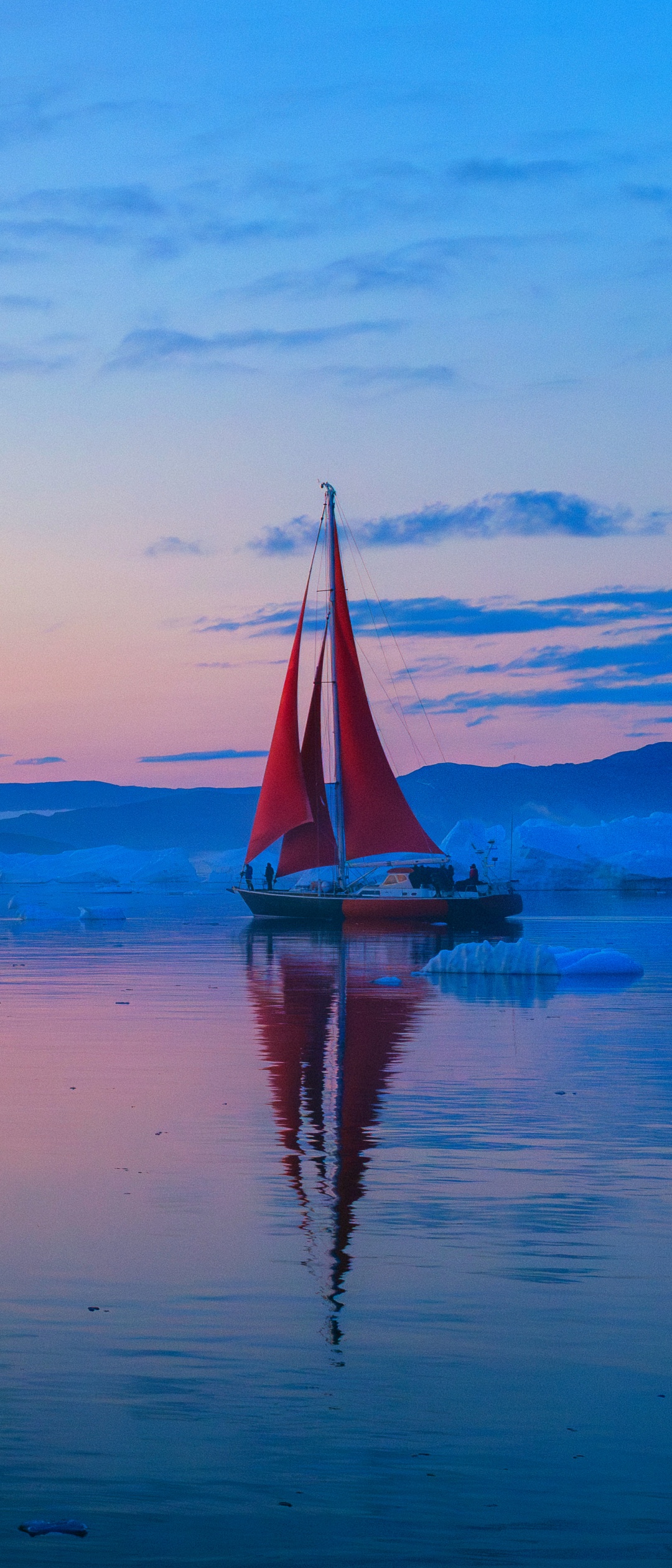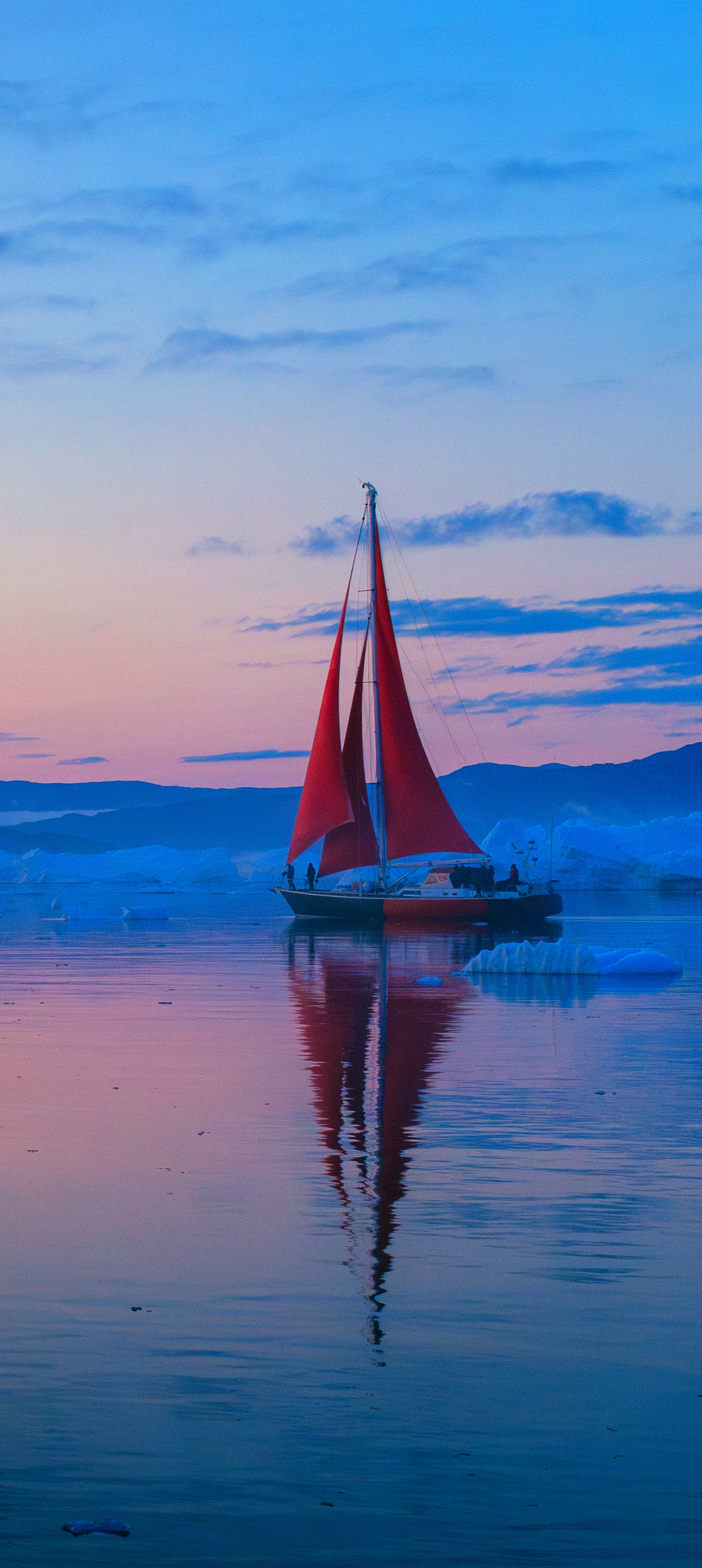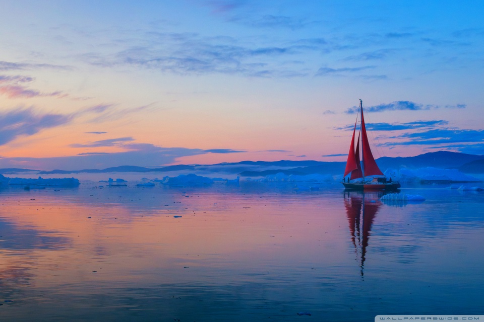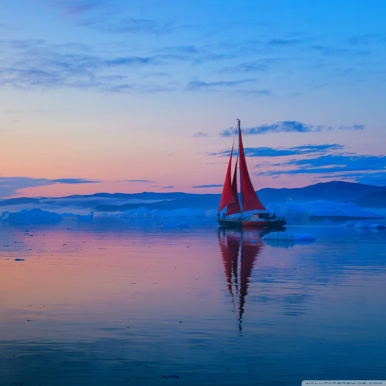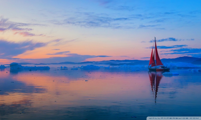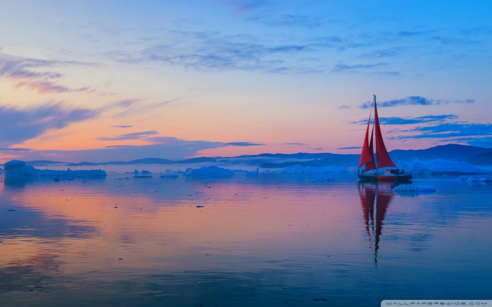 Download Greenland Sunrise Sailing in Avannaata Ice Caps 4K UHD Wallpaper