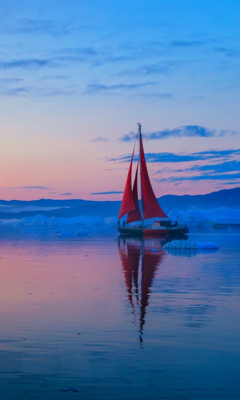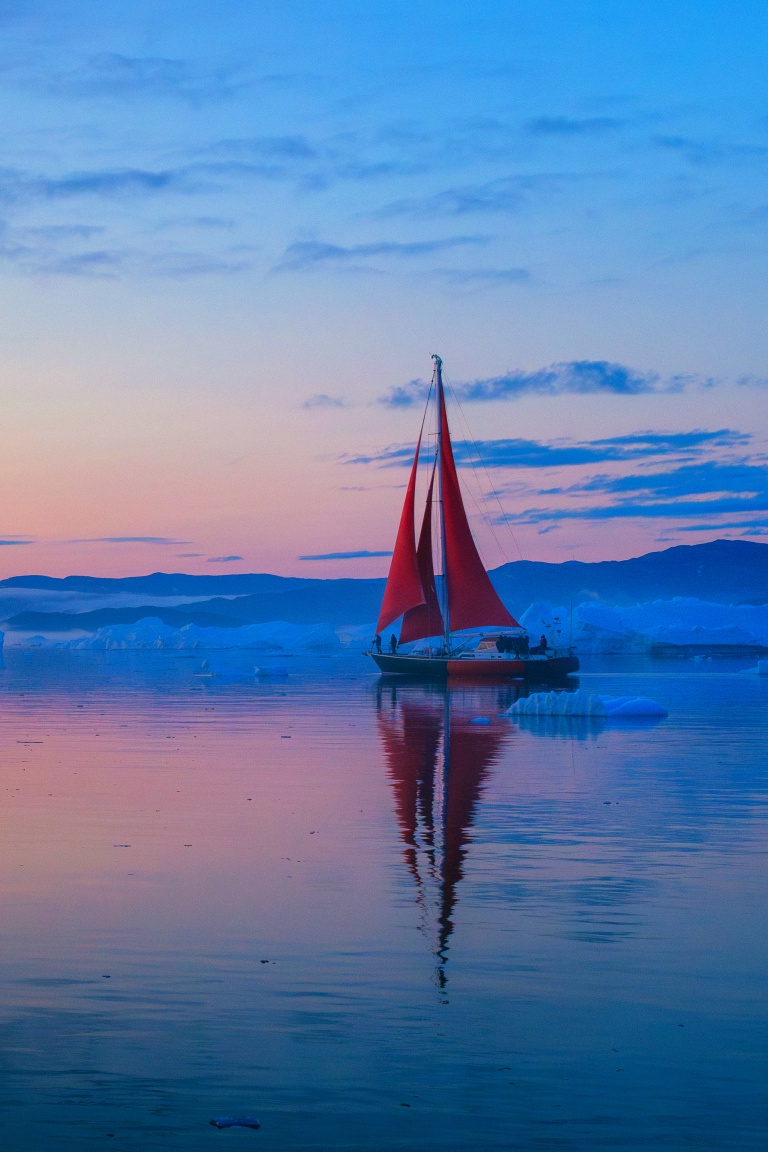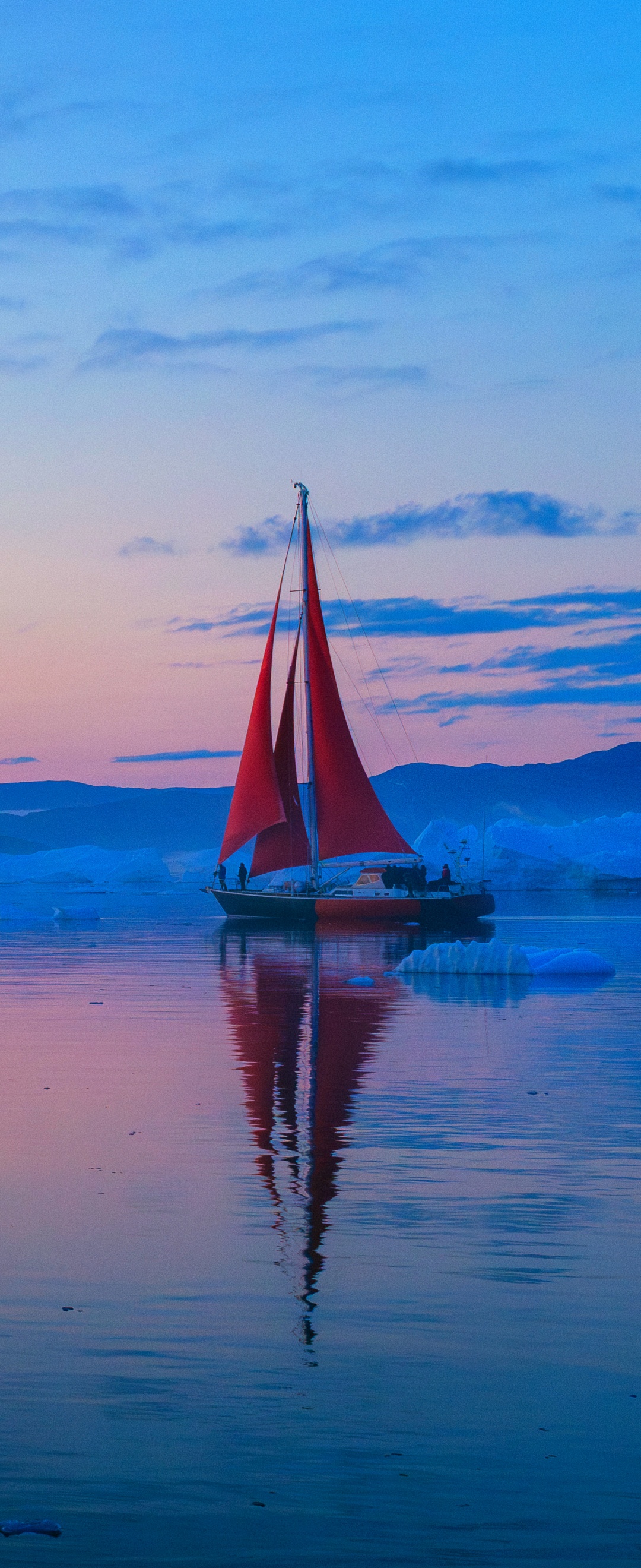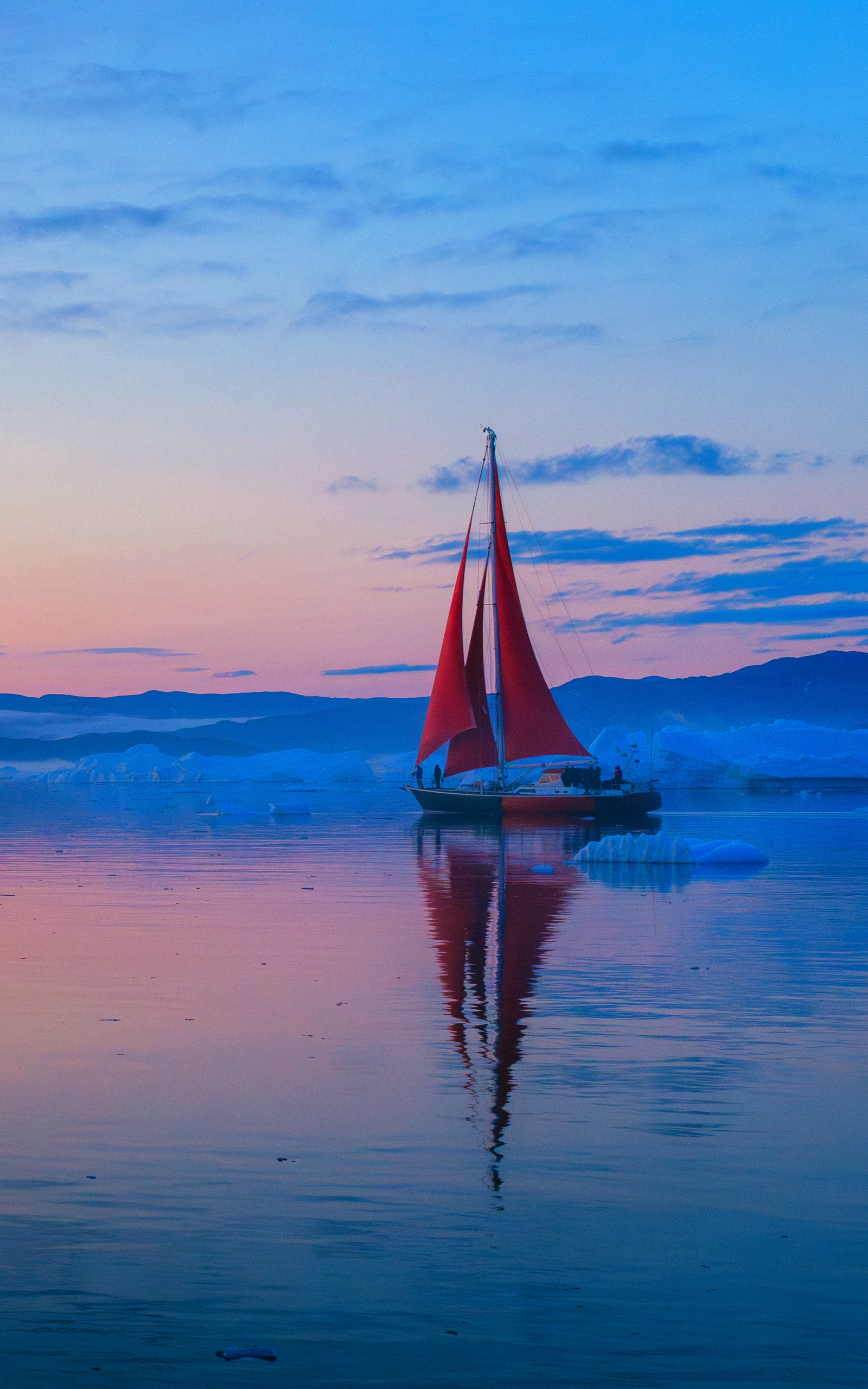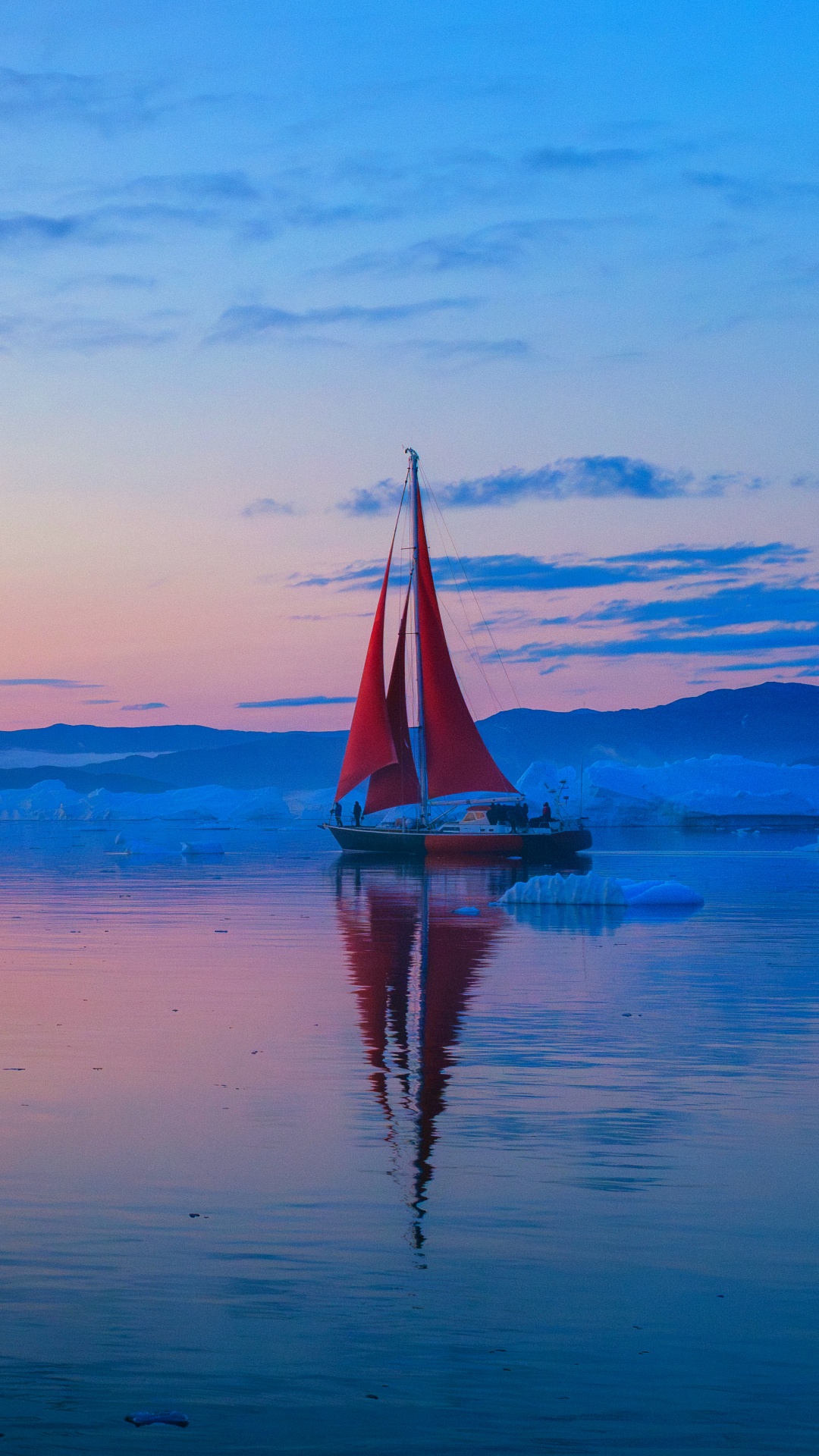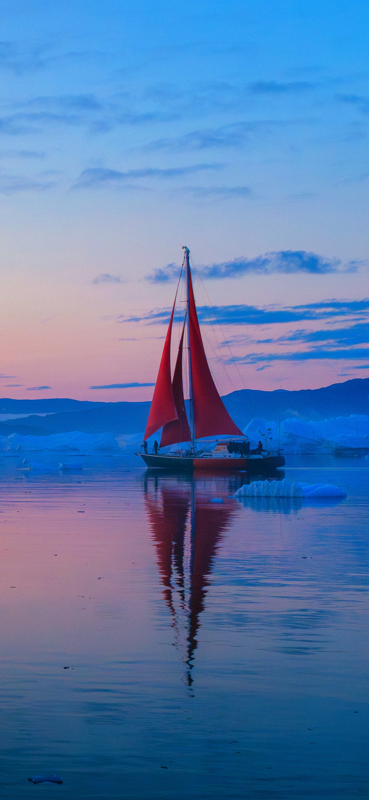 Download Greenland Sunrise Sailing in Avannaata Ice Caps 4K UHD Wallpaper